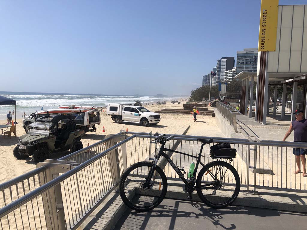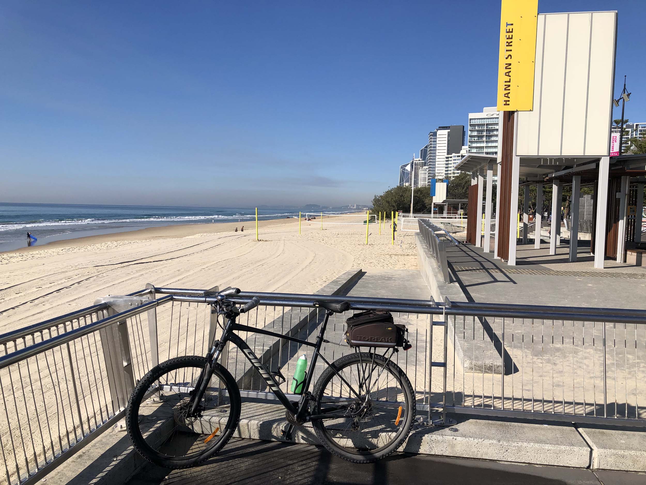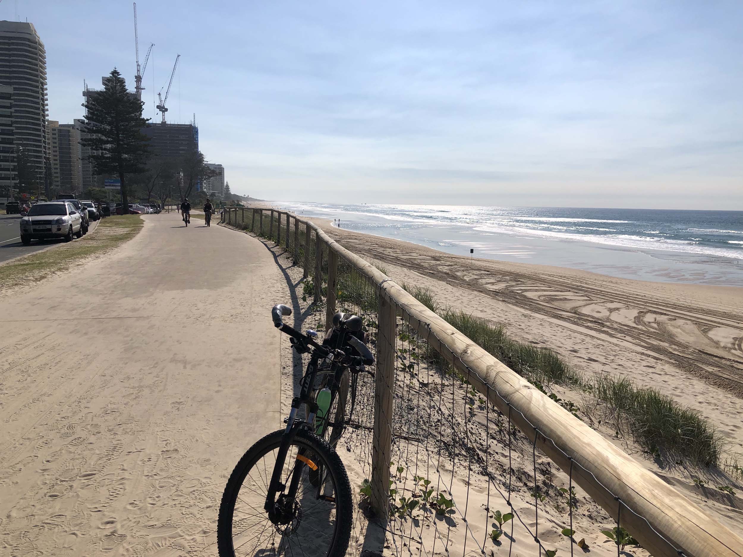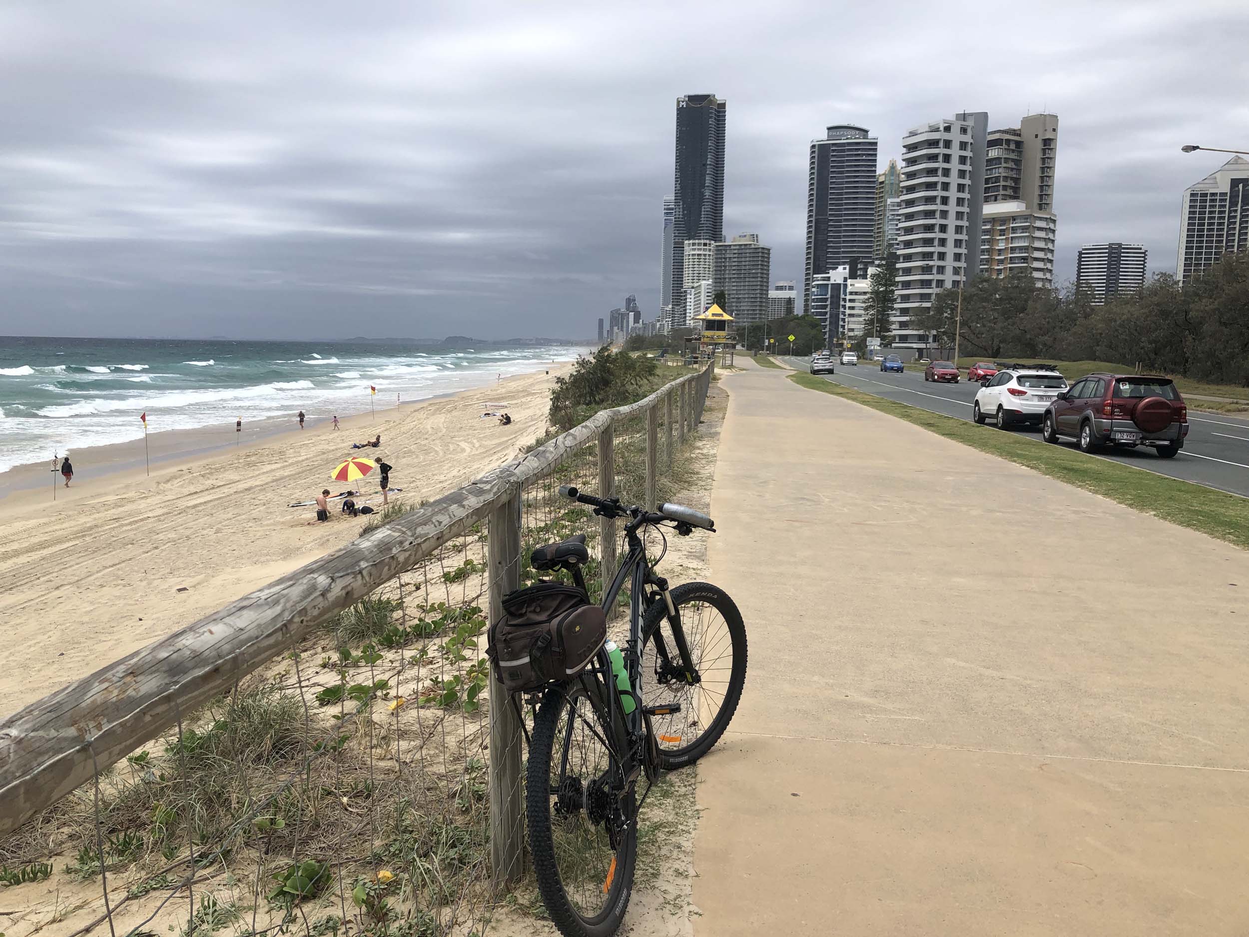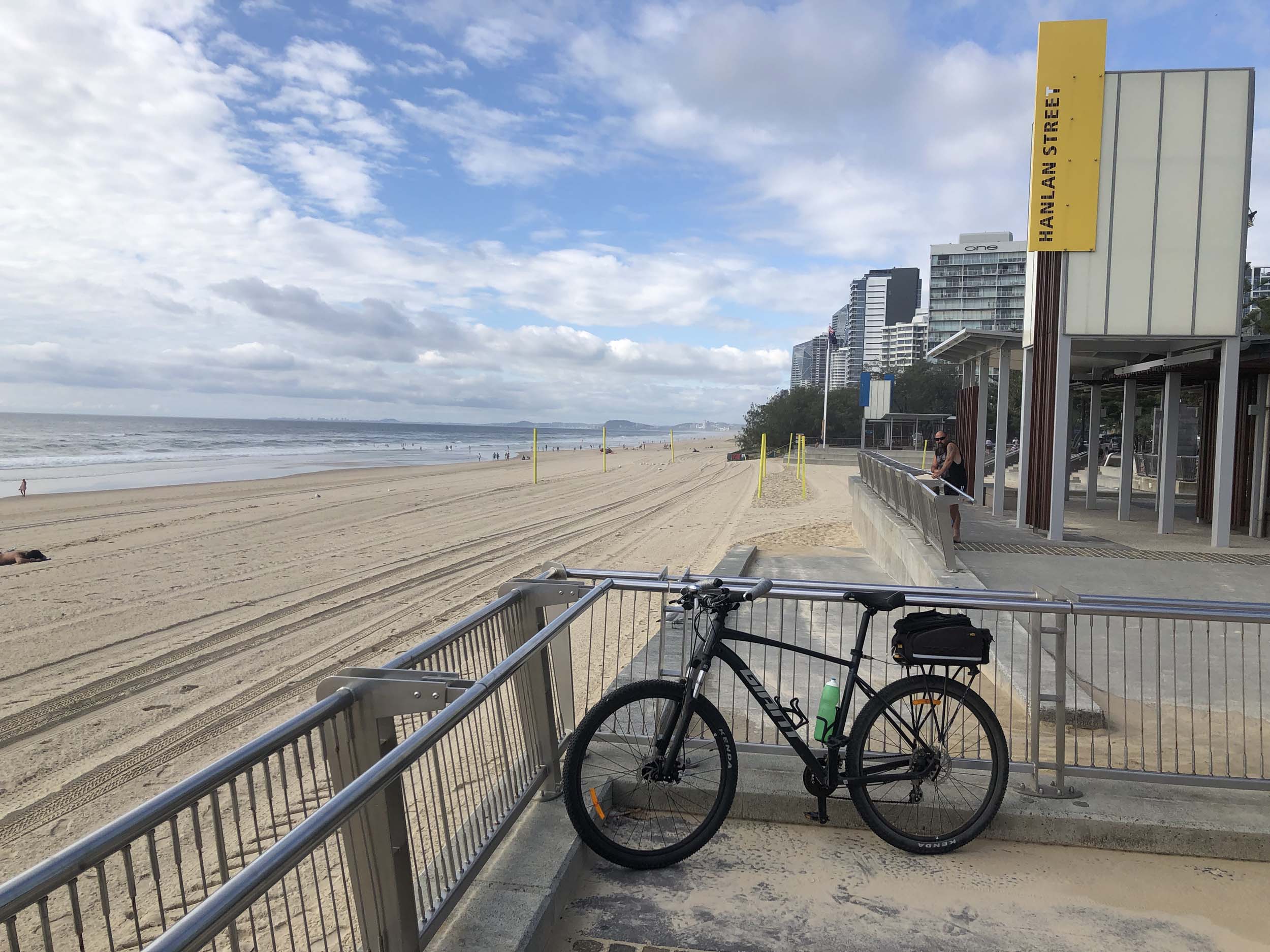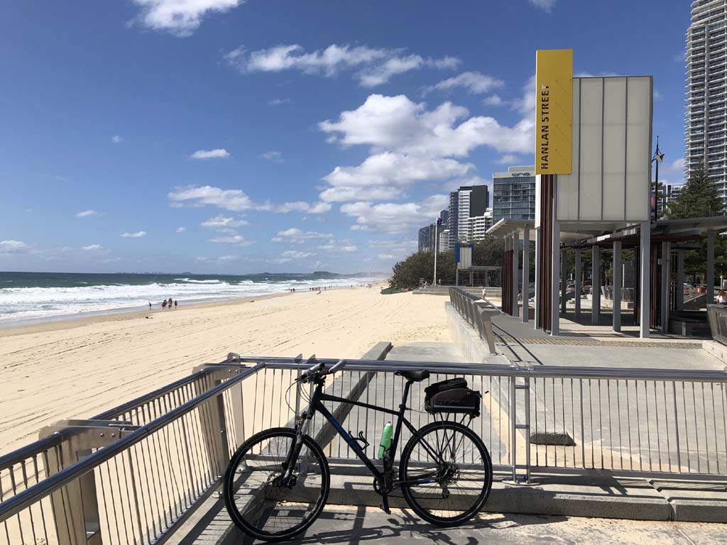 Home to Turnaround Pt down to Surfers via GC600 Park to Surfers to The Spit (both ends - twice) then back through GC600 Park back to Cafe Rockpool and finally back Home about 50+kms.