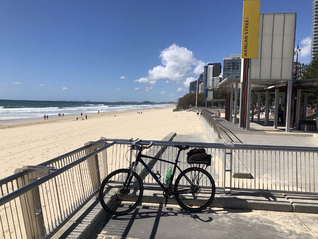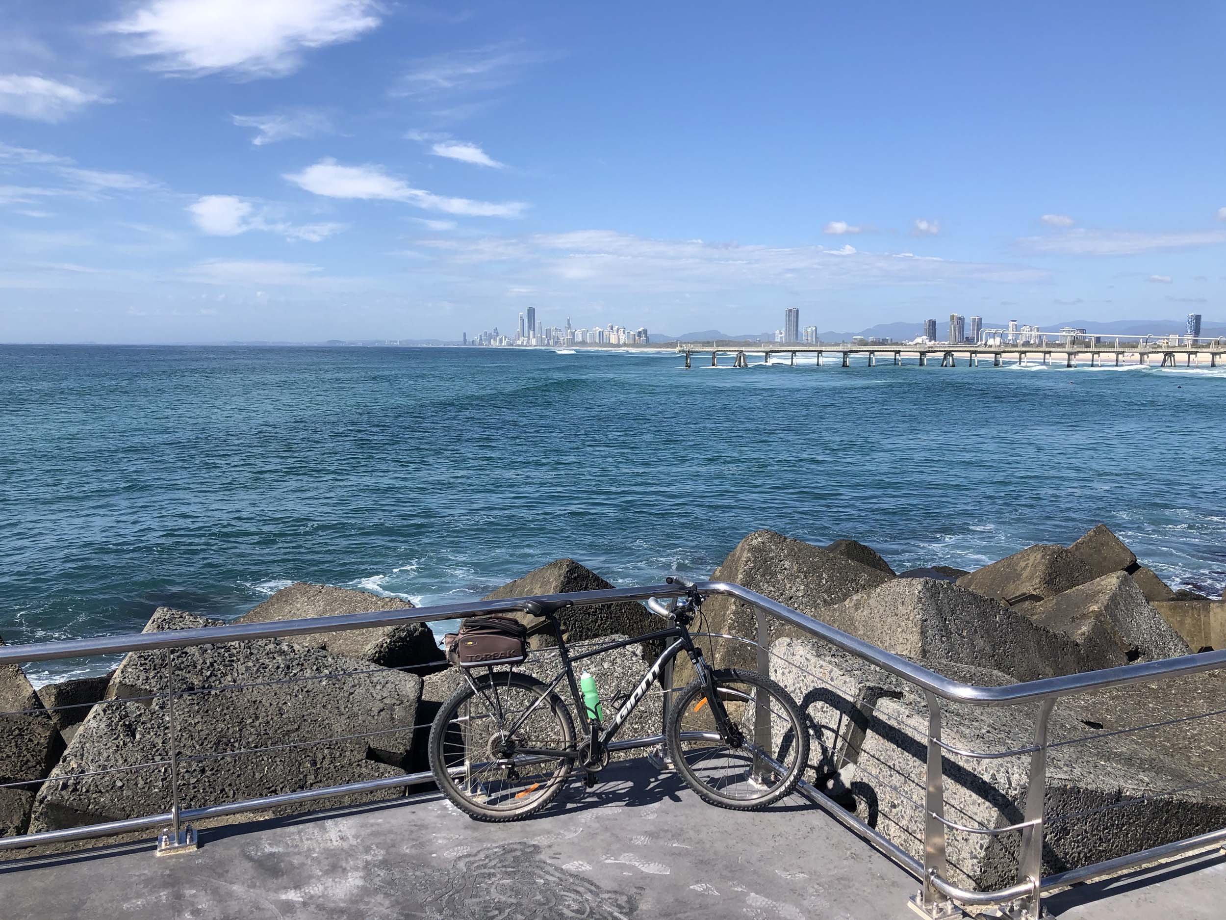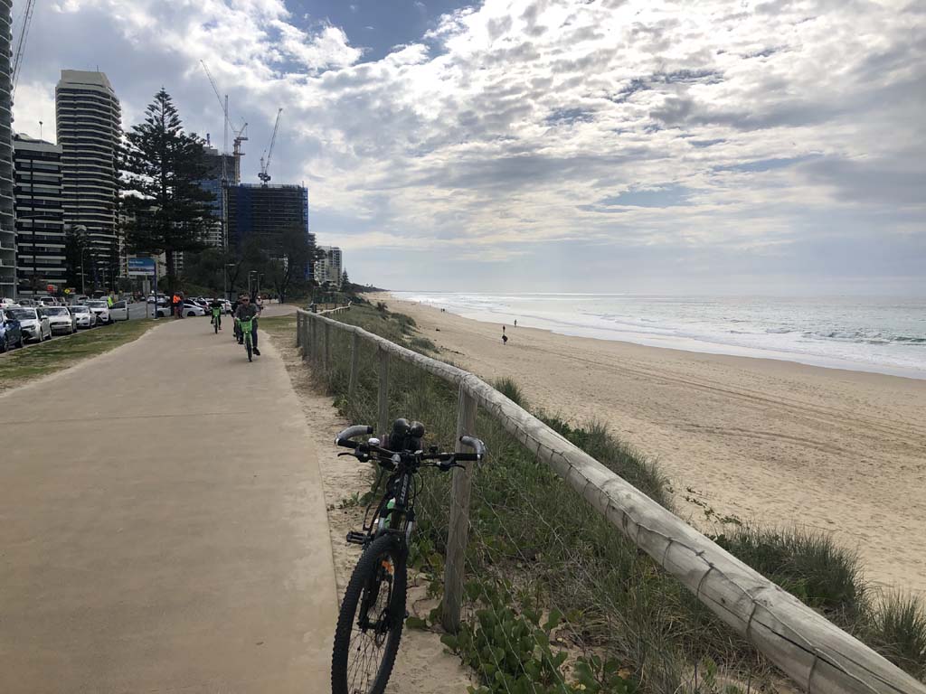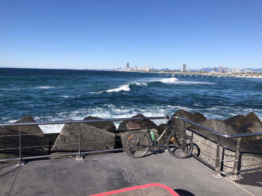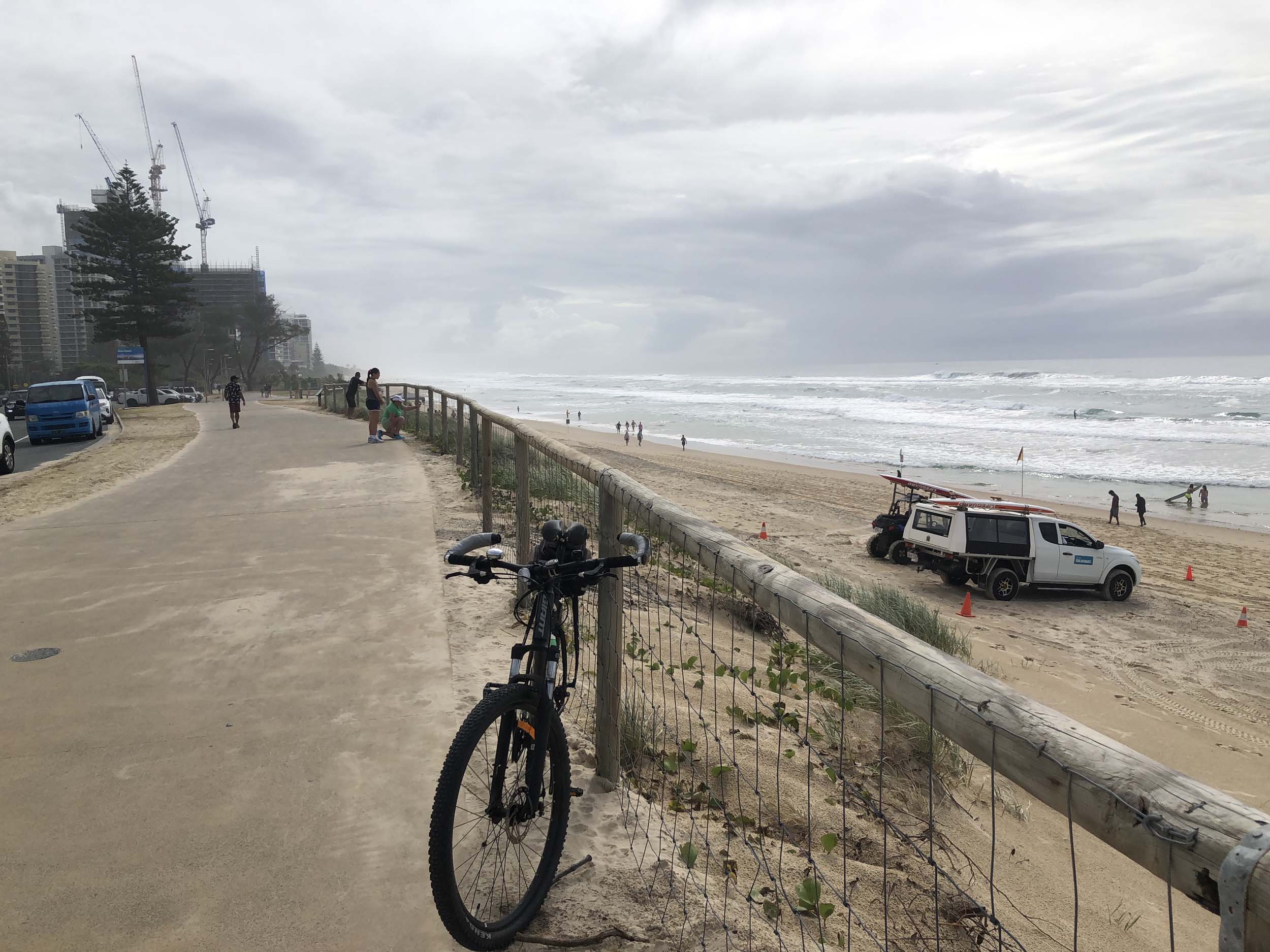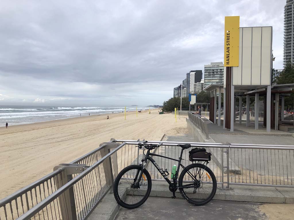 Home to Turnaround Pt down to Surfers via GC600 Park to Surfers to The Spit (both ends - twice) then back through GC600 Park back to Cafe Rockpool and finally back Home about 50+kms.