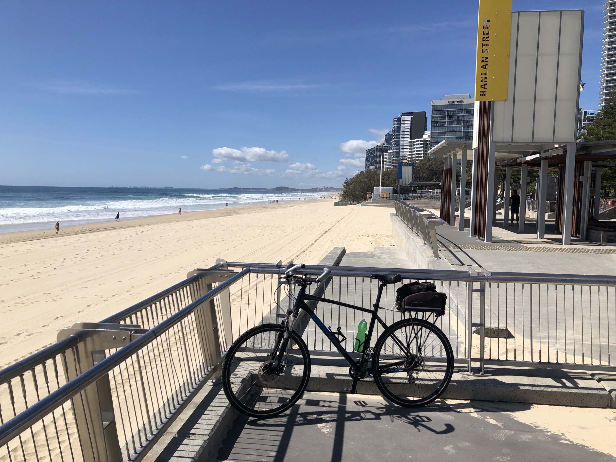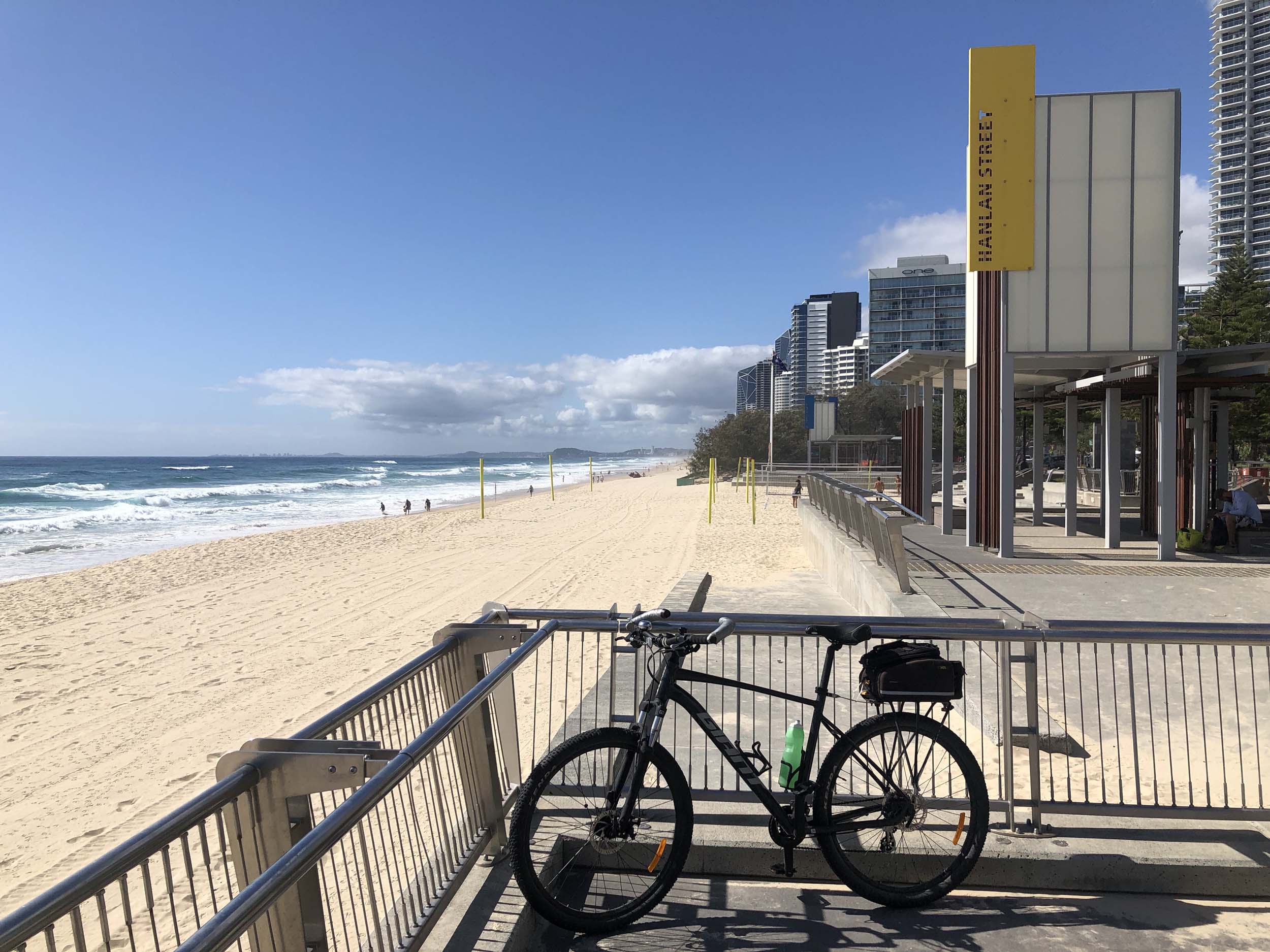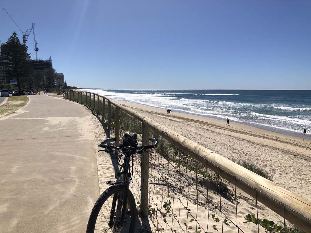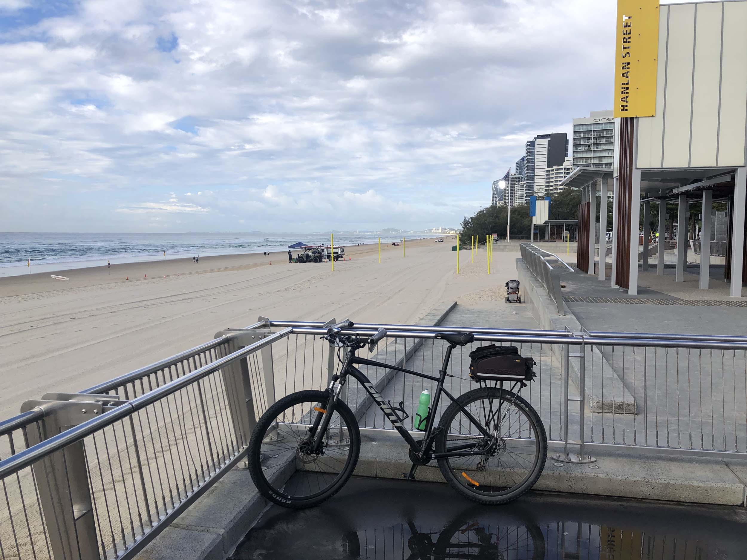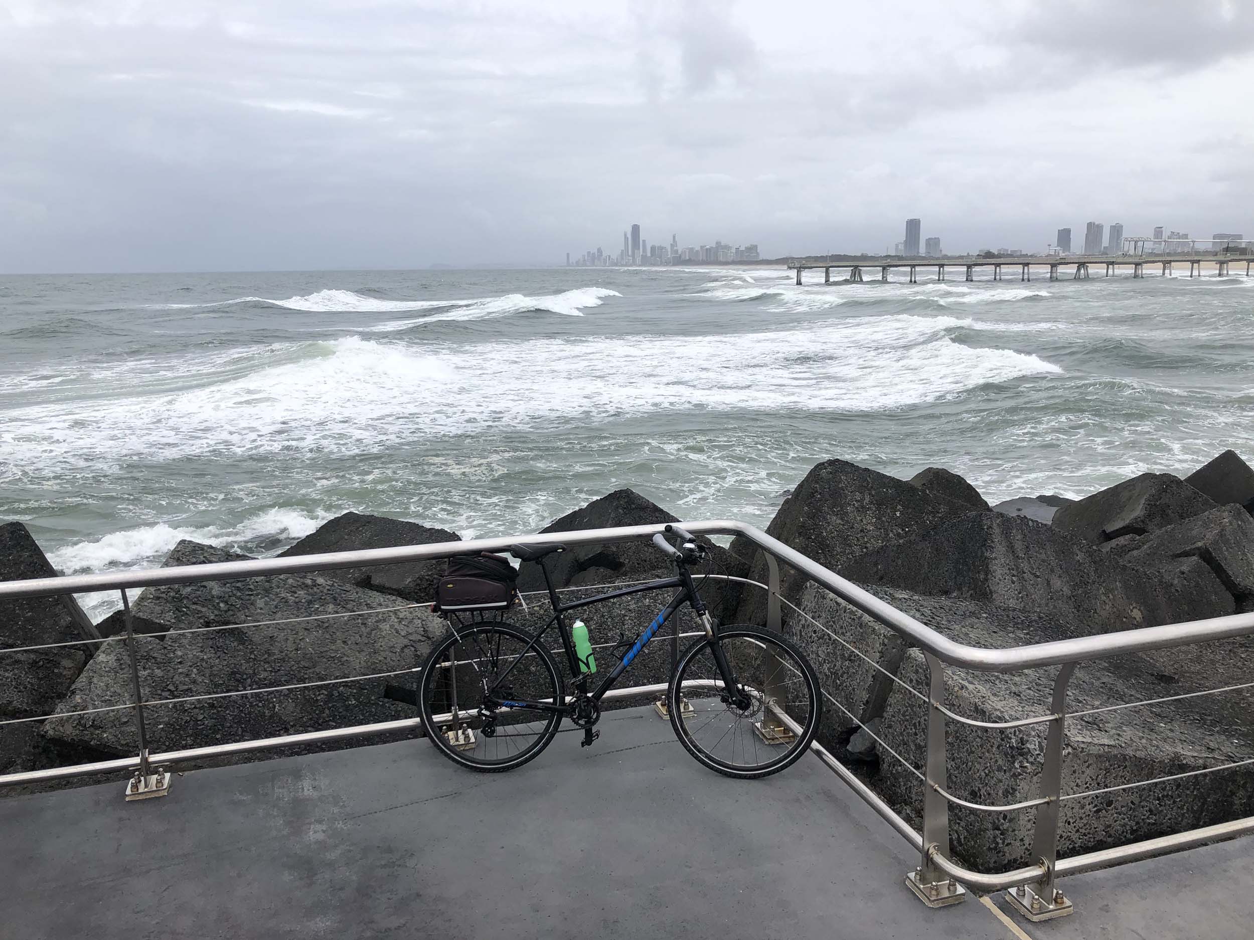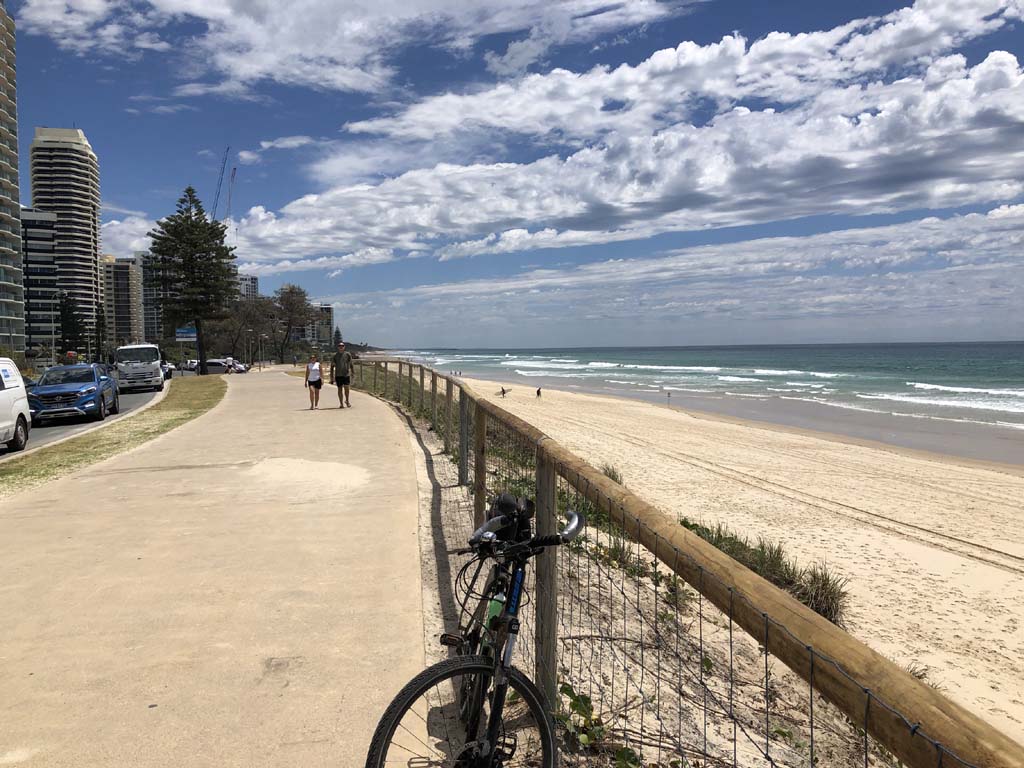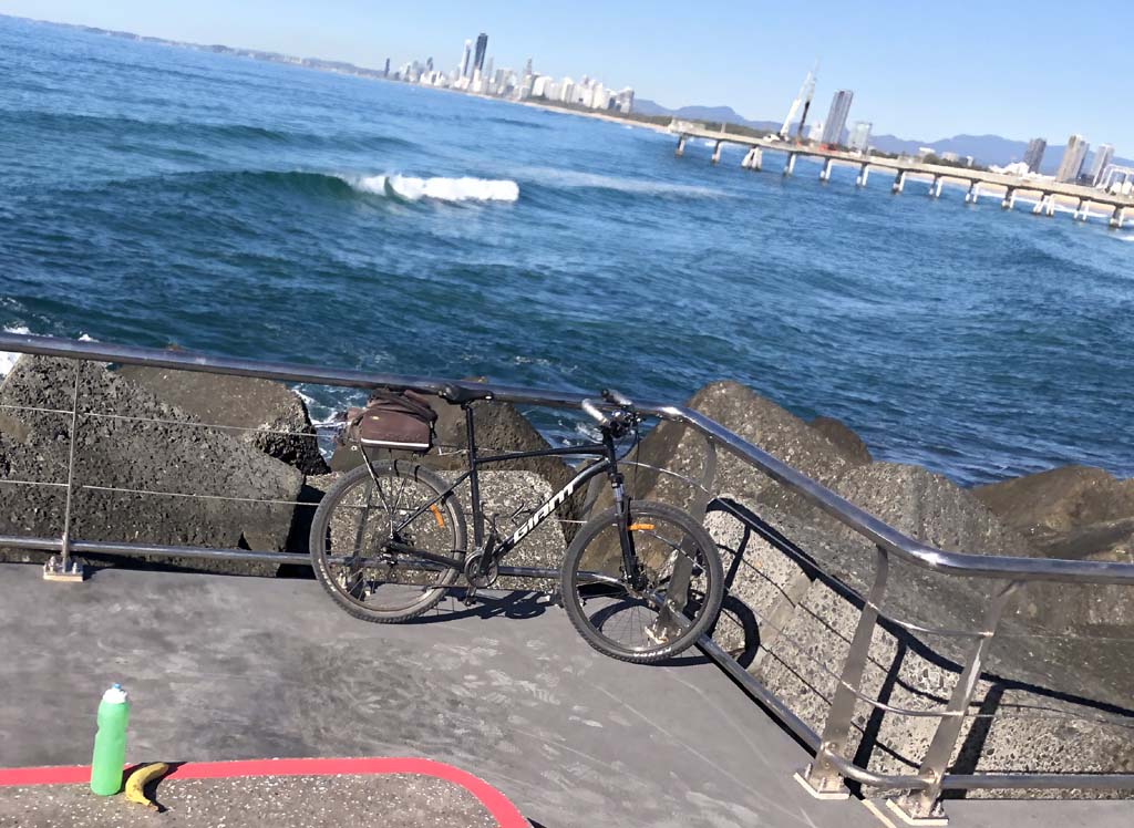 Home to Turnaround Pt down to Surfers via GC600 Park to Surfers to The Spit (both ends - twice) then back through GC600 Park back to Cafe Rockpool and finally back Home about 50+kms.