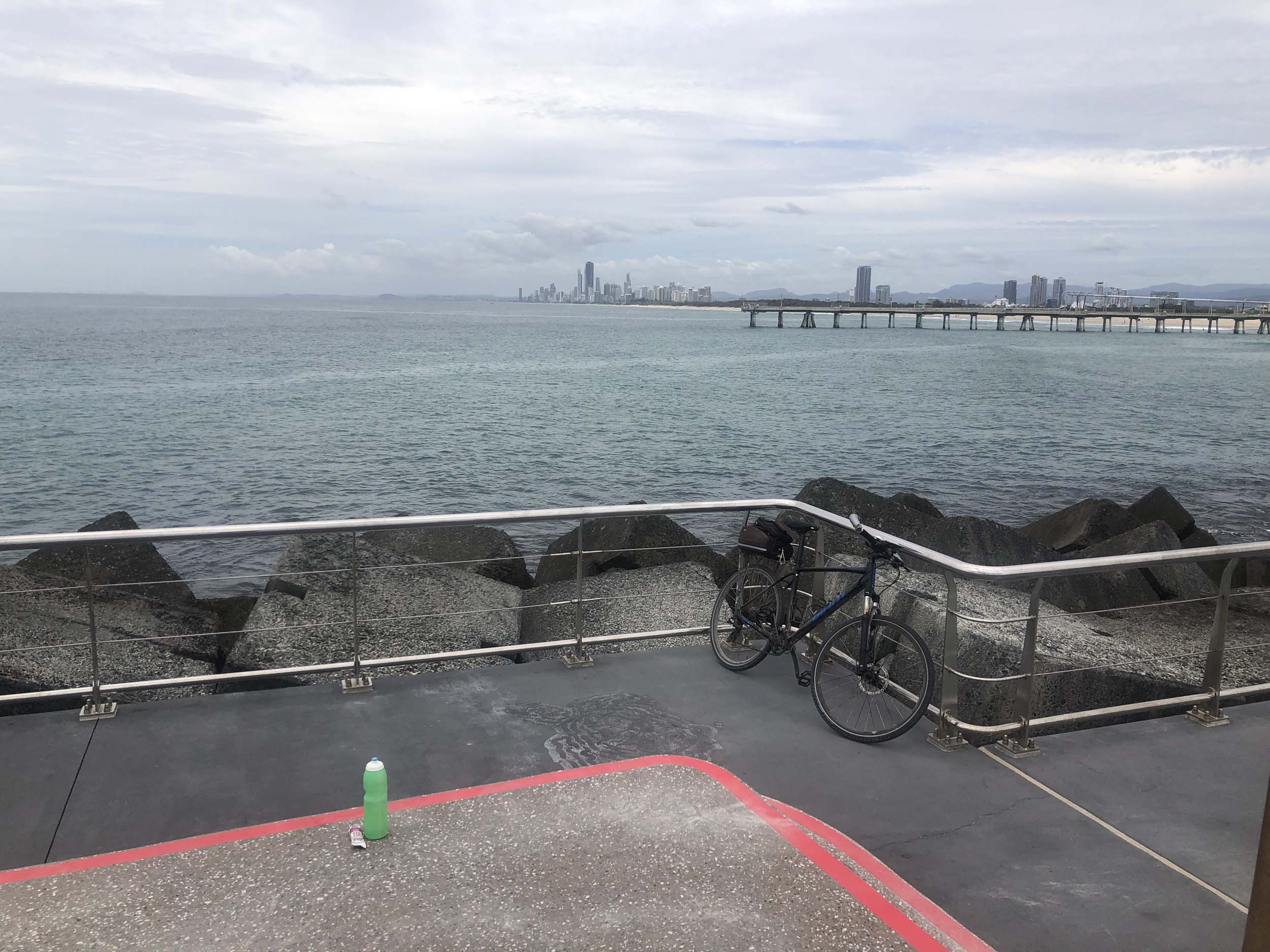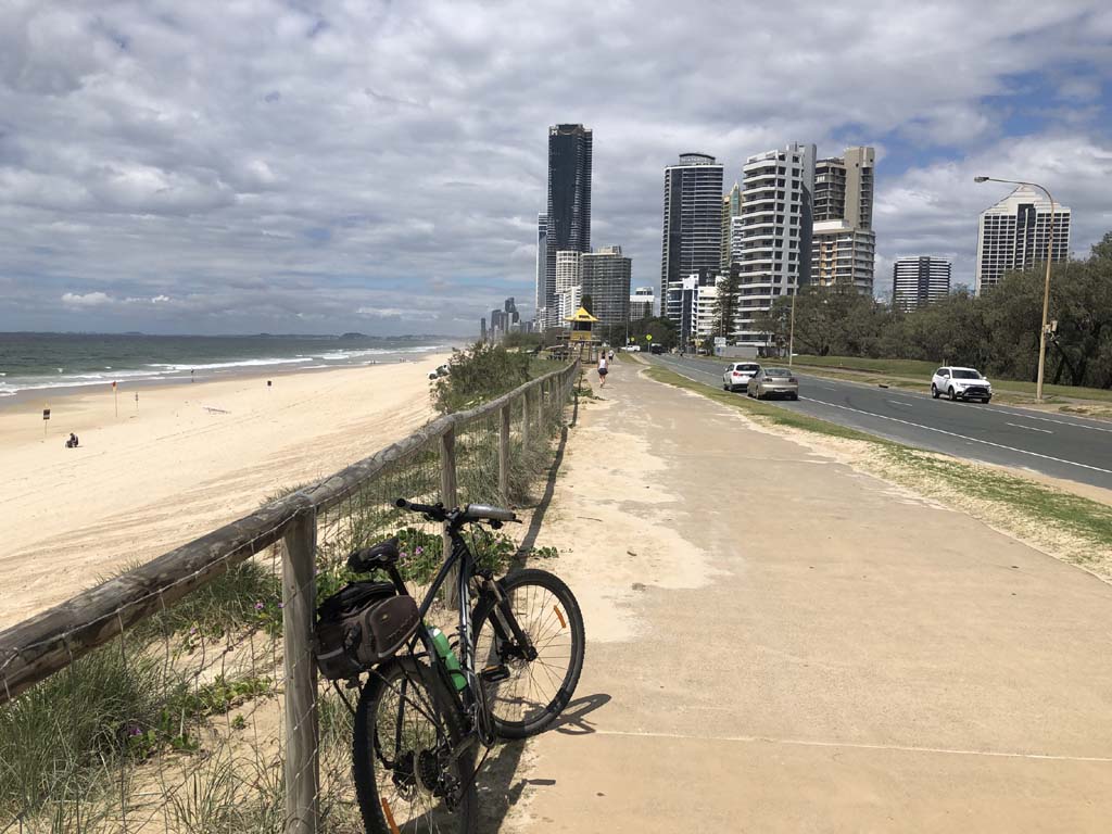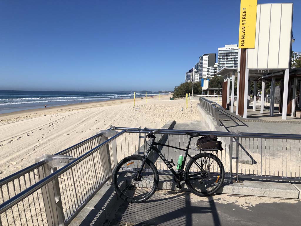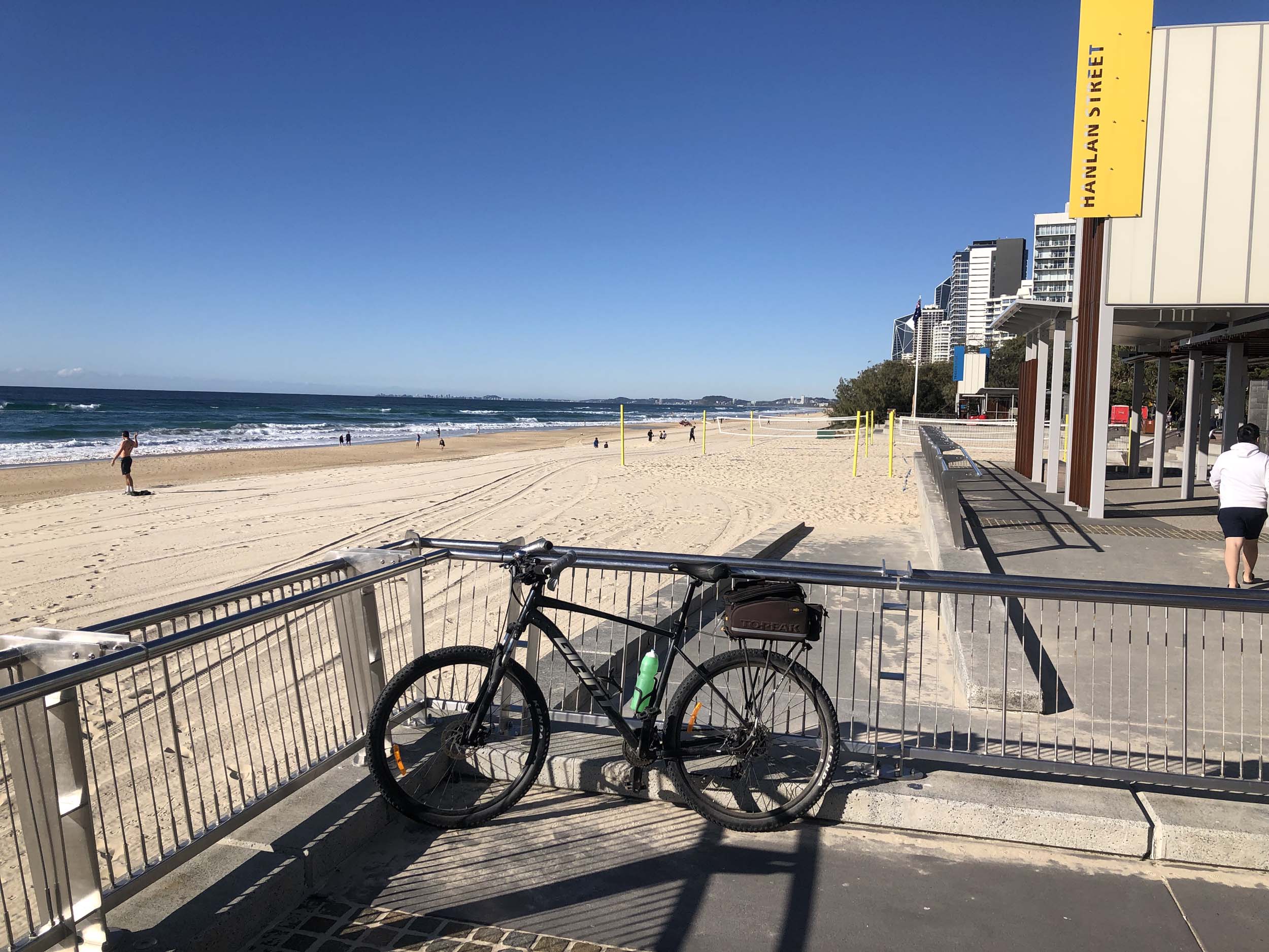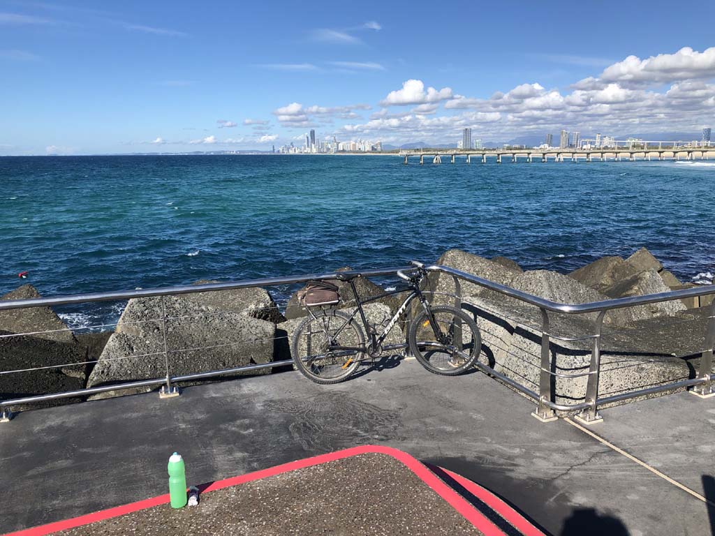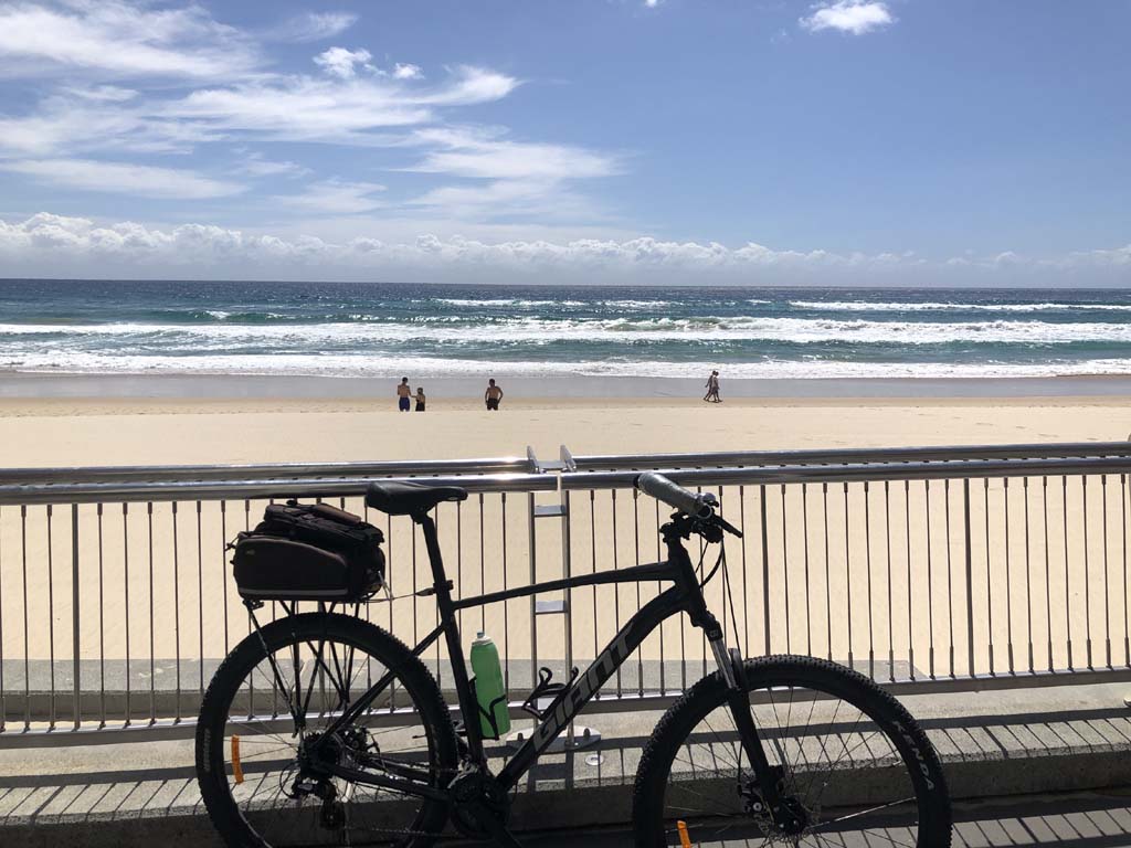 Home to Turnaround Pt down to Surfers via GC600 Park to Surfers to The Spit (both ends - twice) then back through GC600 Park back to Cafe Rockpool and finally back Home about 50+kms.