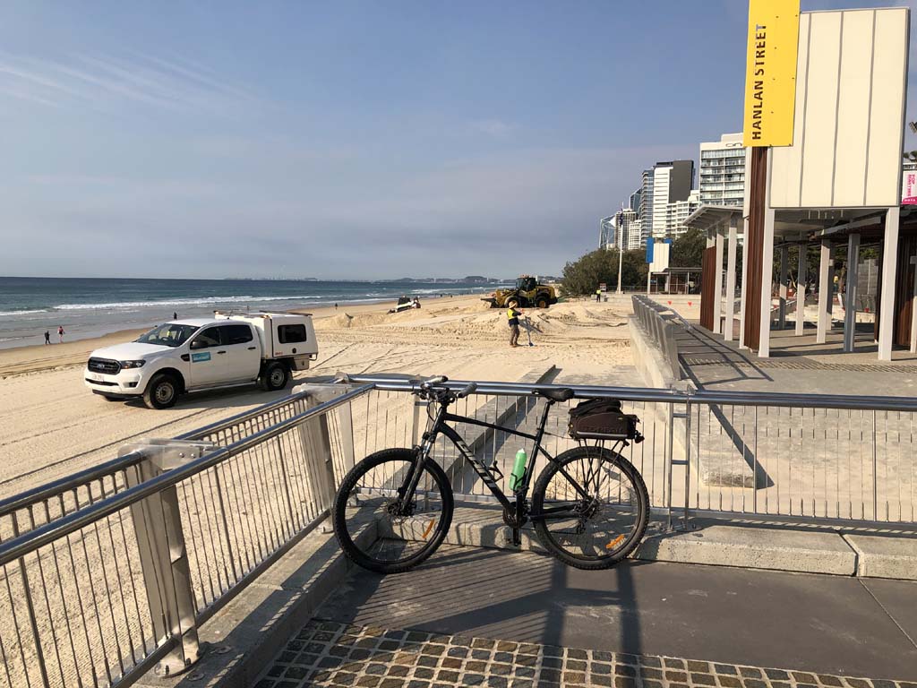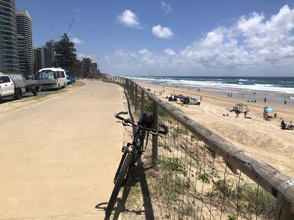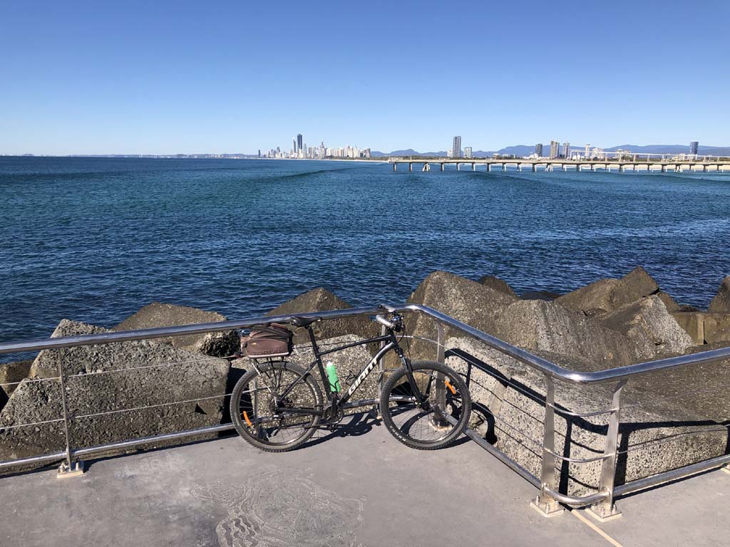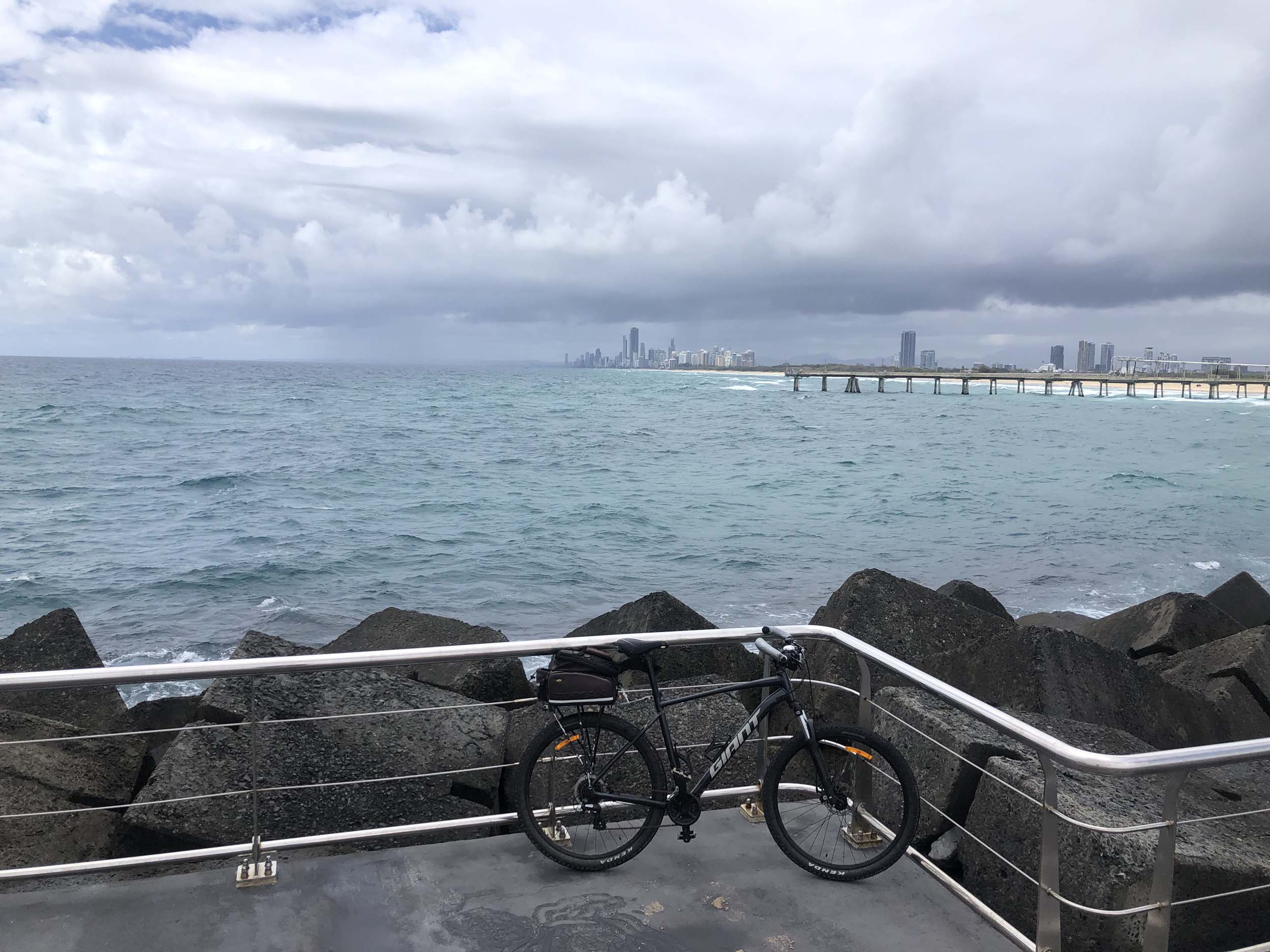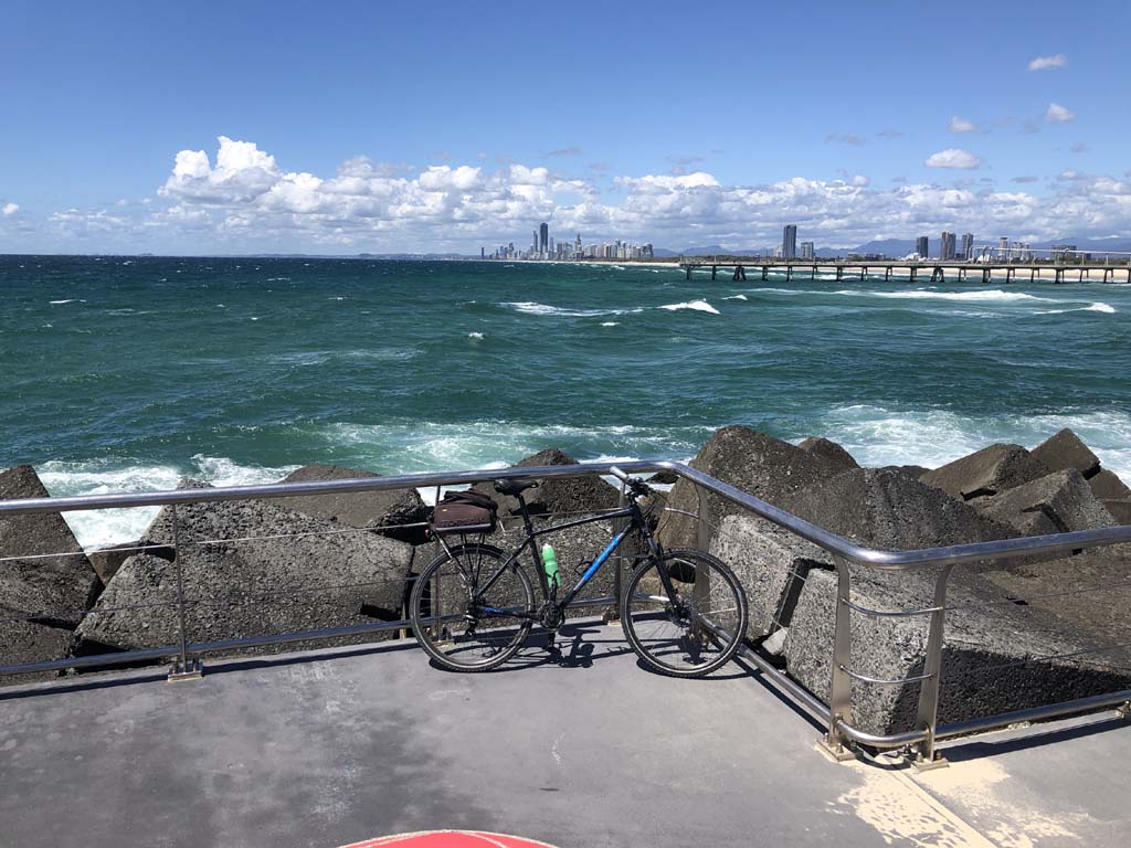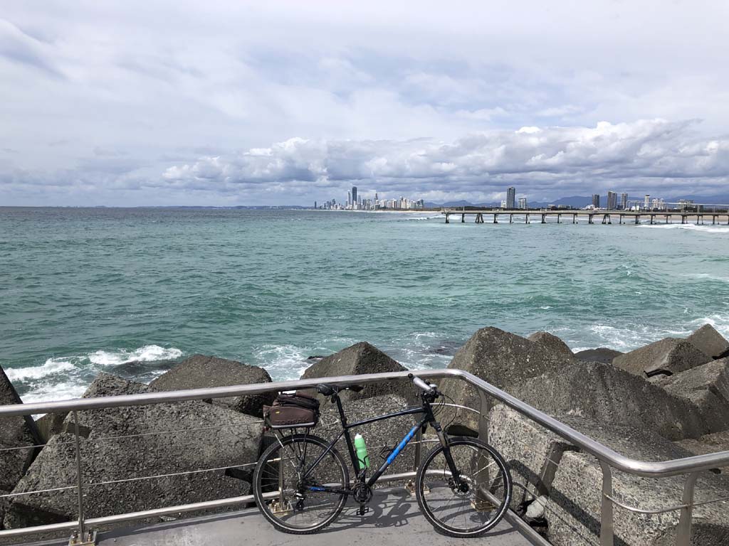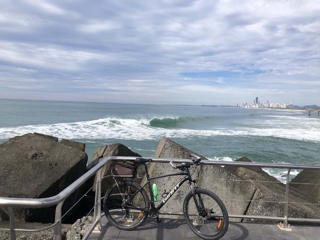 Home to Turnaround Pt down to Surfers via GC600 Park to Surfers to The Spit (both ends - twice) then back through GC600 Park back to Cafe Rockpool and finally back Home about 50+kms.