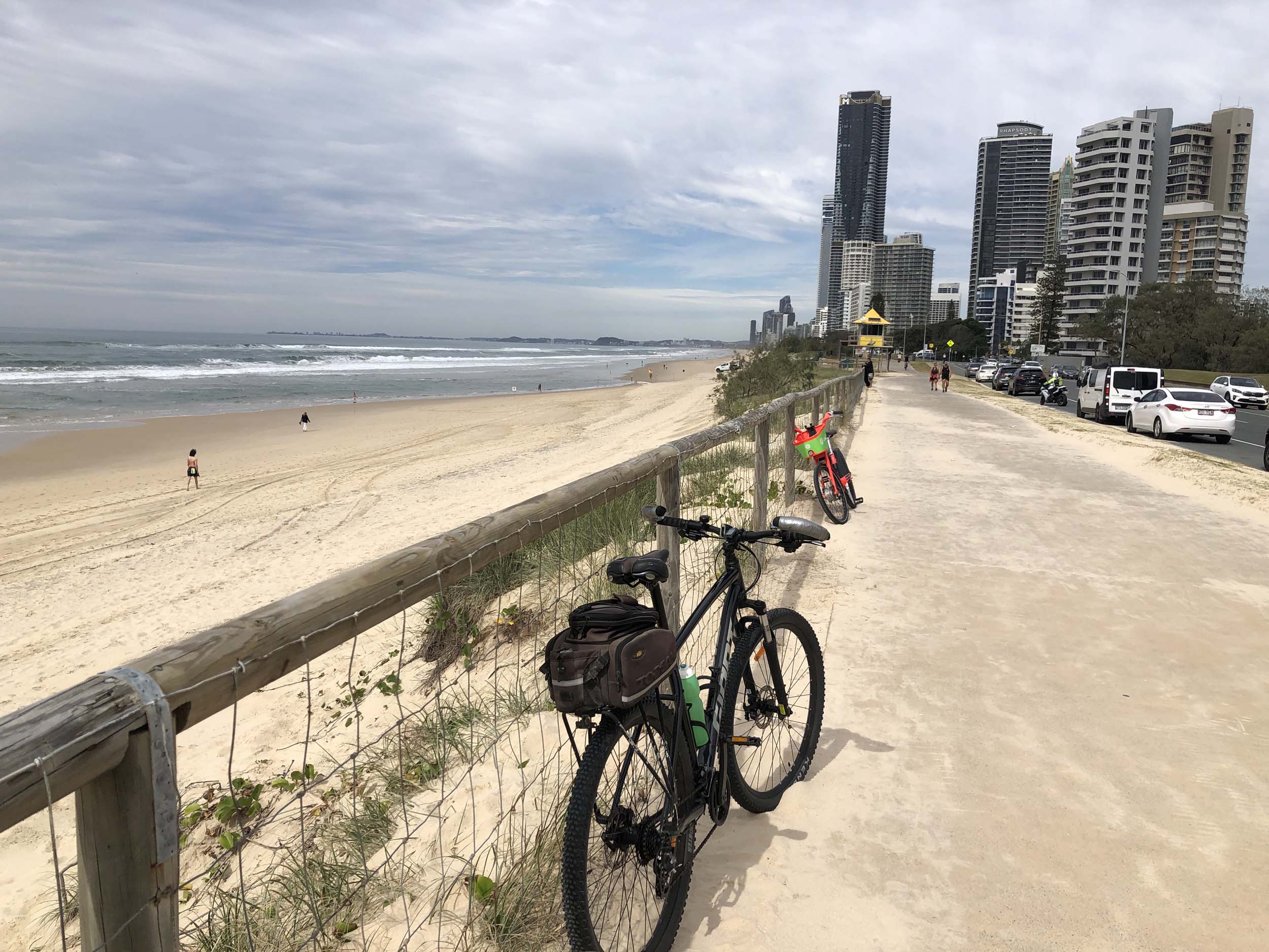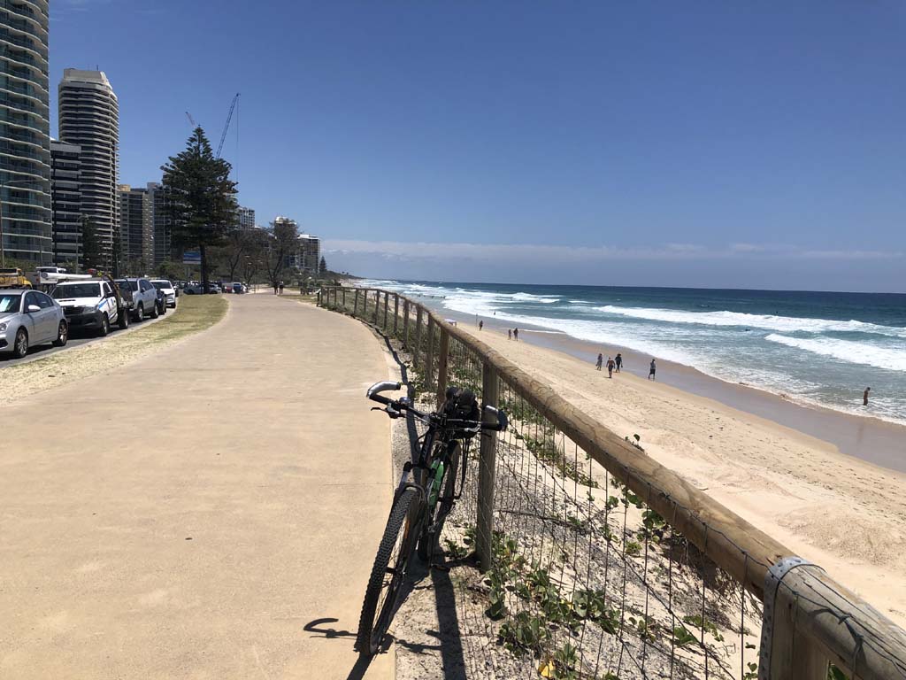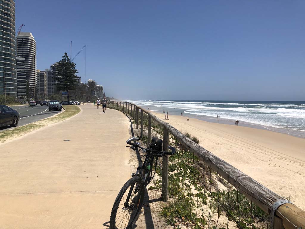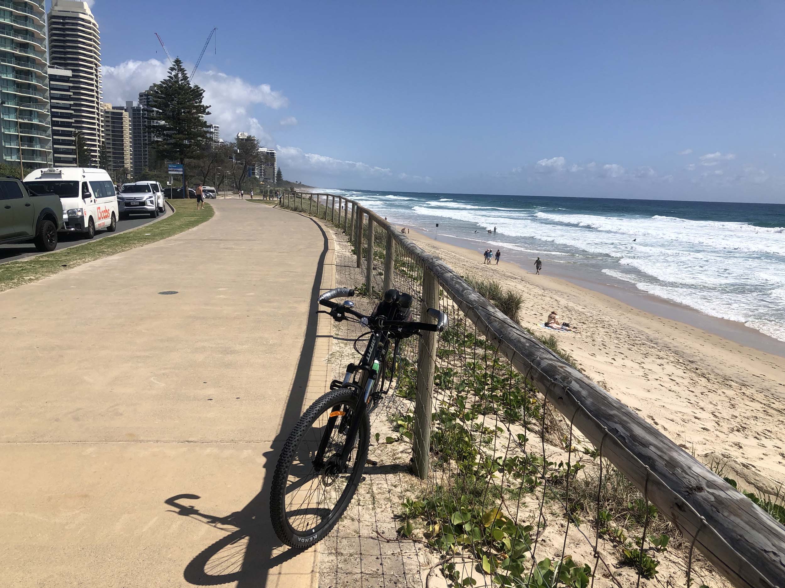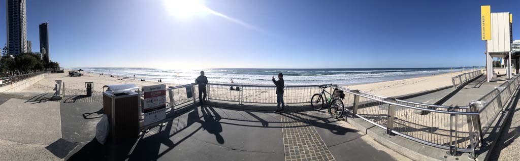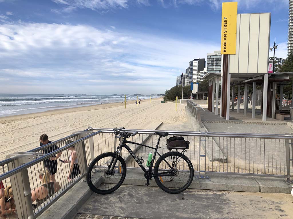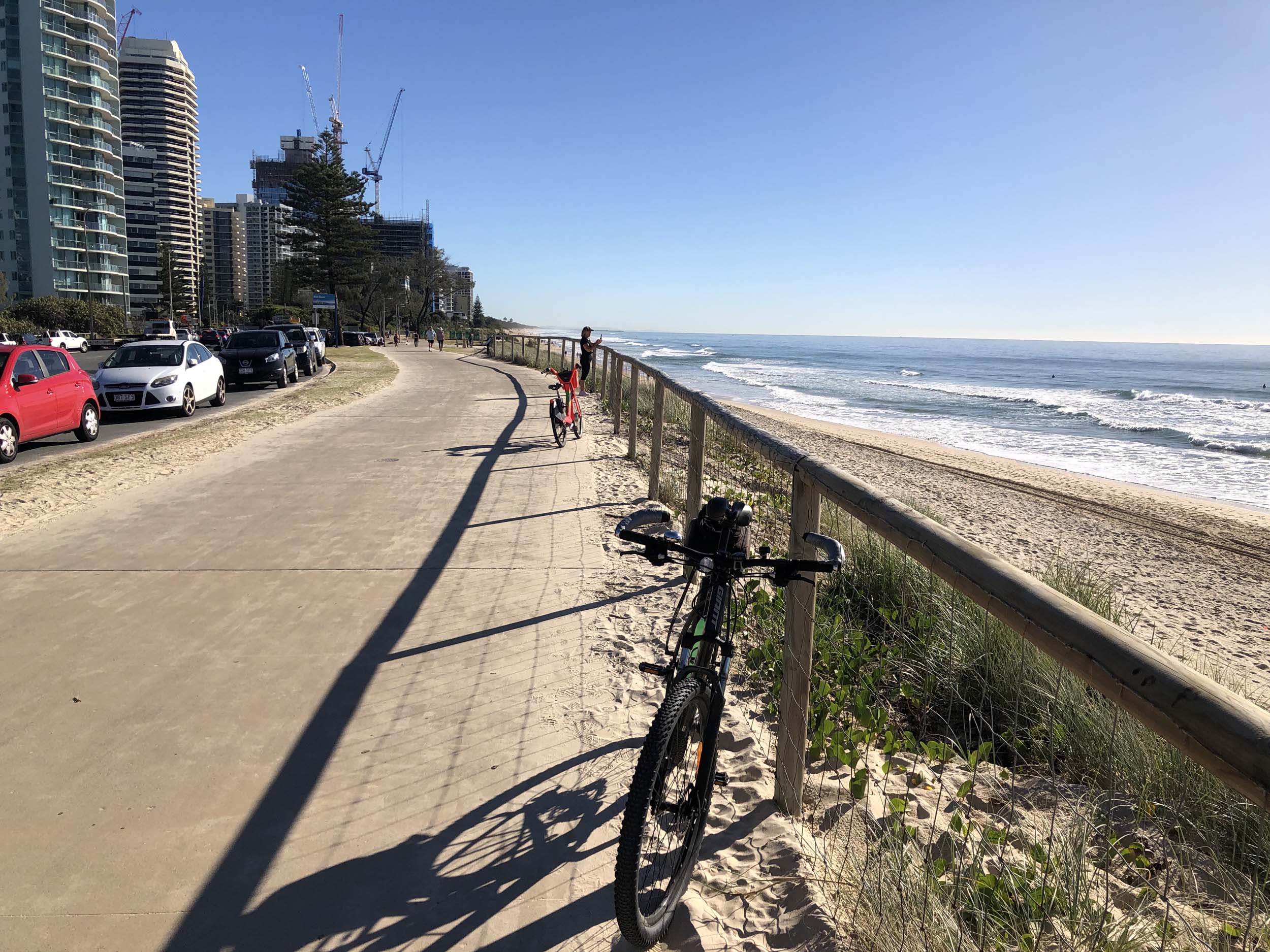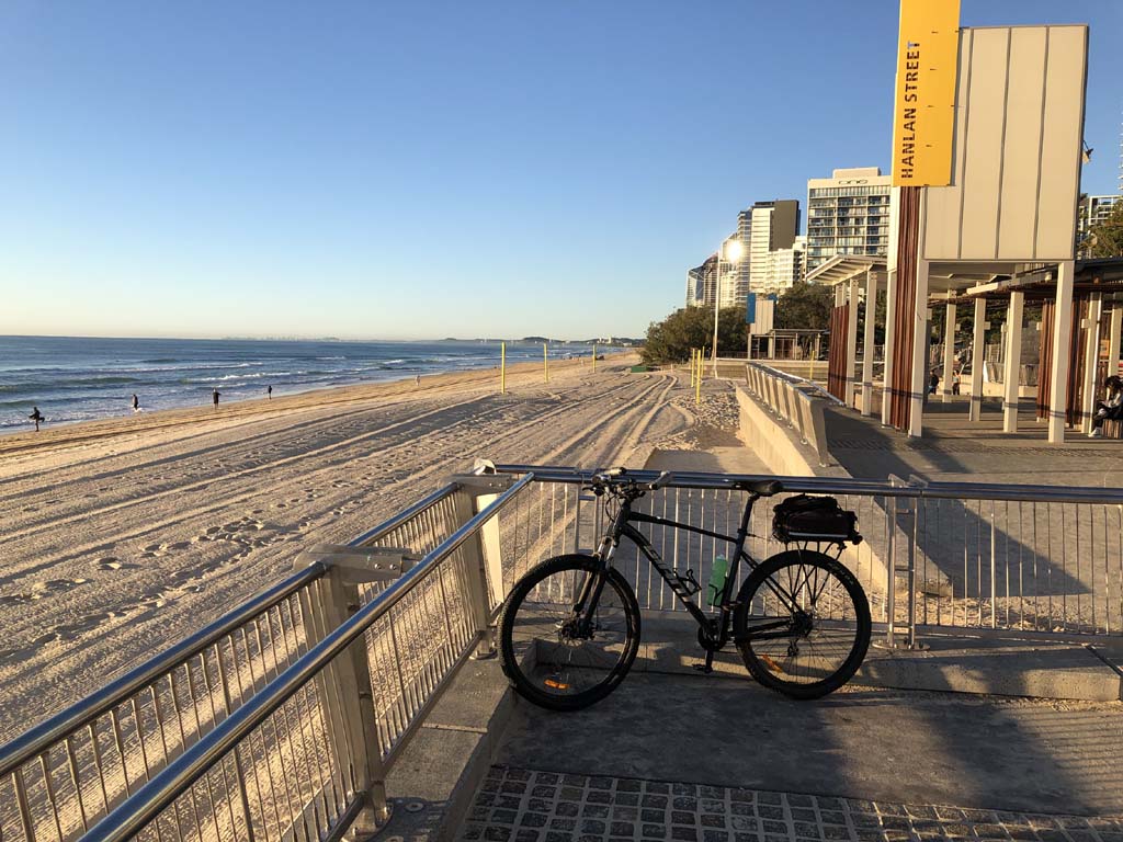 Home to Turnaround Pt down to Surfers via GC600 Park to Surfers to The Spit (both ends - twice) then back through GC600 Park back to Cafe Rockpool and finally back Home about 50+kms.