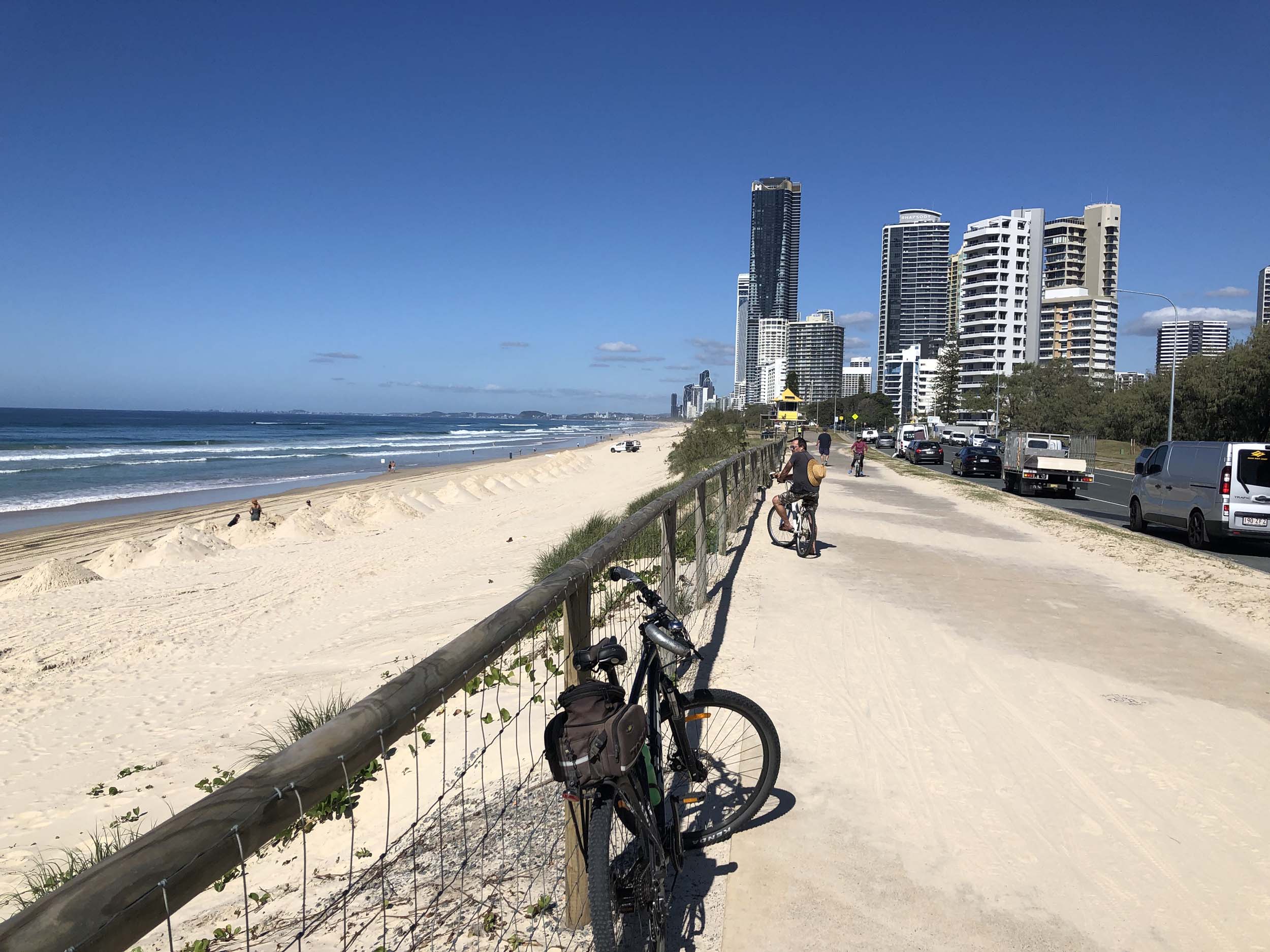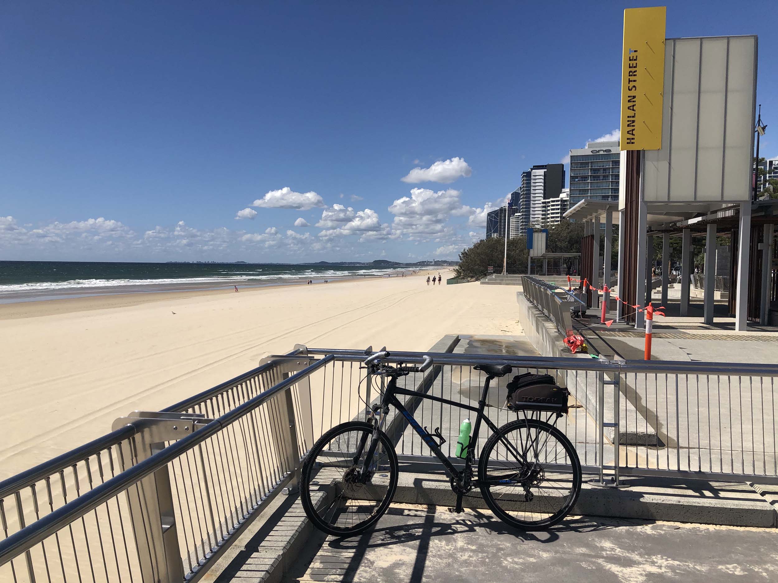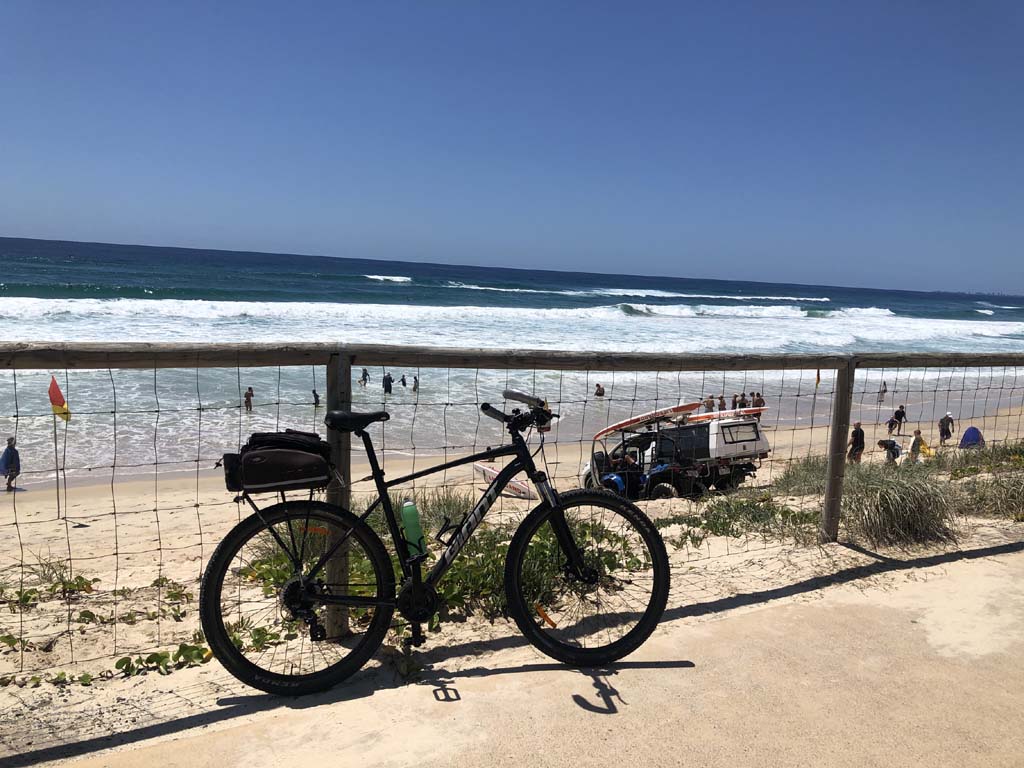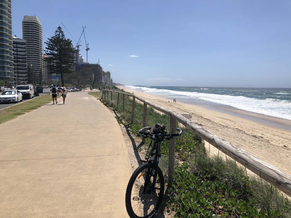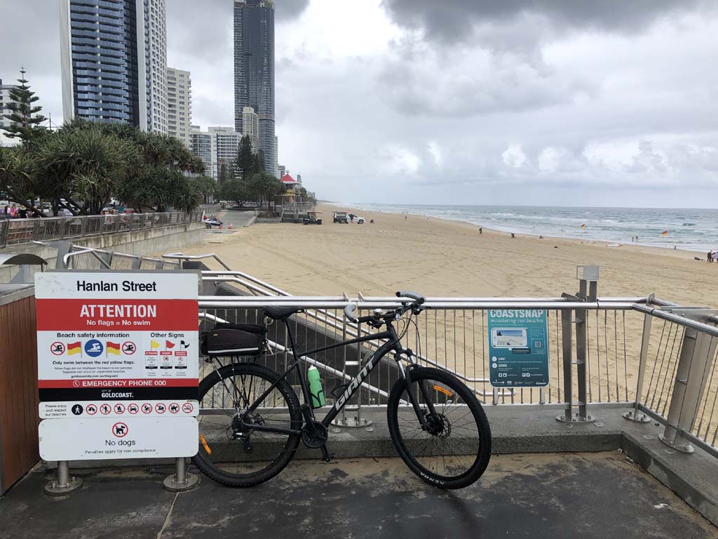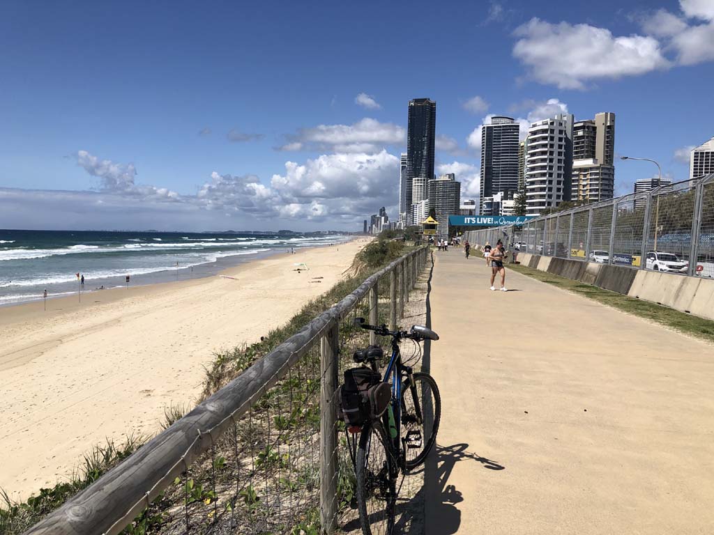 Home to Turnaround Pt down to Surfers via GC600 Park to Surfers to The Spit (both ends - twice) then back through GC600 Park back to Cafe Rockpool and finally back Home about 50+kms.