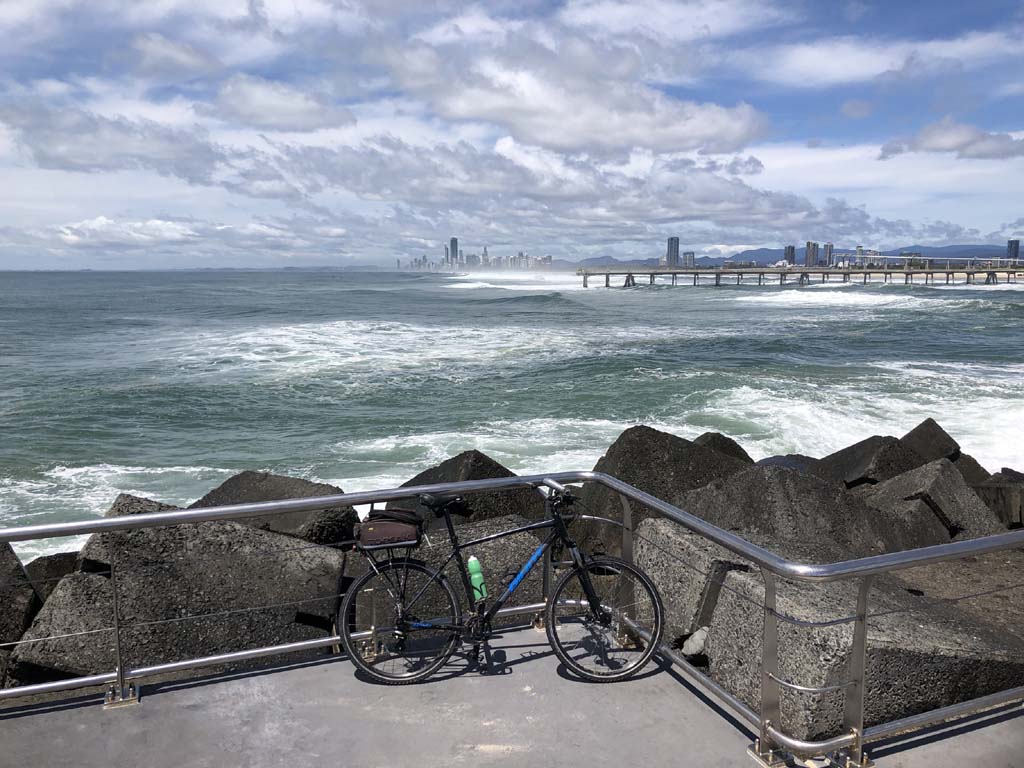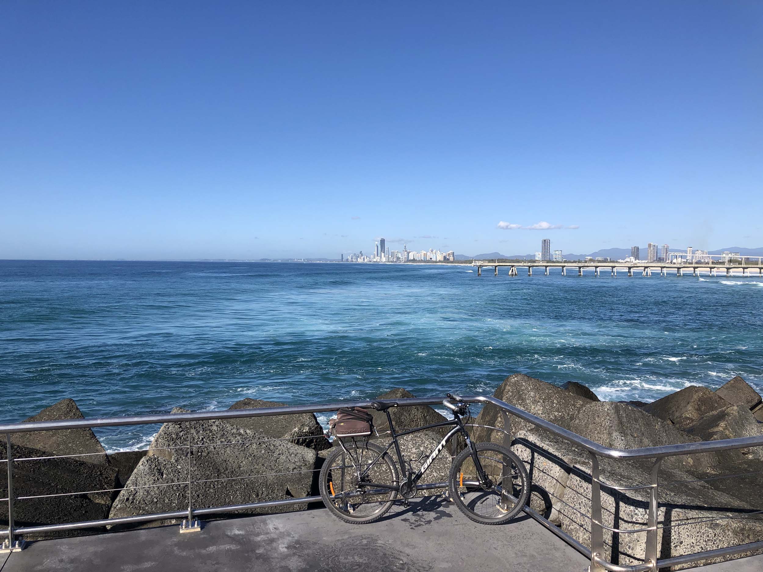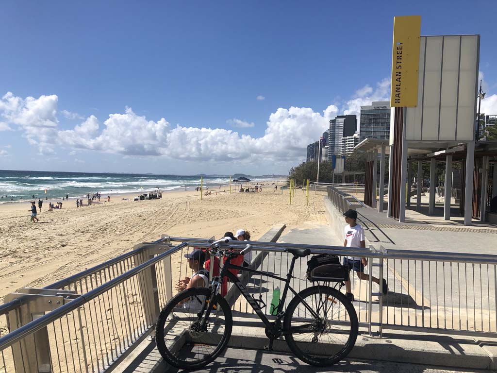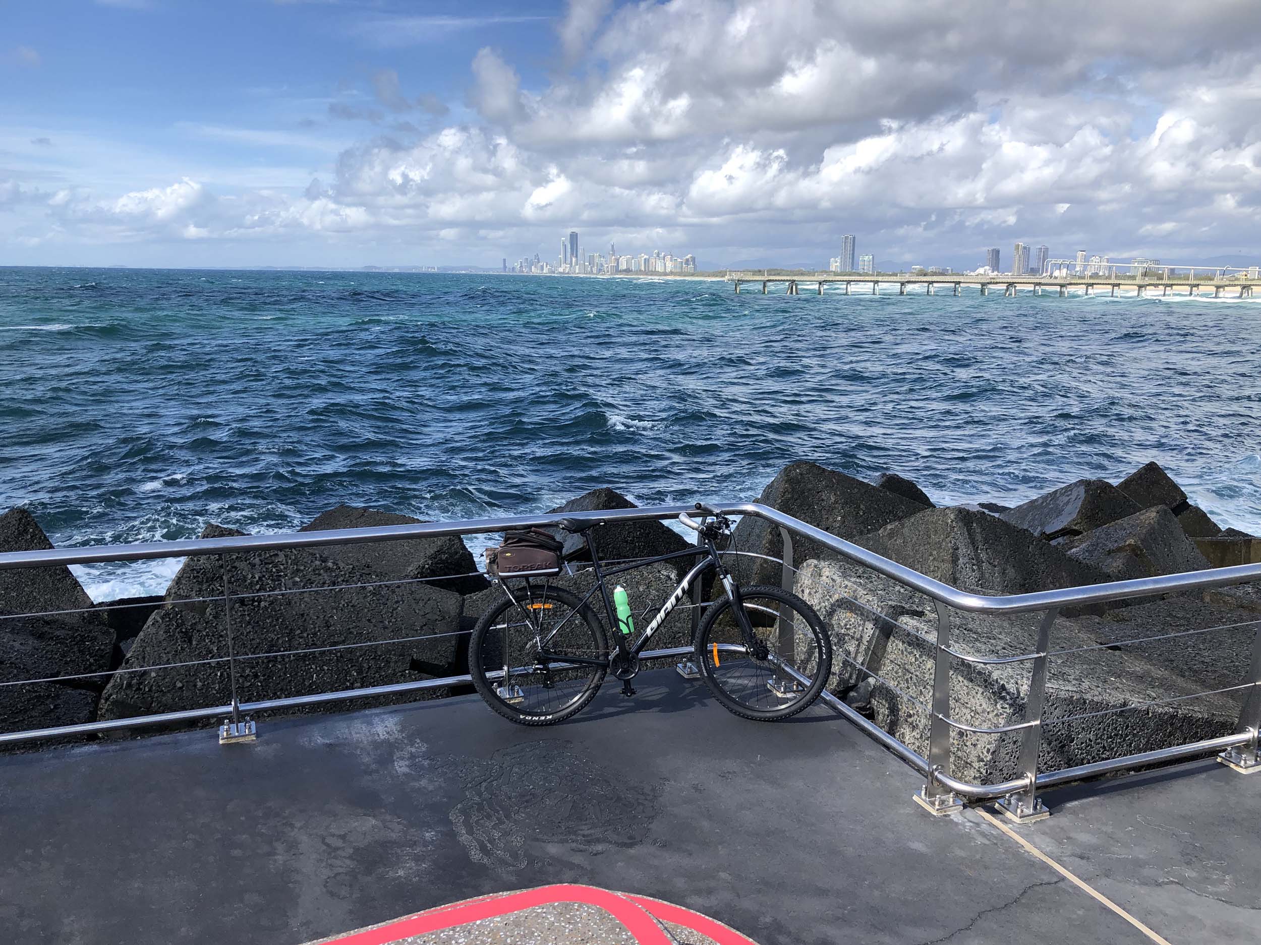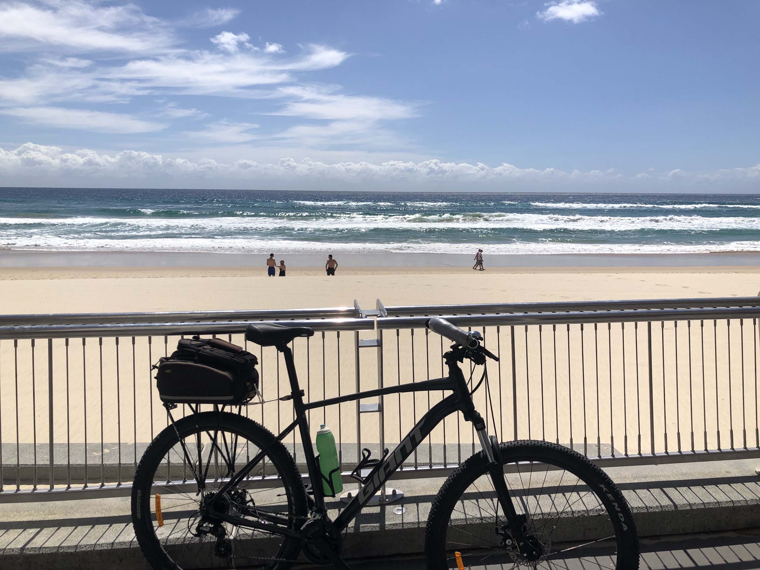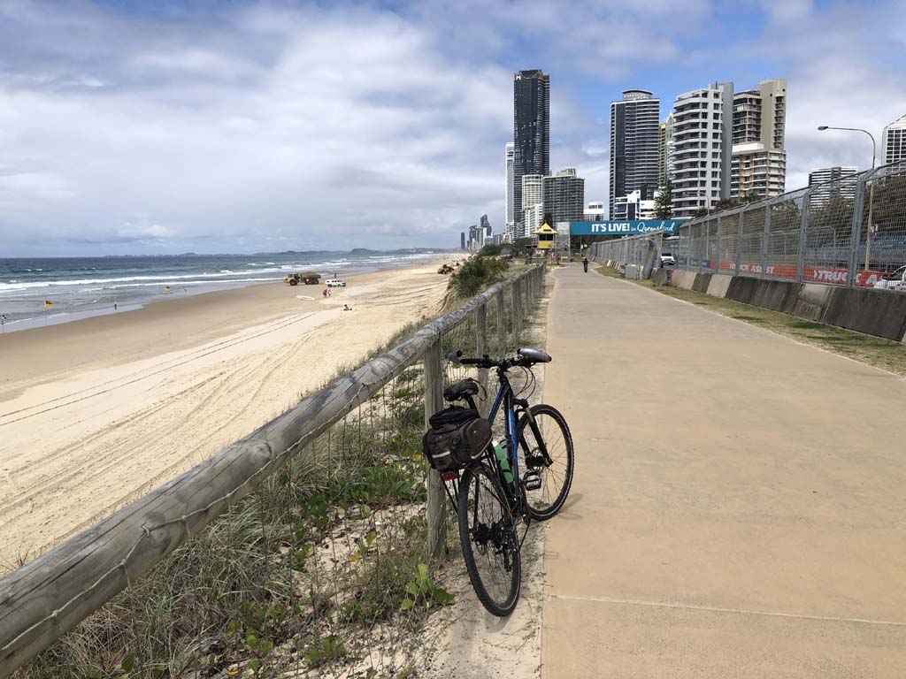 Home to Turnaround Pt down to Surfers via GC600 Park to Surfers to The Spit (both ends - twice) then back through GC600 Park back to Cafe Rockpool and finally back Home about 50+kms.