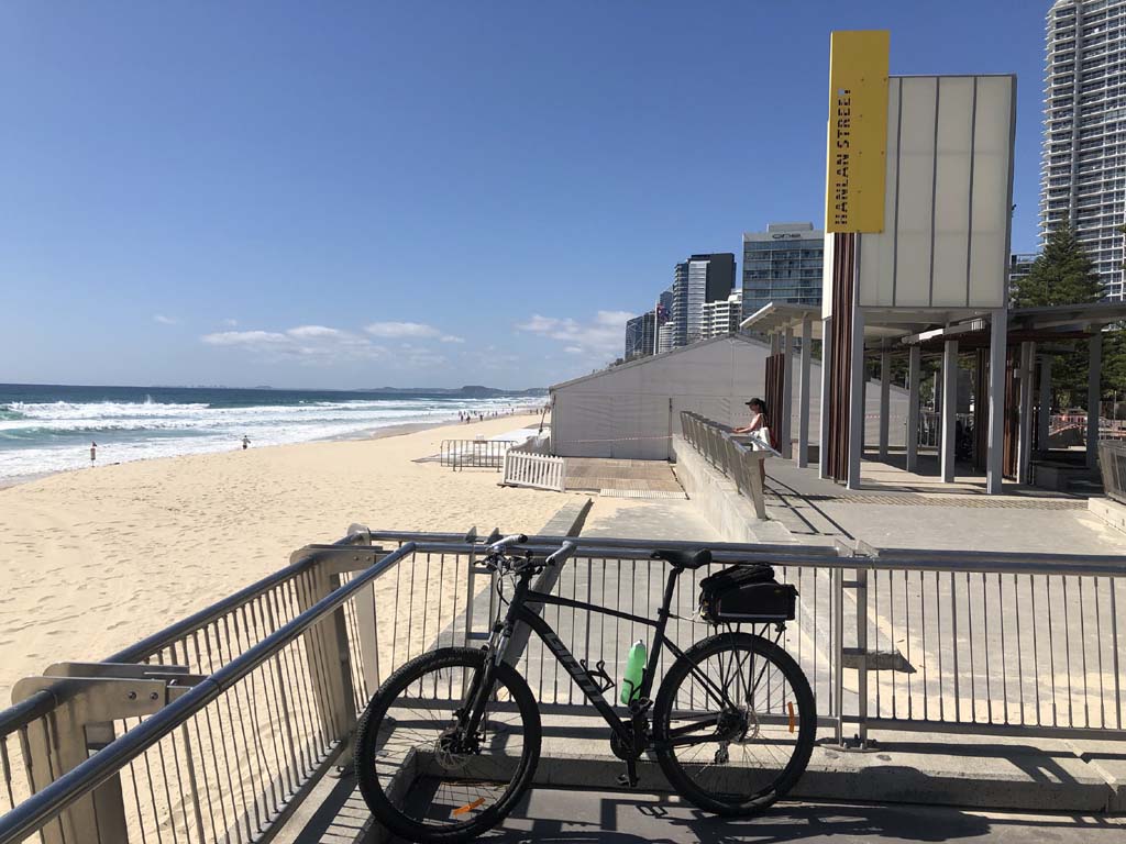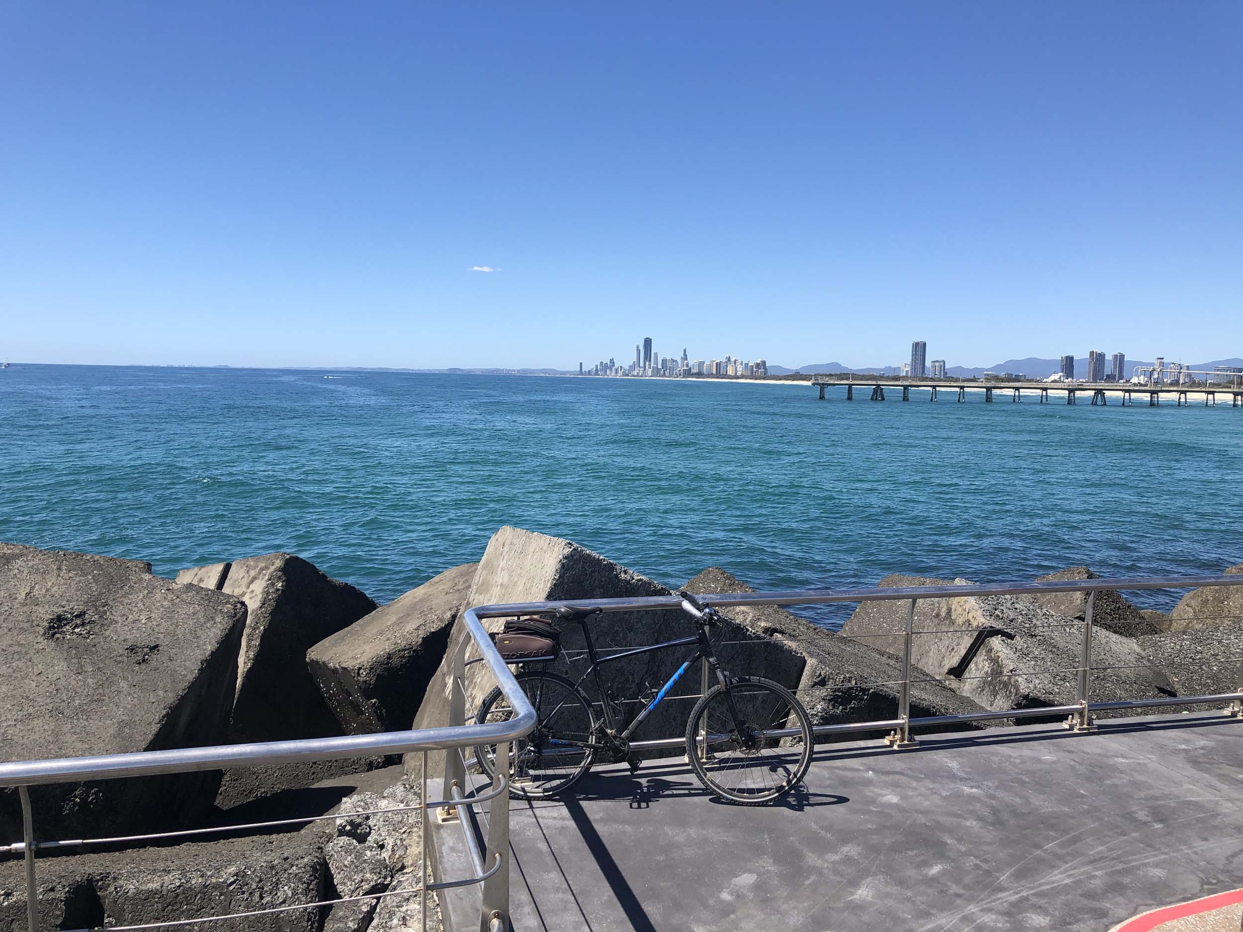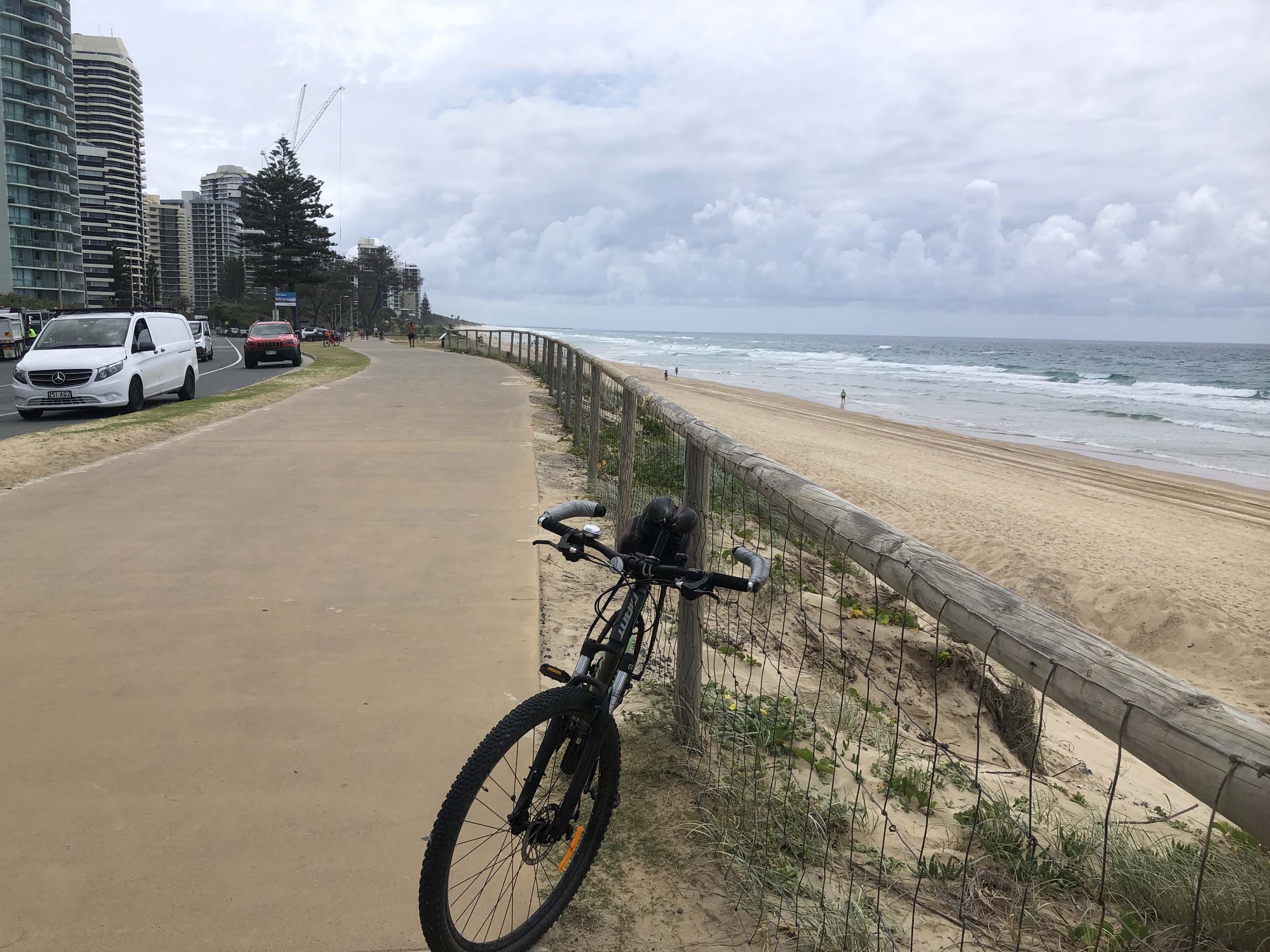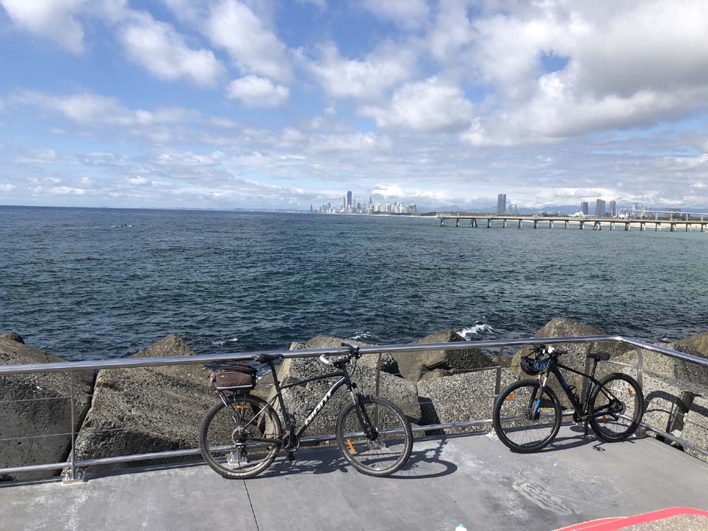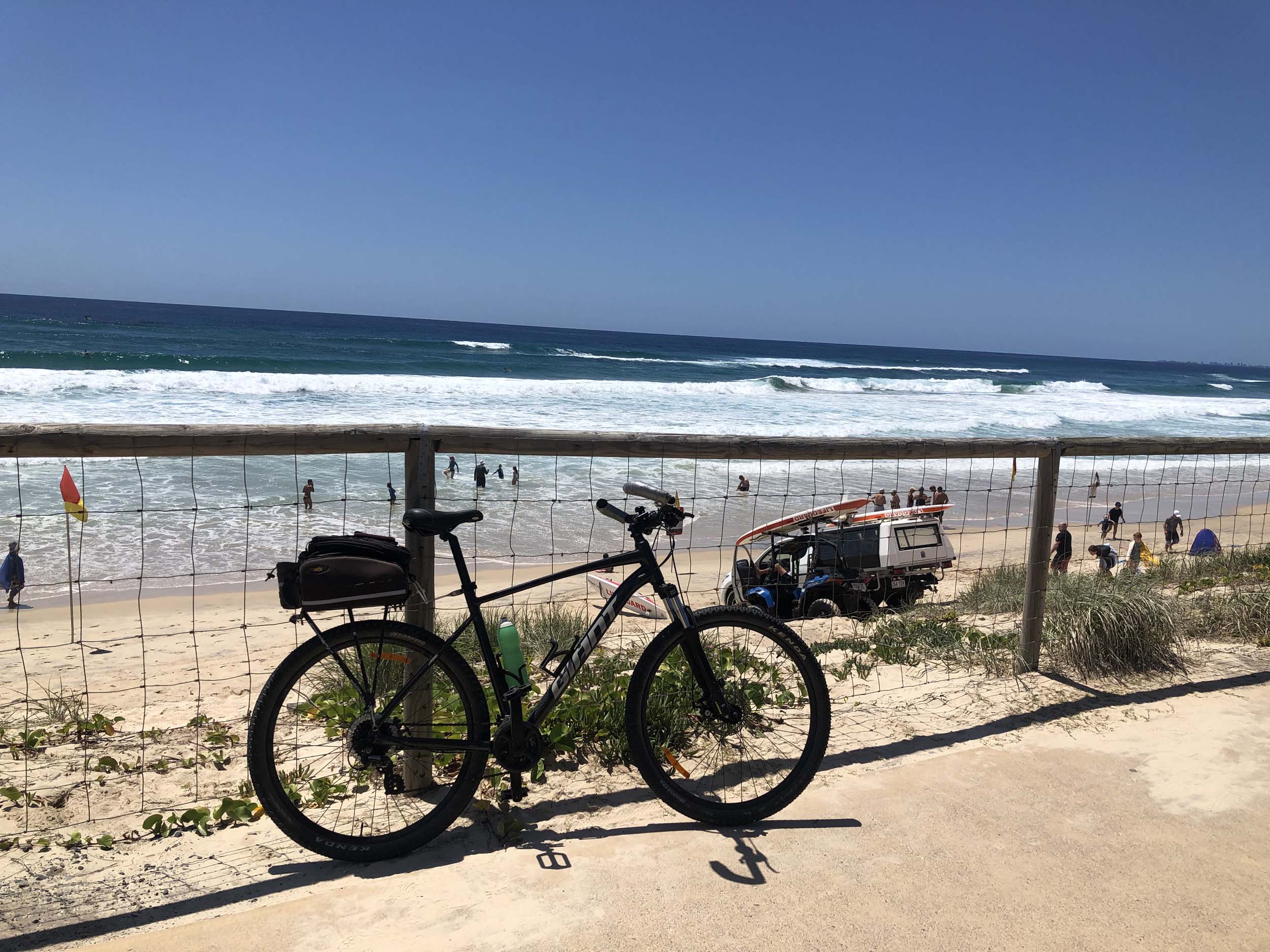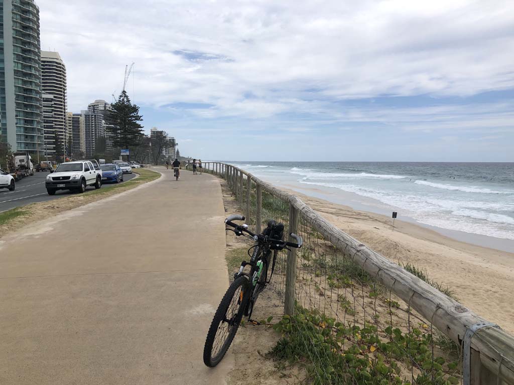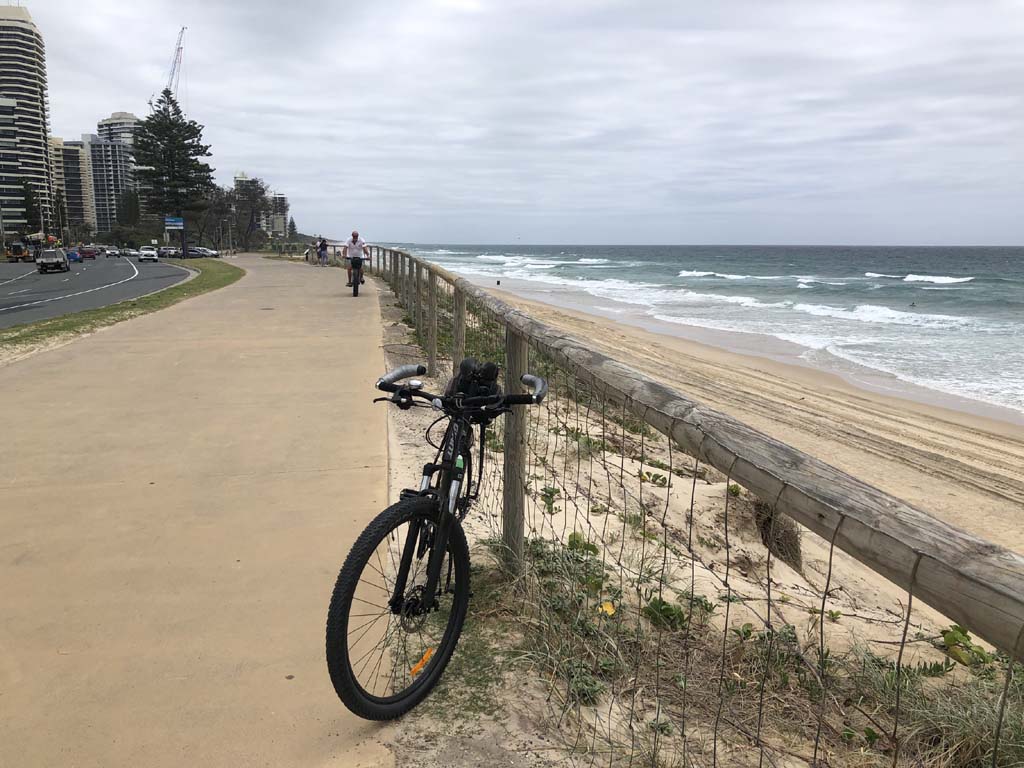 Home to Turnaround Pt down to Surfers via GC600 Park to Surfers to The Spit (both ends - twice) then back through GC600 Park back to Cafe Rockpool and finally back Home about 50+kms.