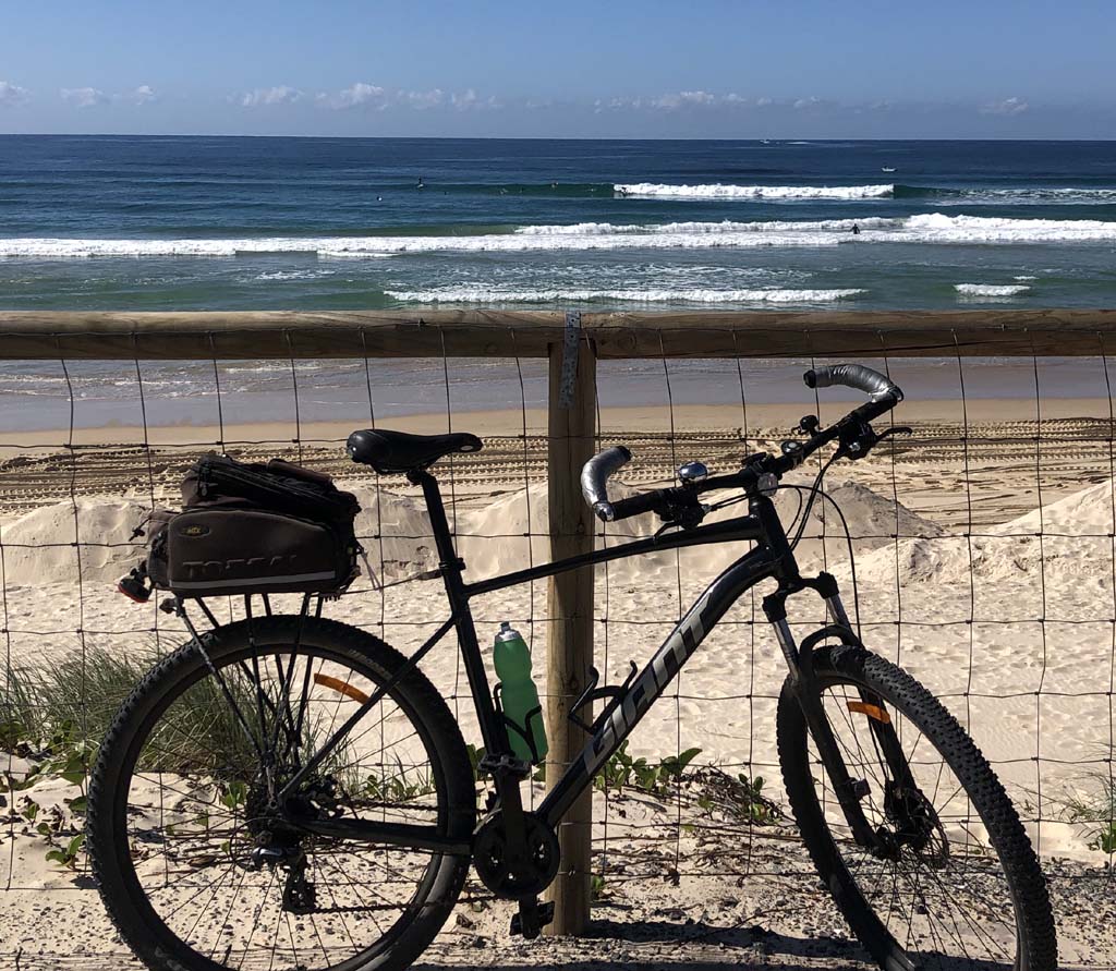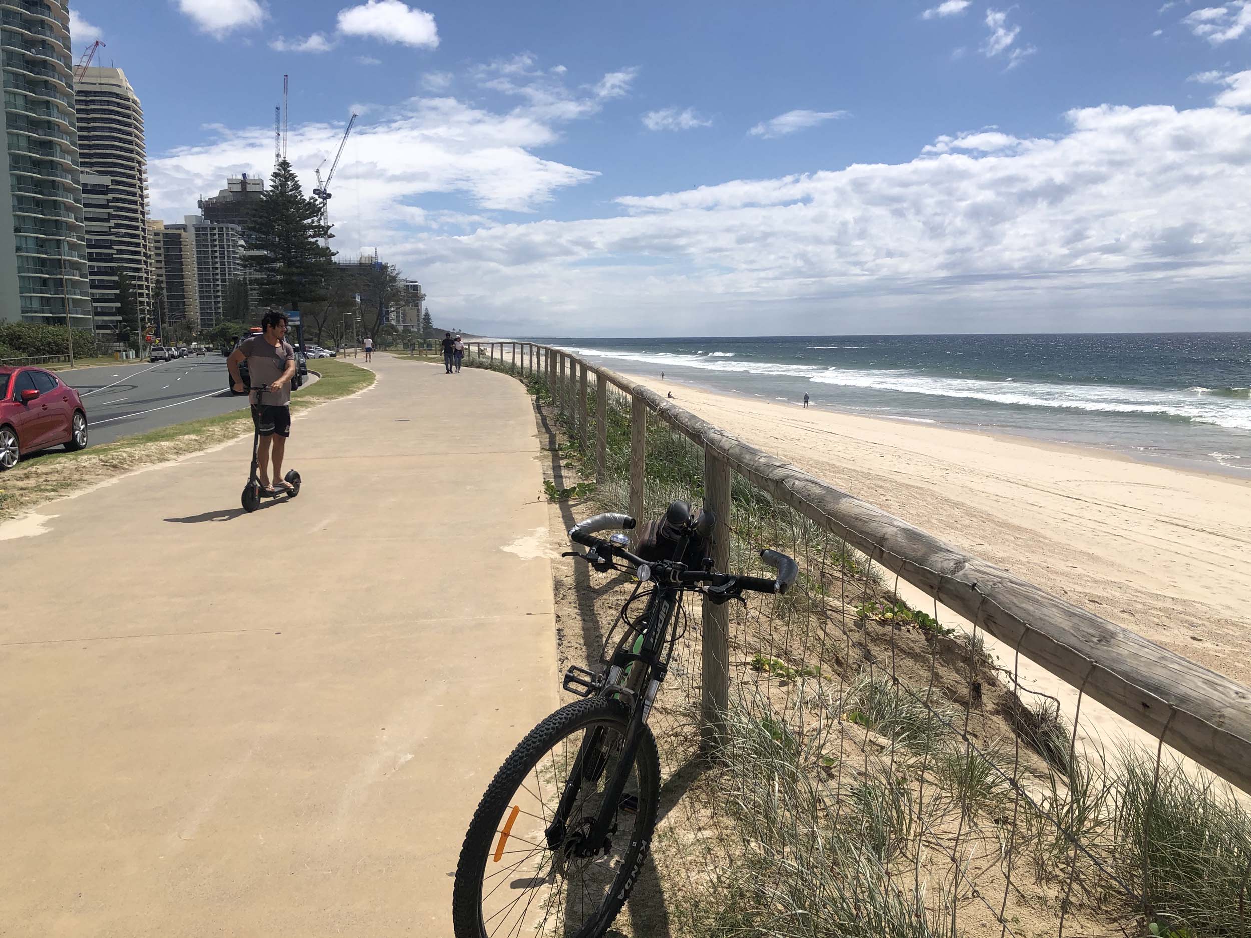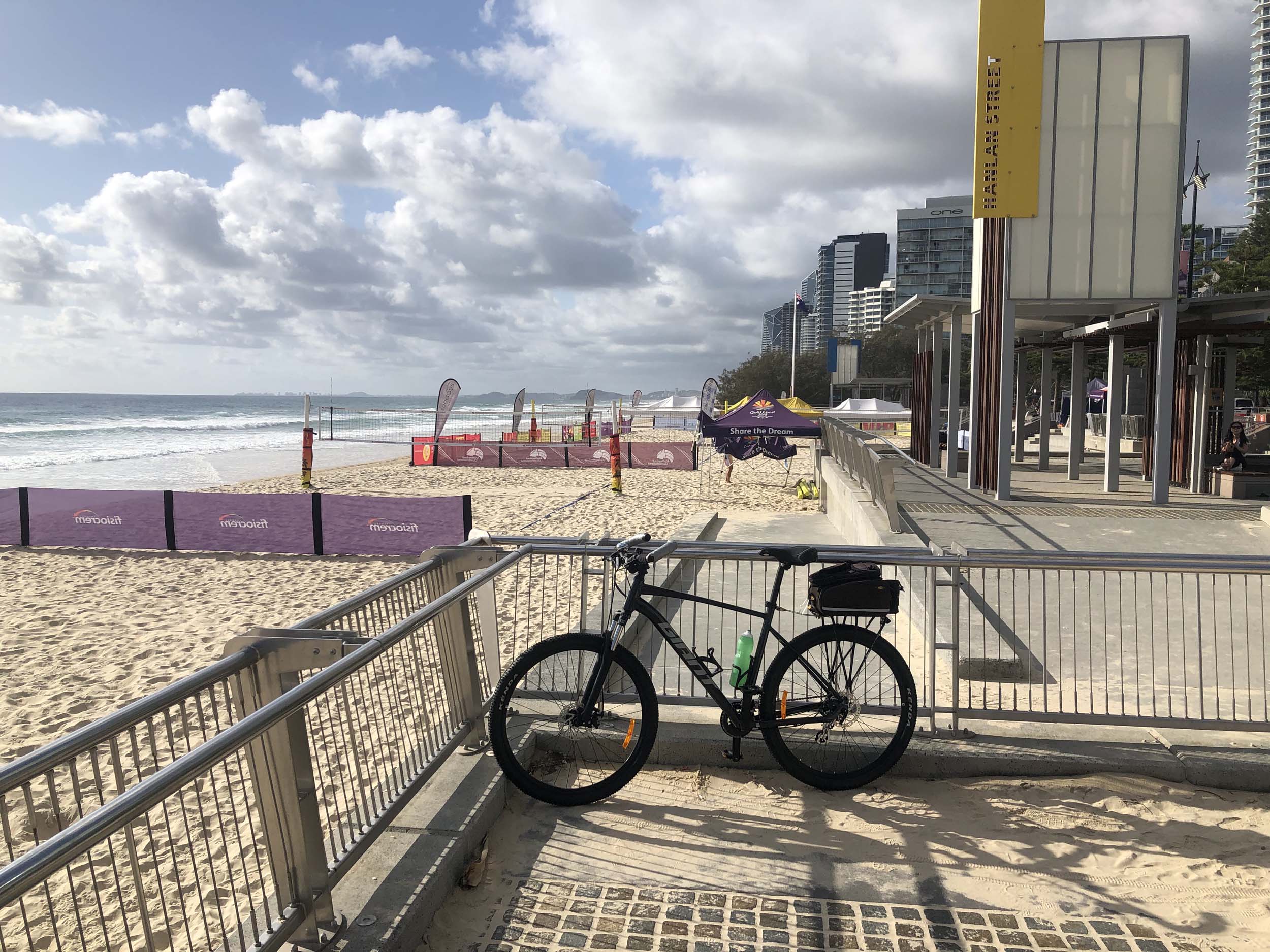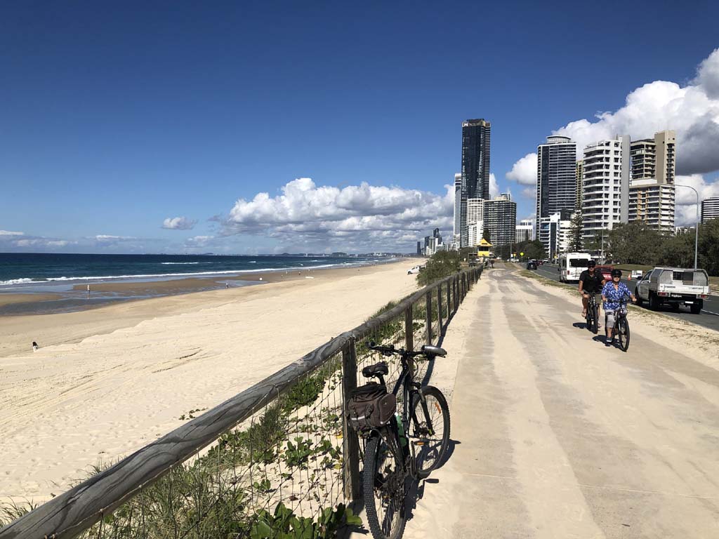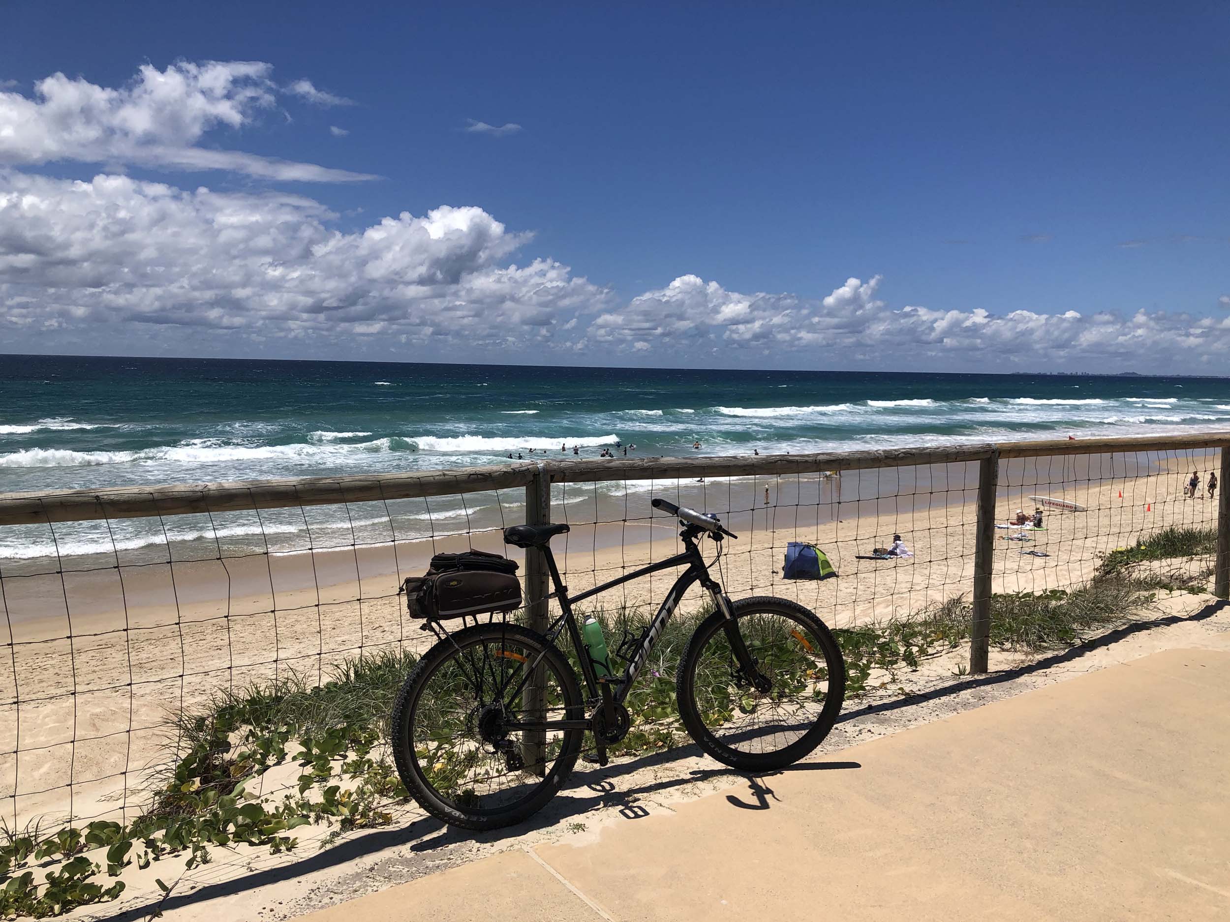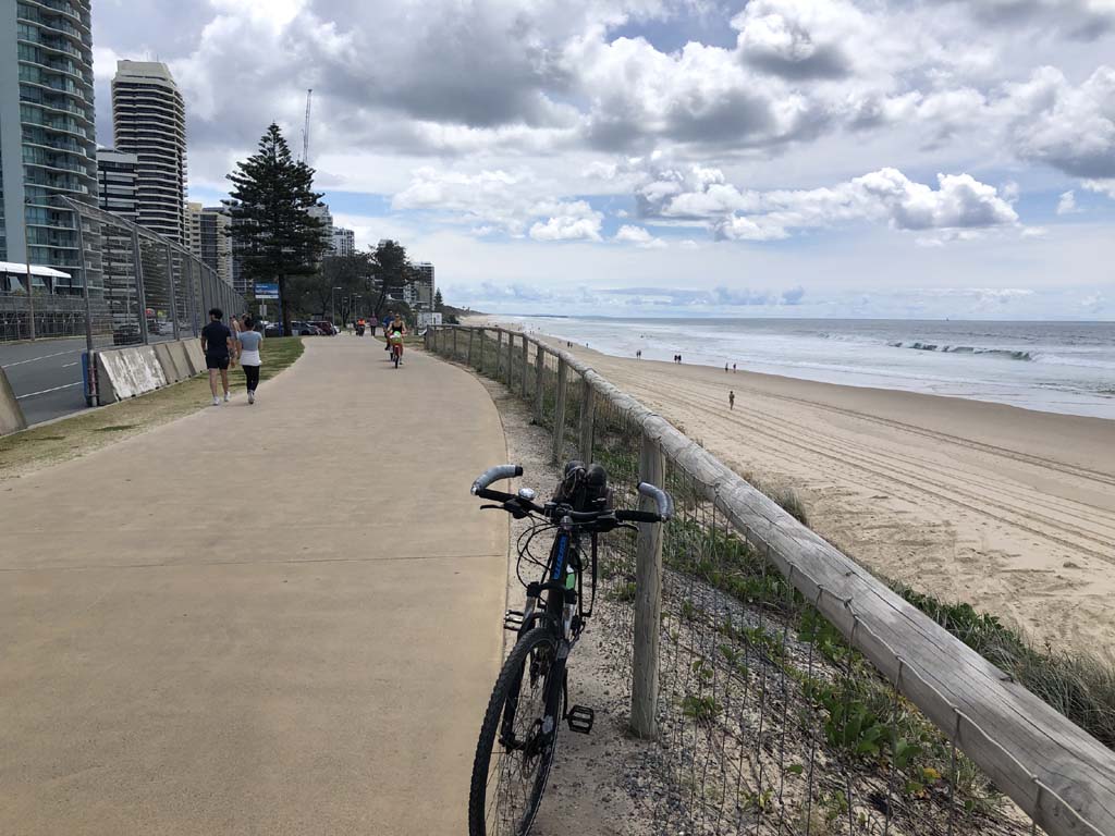 Home to Turnaround Pt down to Surfers via GC600 Park to Surfers to The Spit (both ends - twice) then back through GC600 Park back to Cafe Rockpool and finally back Home about 50+kms.