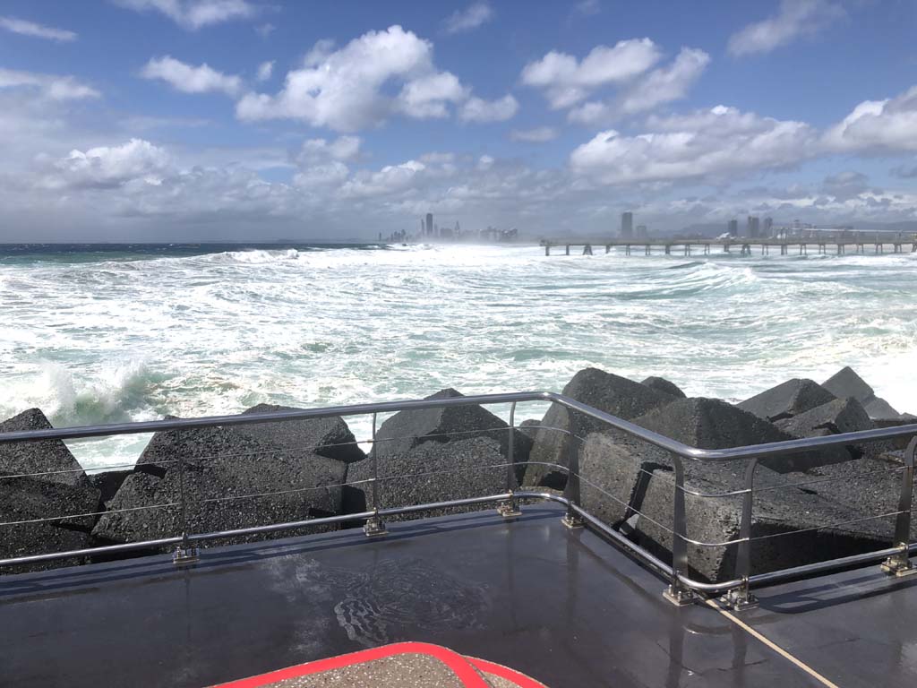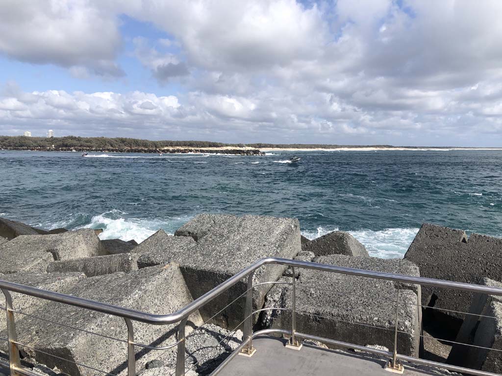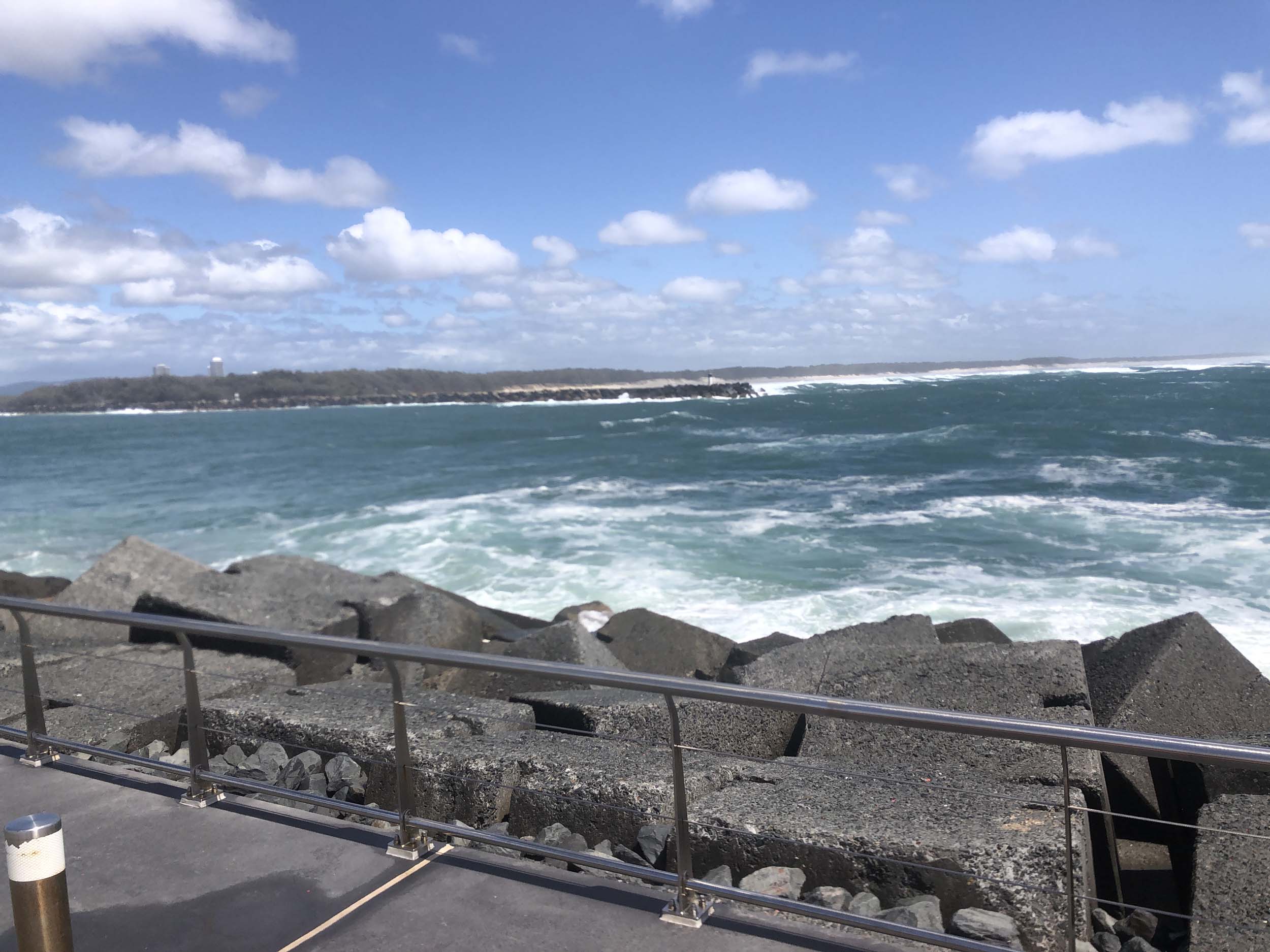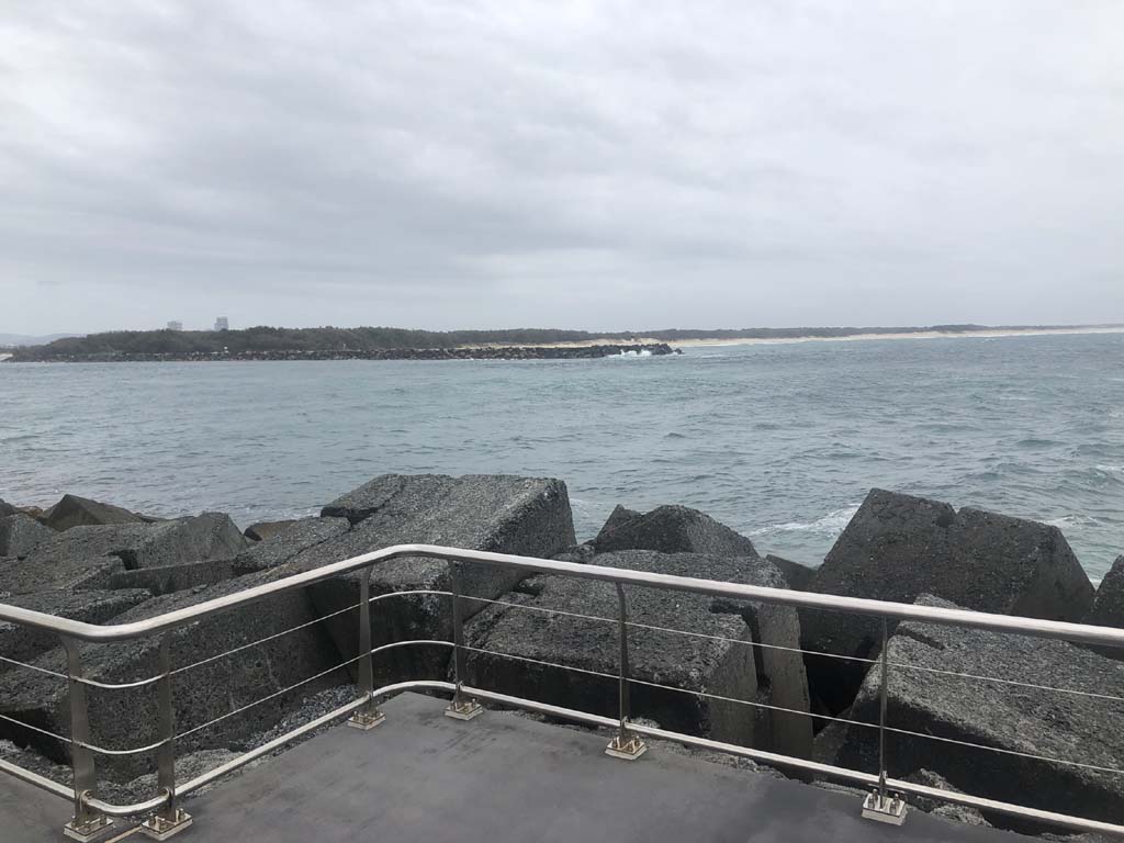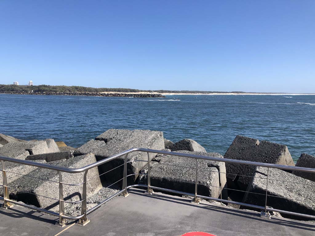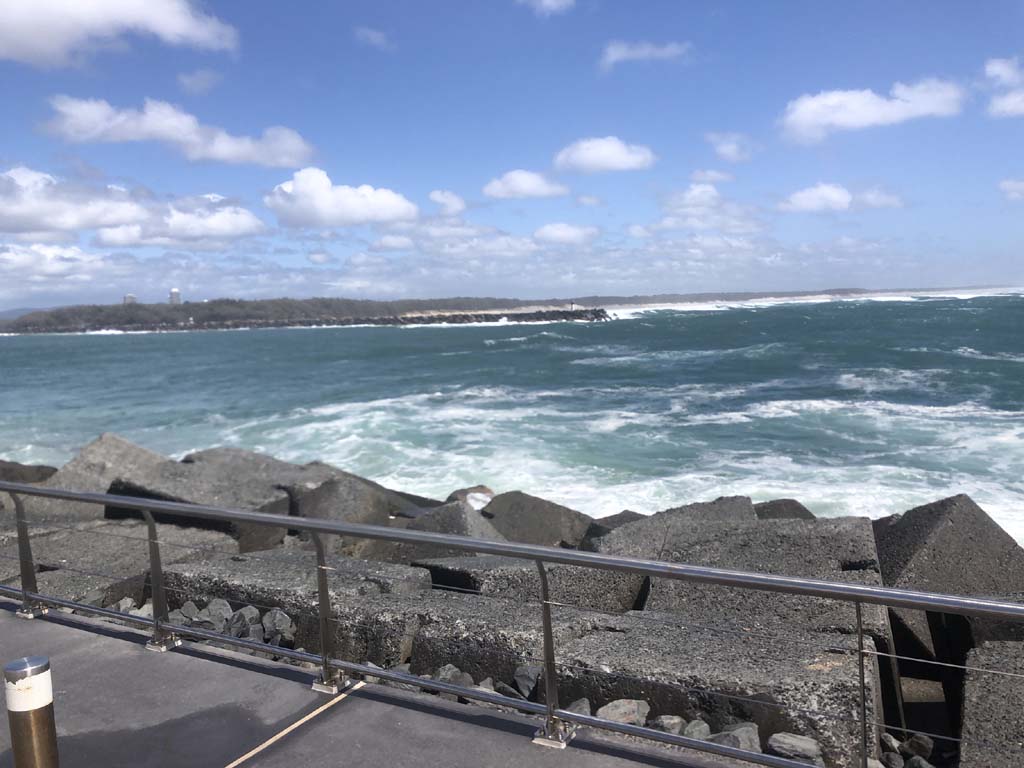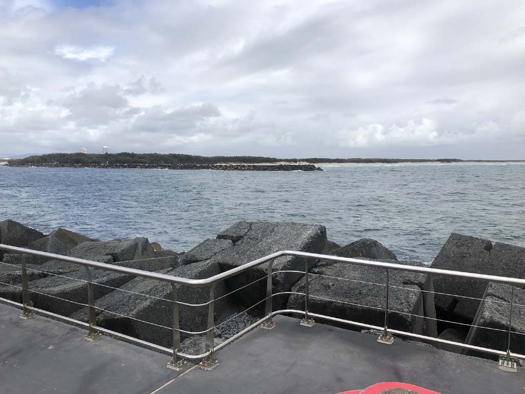 I left home at 9:05am, after going for a coffee and some shopping at Coles Lab Park. The breeze was quite strong from the East. The Broadwater was smooth, being protected by the land BUT the Coral Sea was rough as.