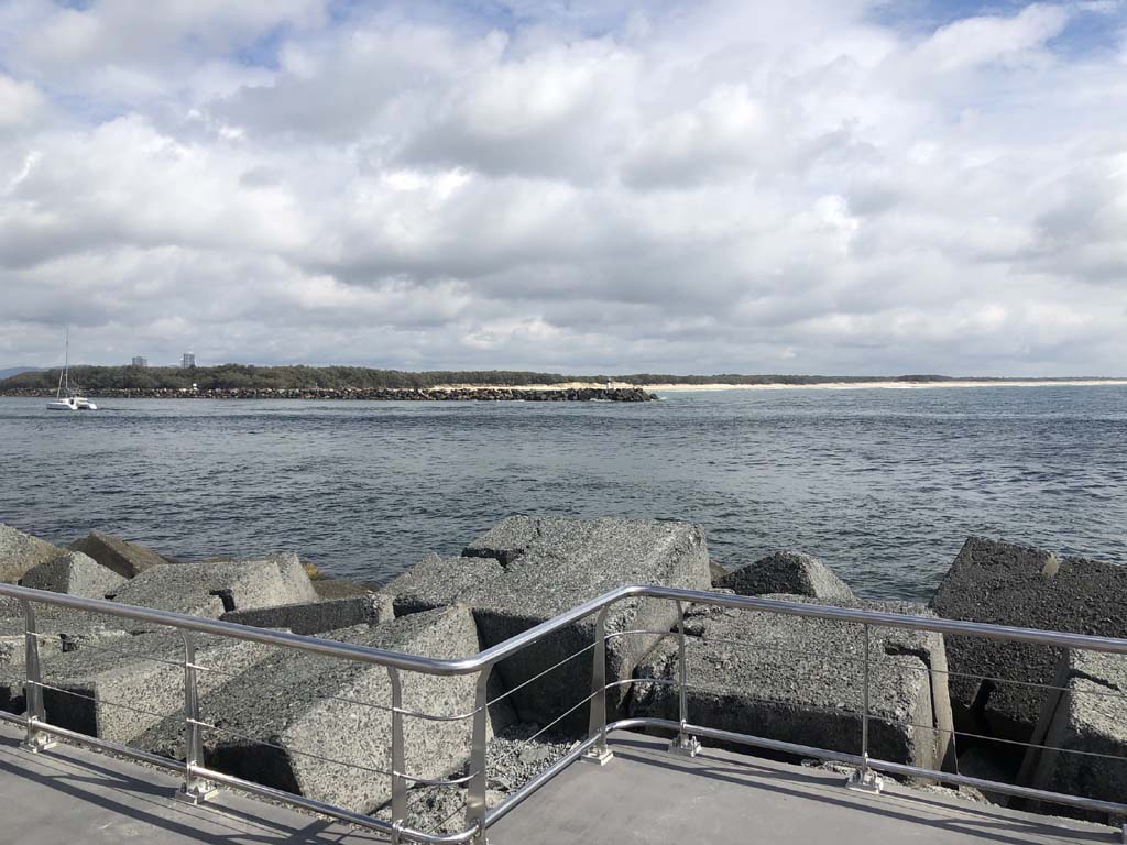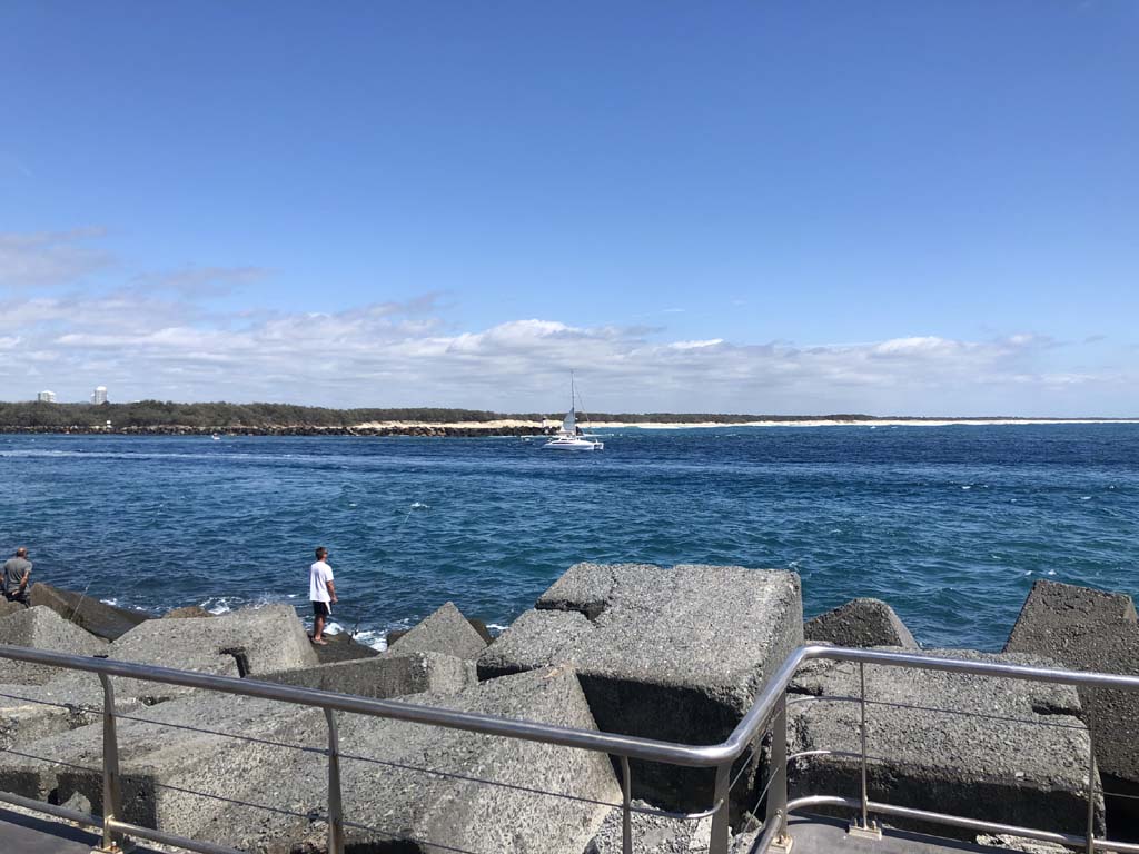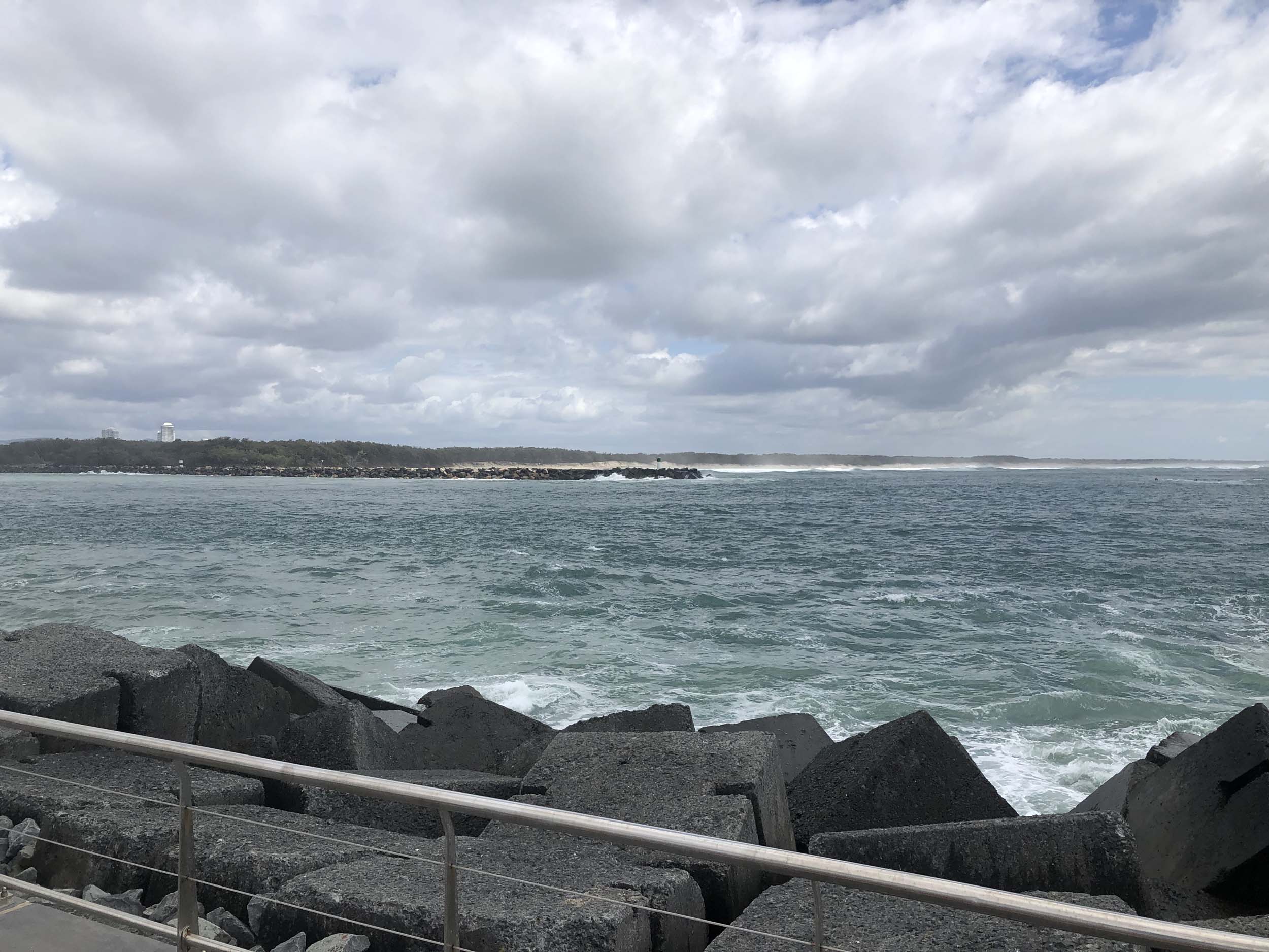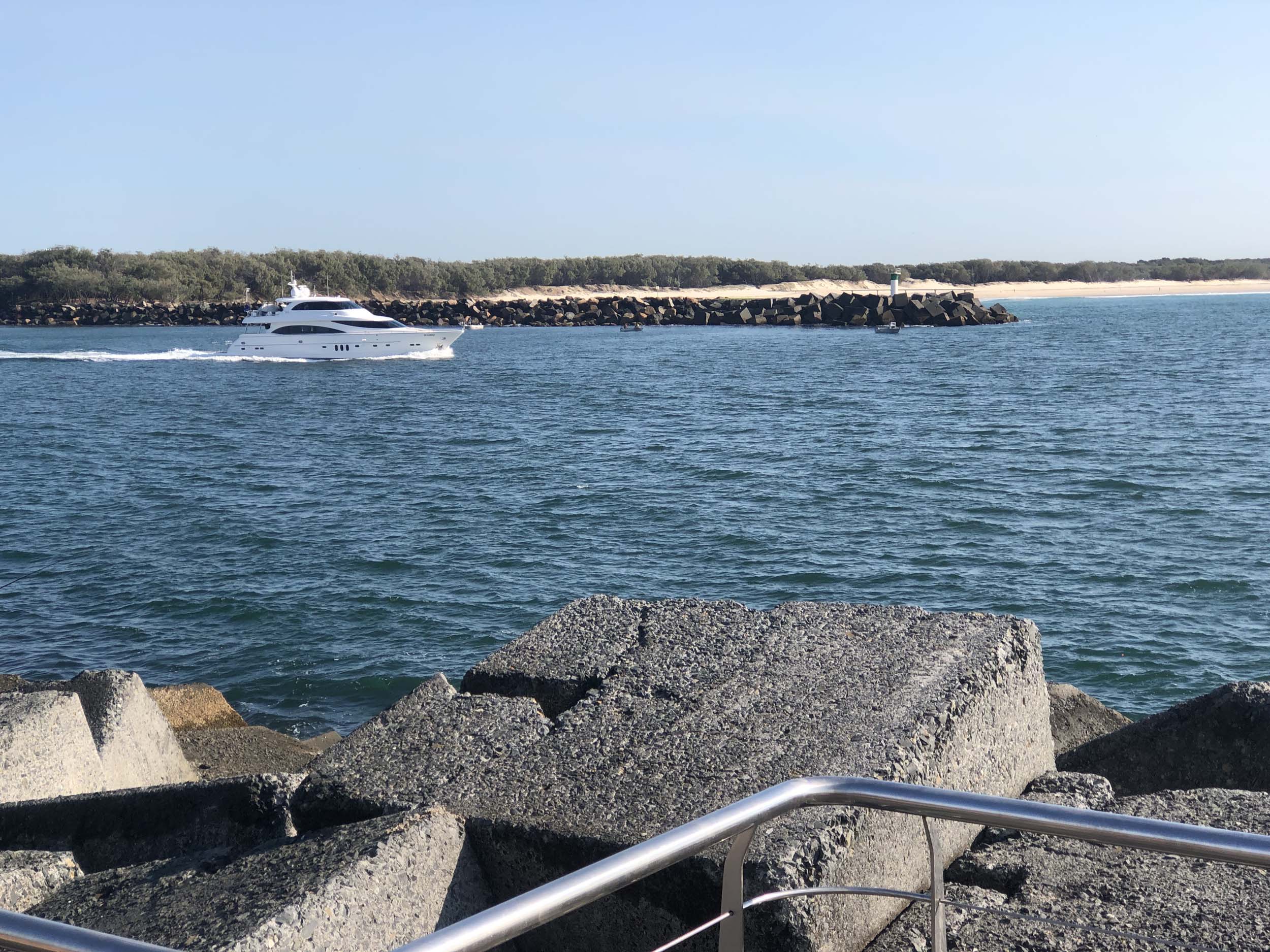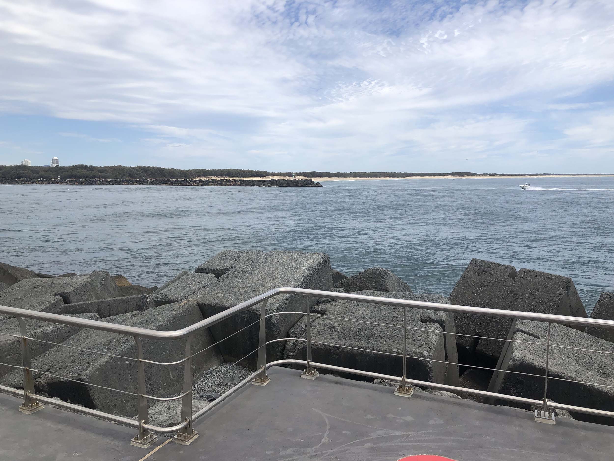 I left home at 9:05am, after going for a coffee and some shopping at Coles Lab Park. The breeze was quite strong from the East. The Broadwater was smooth, being protected by the land BUT the Coral Sea was rough as.