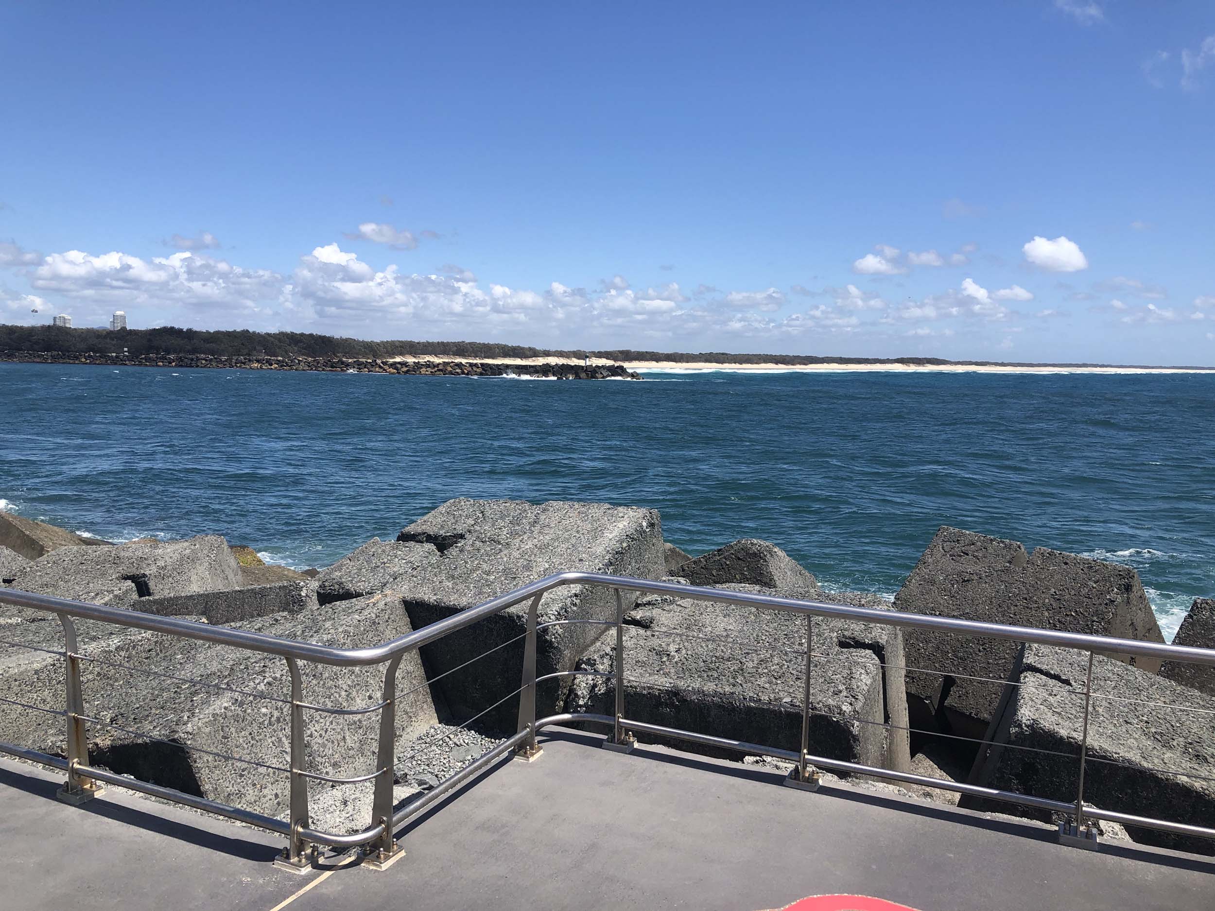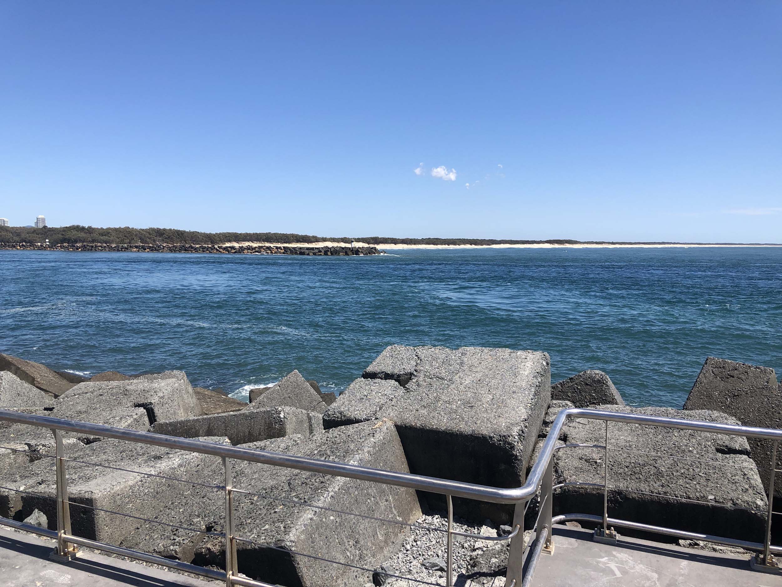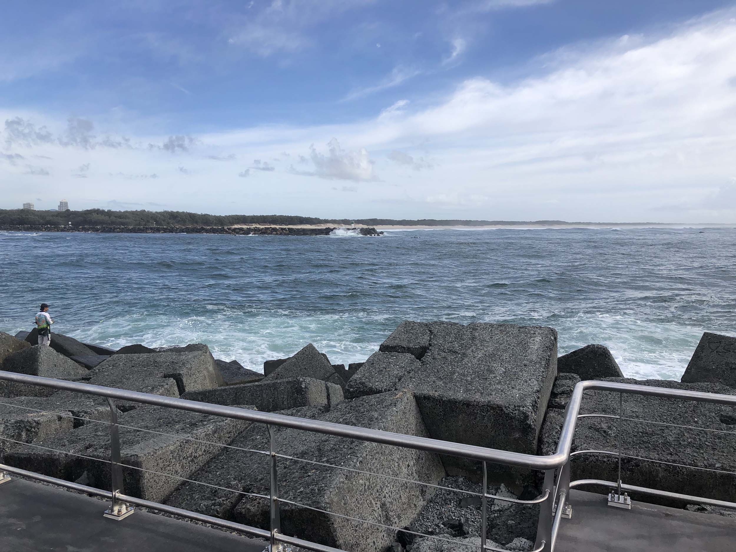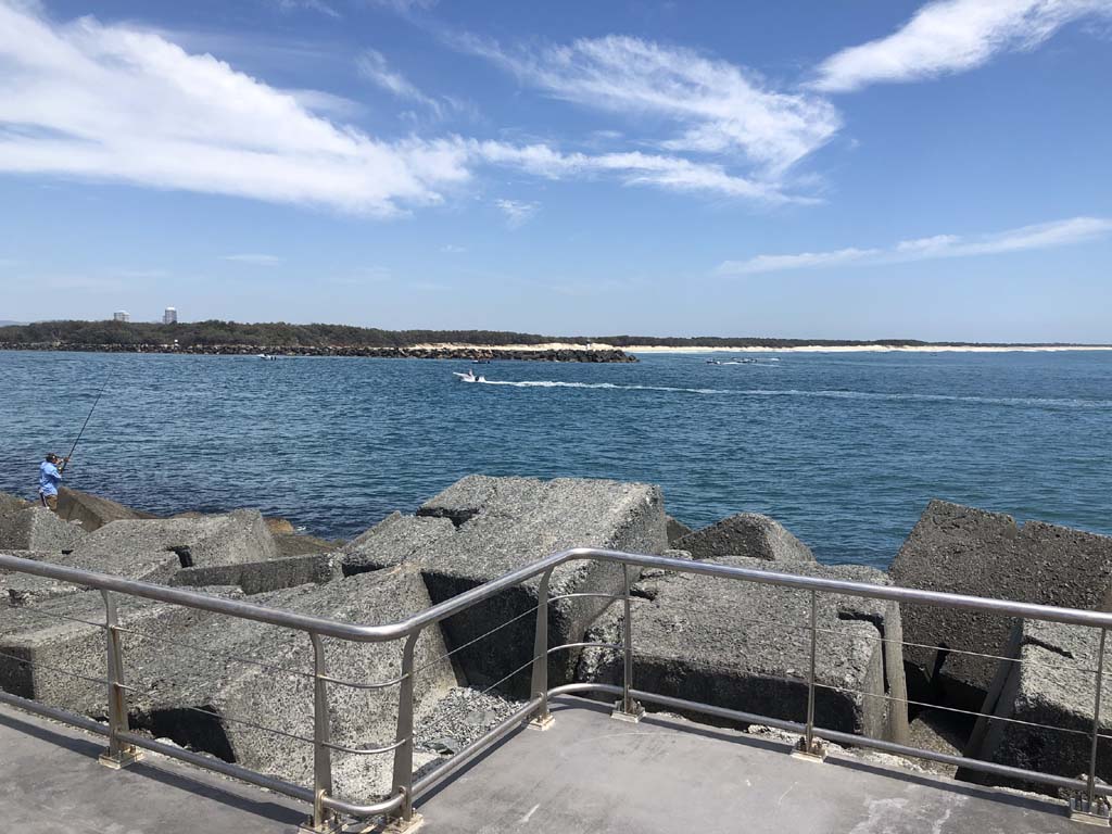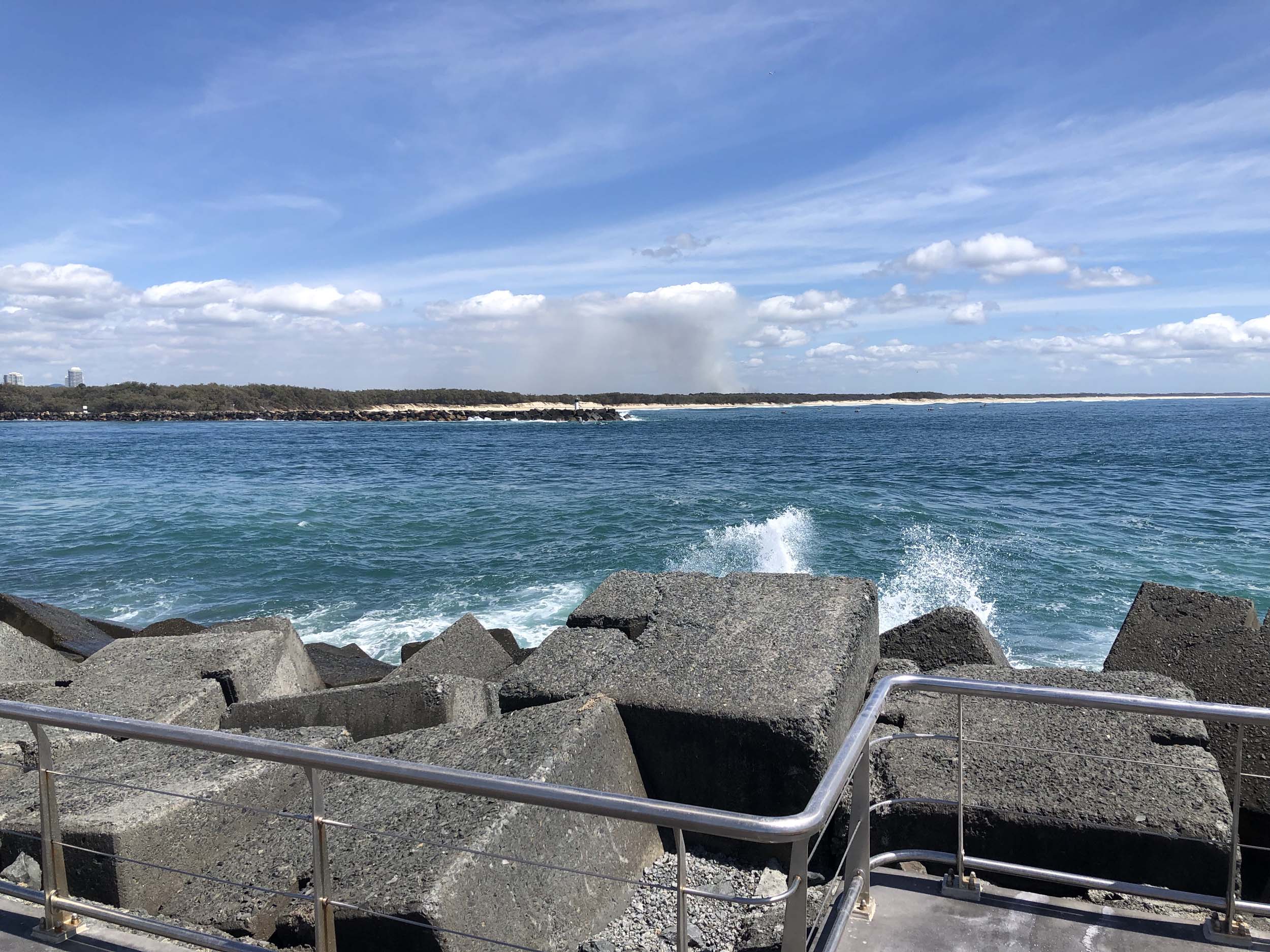 I left home at 9:05am, after going for a coffee and some shopping at Coles Lab Park. The breeze was quite strong from the East. The Broadwater was smooth, being protected by the land BUT the Coral Sea was rough as.