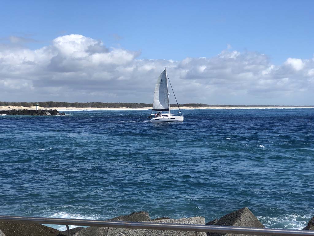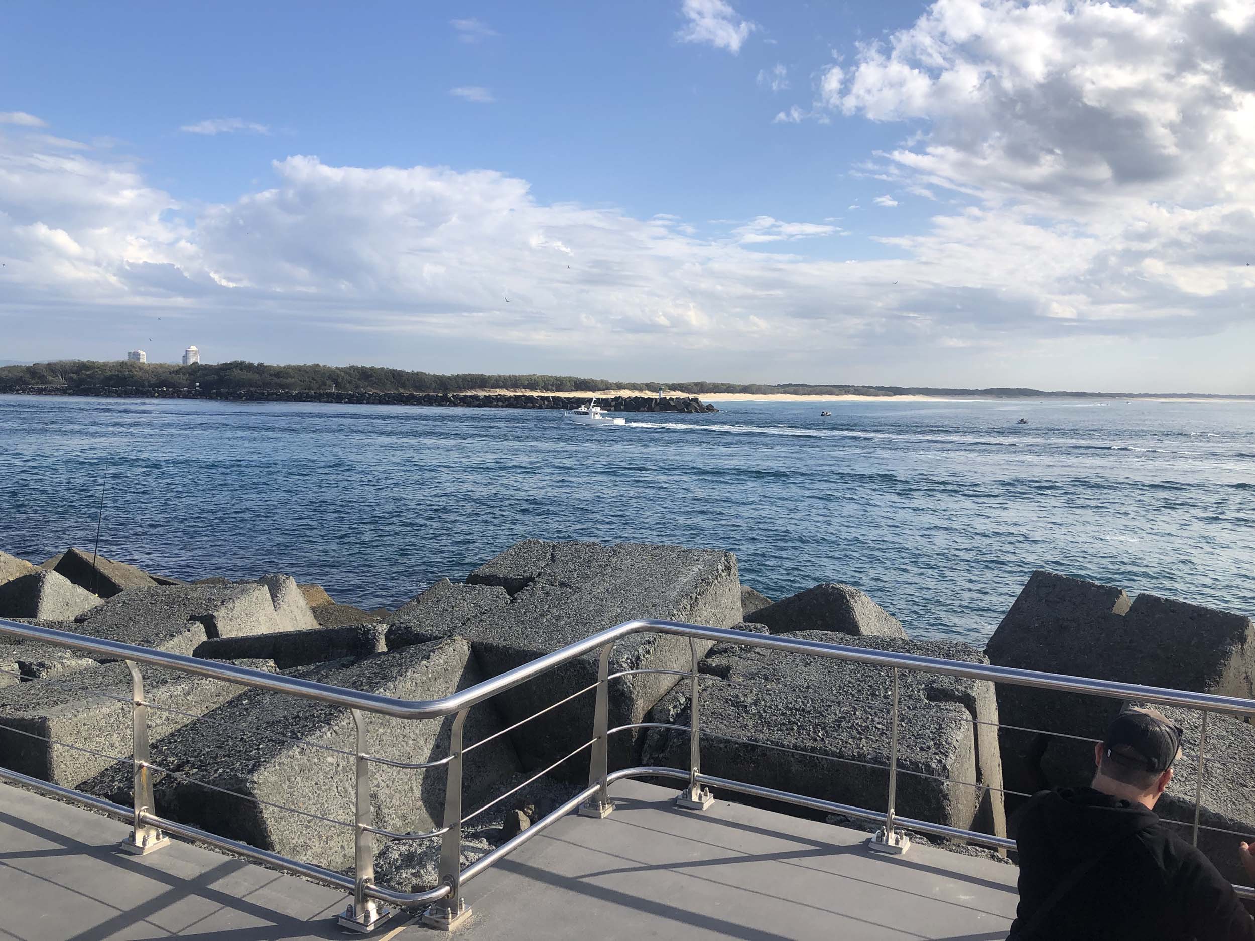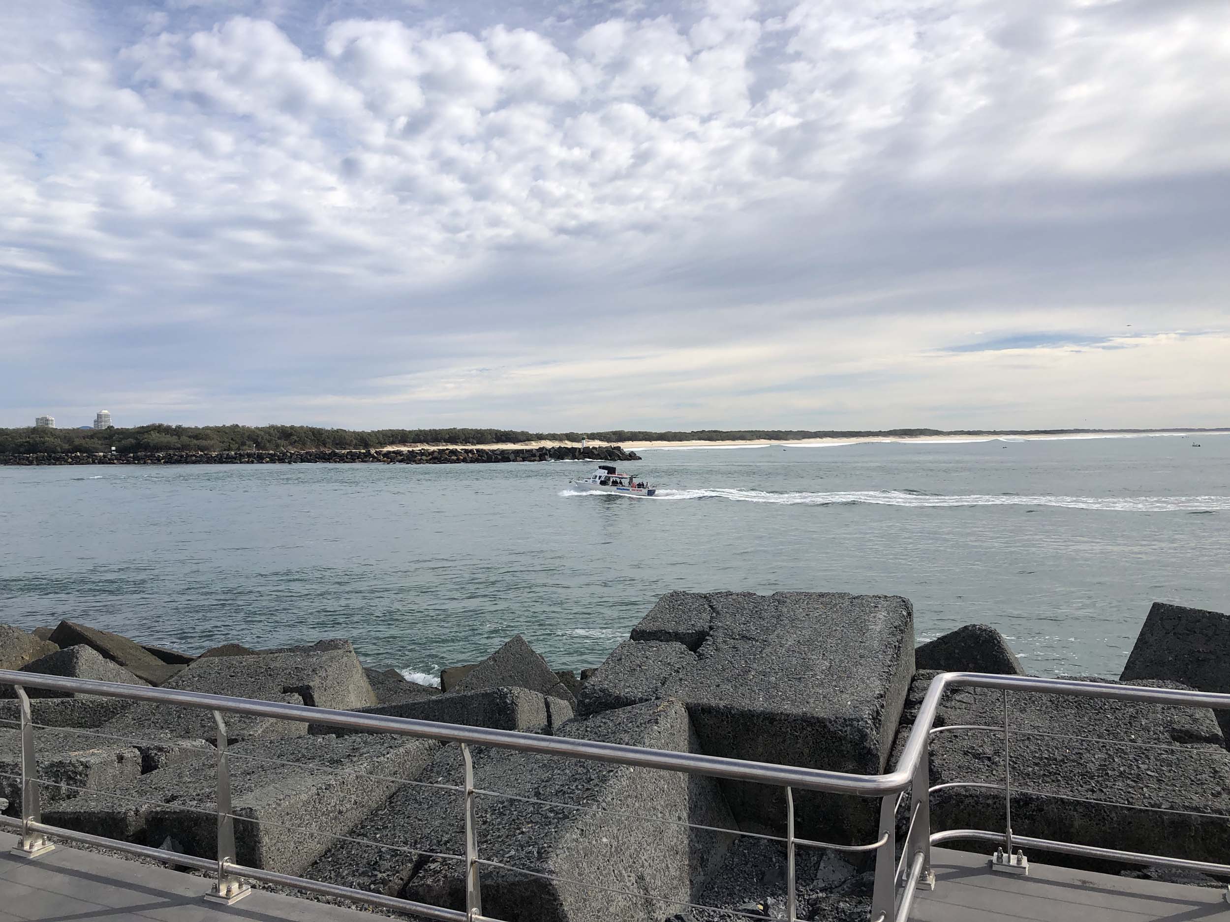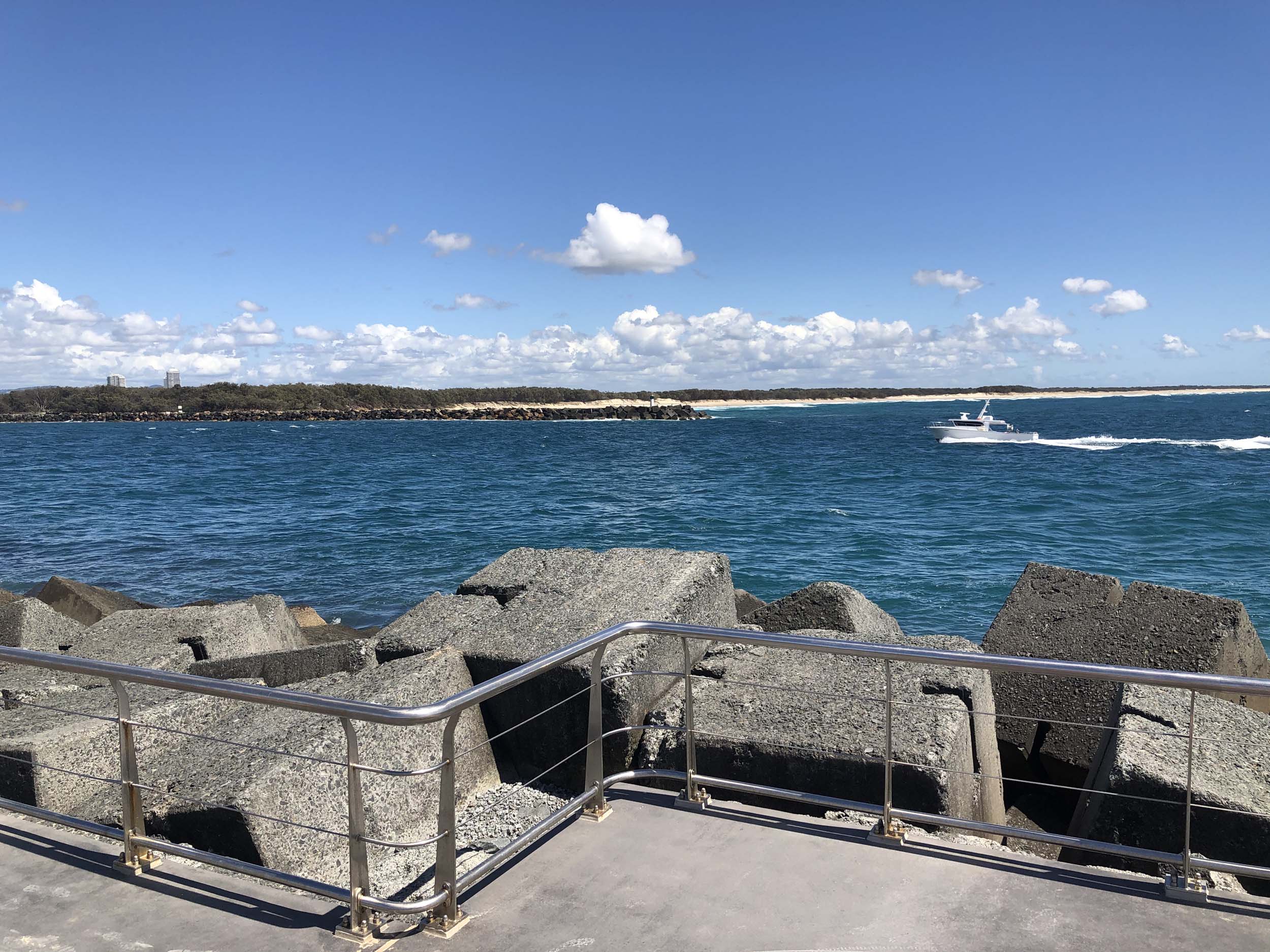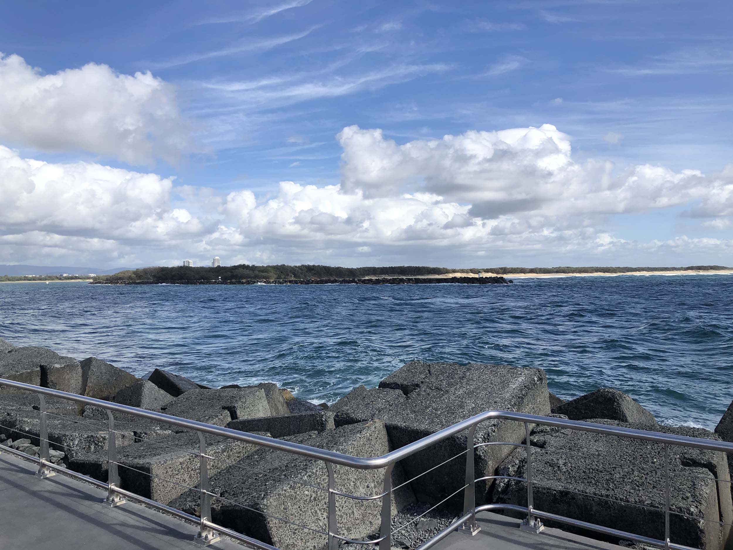 I left home at 9:05am, after going for a coffee and some shopping at Coles Lab Park. The breeze was quite strong from the East. The Broadwater was smooth, being protected by the land BUT the Coral Sea was rough as.