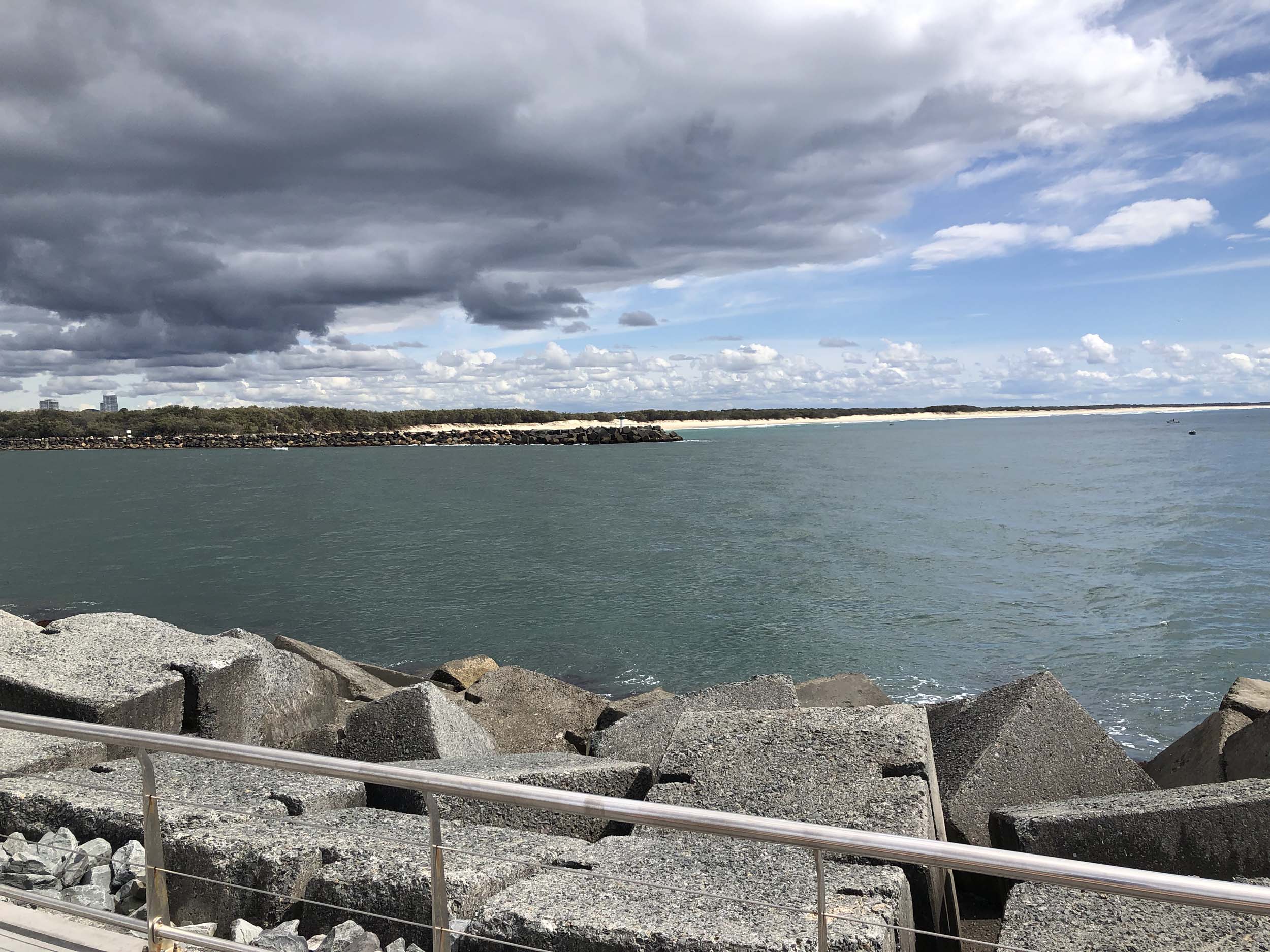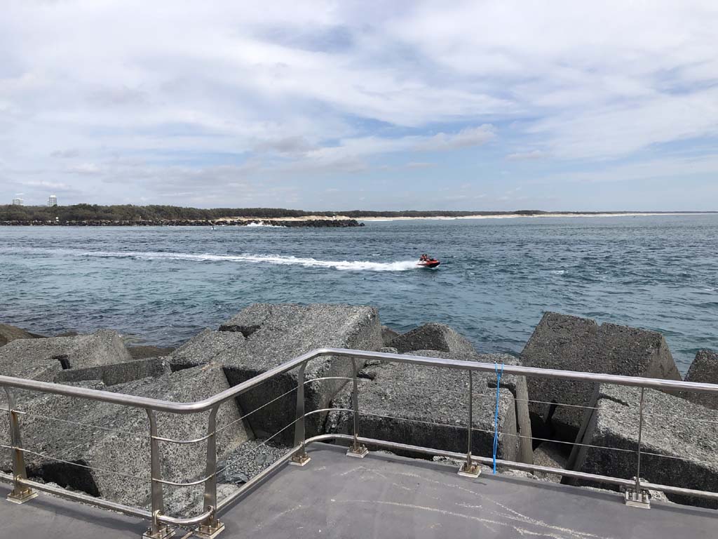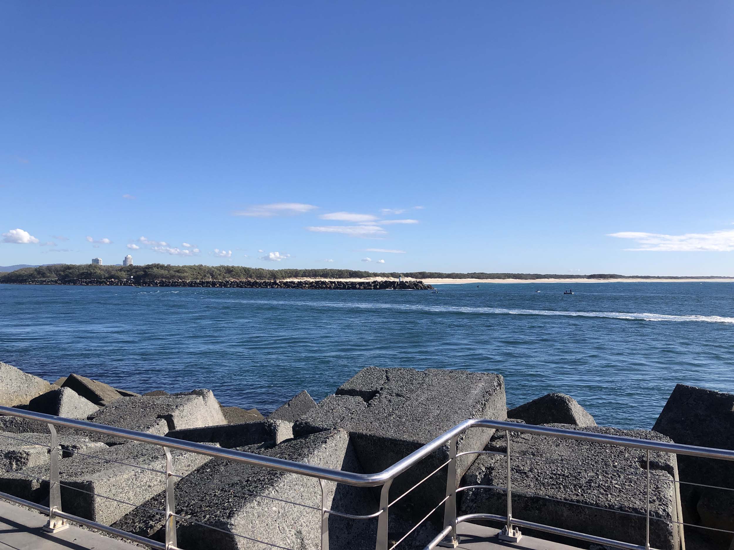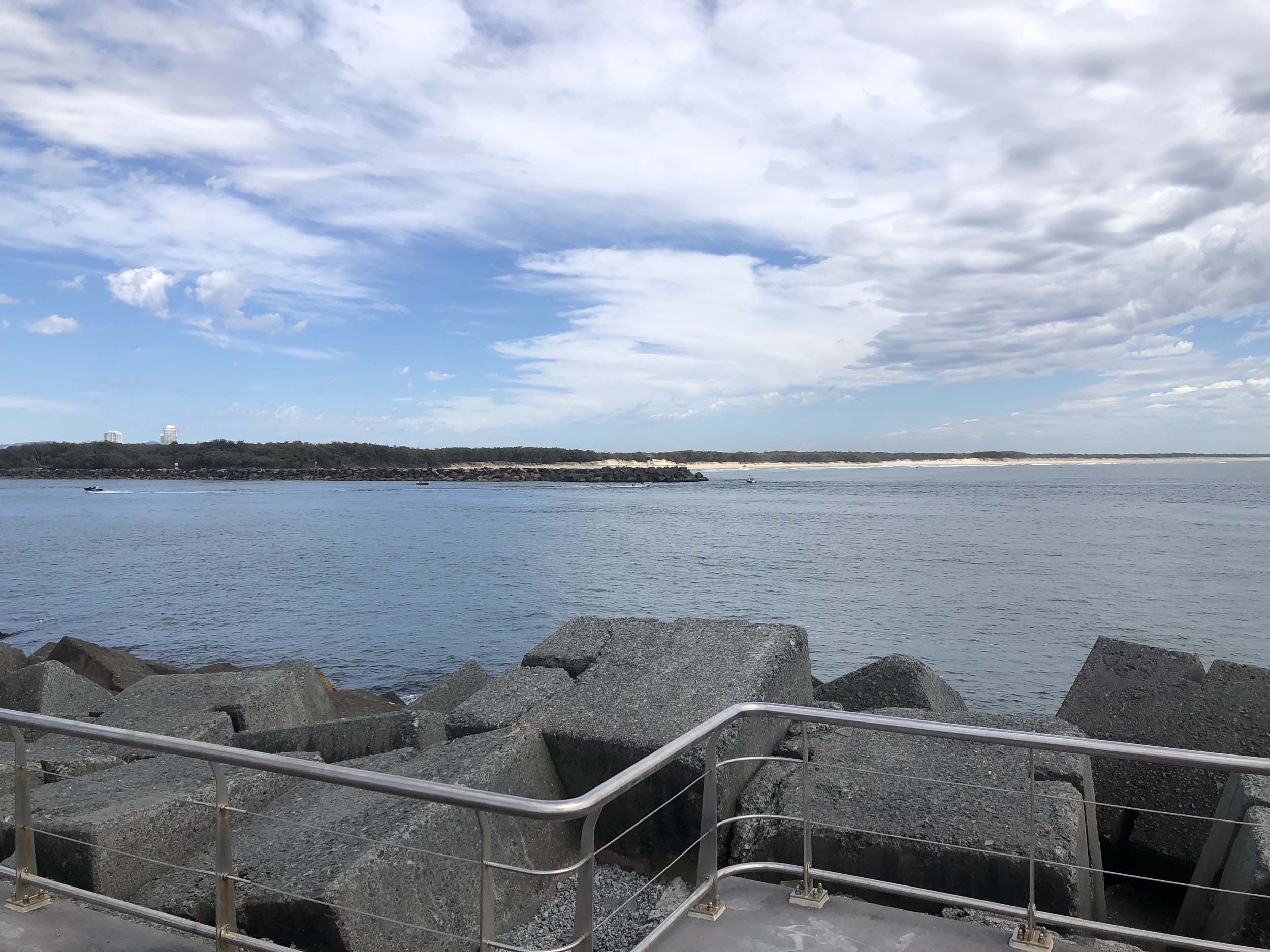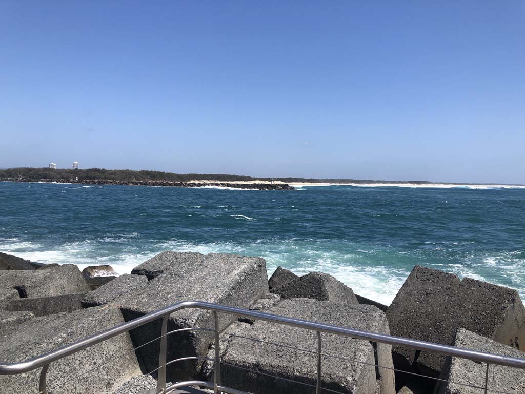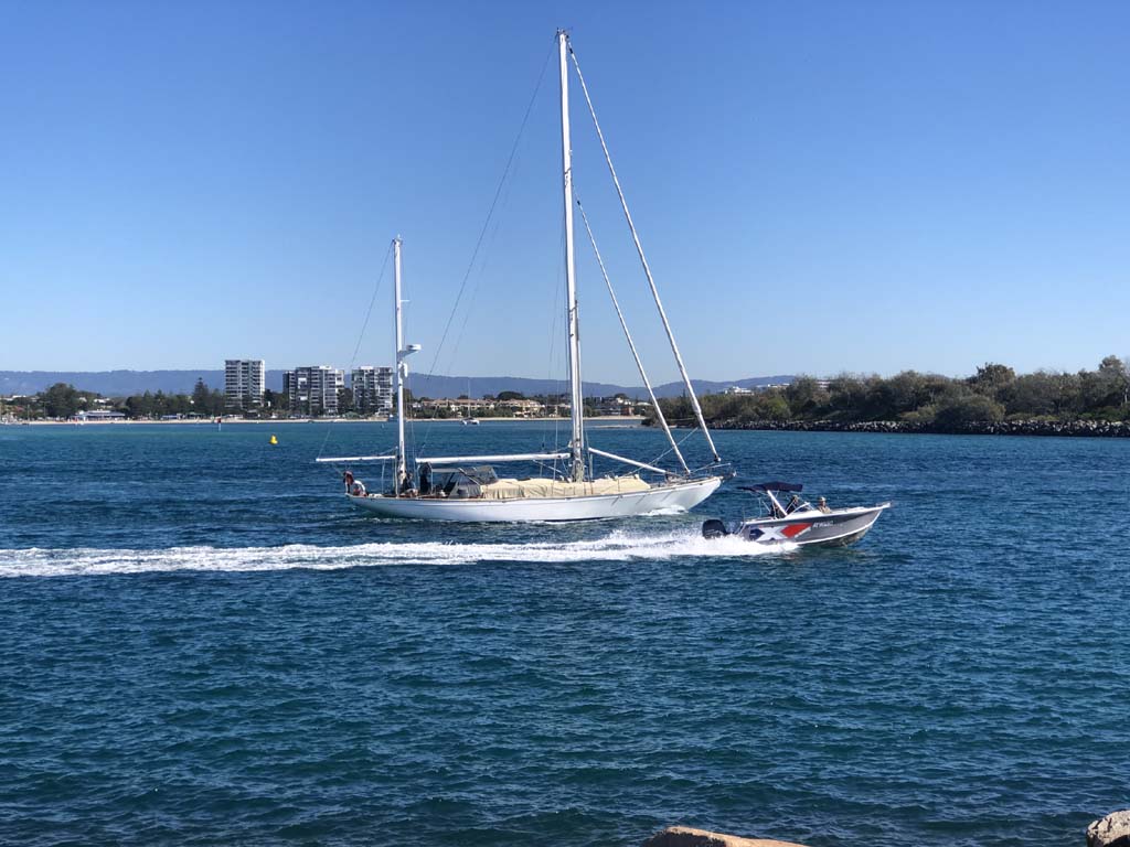 I left home at 9:05am, after going for a coffee and some shopping at Coles Lab Park. The breeze was quite strong from the East. The Broadwater was smooth, being protected by the land BUT the Coral Sea was rough as.