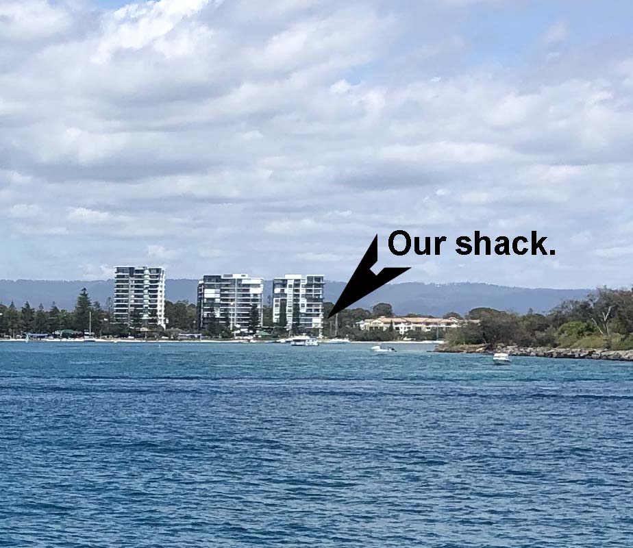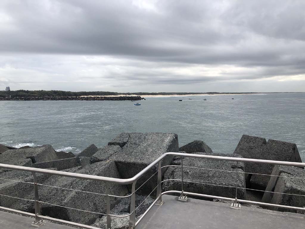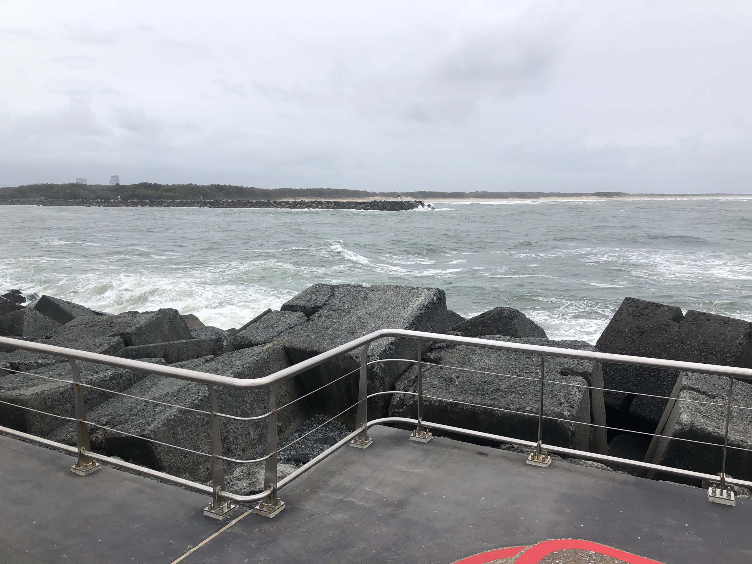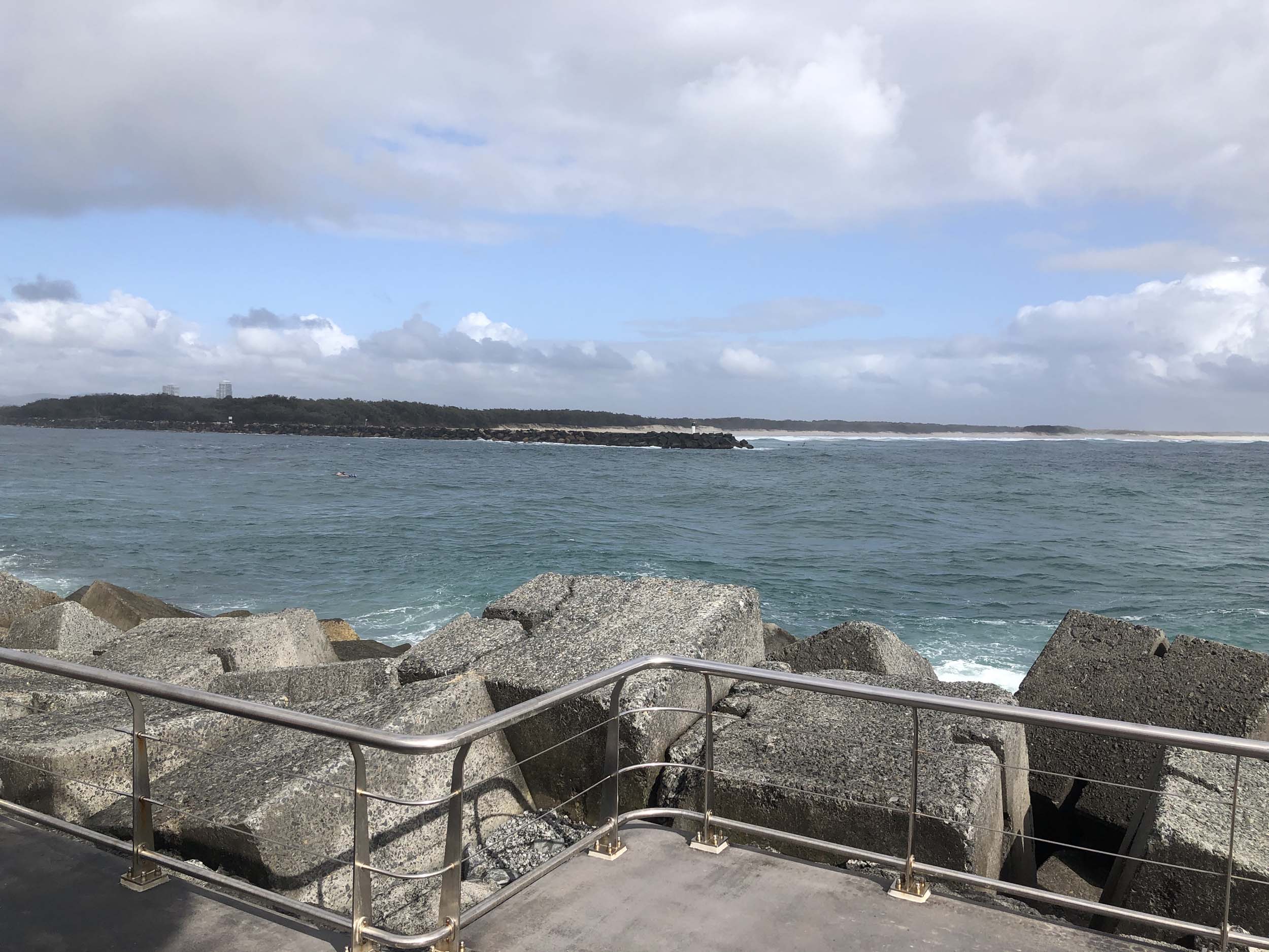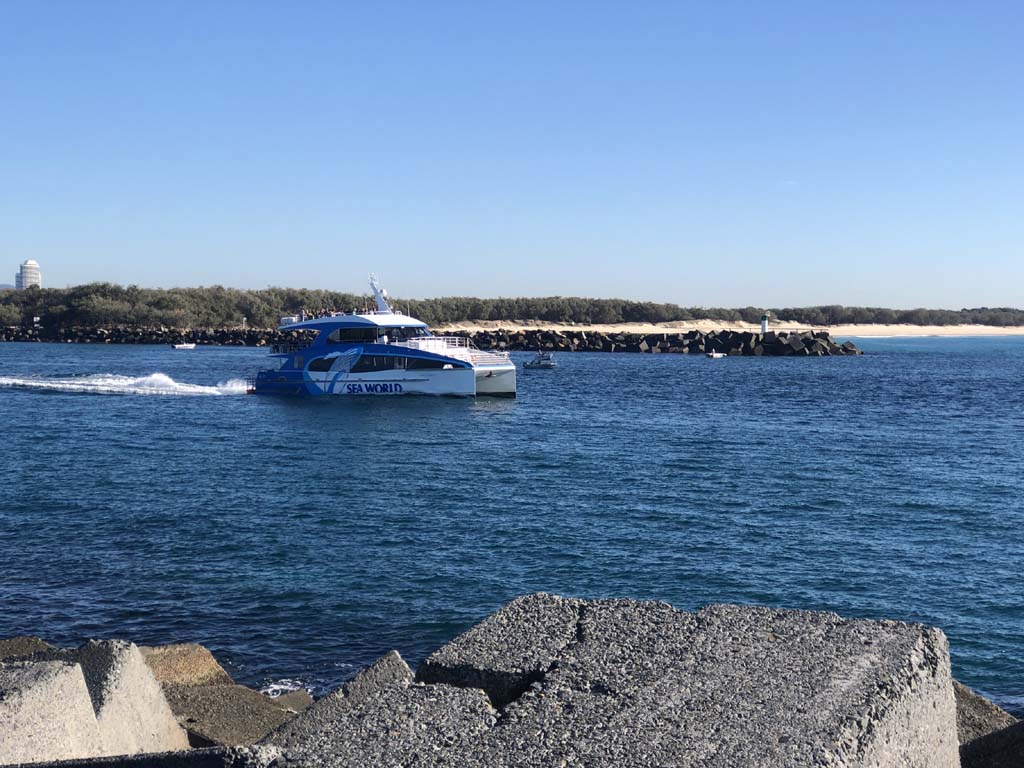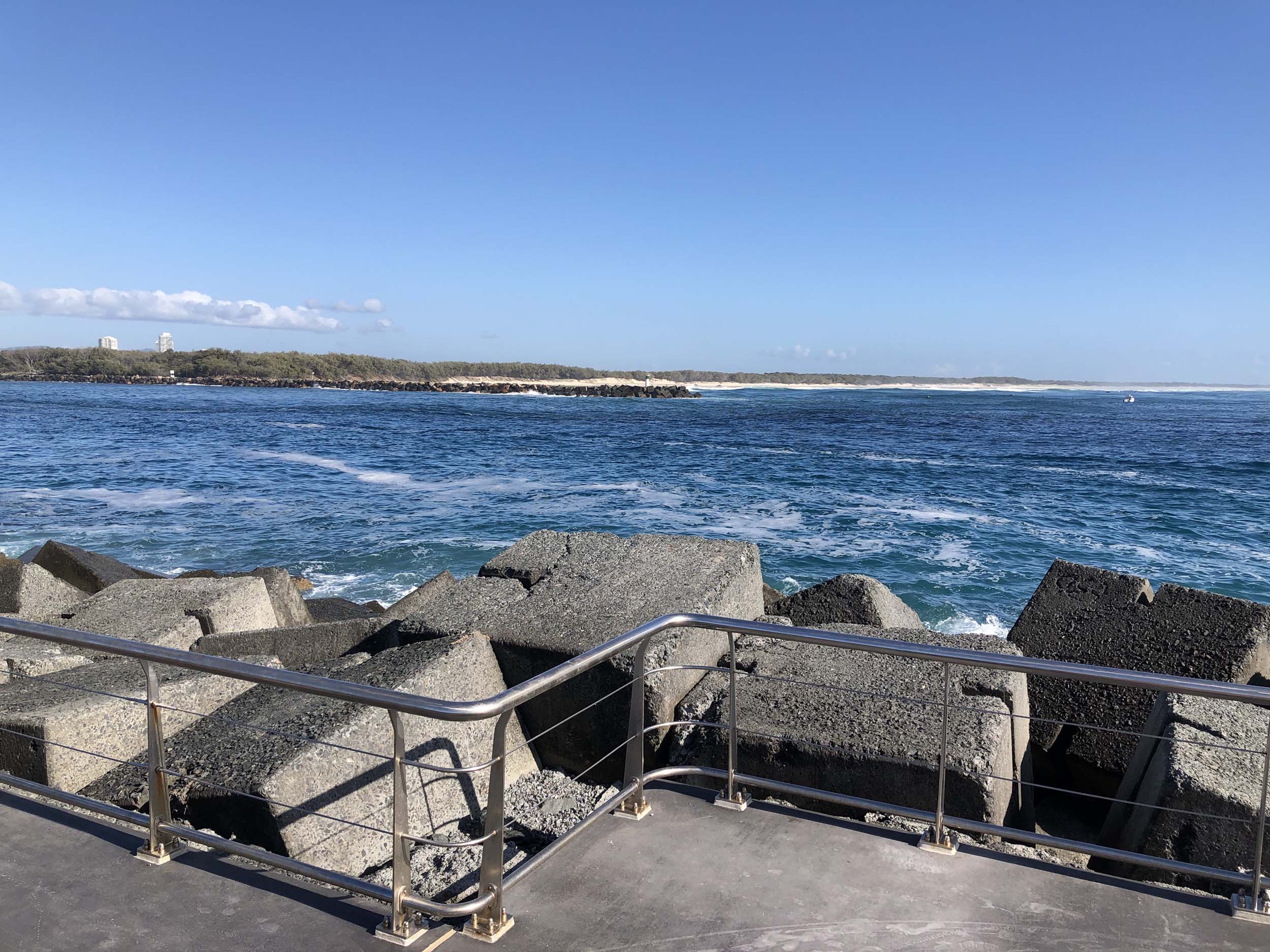 I left home at 9:05am, after going for a coffee and some shopping at Coles Lab Park. The breeze was quite strong from the East. The Broadwater was smooth, being protected by the land BUT the Coral Sea was rough as.