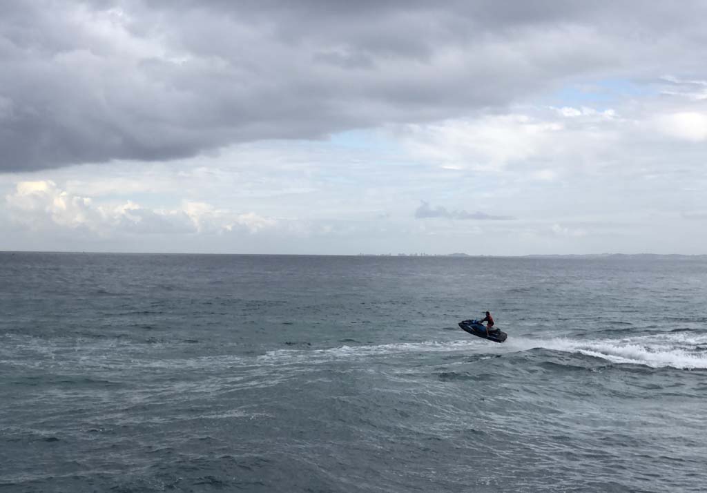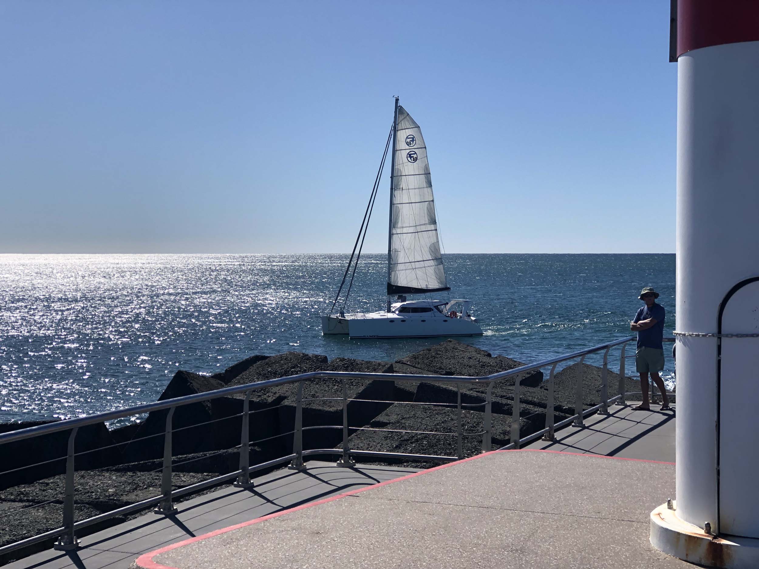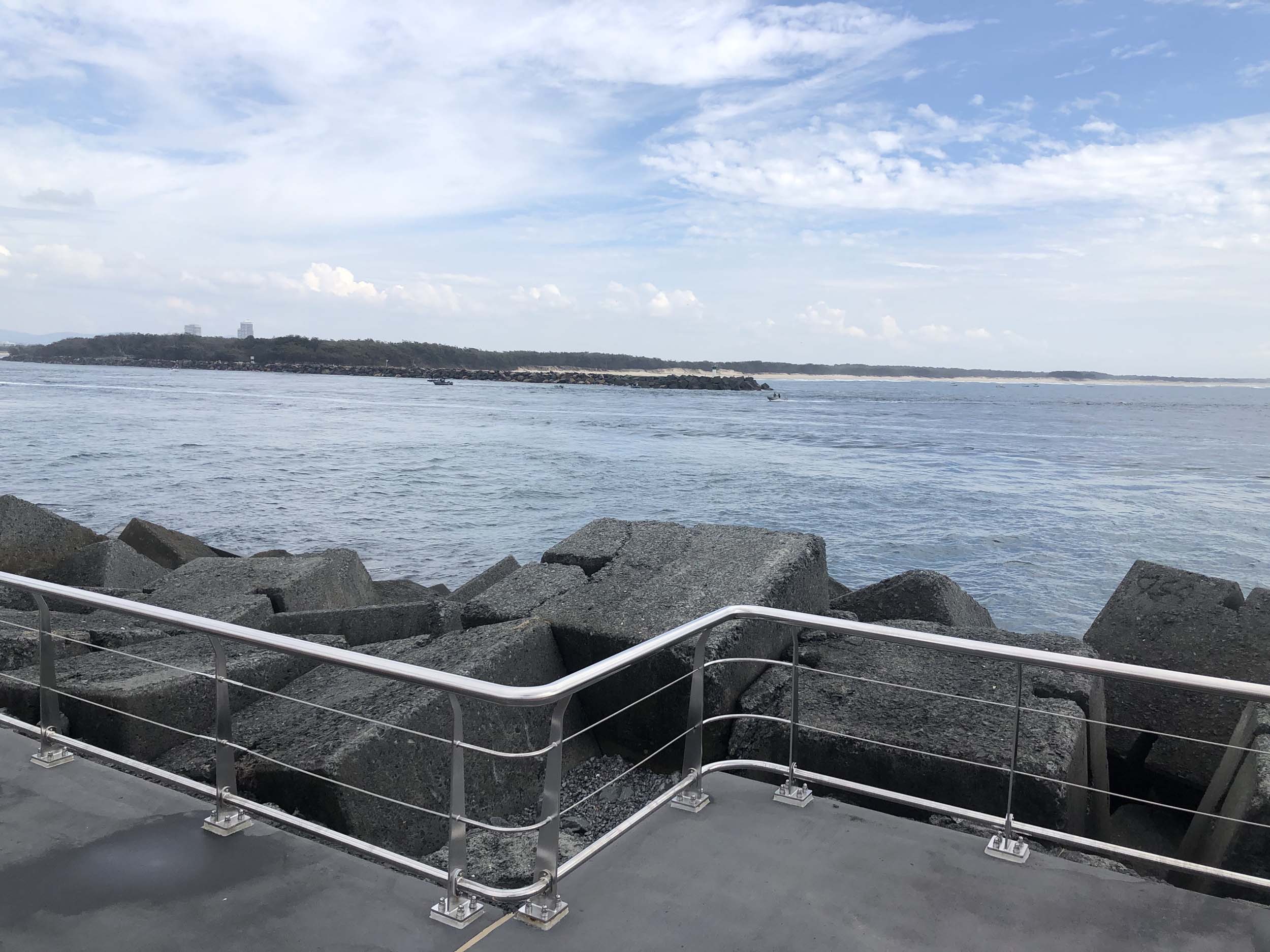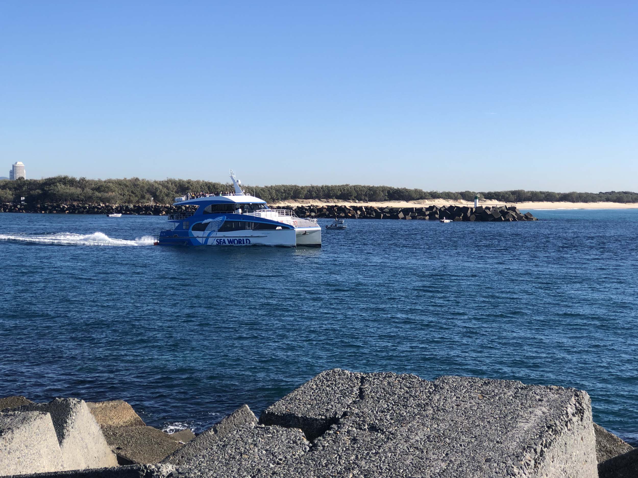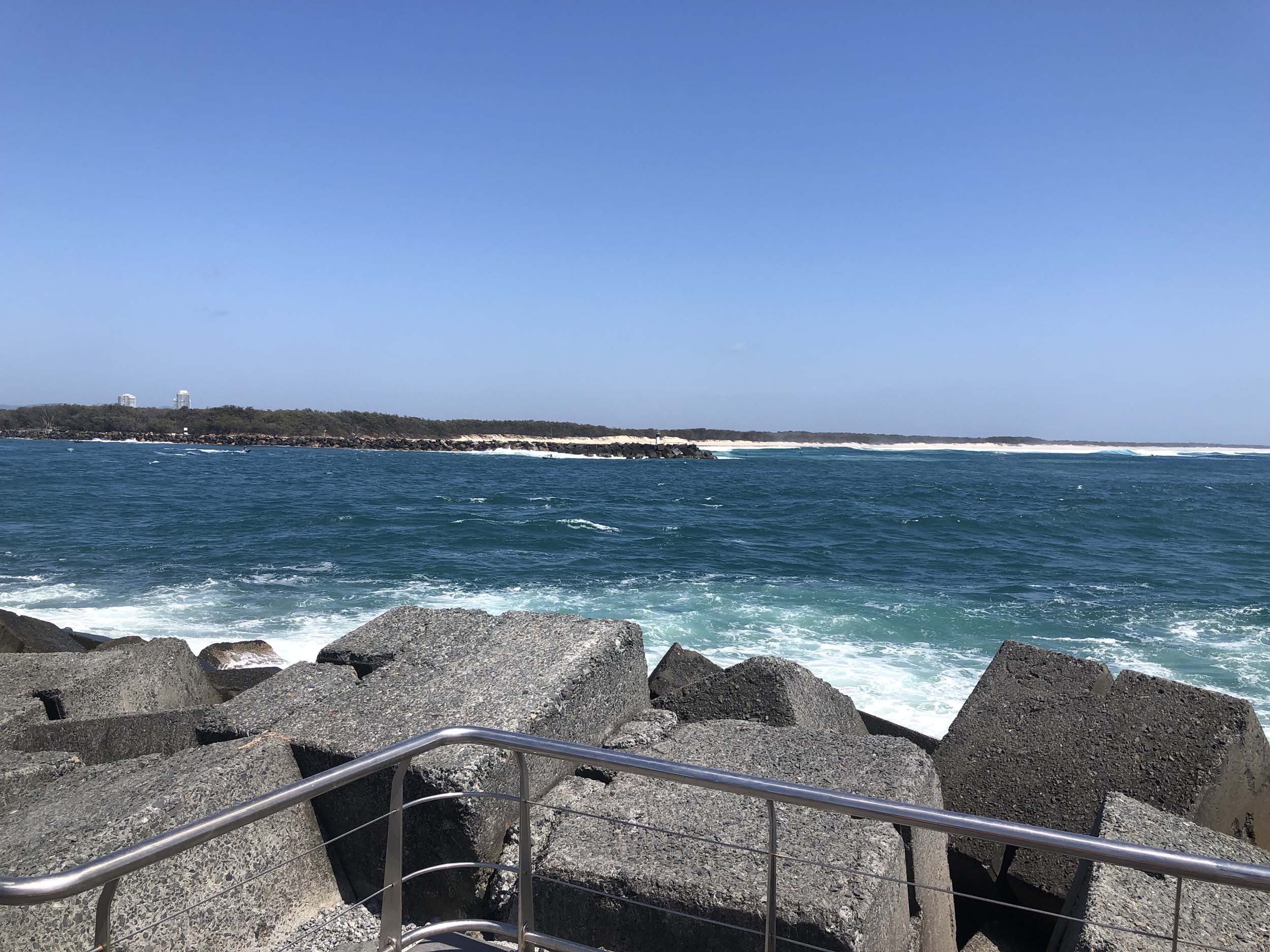 I left home at 9:05am, after going for a coffee and some shopping at Coles Lab Park. The breeze was quite strong from the East. The Broadwater was smooth, being protected by the land BUT the Coral Sea was rough as.