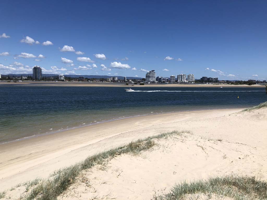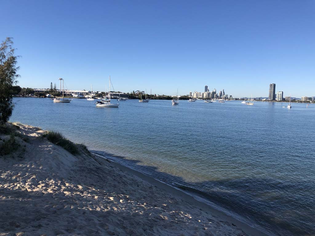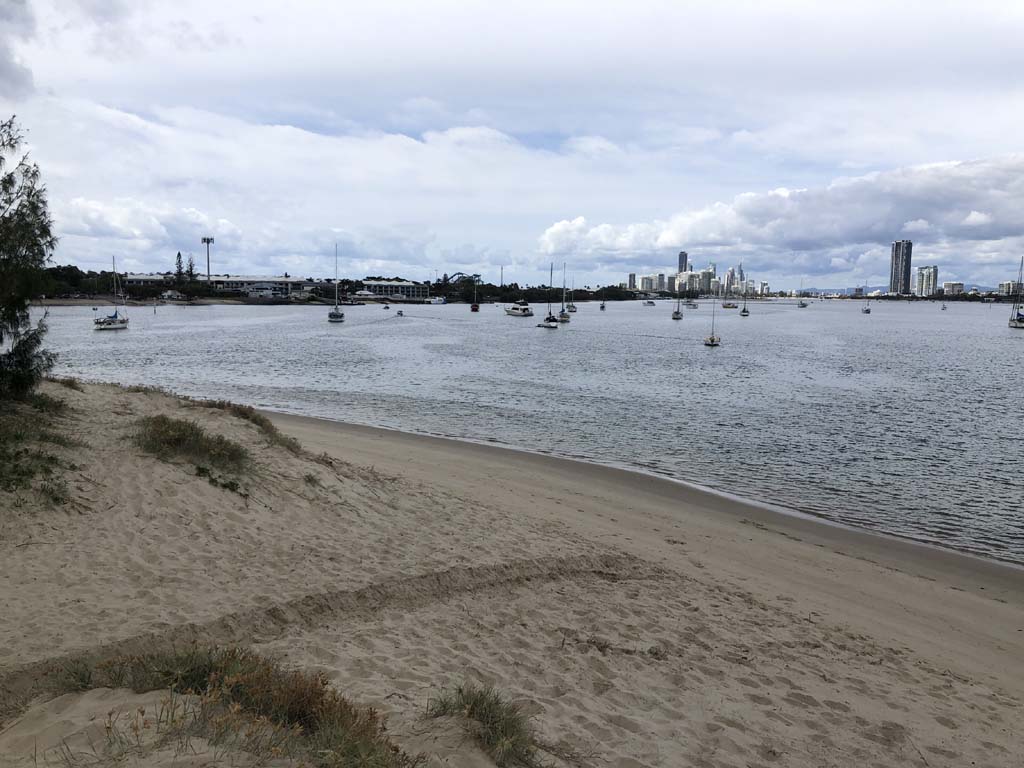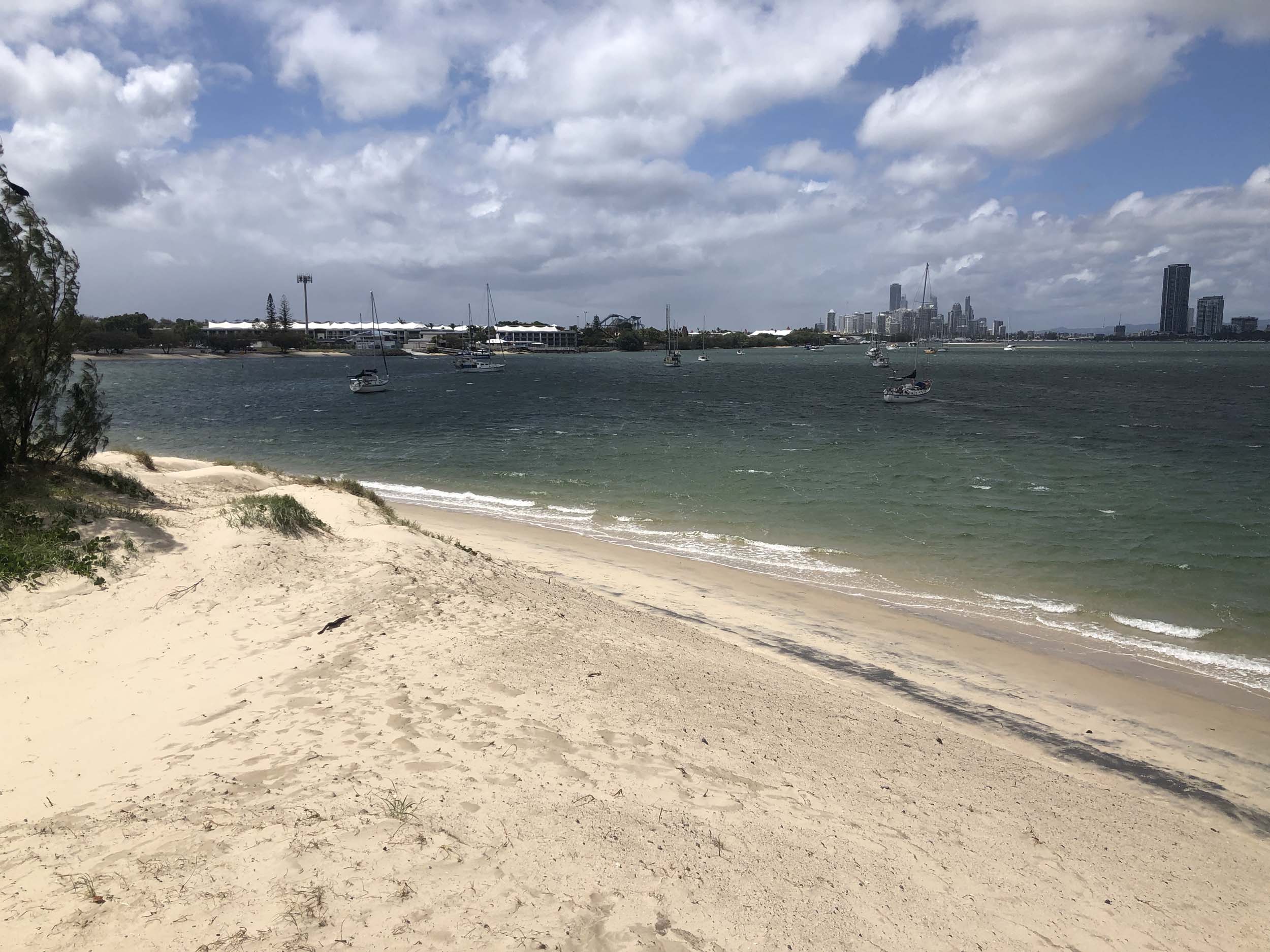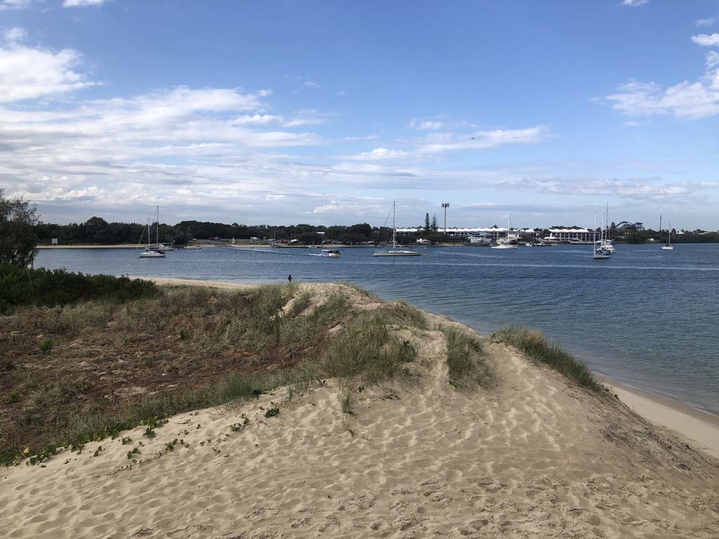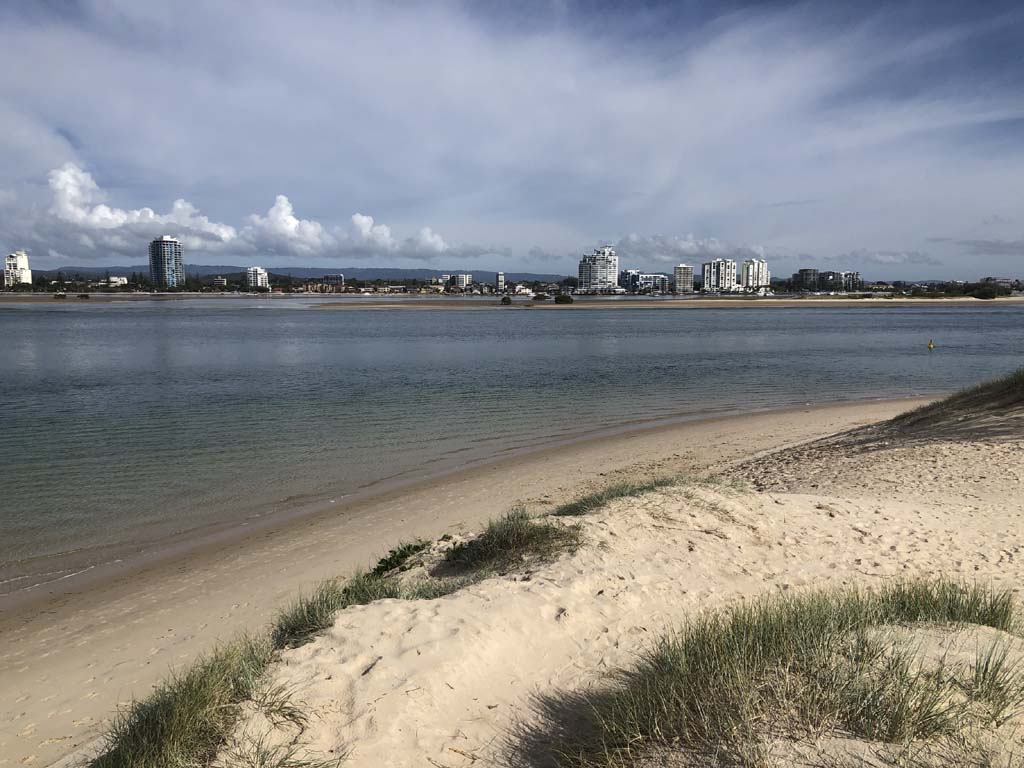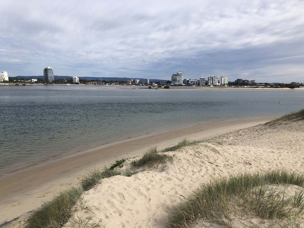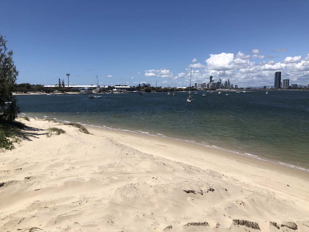 So over the Sundale Bridge, turned left and then along the Shared Path, through the Seaworld carpark, then through the Muriel Henchman Park and off to The Spit.