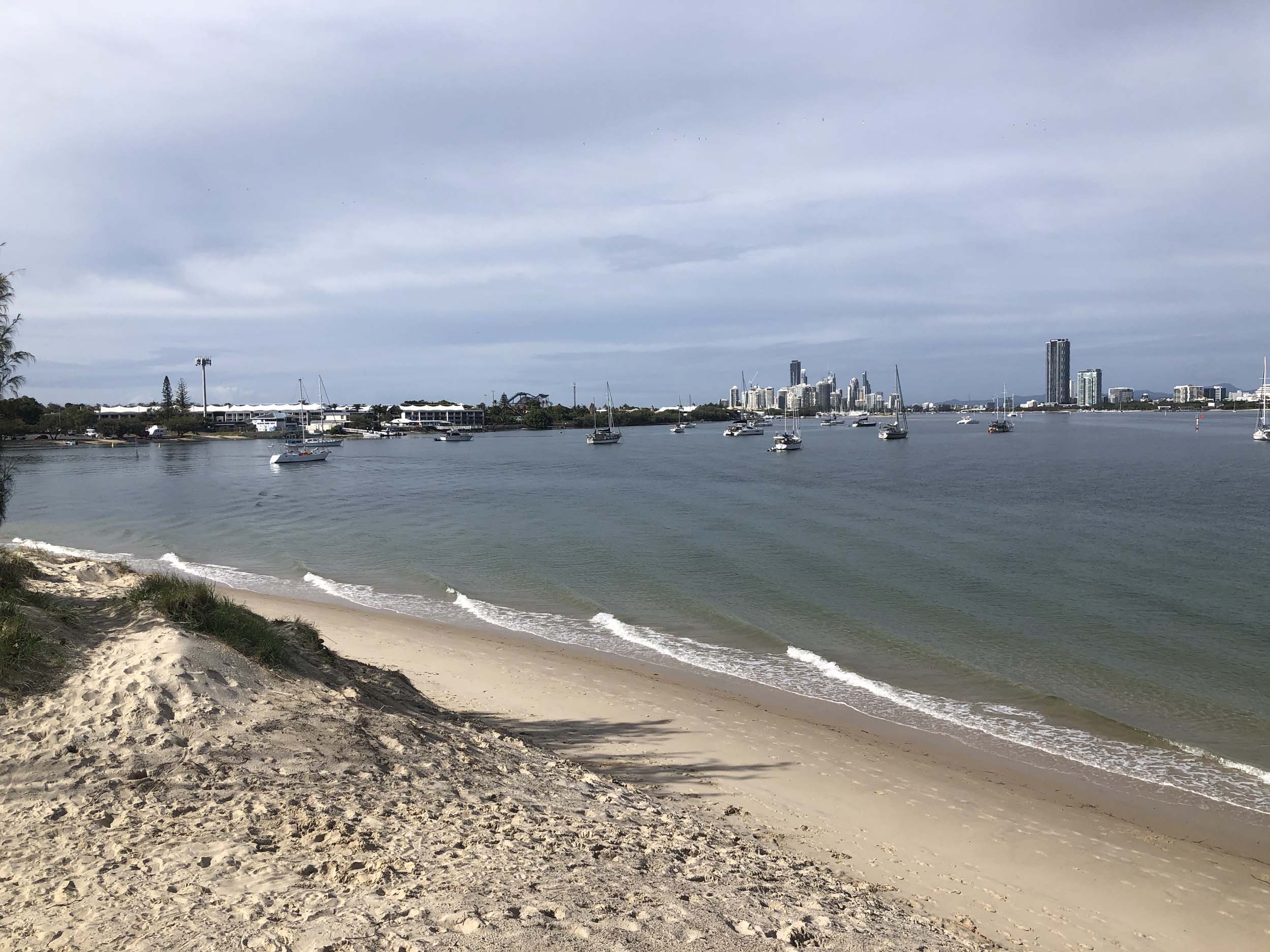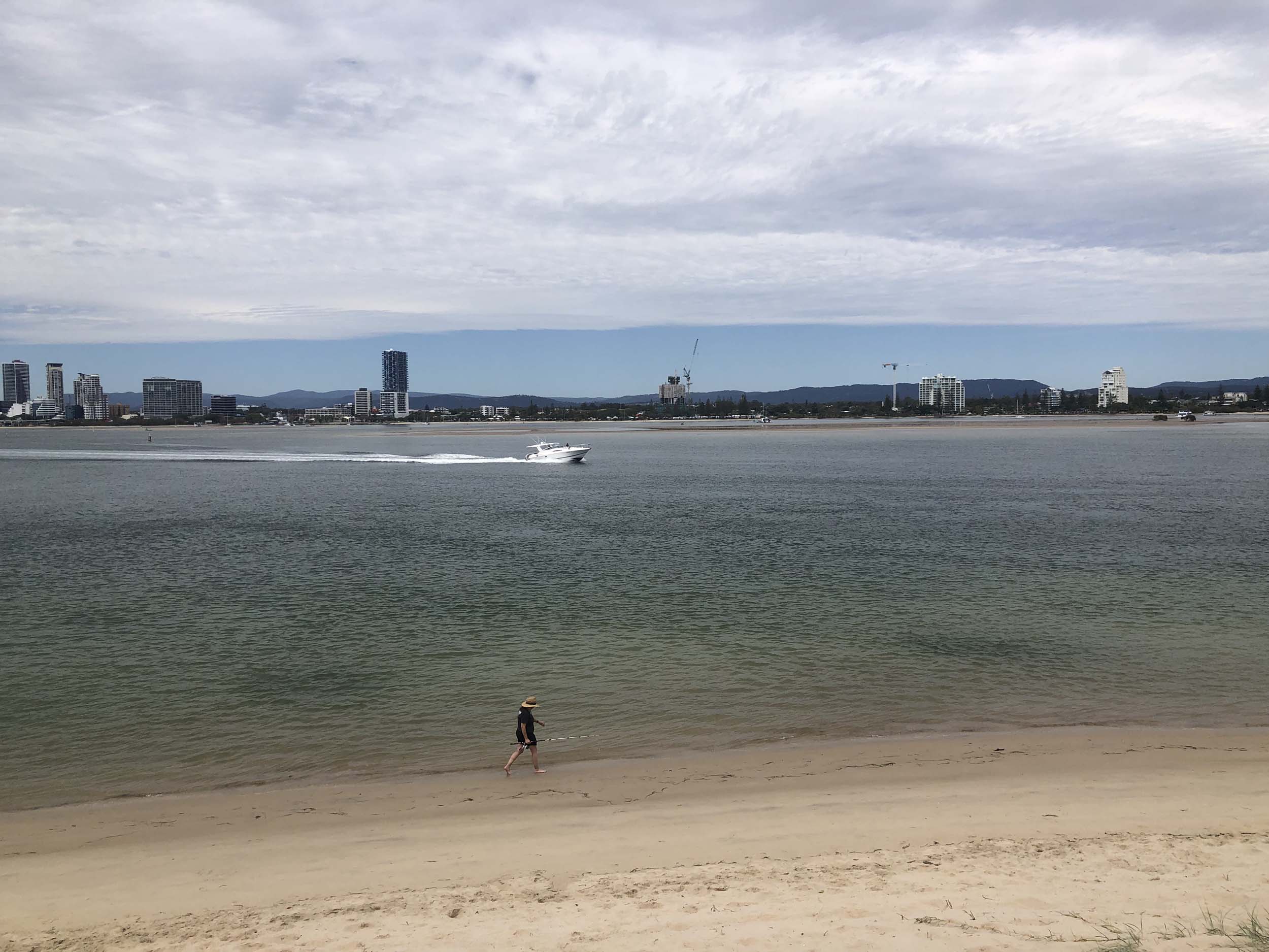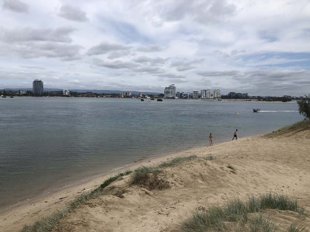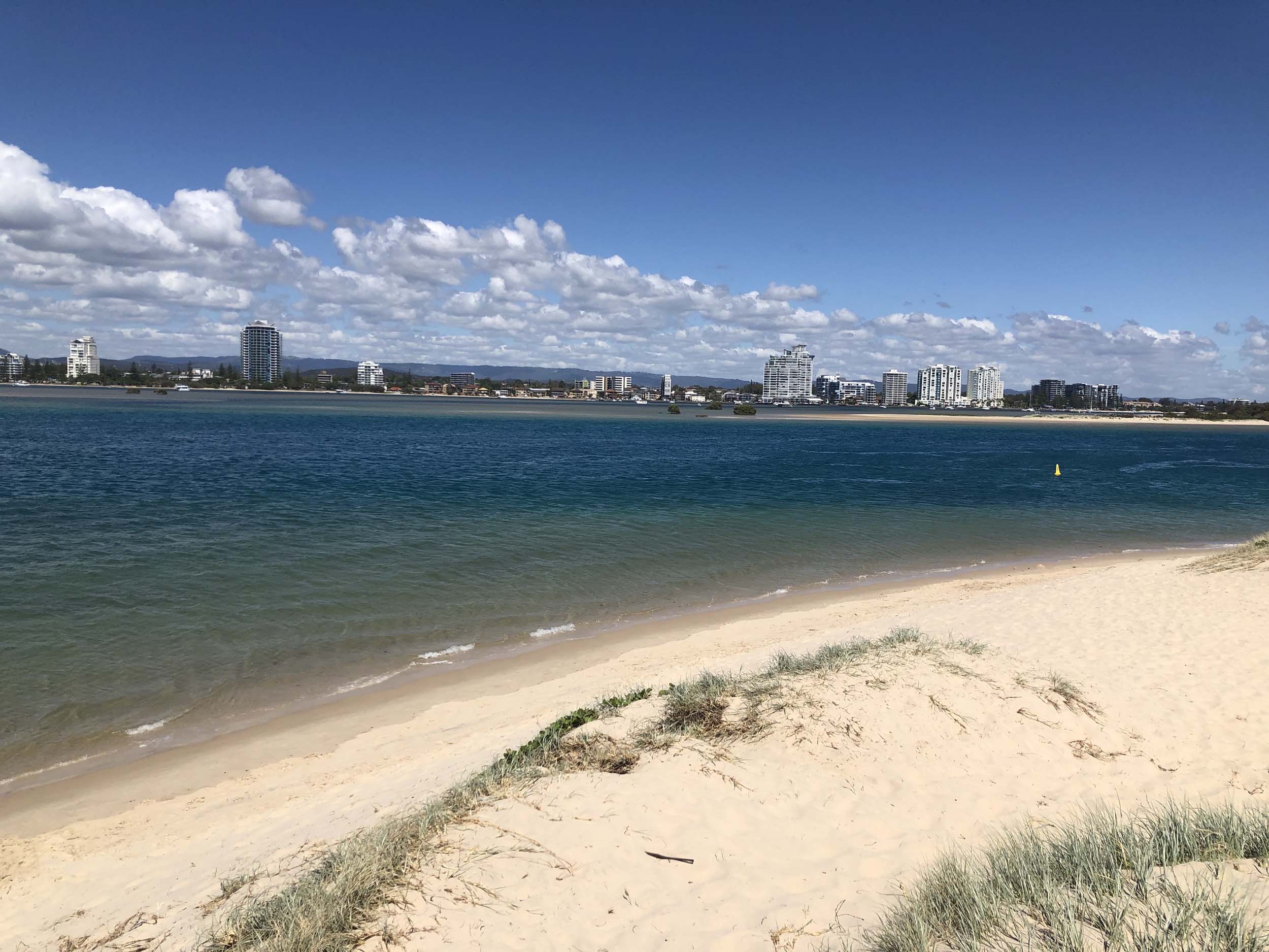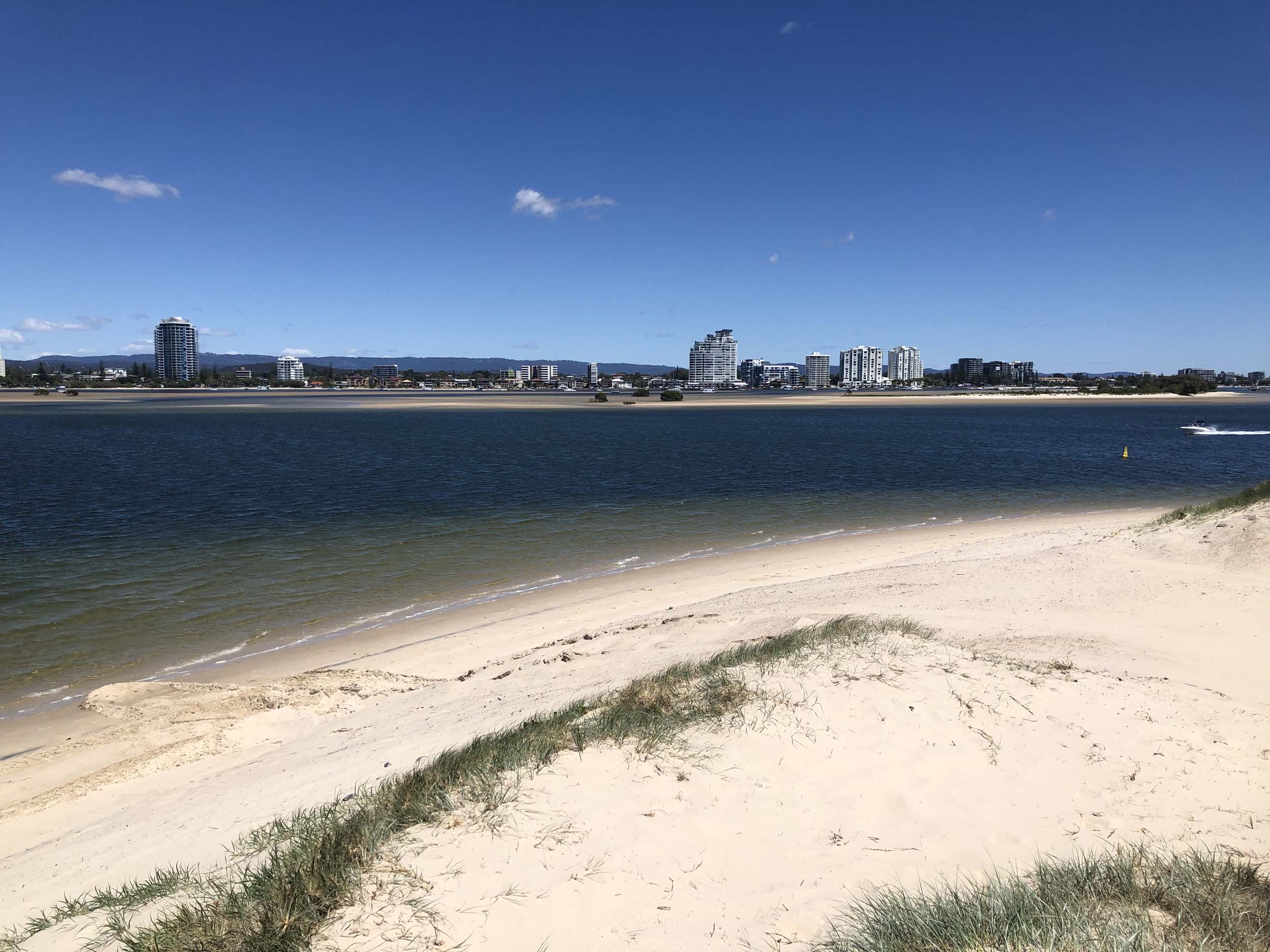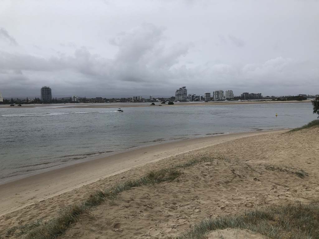So over the Sundale Bridge, turned left and then along the Shared Path, through the Seaworld carpark, then through the Muriel Henchman Park and off to The Spit.
