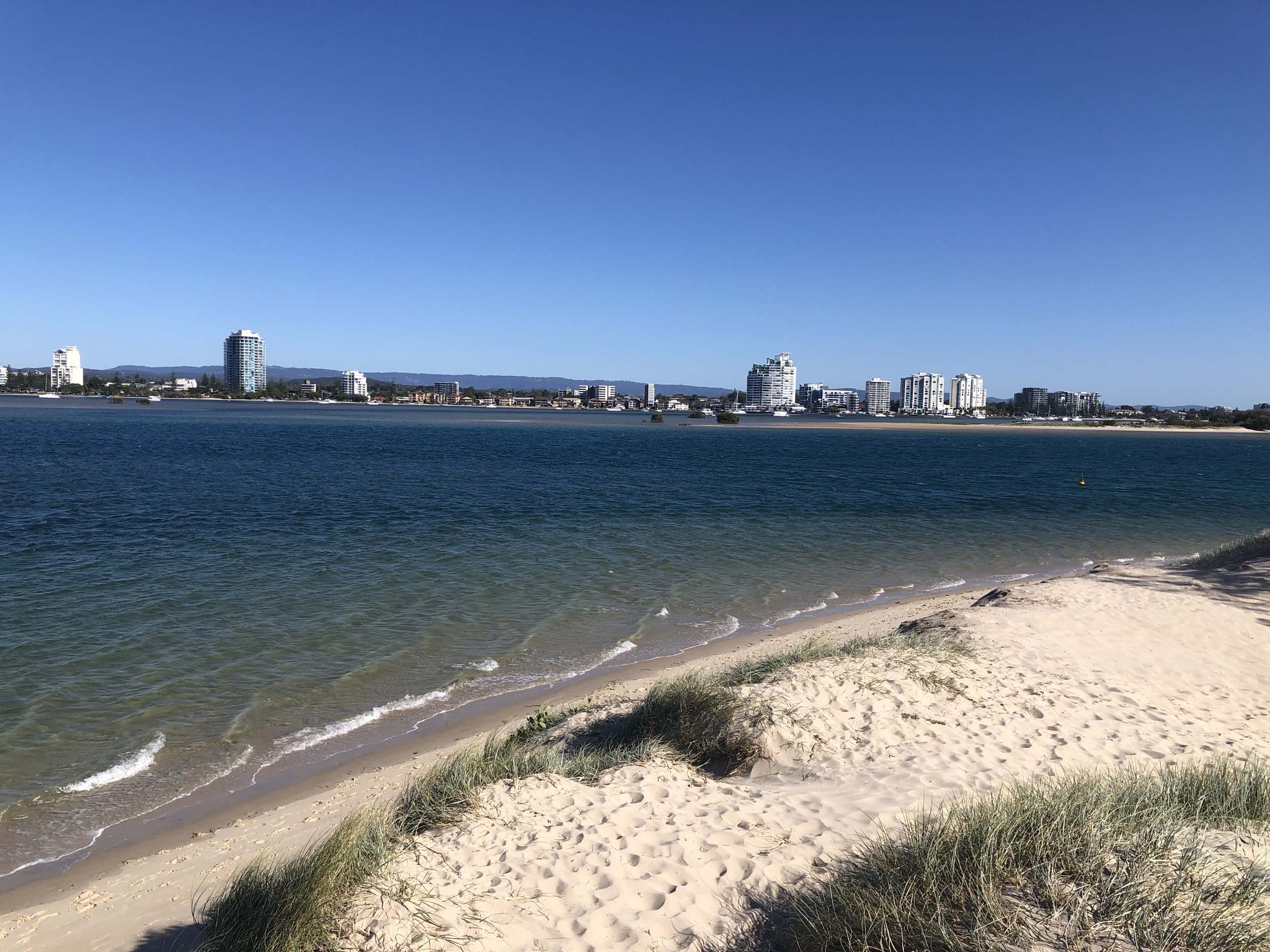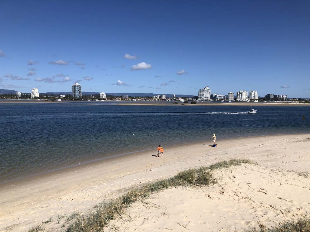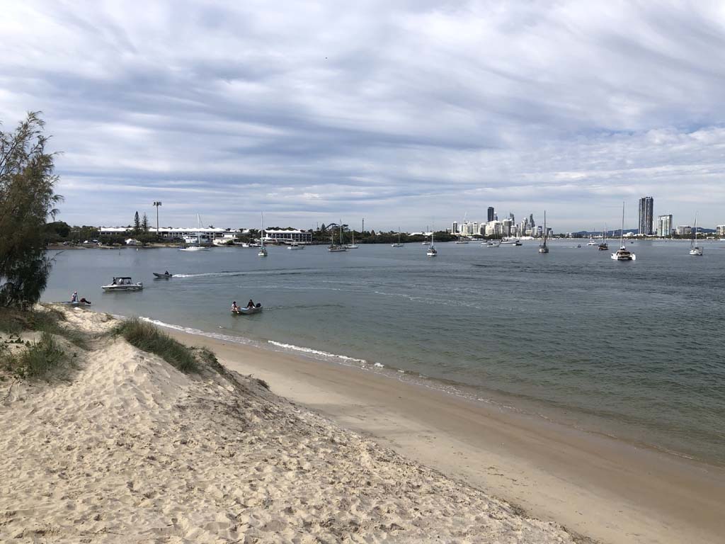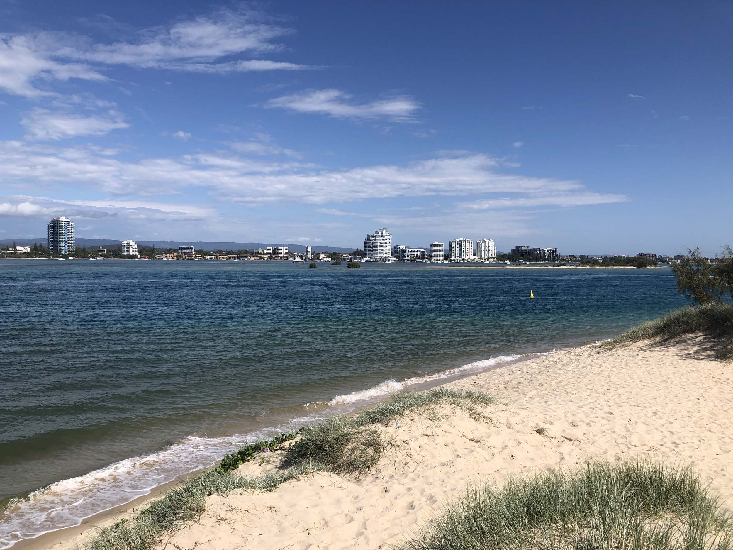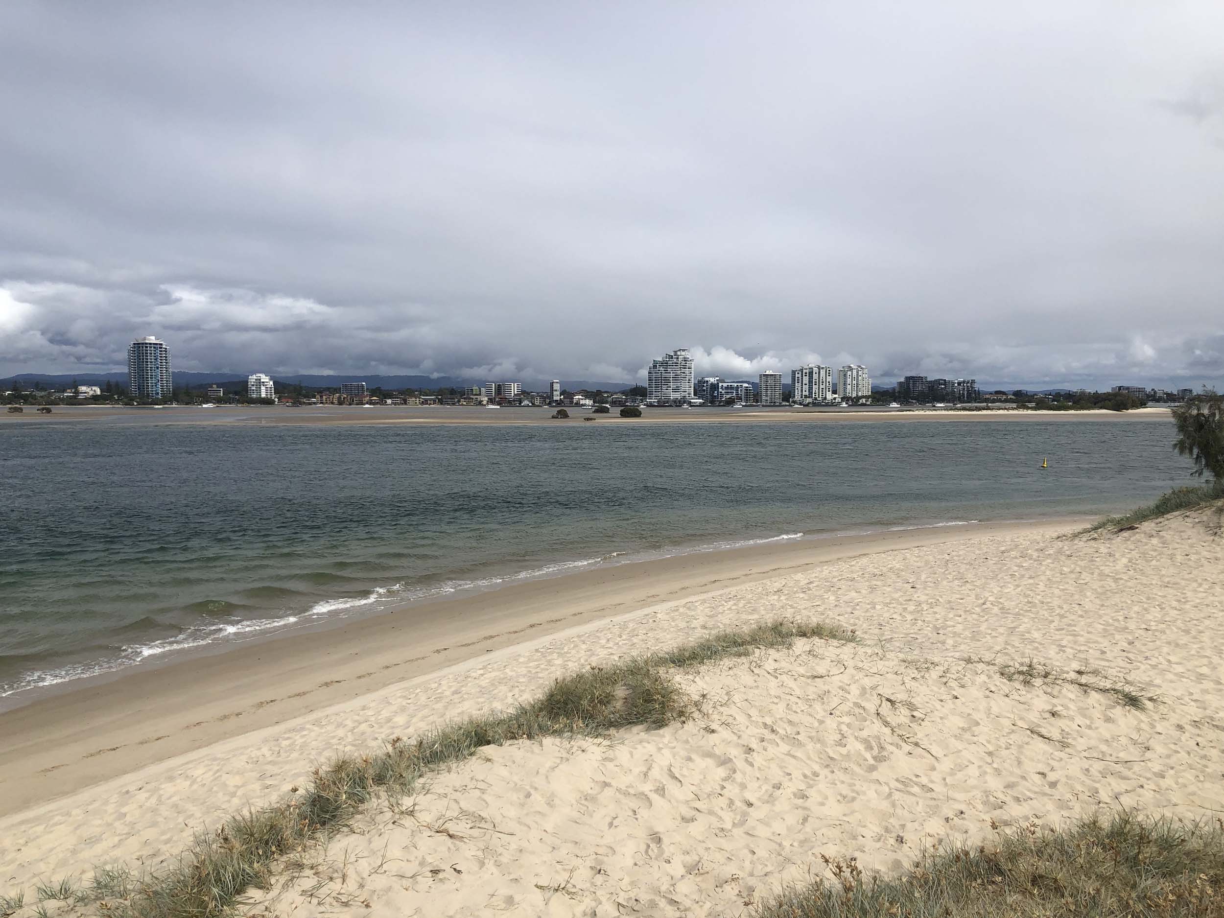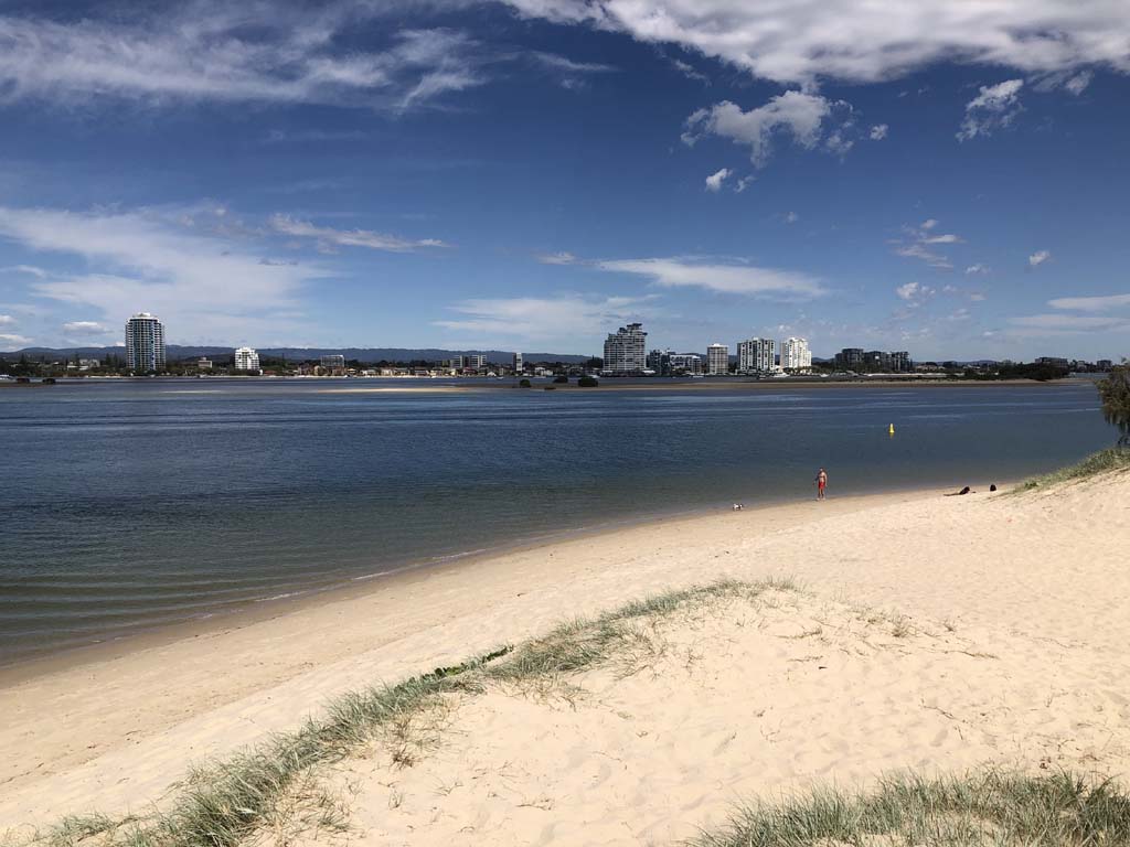 So over the Sundale Bridge, turned left and then along the Shared Path, through the Seaworld carpark, then through the Muriel Henchman Park and off to The Spit.