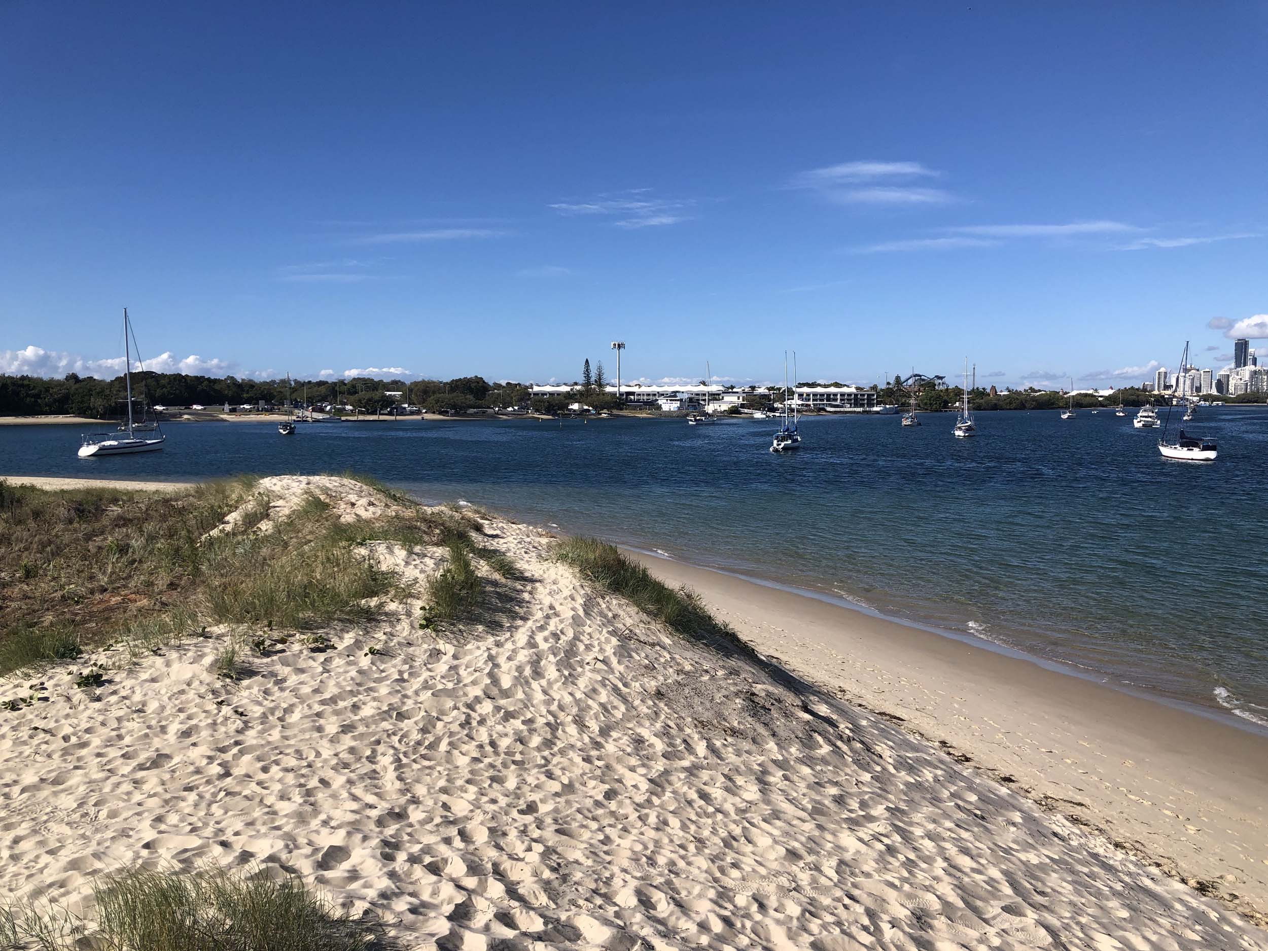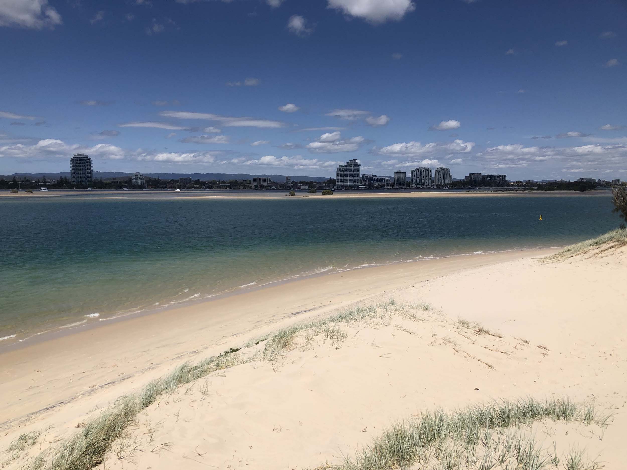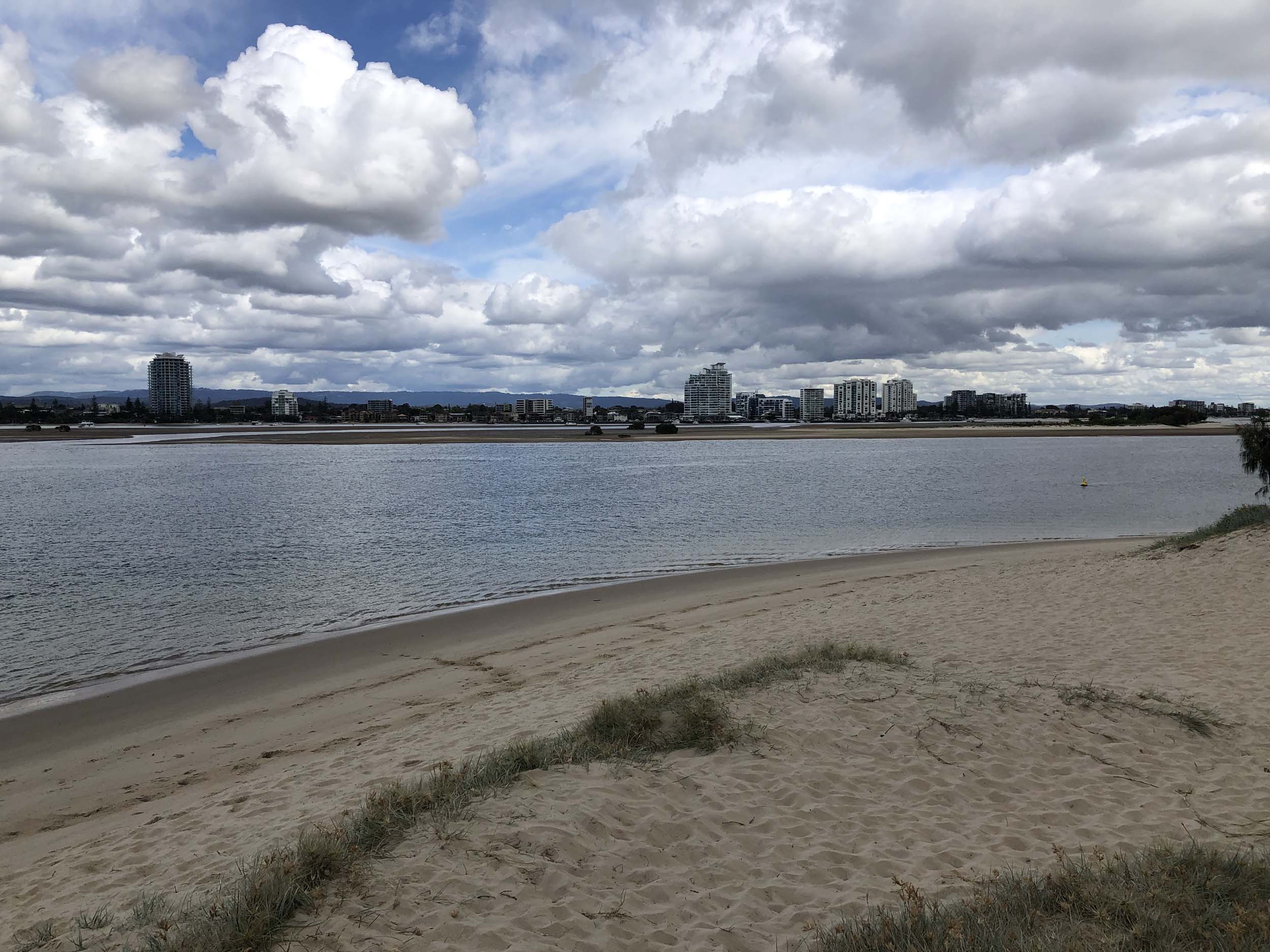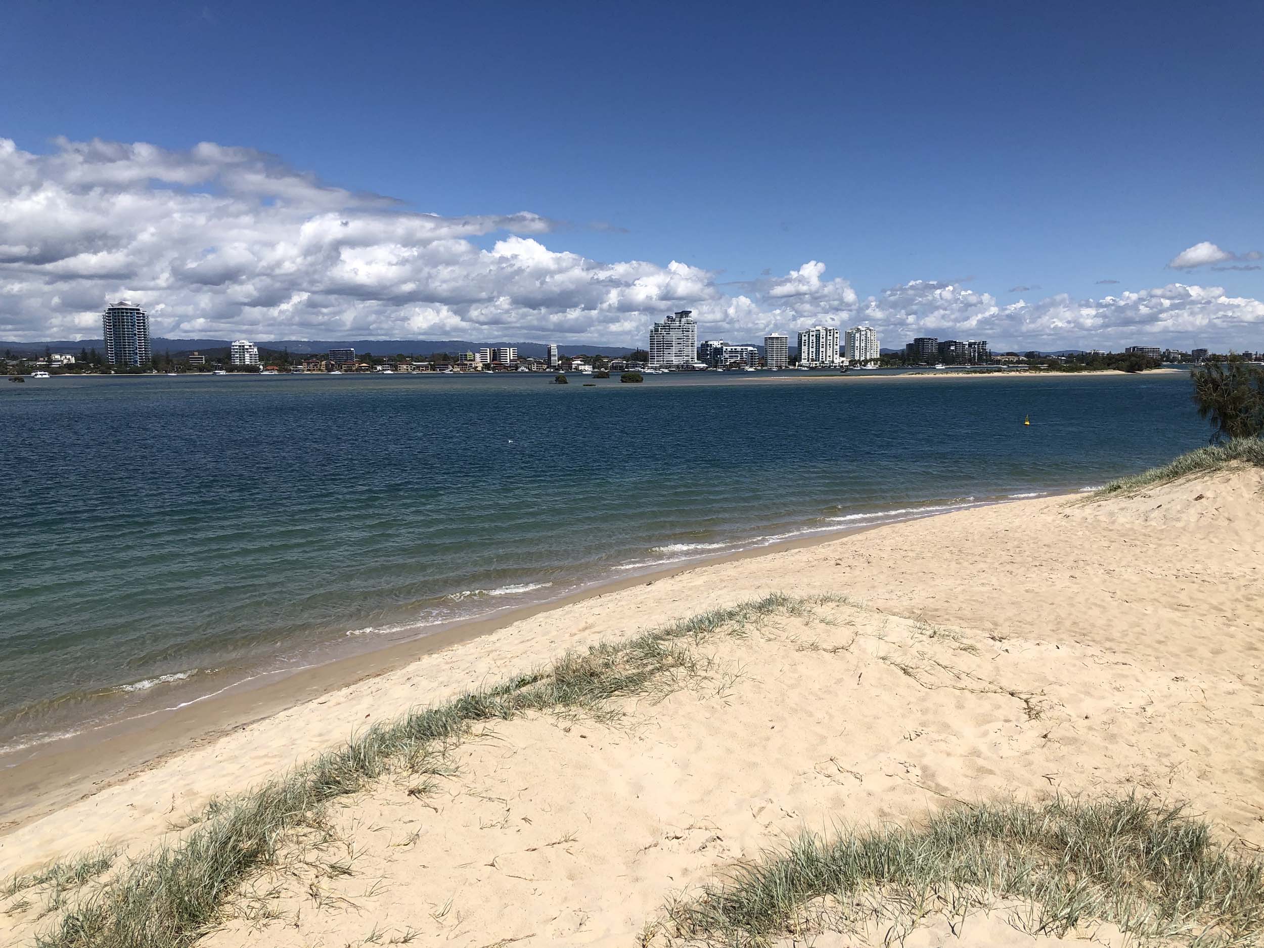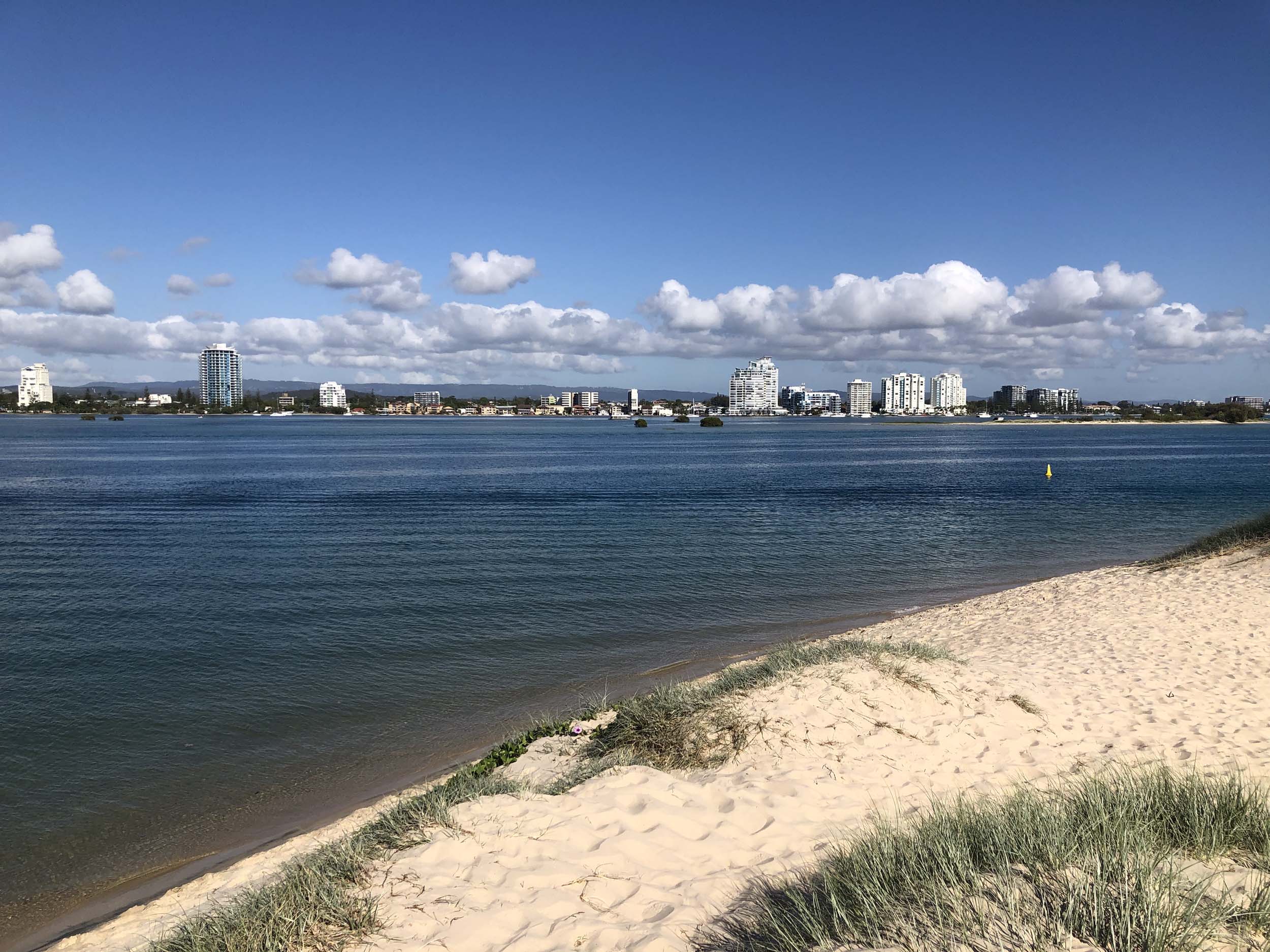 So over the Sundale Bridge, turned left and then along the Shared Path, through the Seaworld carpark, then through the Muriel Henchman Park and off to The Spit.