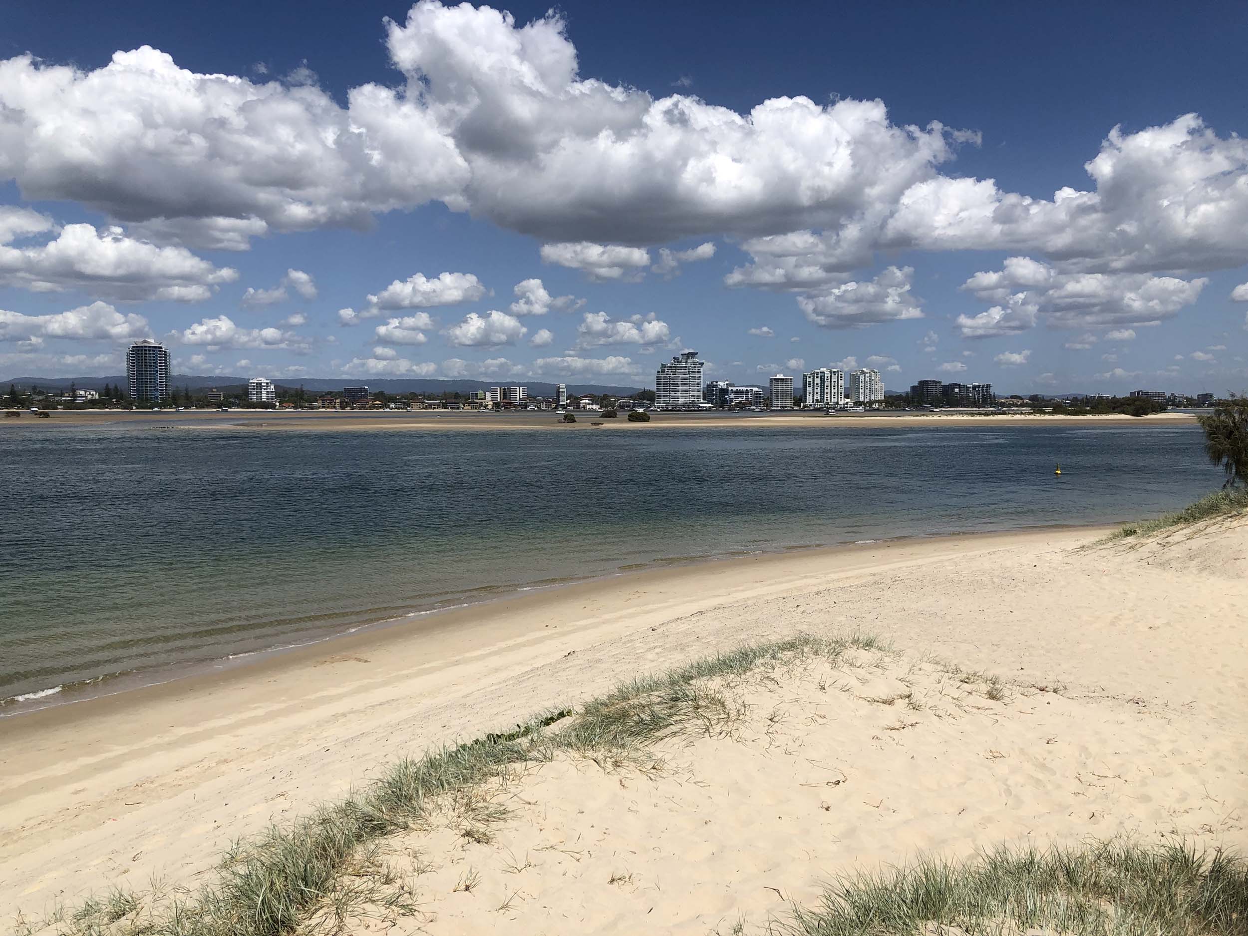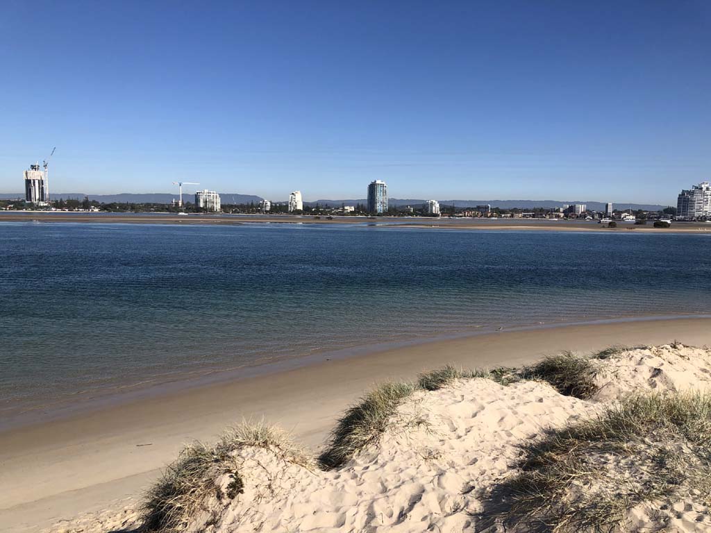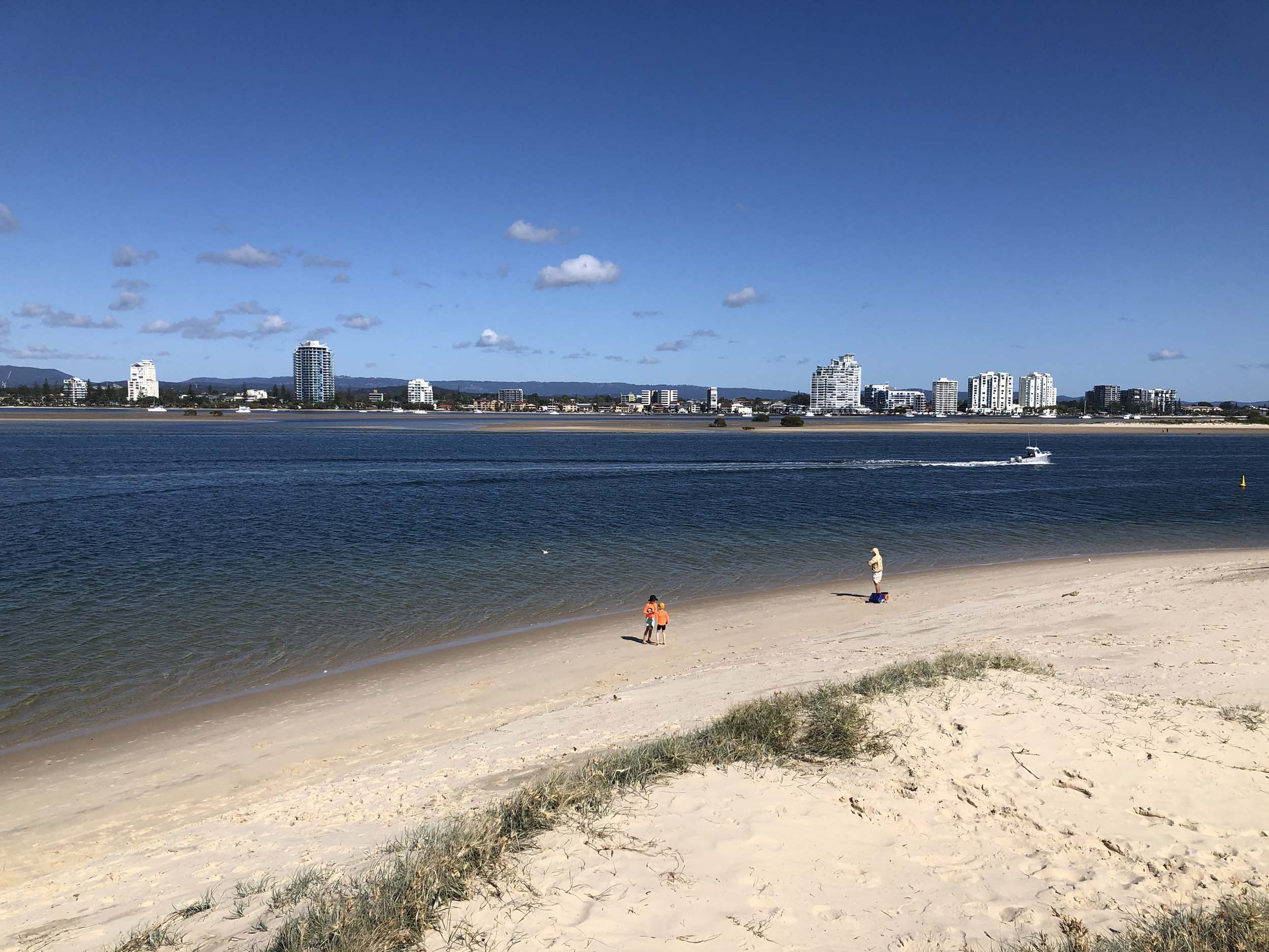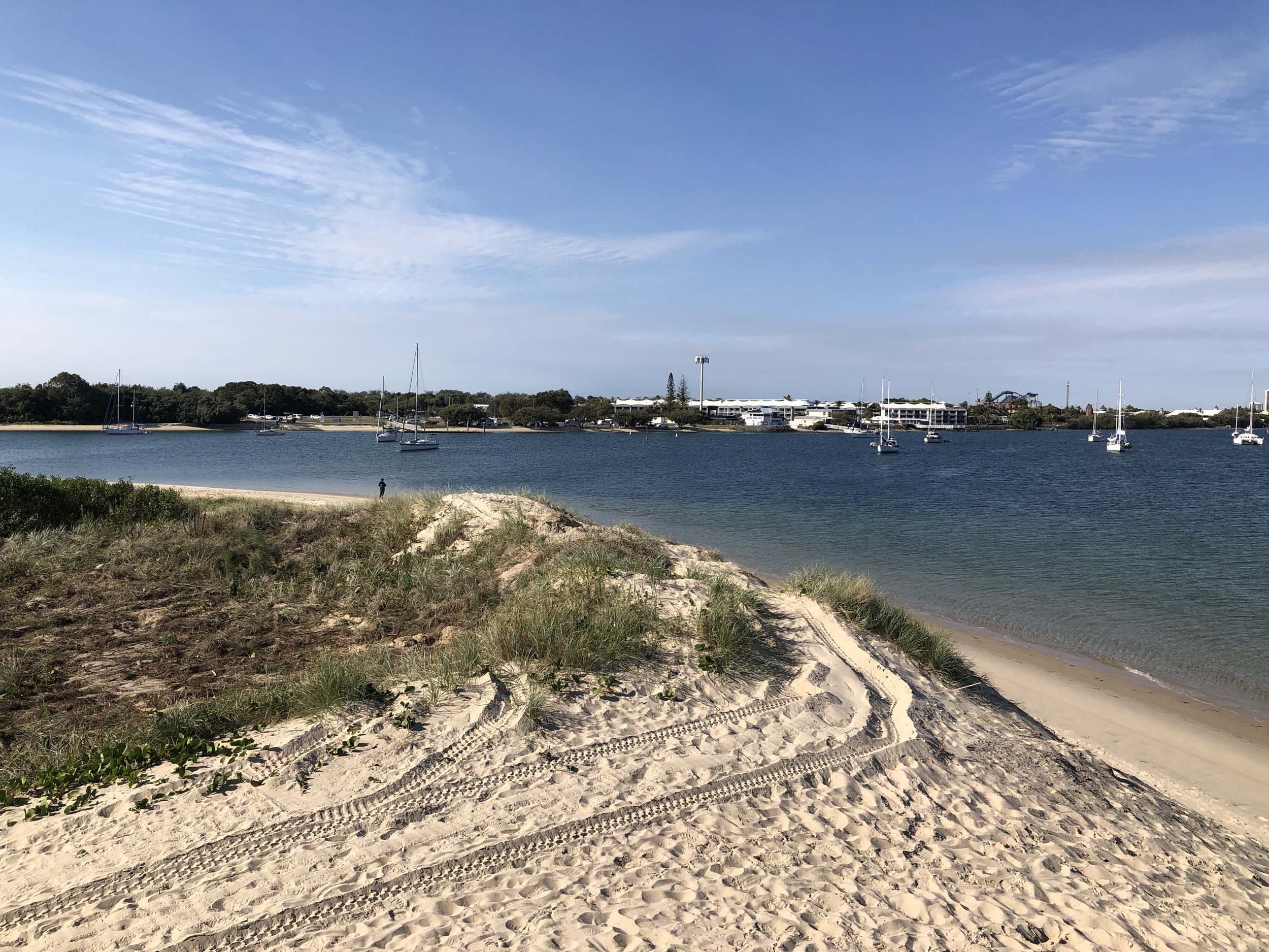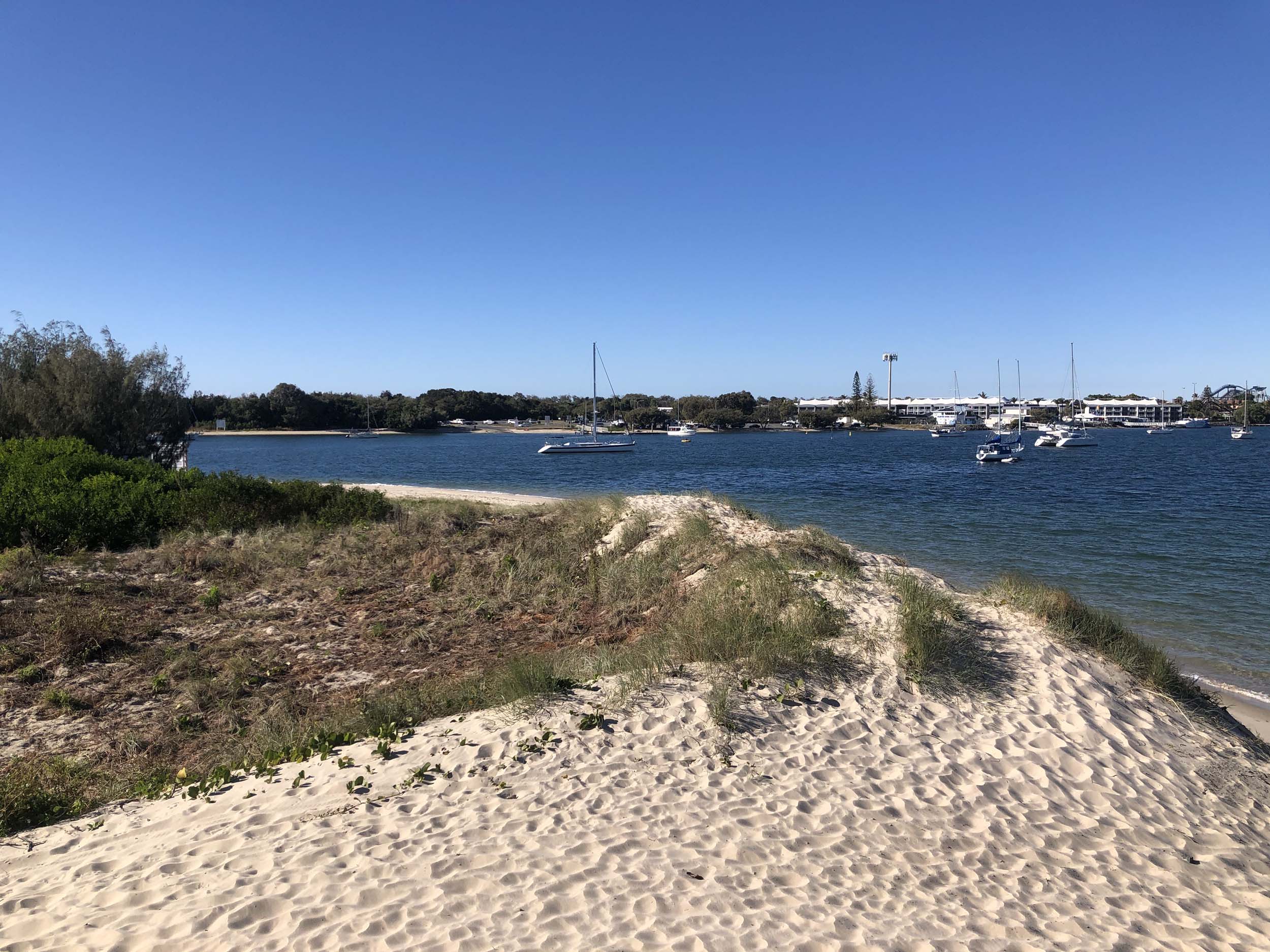 So over the Sundale Bridge, turned left and then along the Shared Path, through the Seaworld carpark, then through the Muriel Henchman Park and off to The Spit.