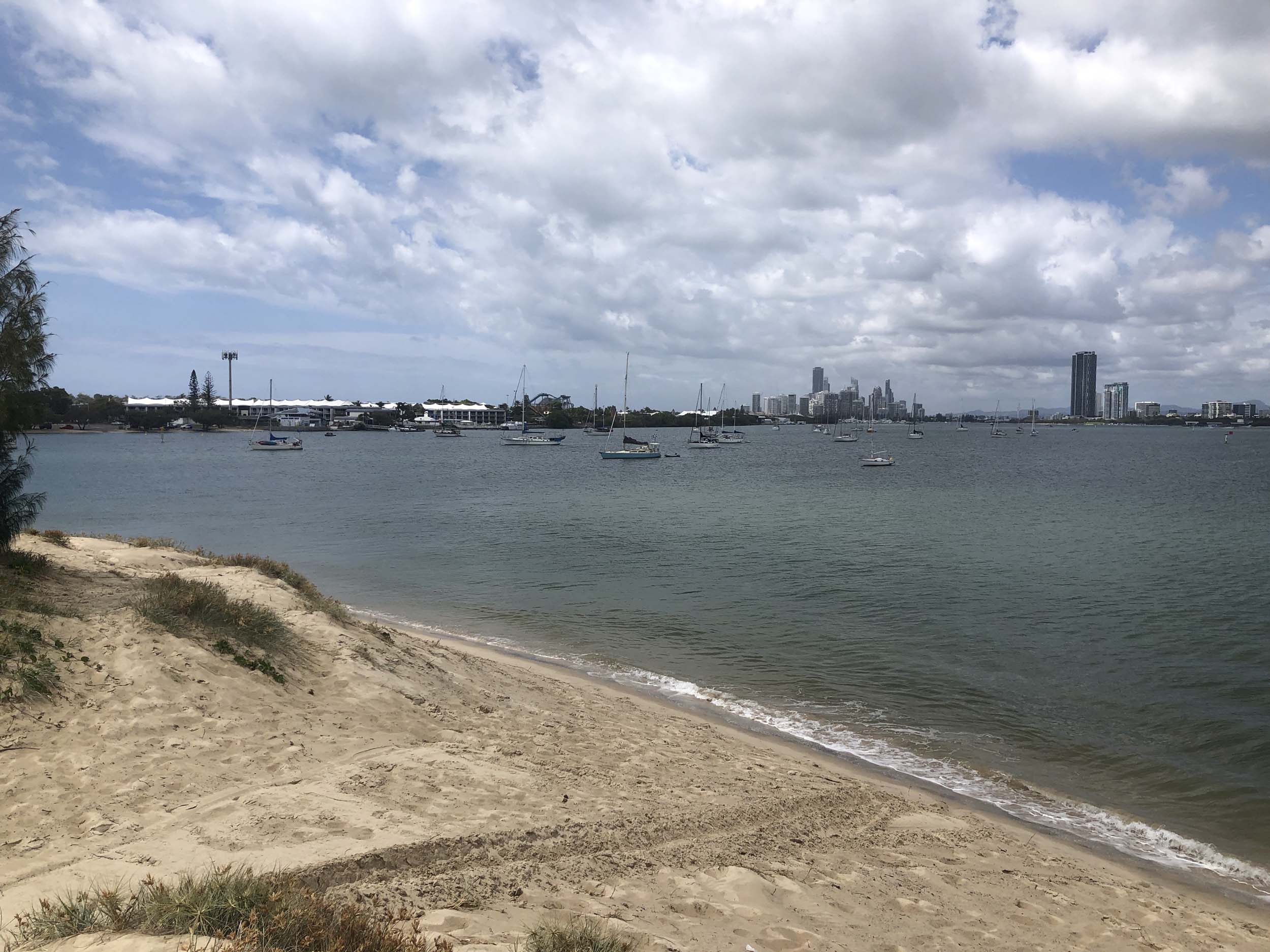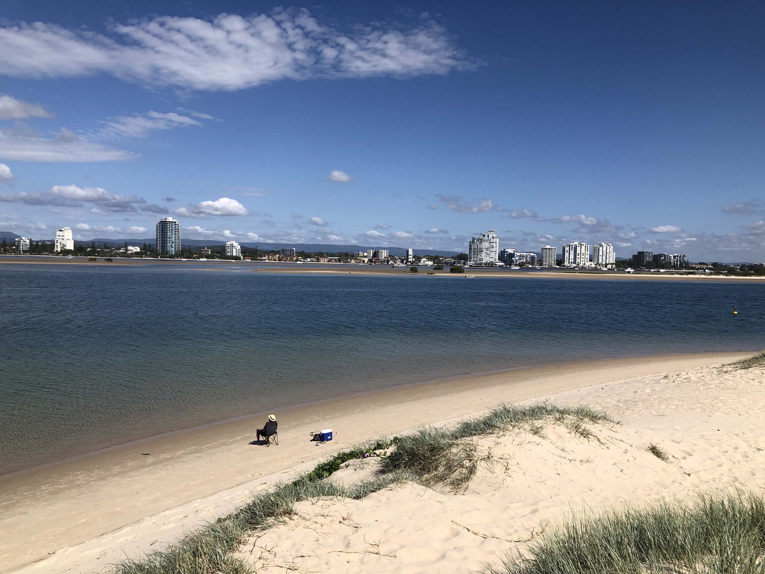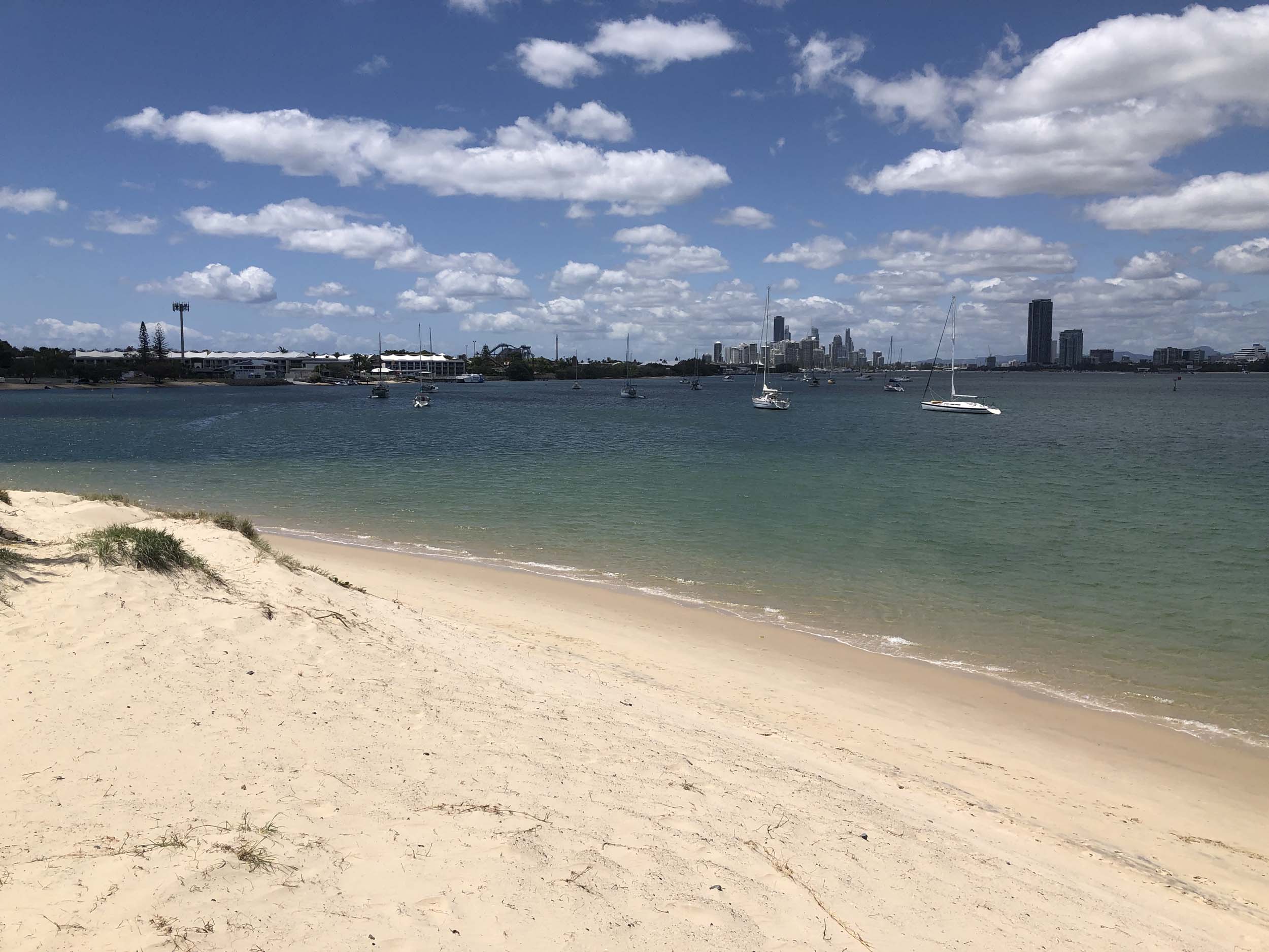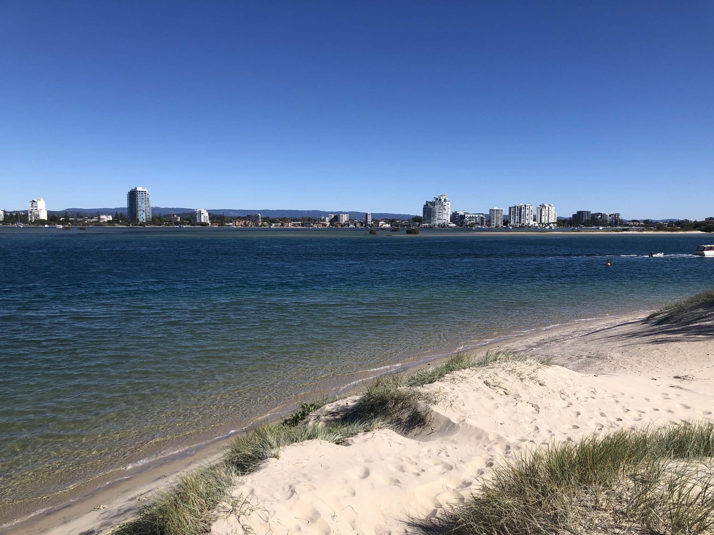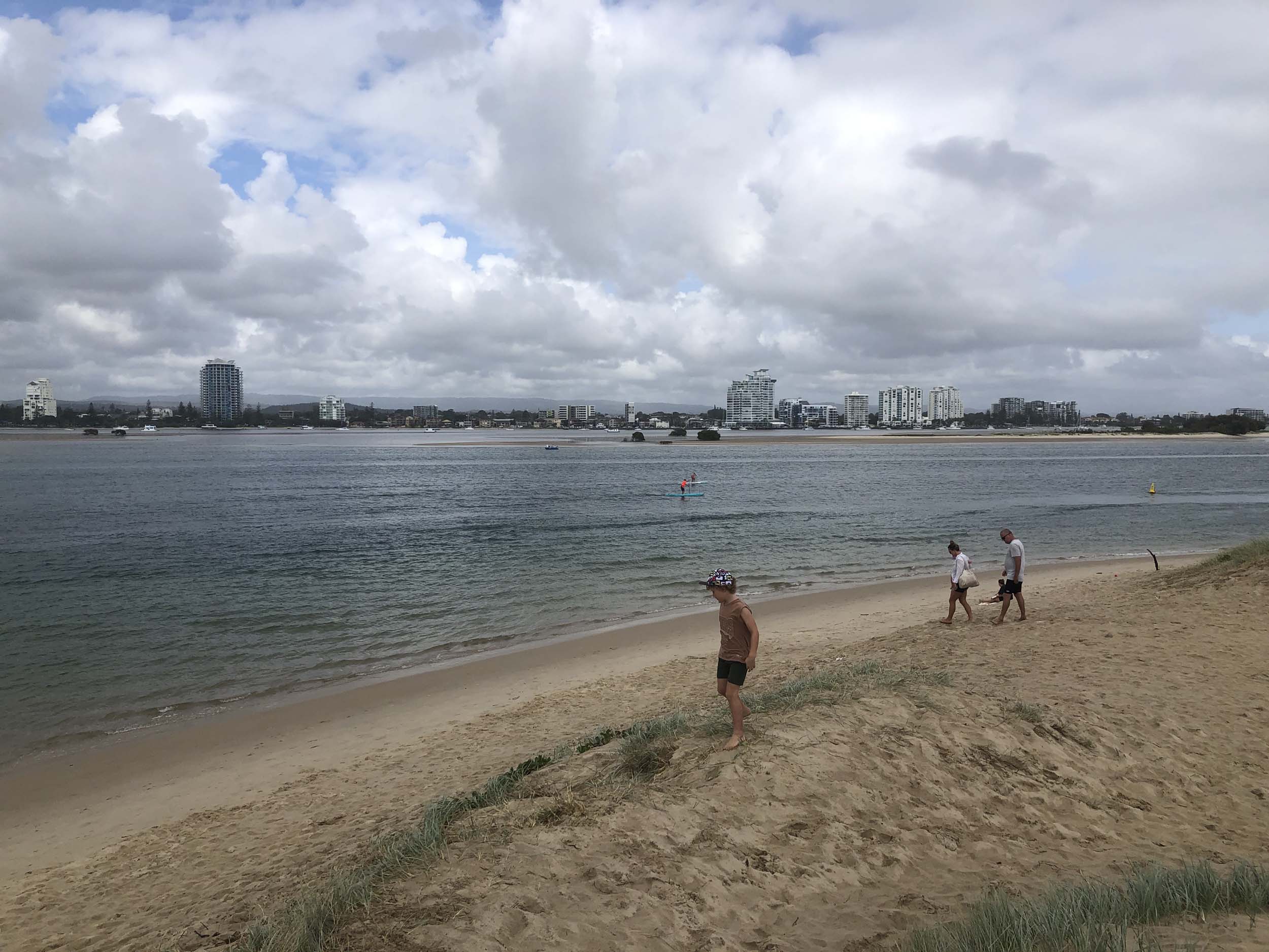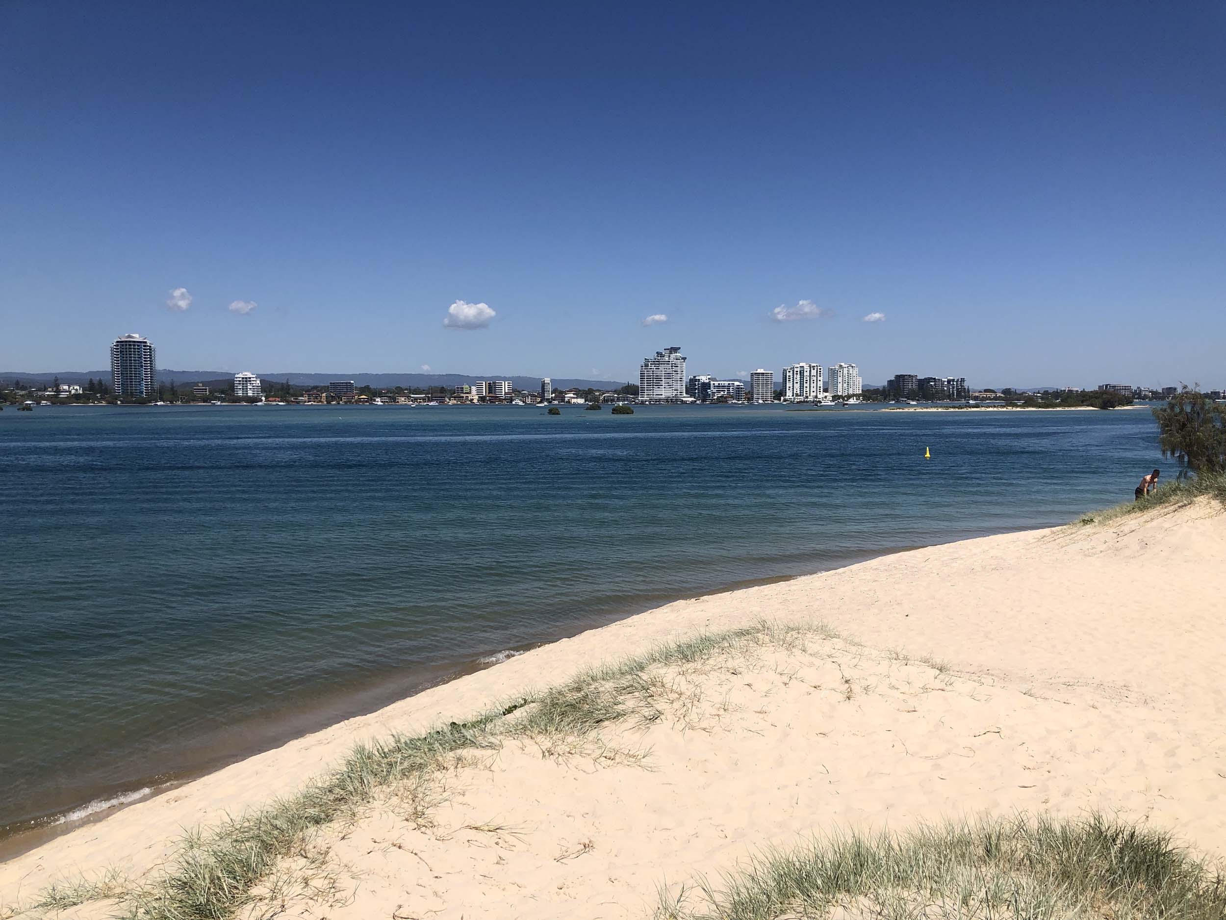 So over the Sundale Bridge, turned left and then along the Shared Path, through the Seaworld carpark, then through the Muriel Henchman Park and off to The Spit.