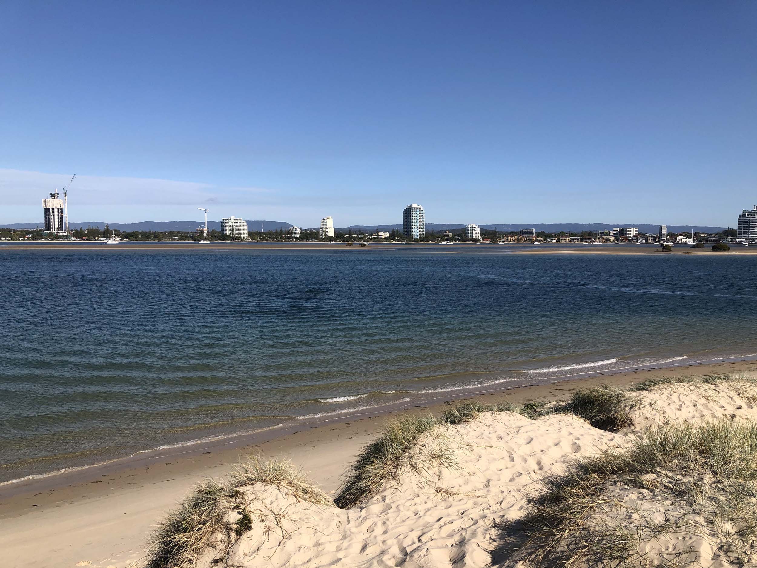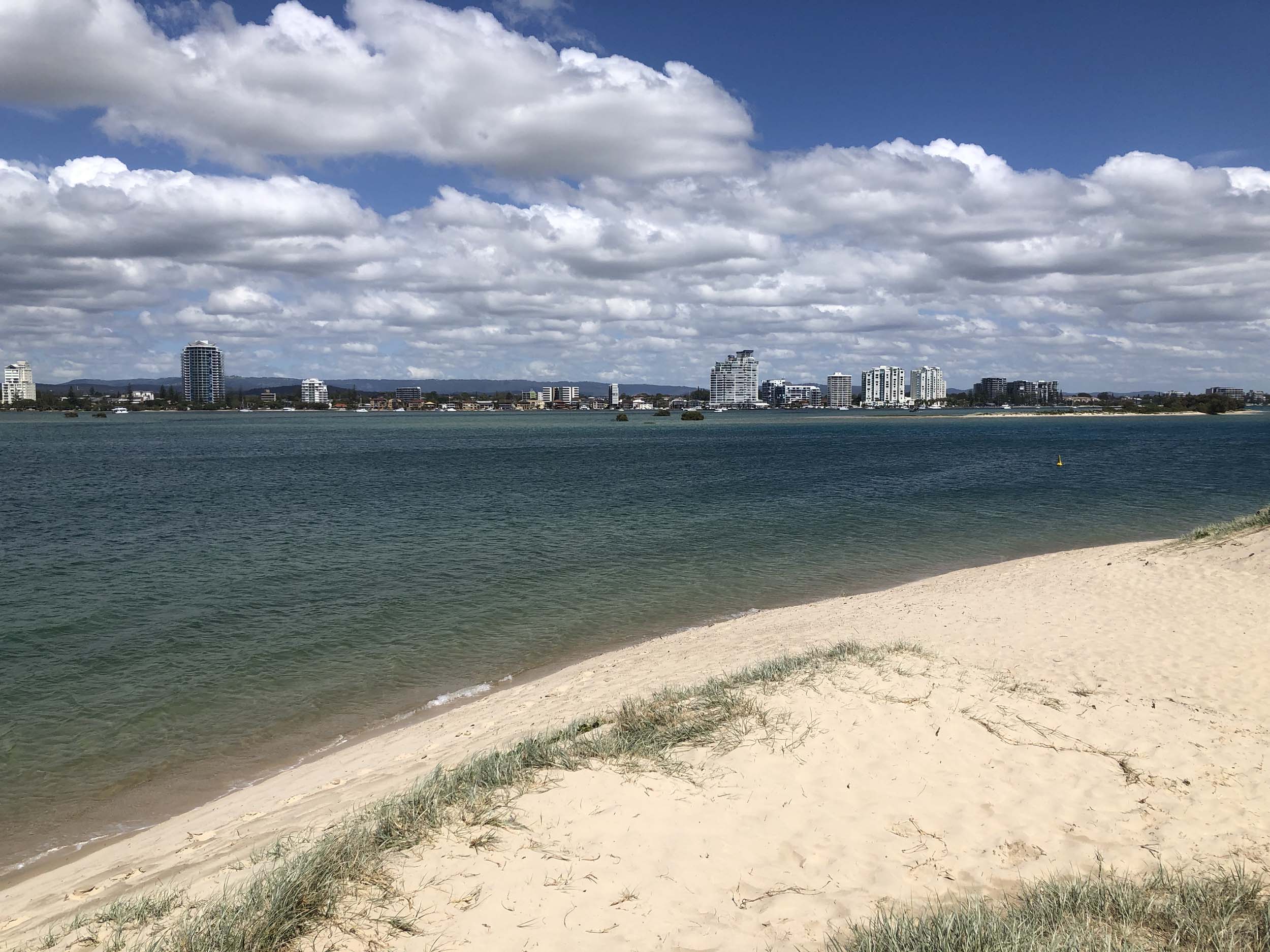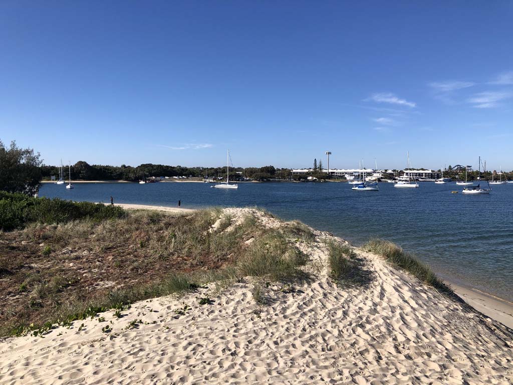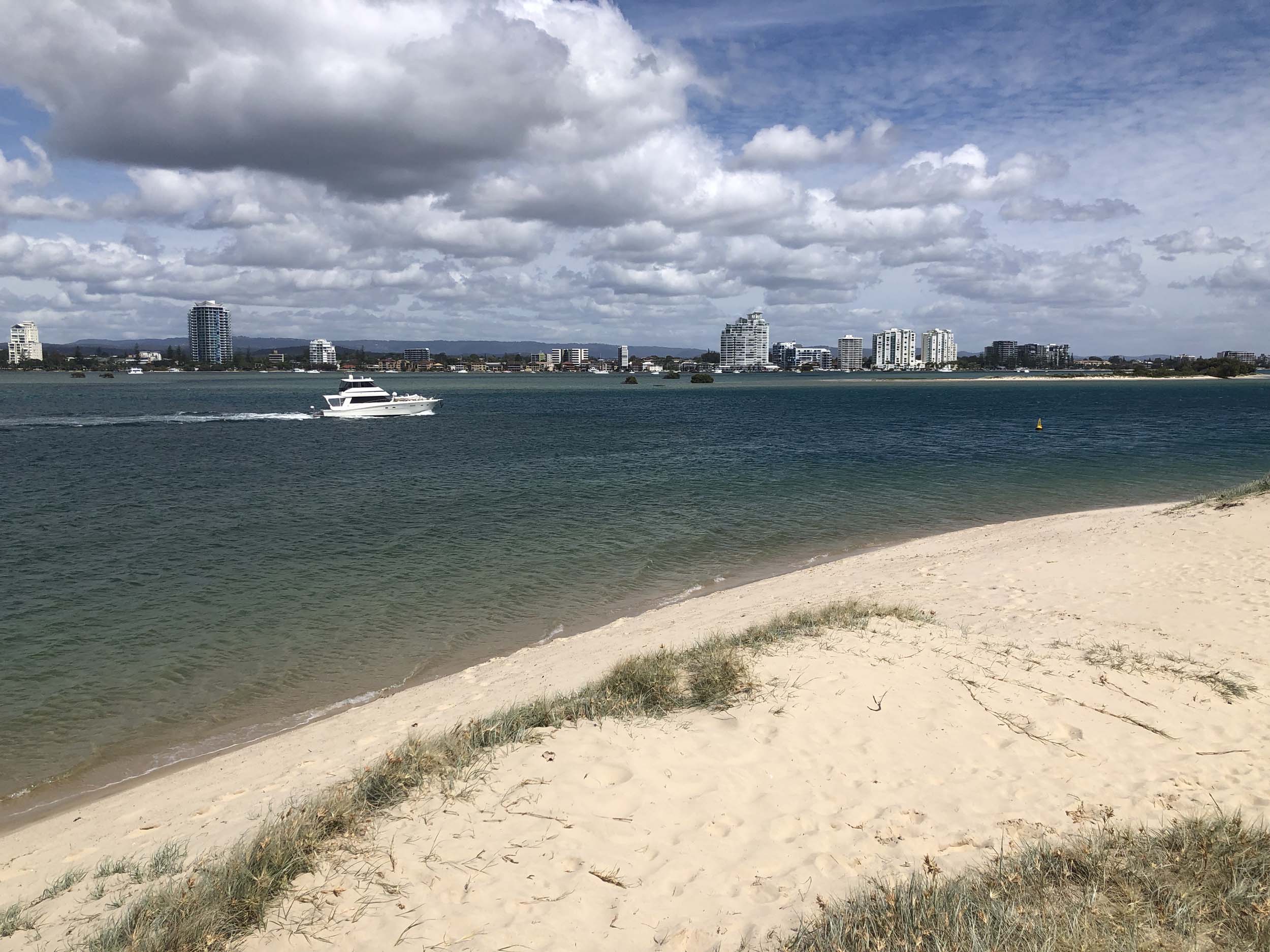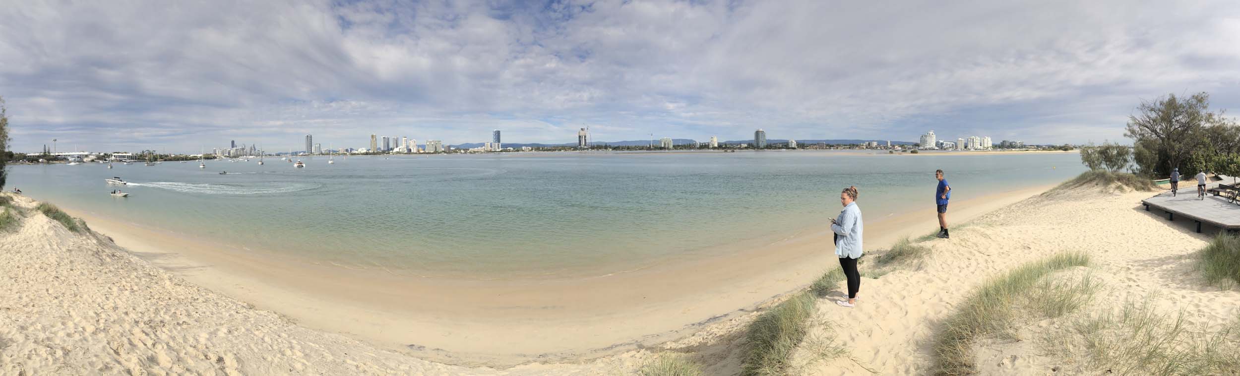 So over the Sundale Bridge, turned left and then along the Shared Path, through the Seaworld carpark, then through the Muriel Henchman Park and off to The Spit.