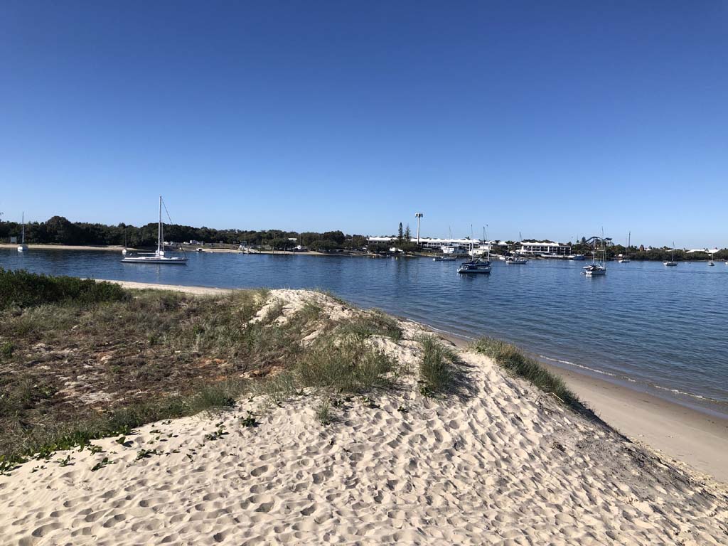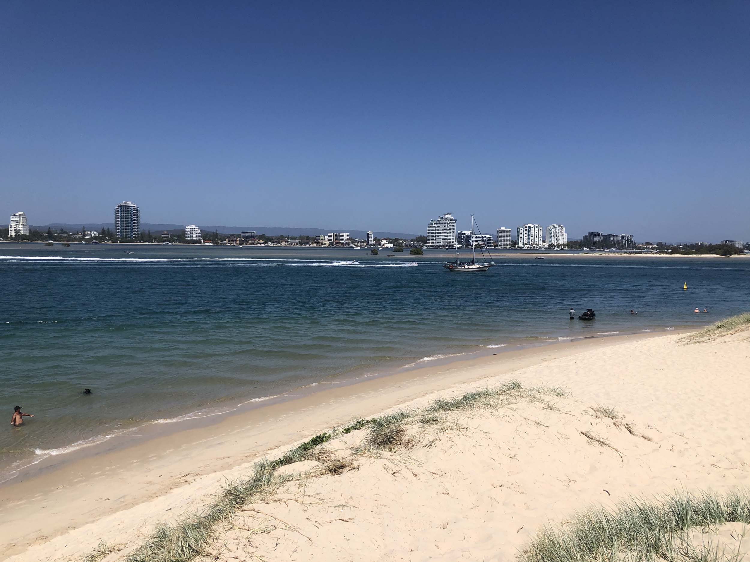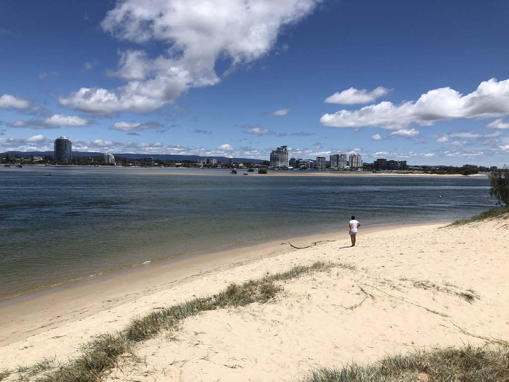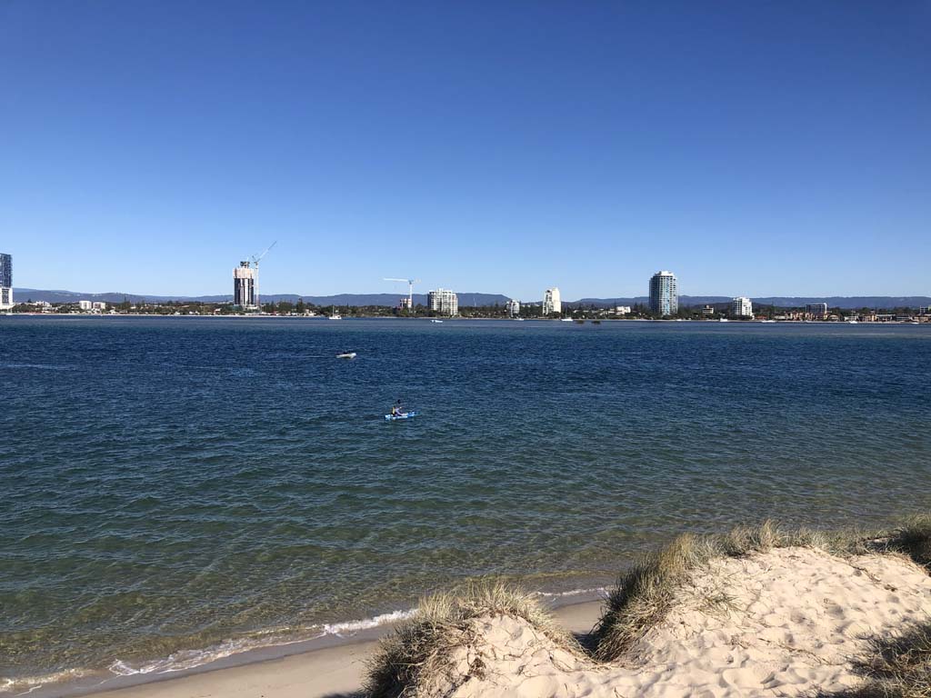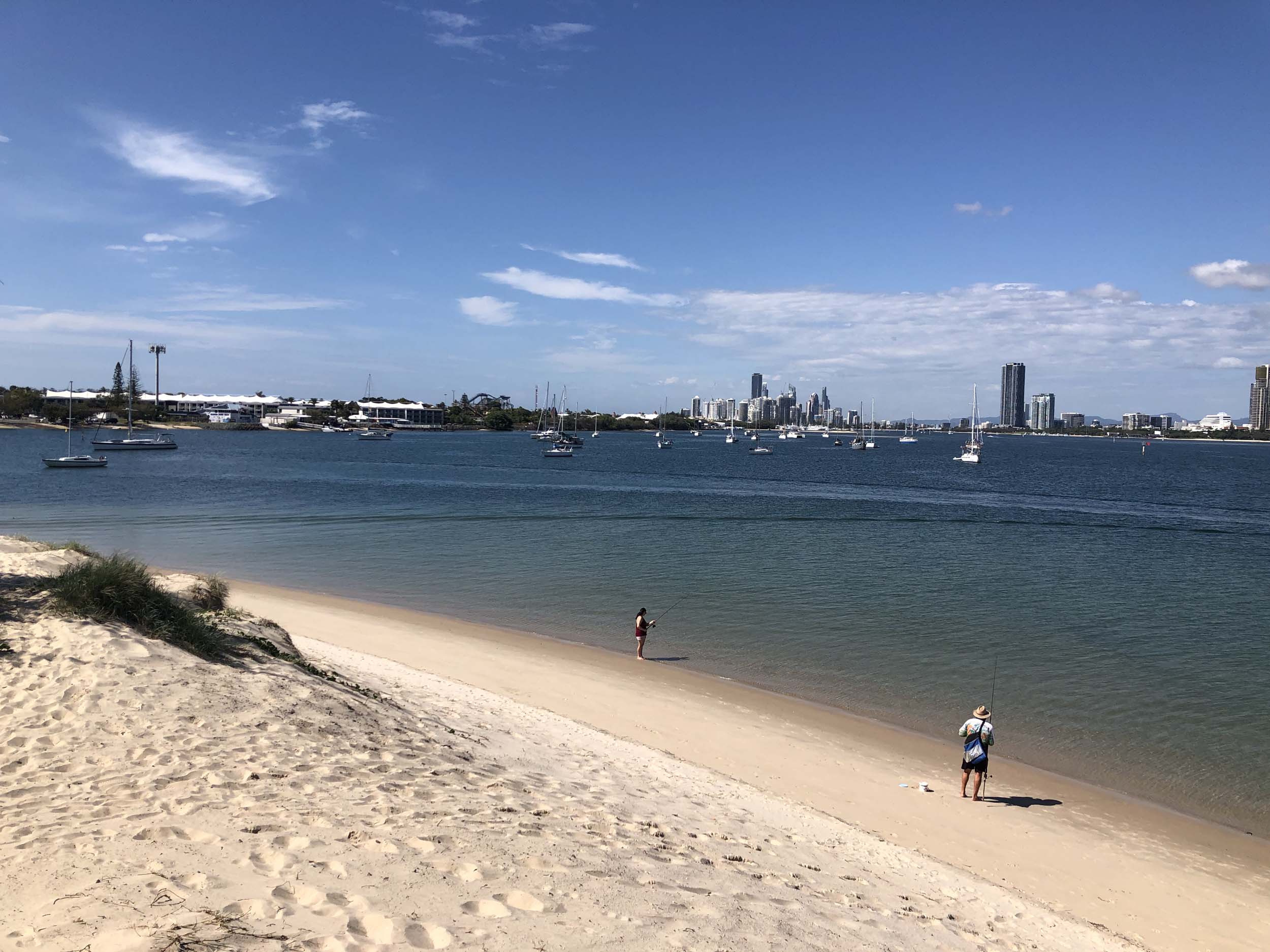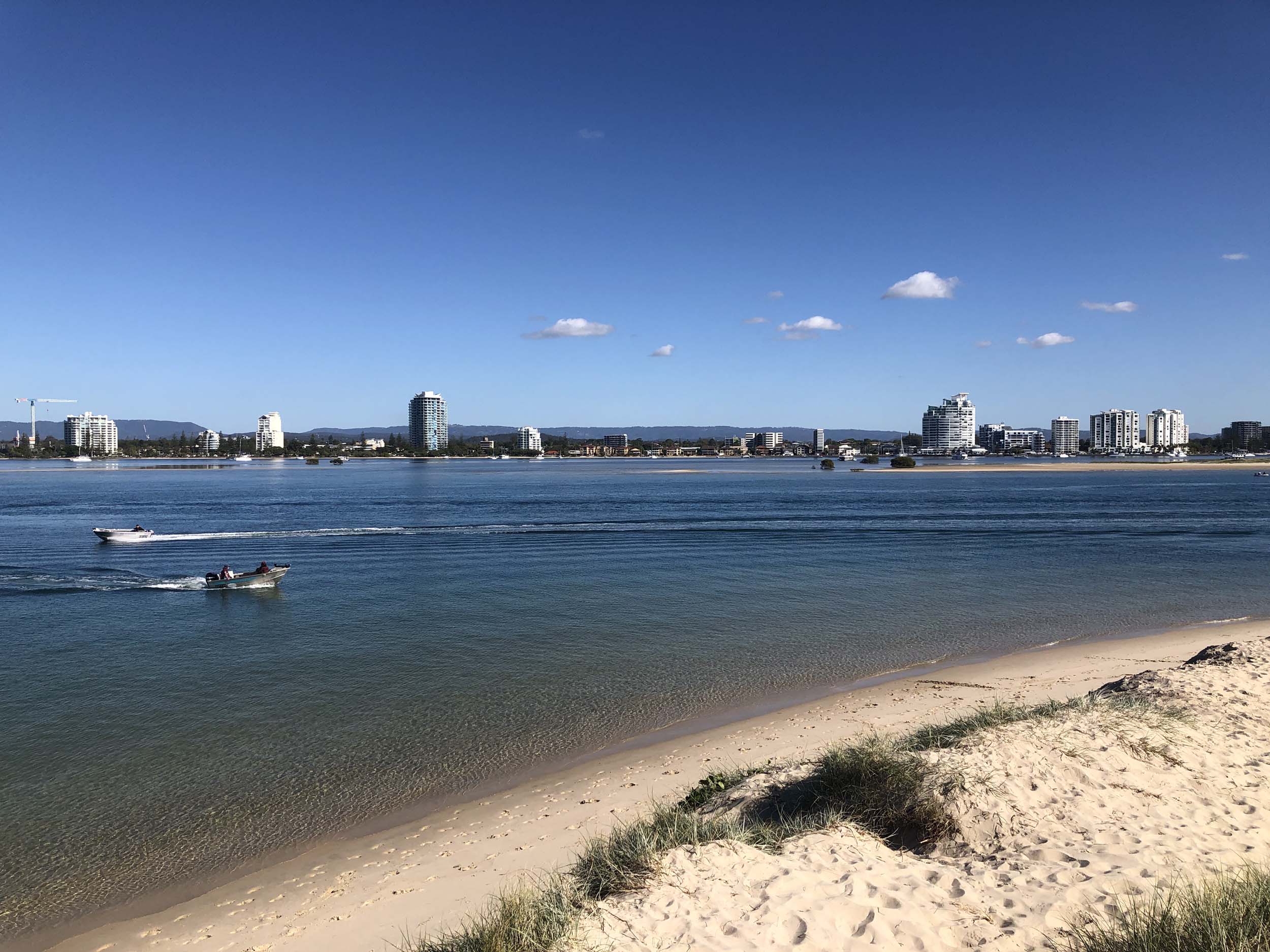 So over the Sundale Bridge, turned left and then along the Shared Path, through the Seaworld carpark, then through the Muriel Henchman Park and off to The Spit.