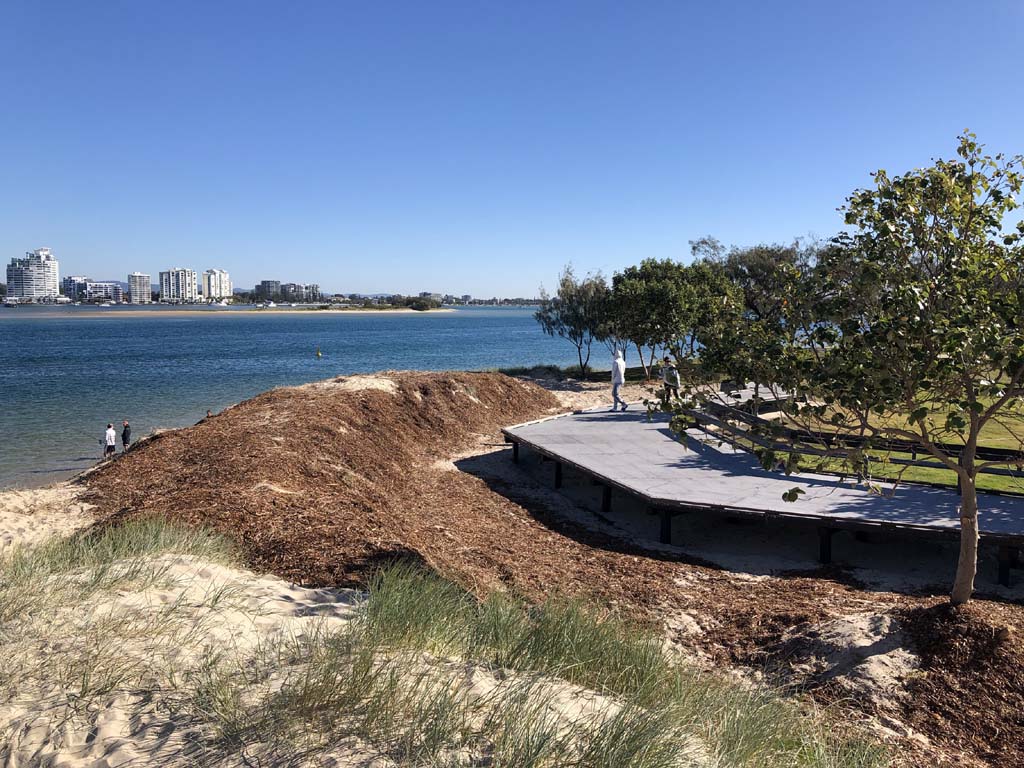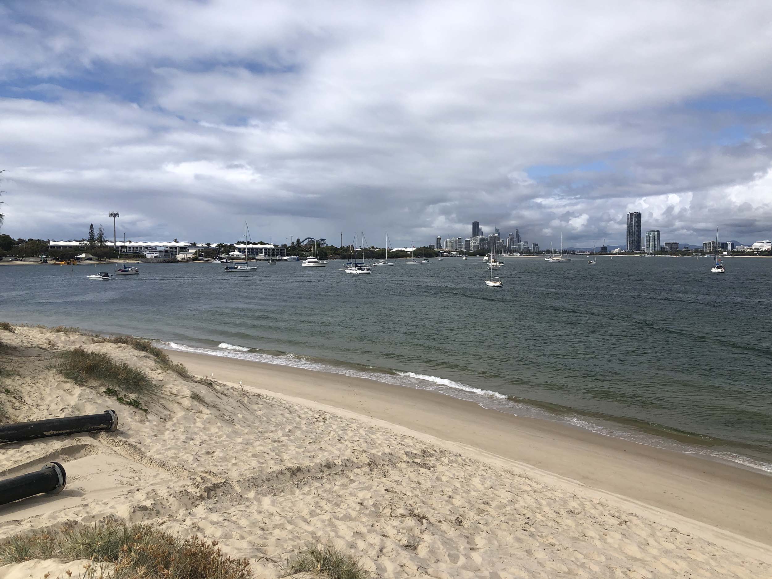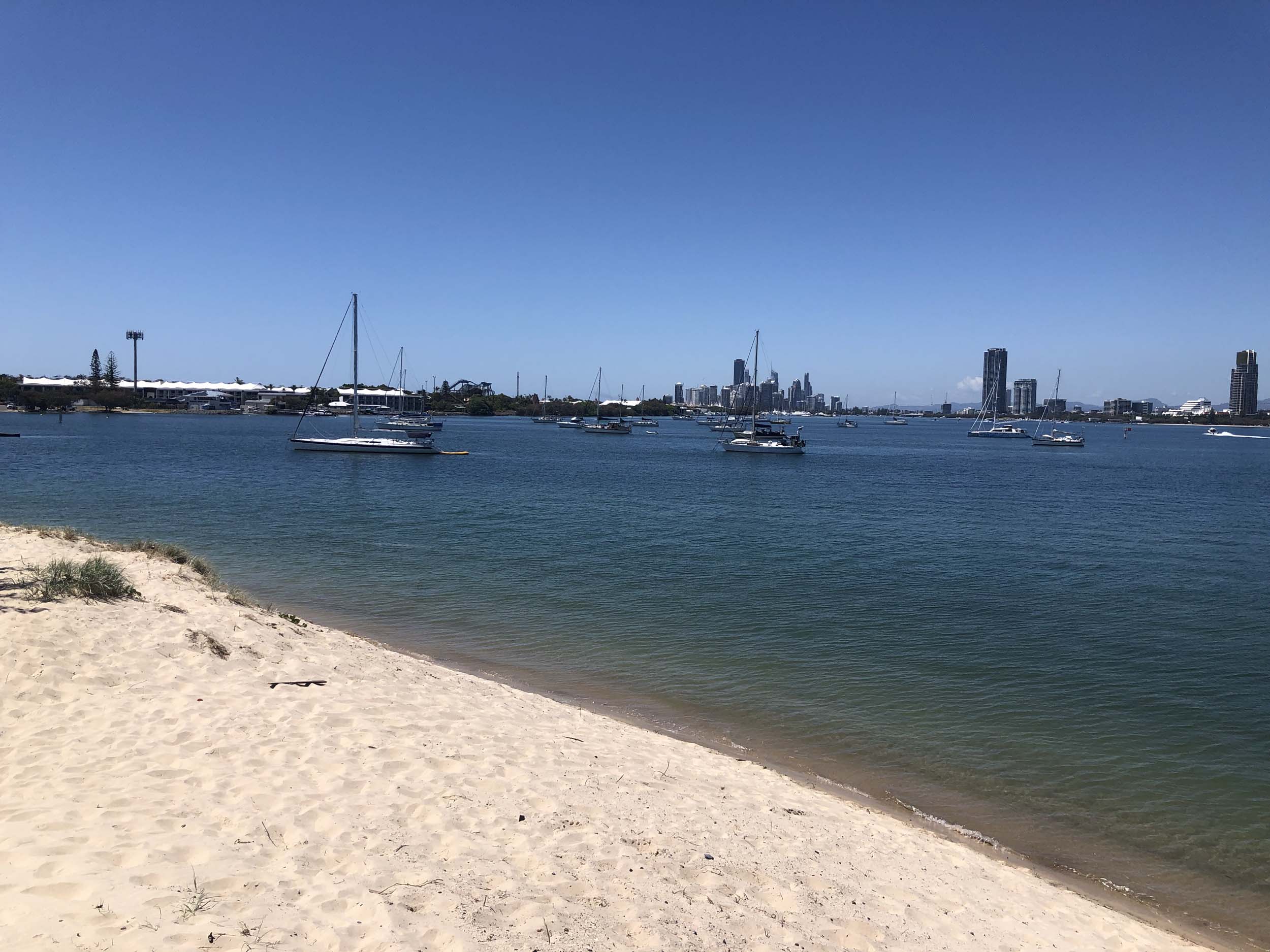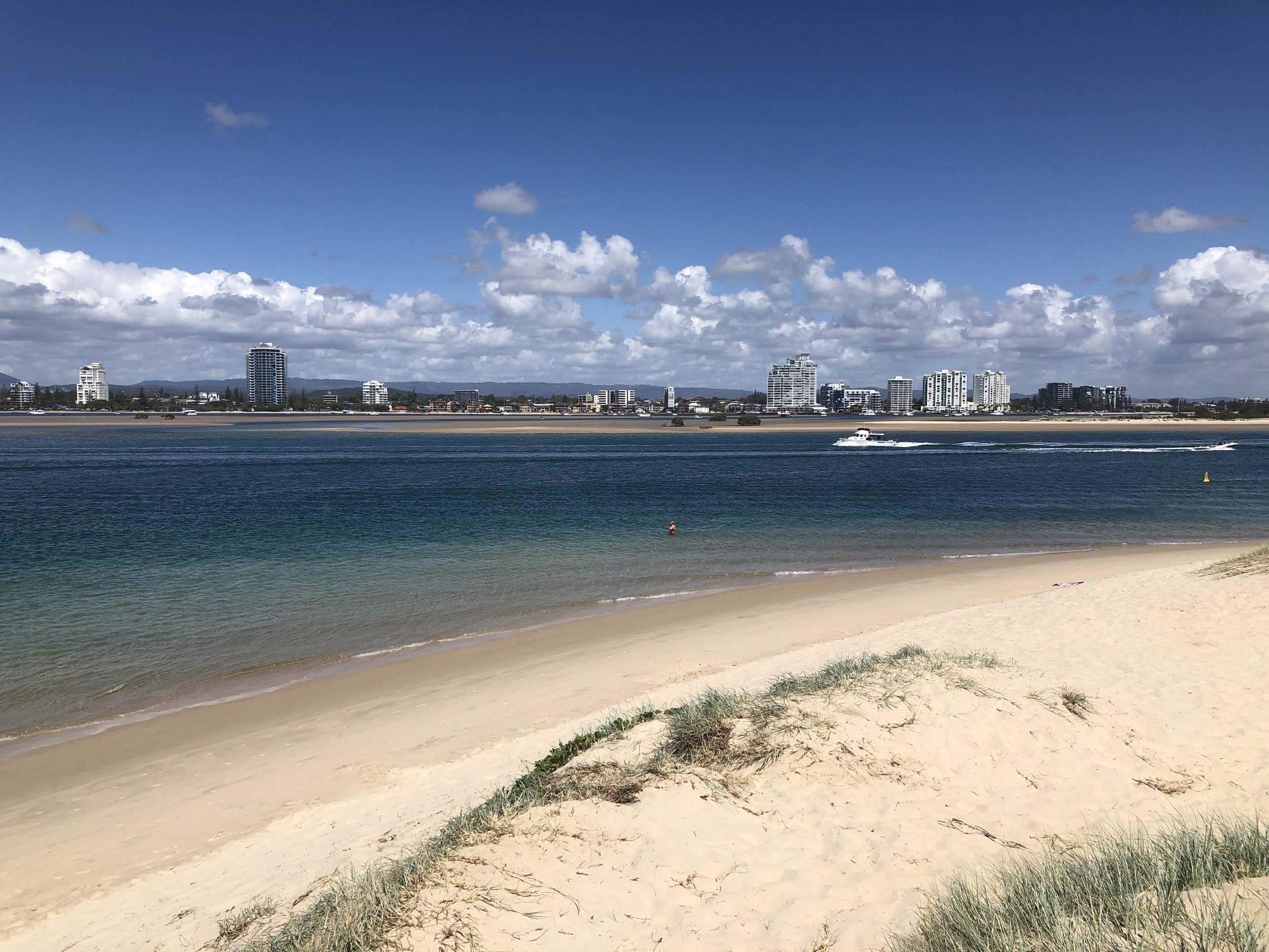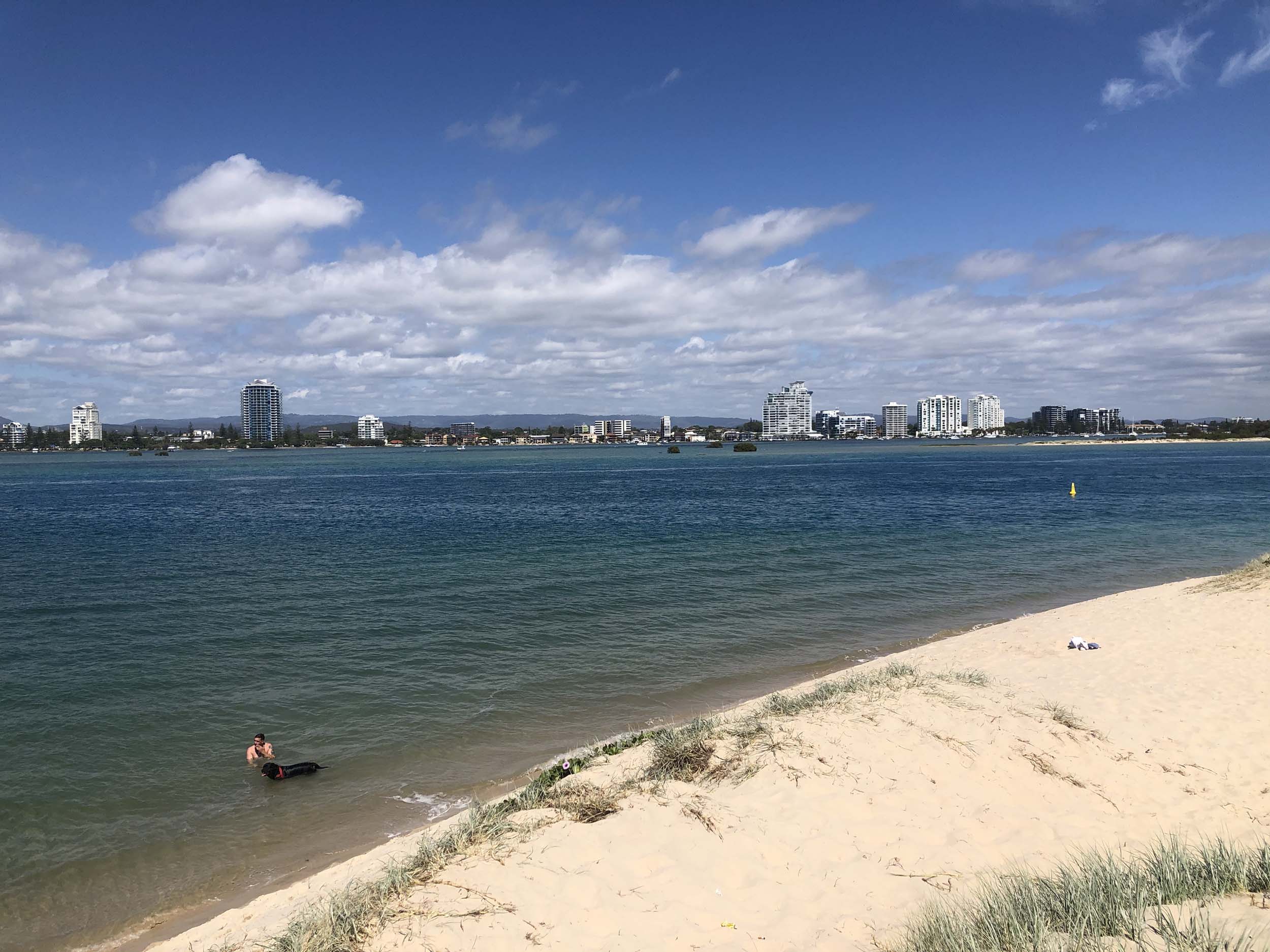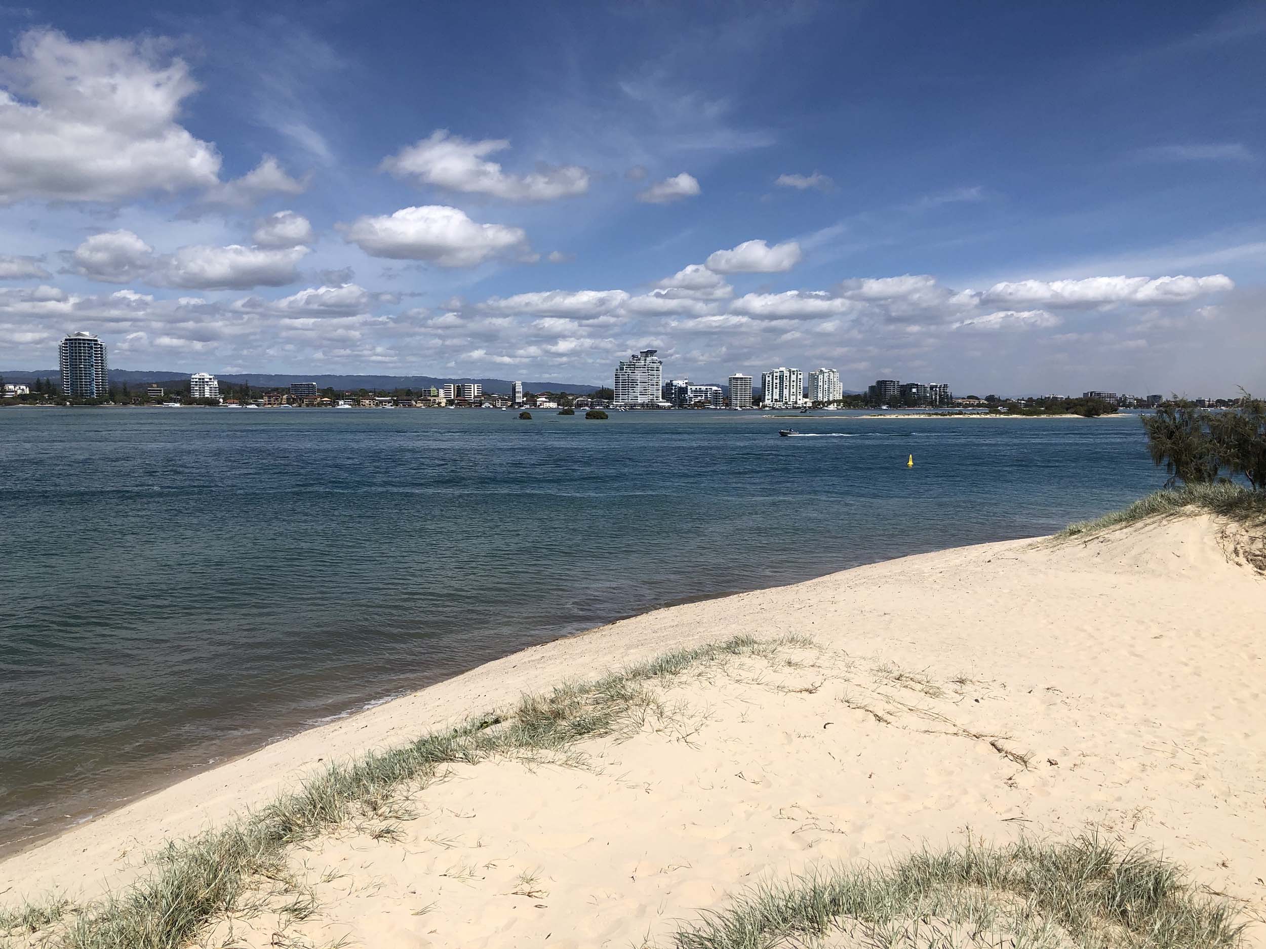 So over the Sundale Bridge, turned left and then along the Shared Path, through the Seaworld carpark, then through the Muriel Henchman Park and off to The Spit.