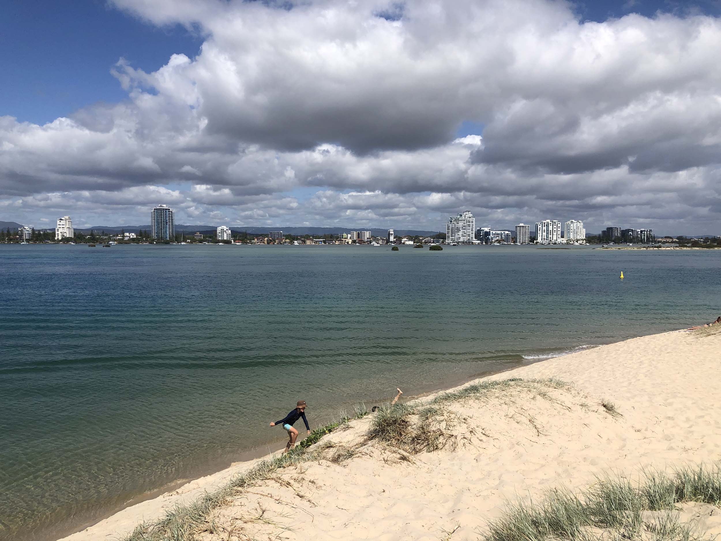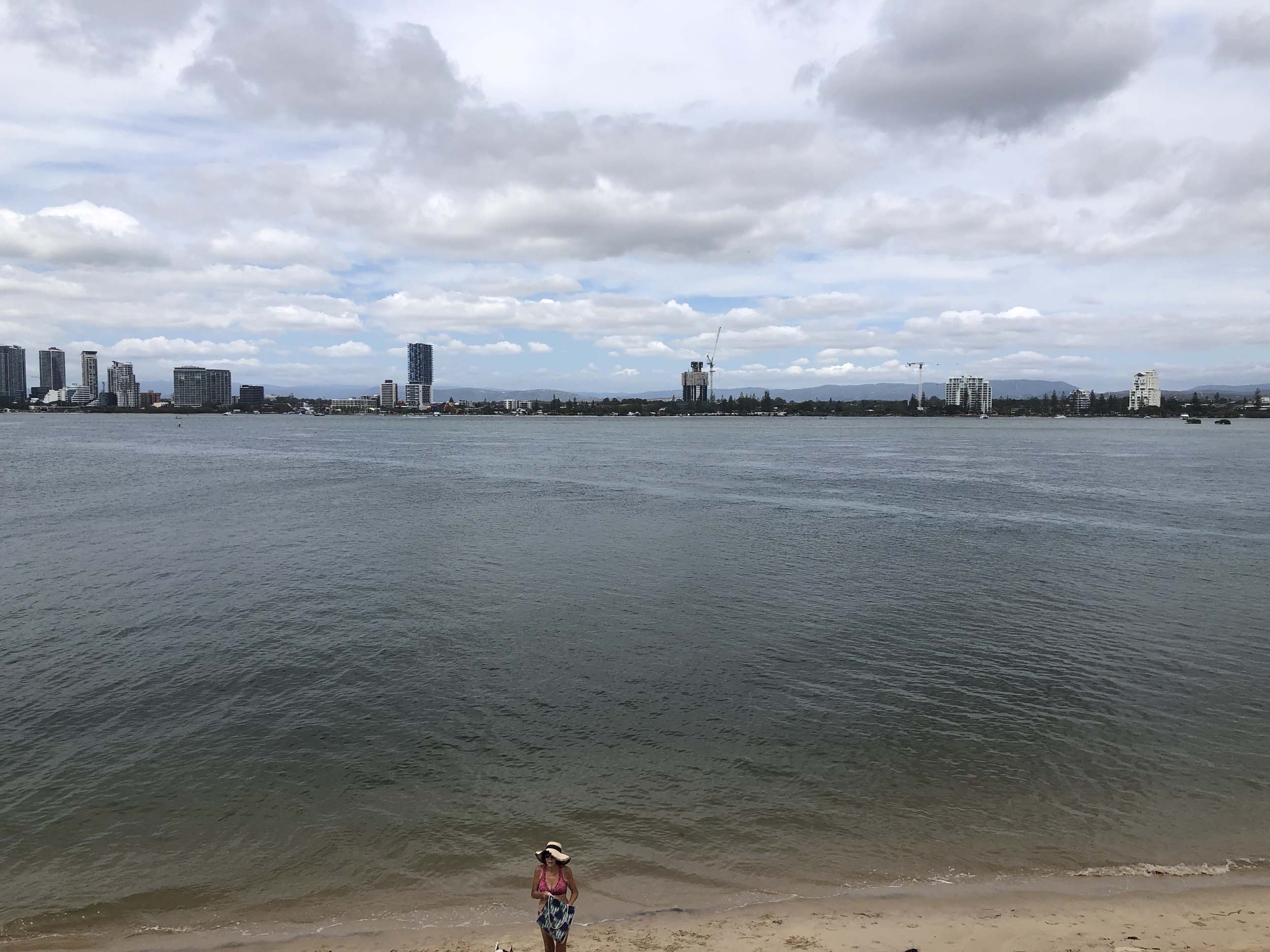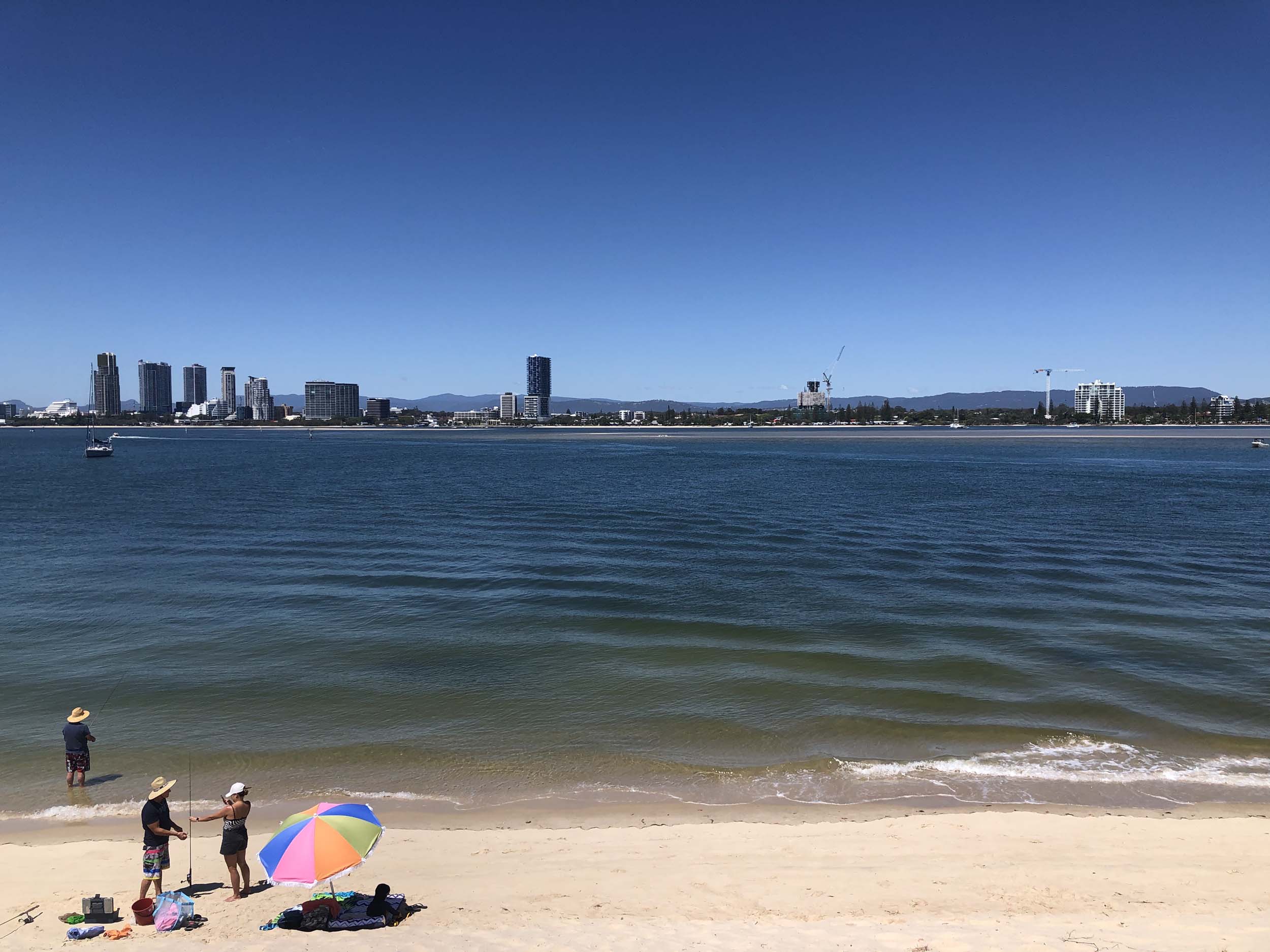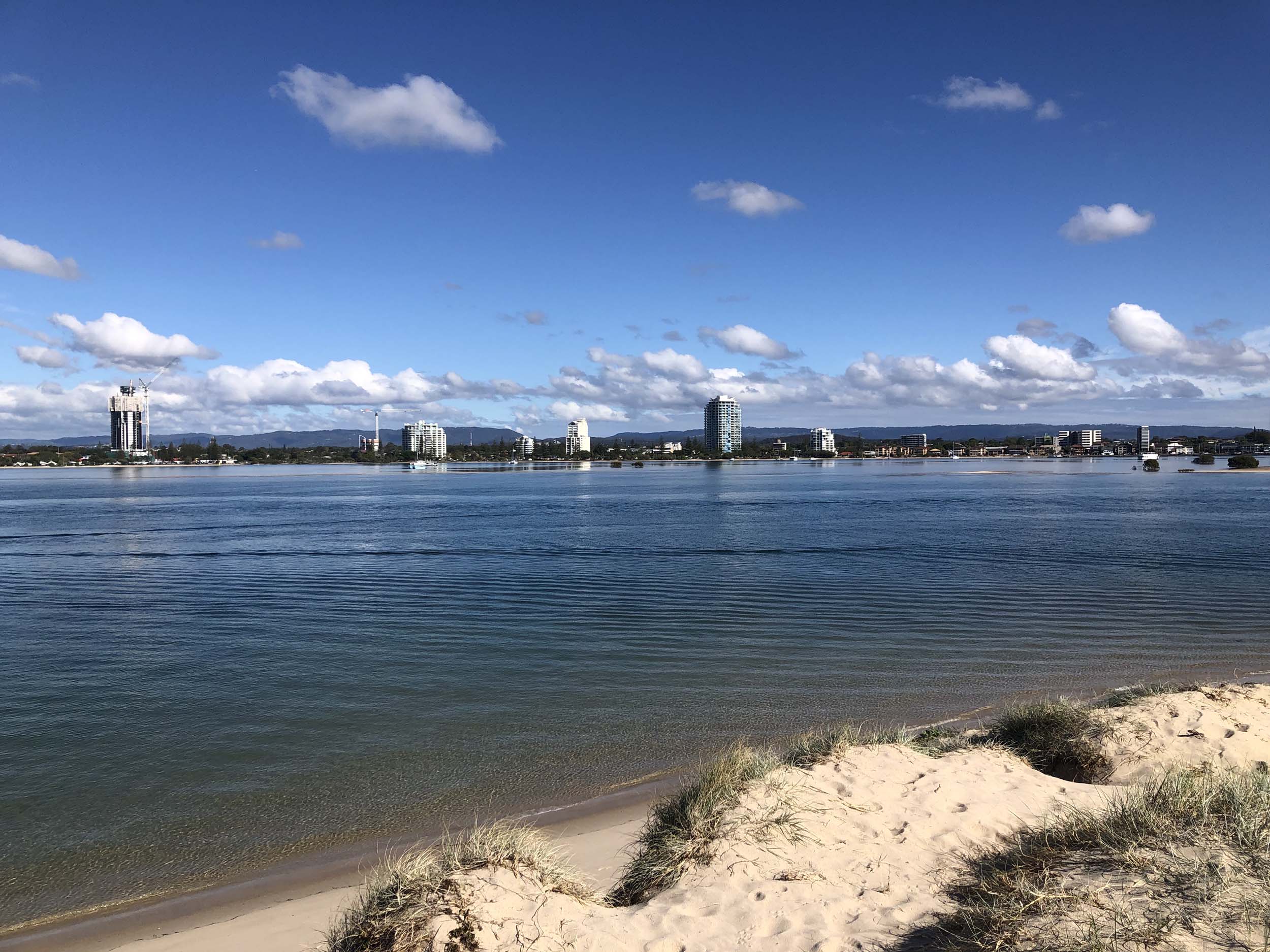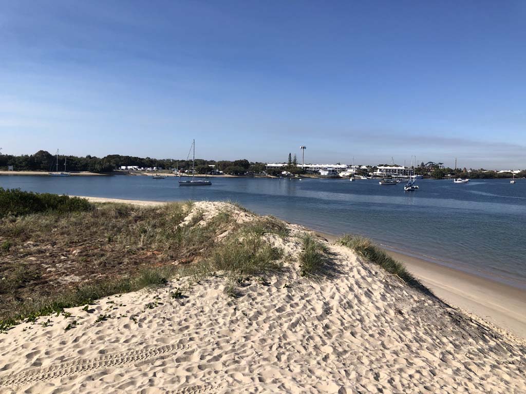 So over the Sundale Bridge, turned left and then along the Shared Path, through the Seaworld carpark, then through the Muriel Henchman Park and off to The Spit.