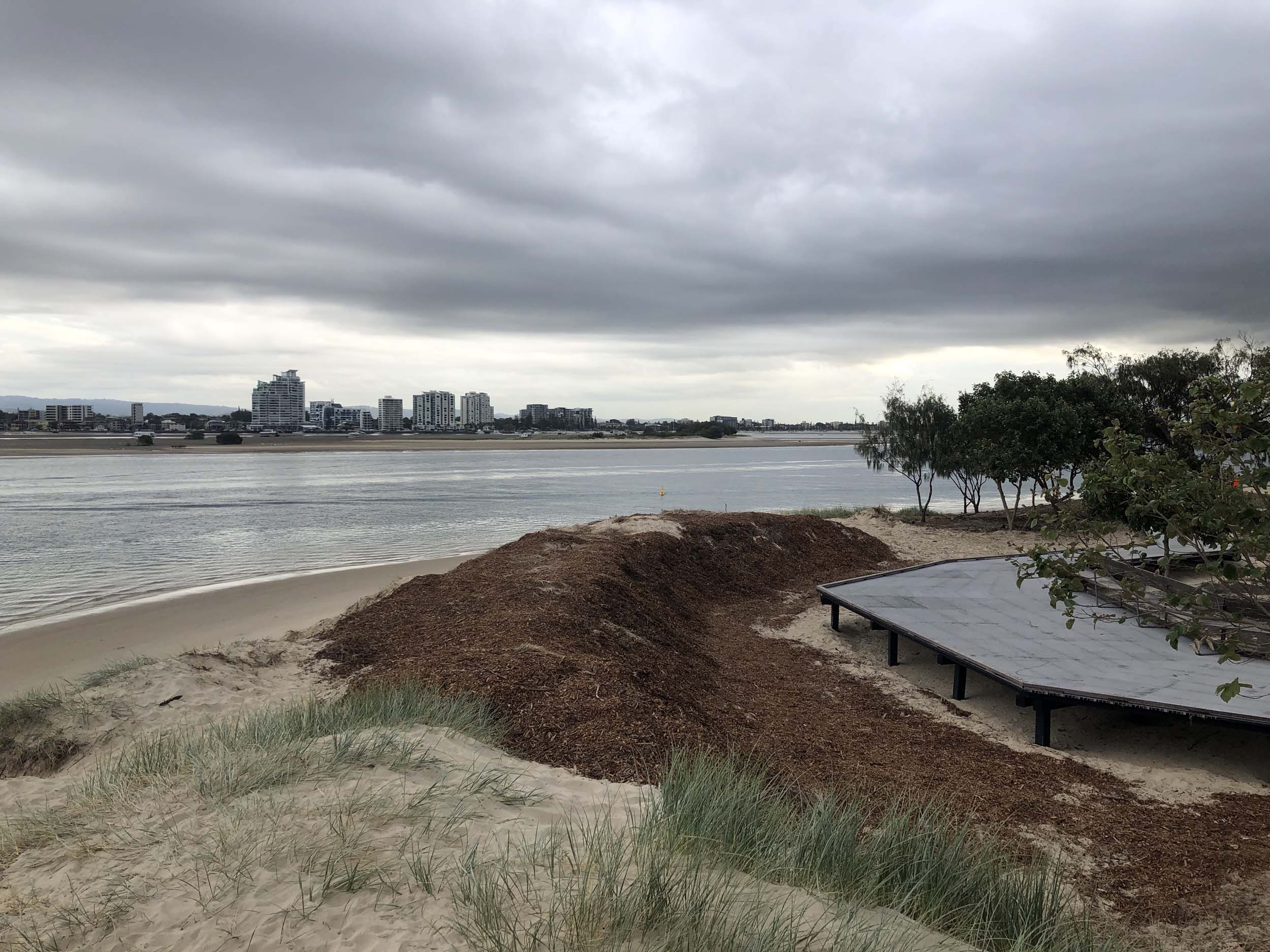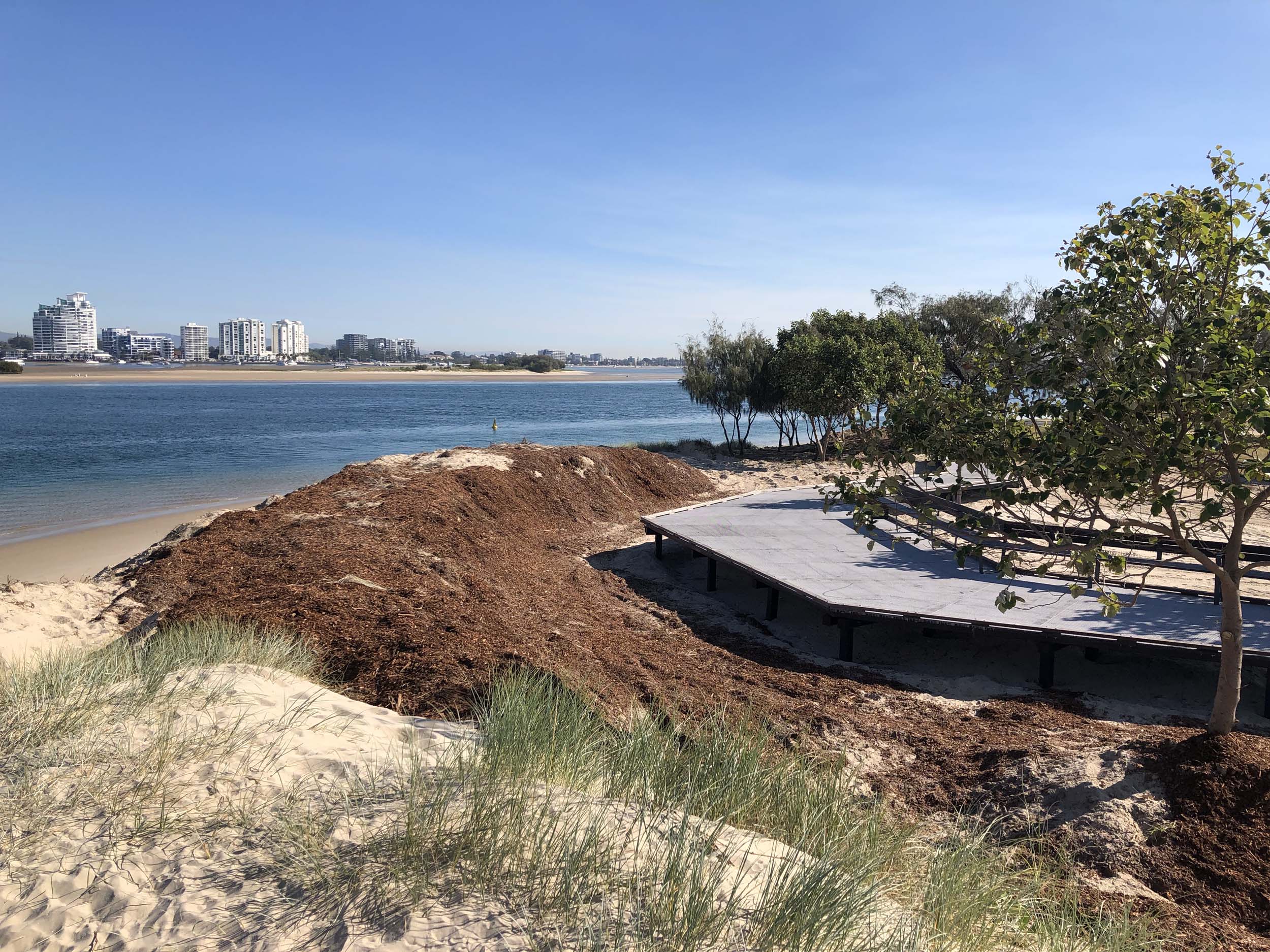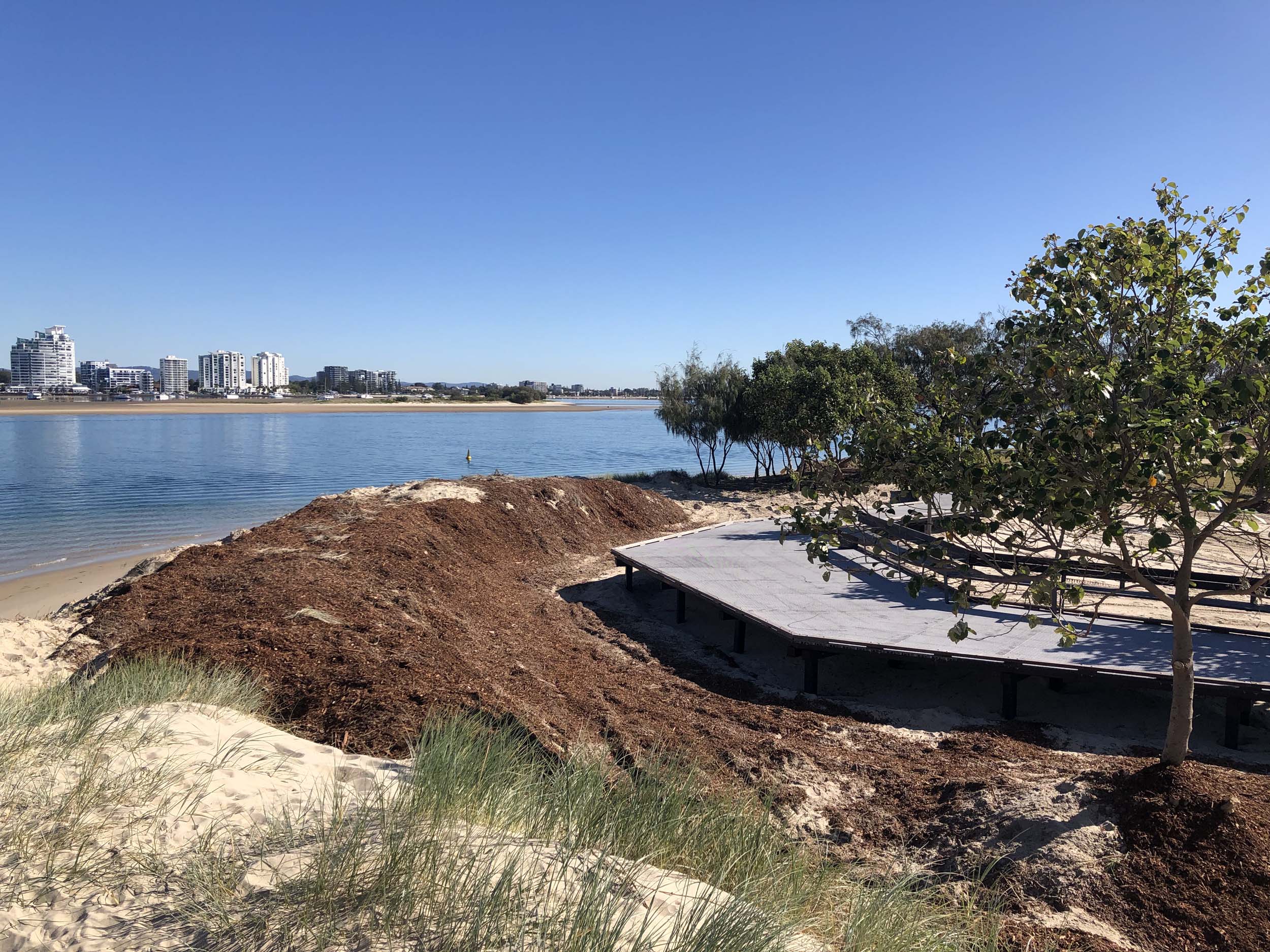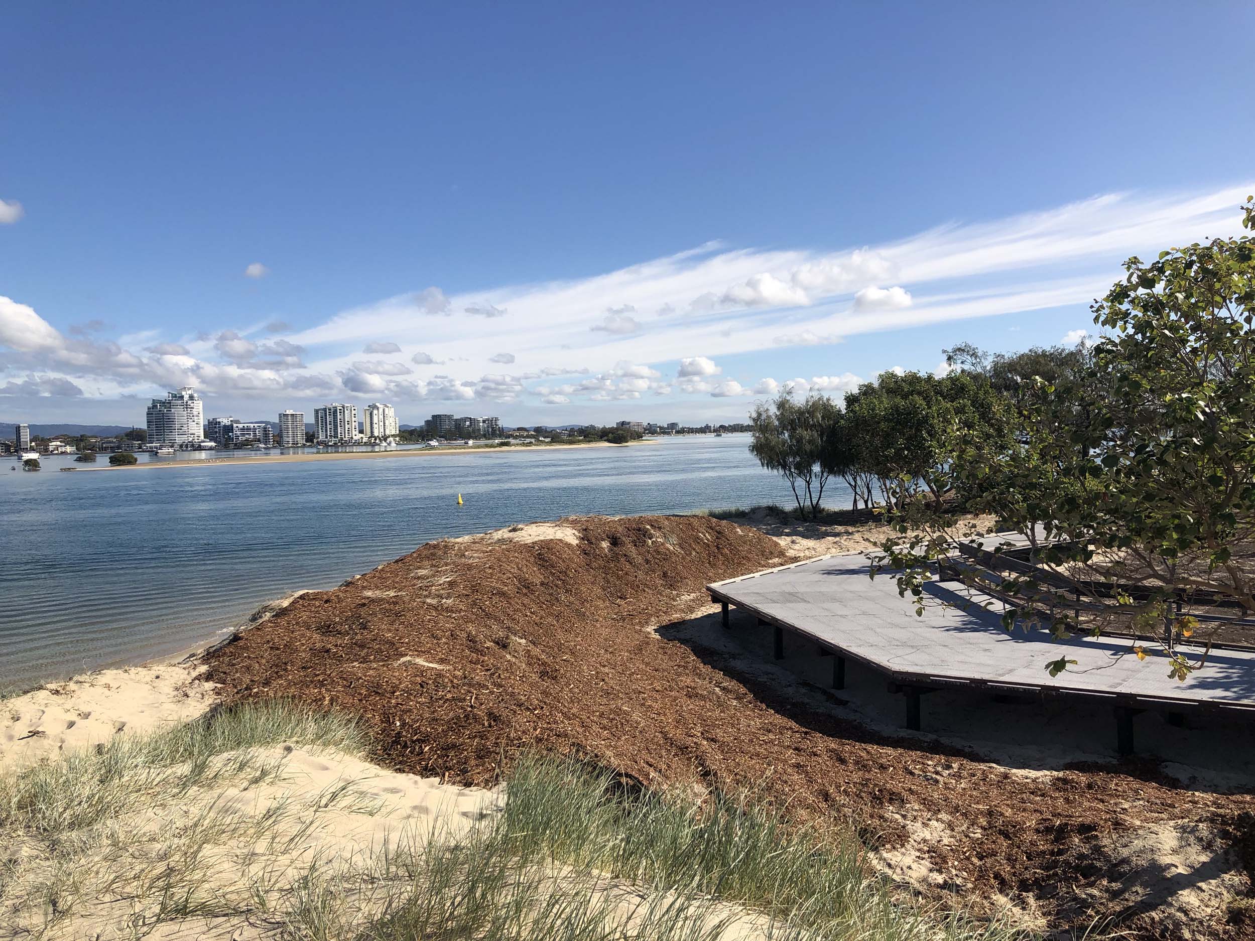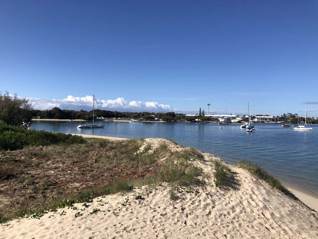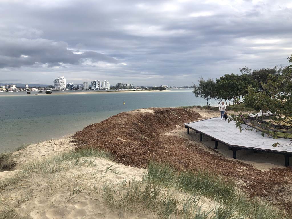 So over the Sundale Bridge, turned left and then along the Shared Path, through the Seaworld carpark, then through the Muriel Henchman Park and off to The Spit.