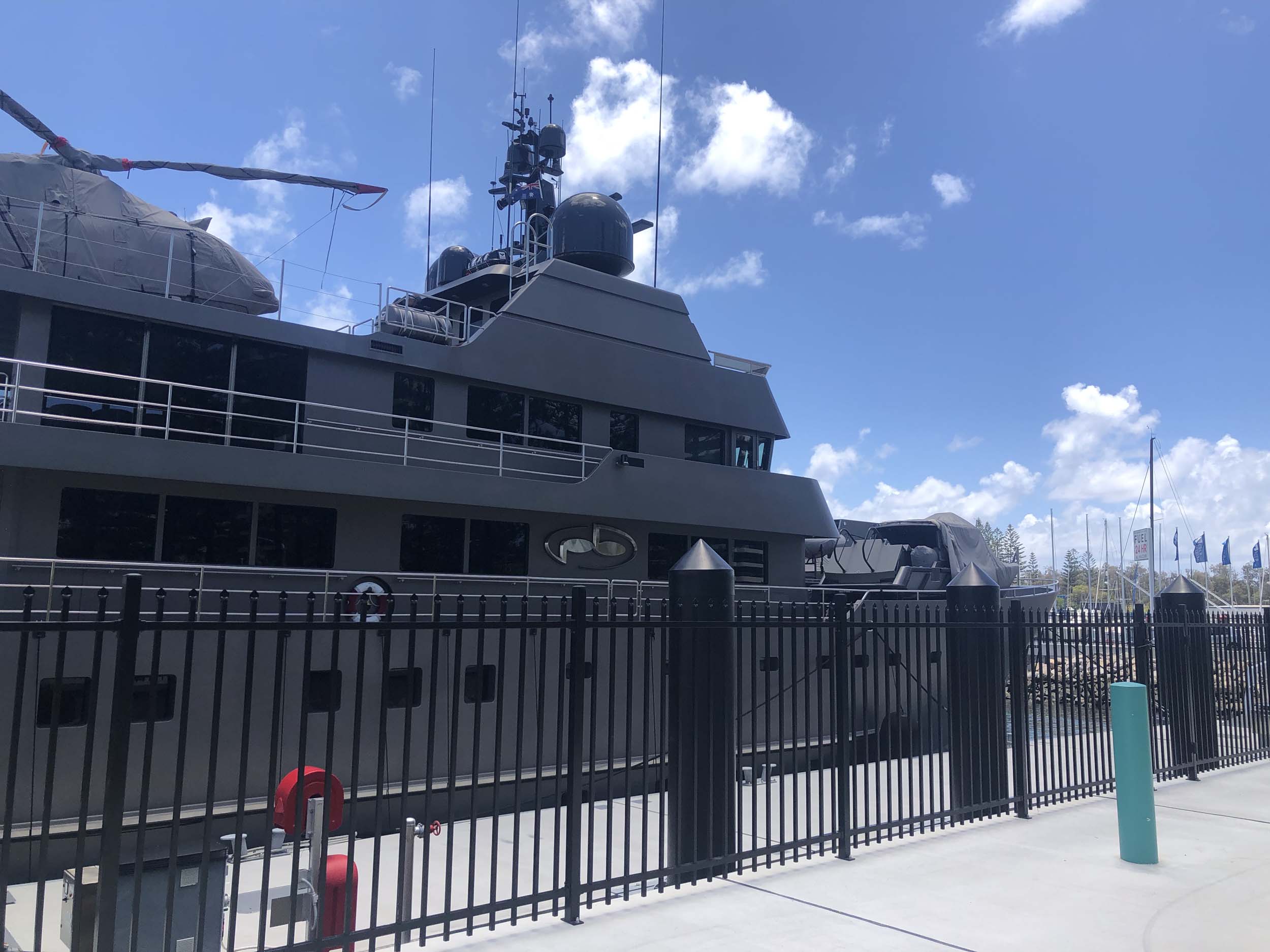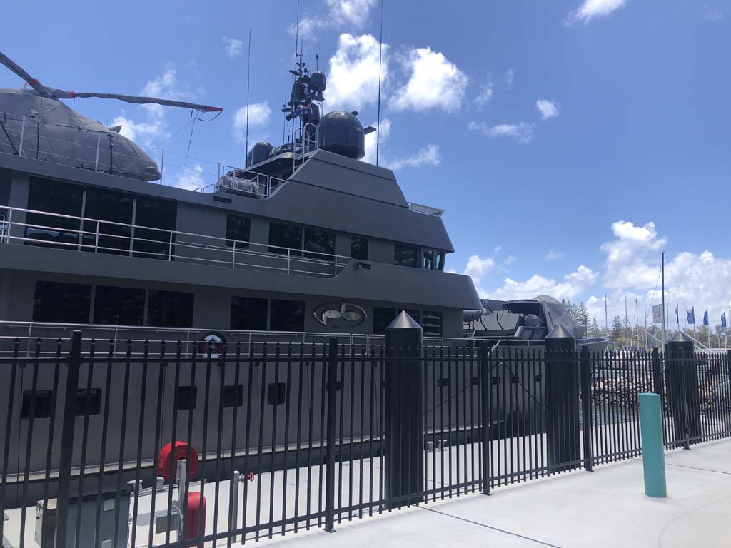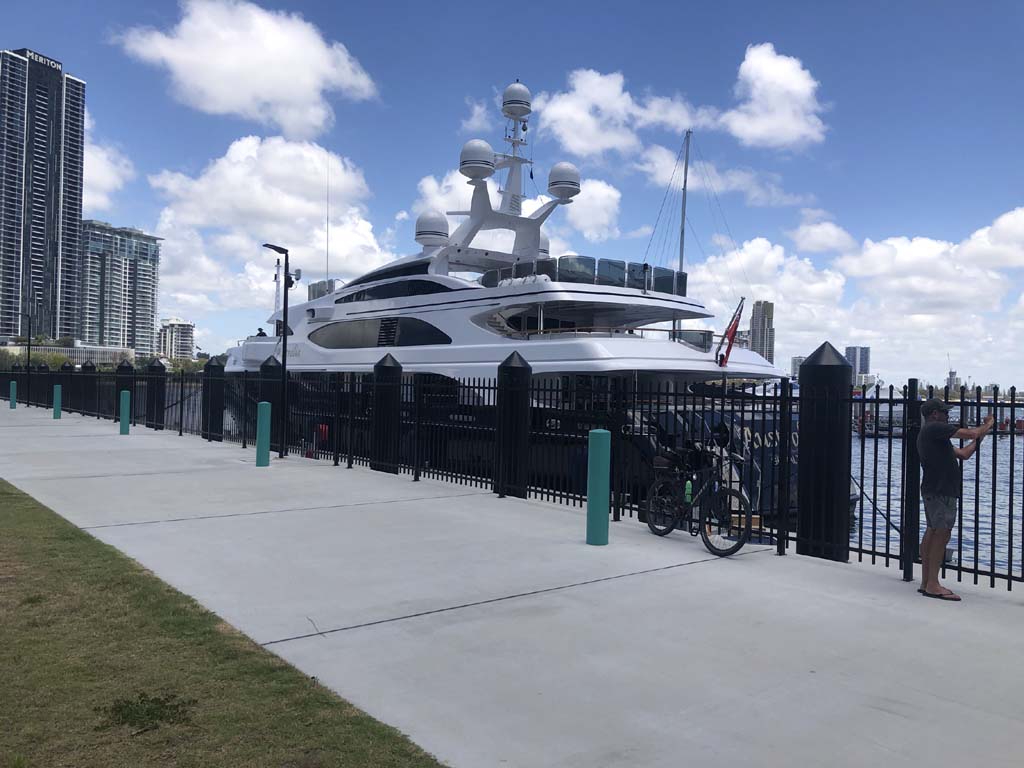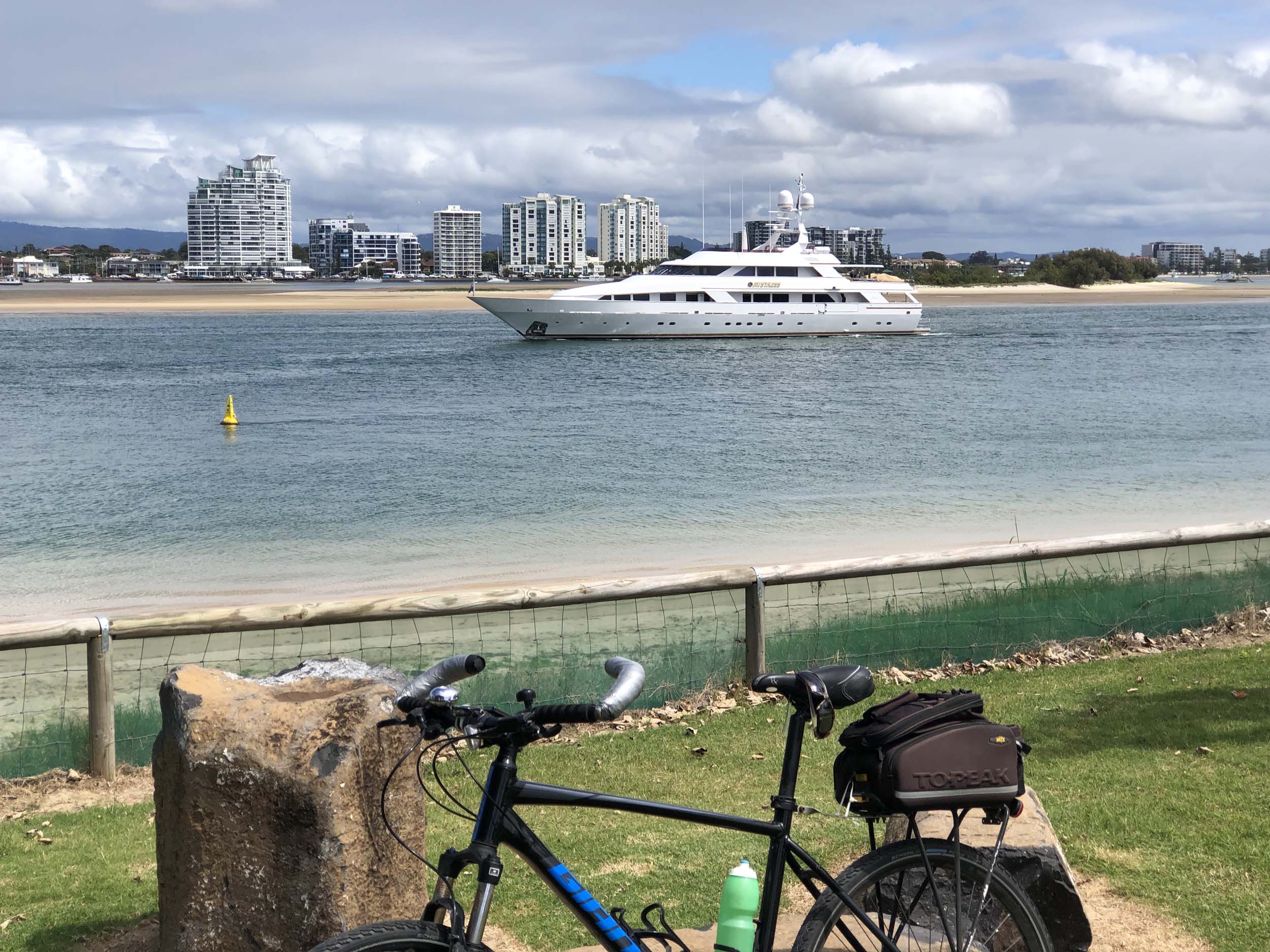 I left The Spit, and continued along the Shared Path that runs beside Seaworld Drive, rode through Muriel Henchman park, did a lap of the Seaworld carpark, then past Helitours which is on the jetty. Continued past the Southport Yacht Club, took a photo of Clive Palmer's $40m tinny.