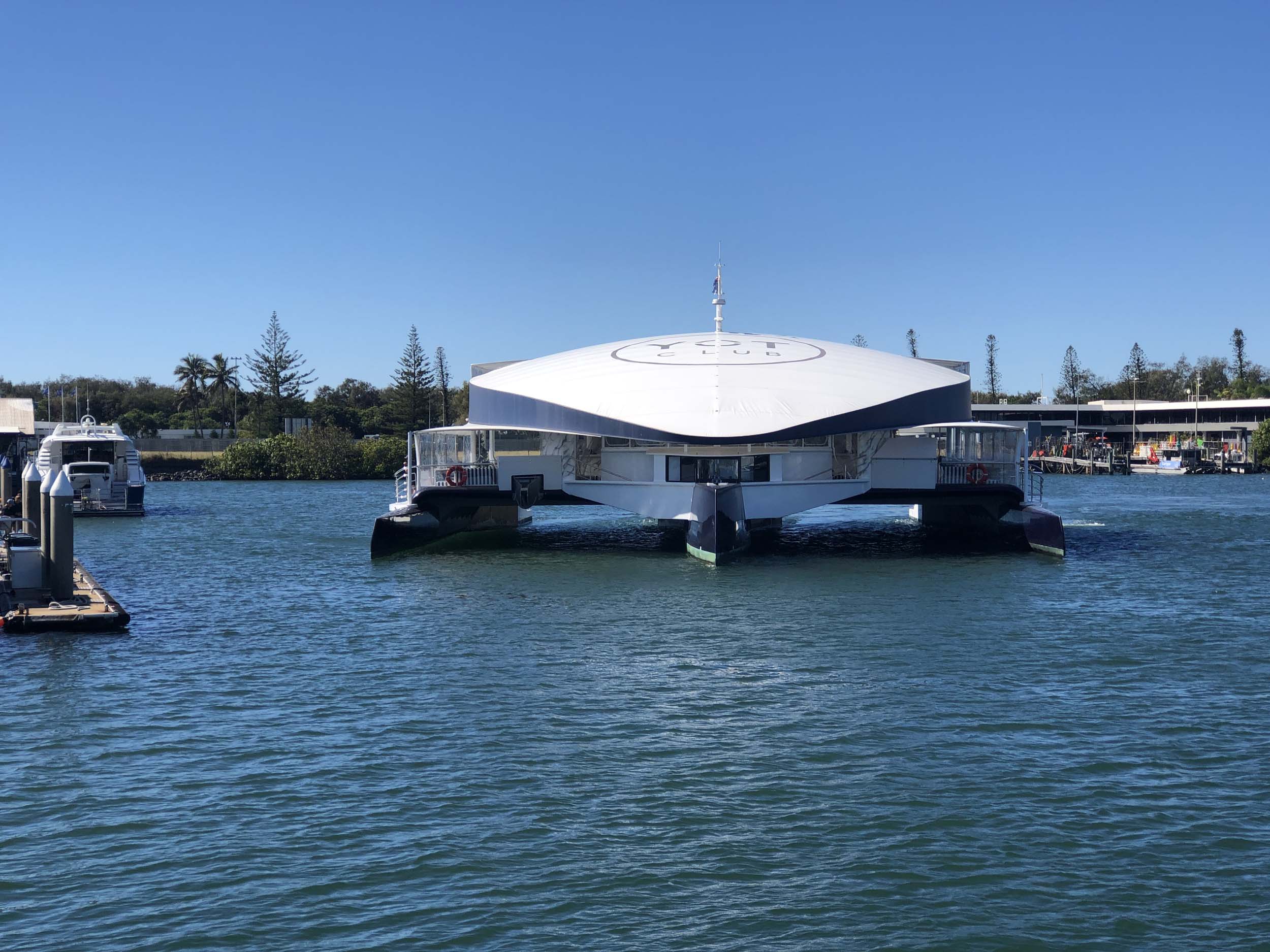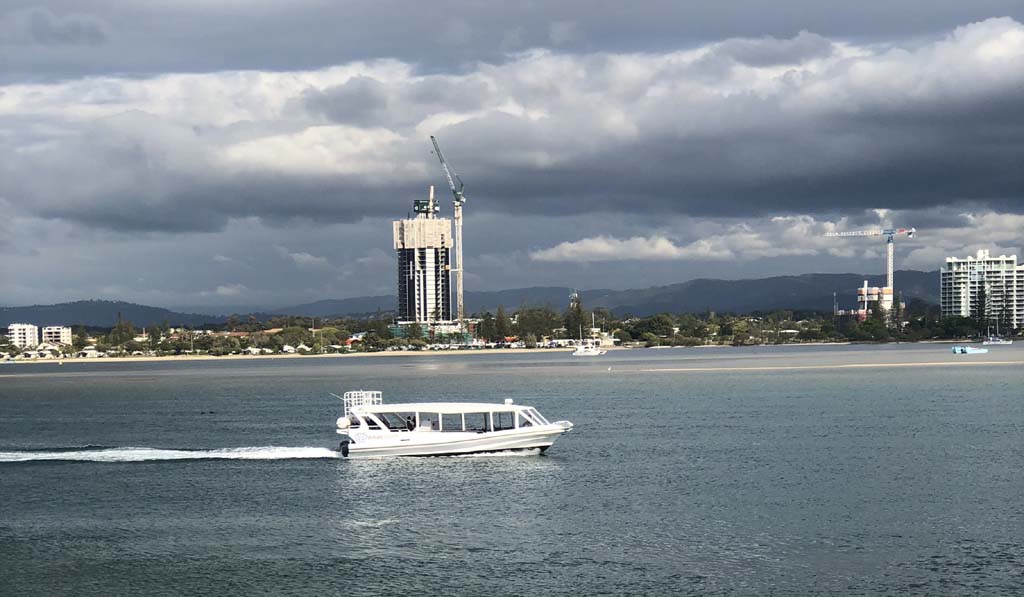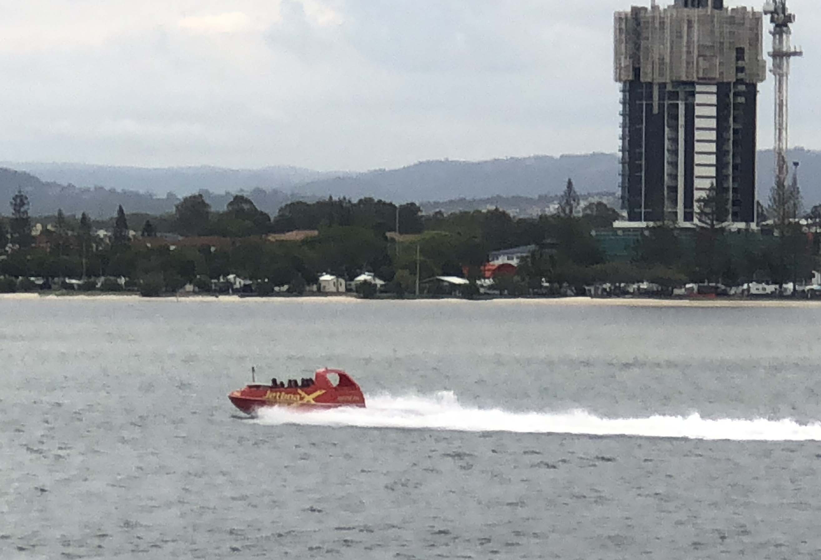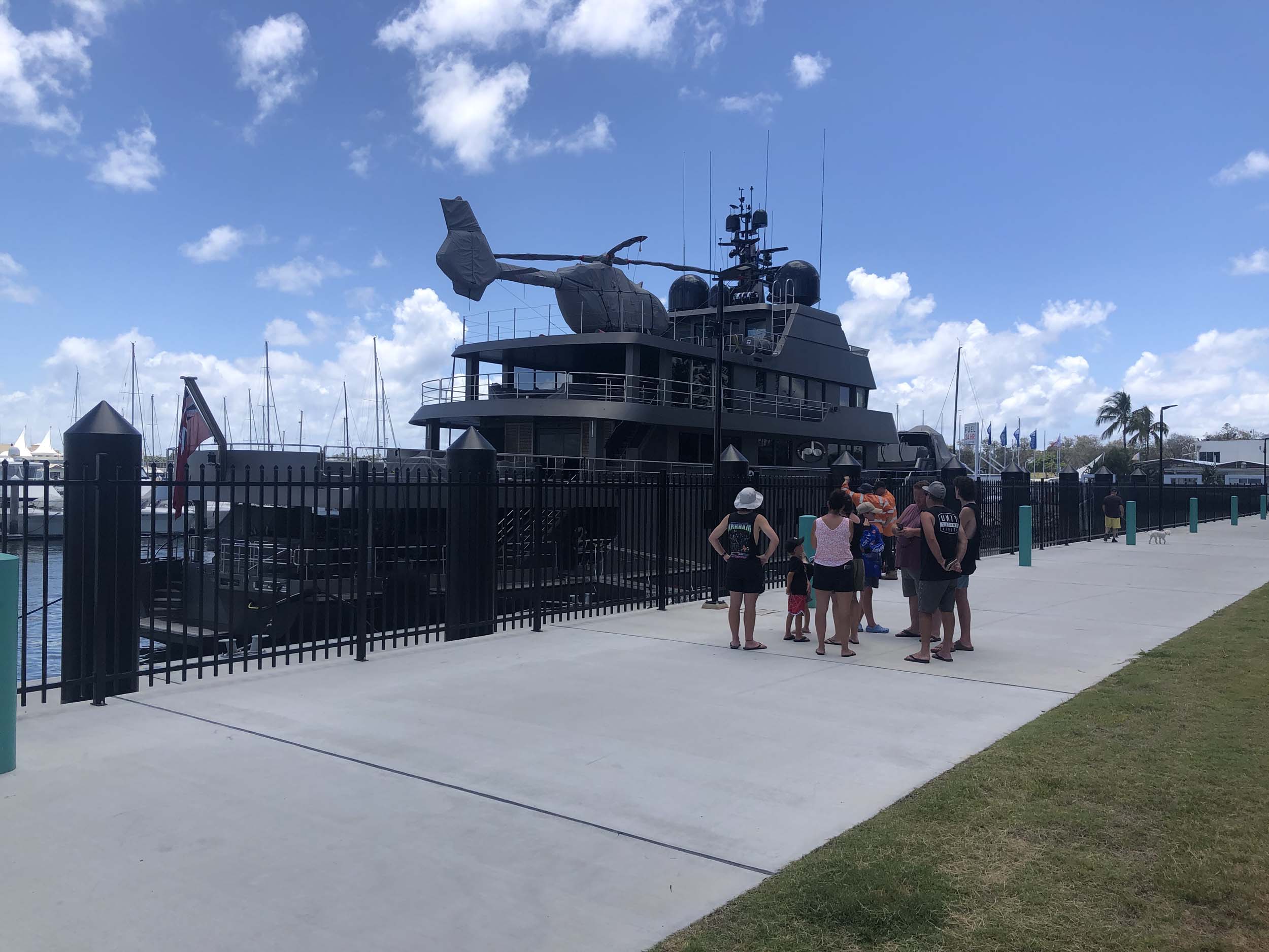 I left The Spit, and continued along the Shared Path that runs beside Seaworld Drive, rode through Muriel Henchman park, did a lap of the Seaworld carpark, then past Helitours which is on the jetty. Continued past the Southport Yacht Club, took a photo of Clive Palmer's $40m tinny.