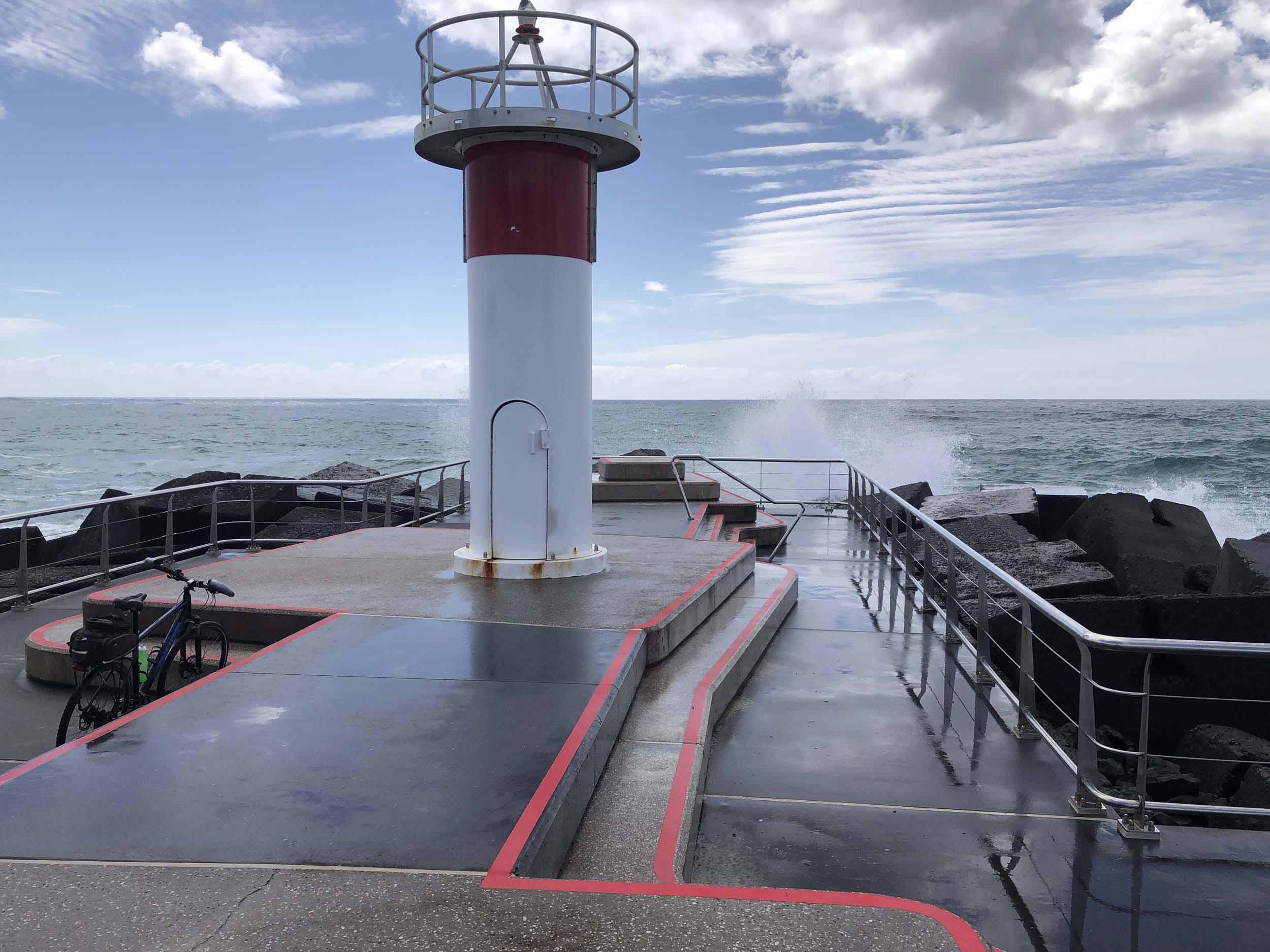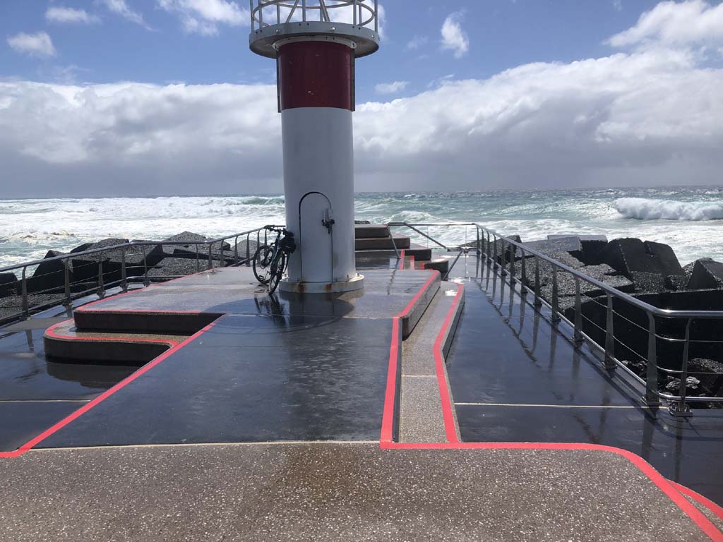 Headed off towards The Seaway/Spit, via the Federation Walk. Continued riding to the tip of the Seawall/Spit. Stopped and took my photos and didn't eat my banana, as the end of The Spit was covered in spray, then rode to the tip of the Moondarewa Spit, took more photos then did another lap to both Spits.