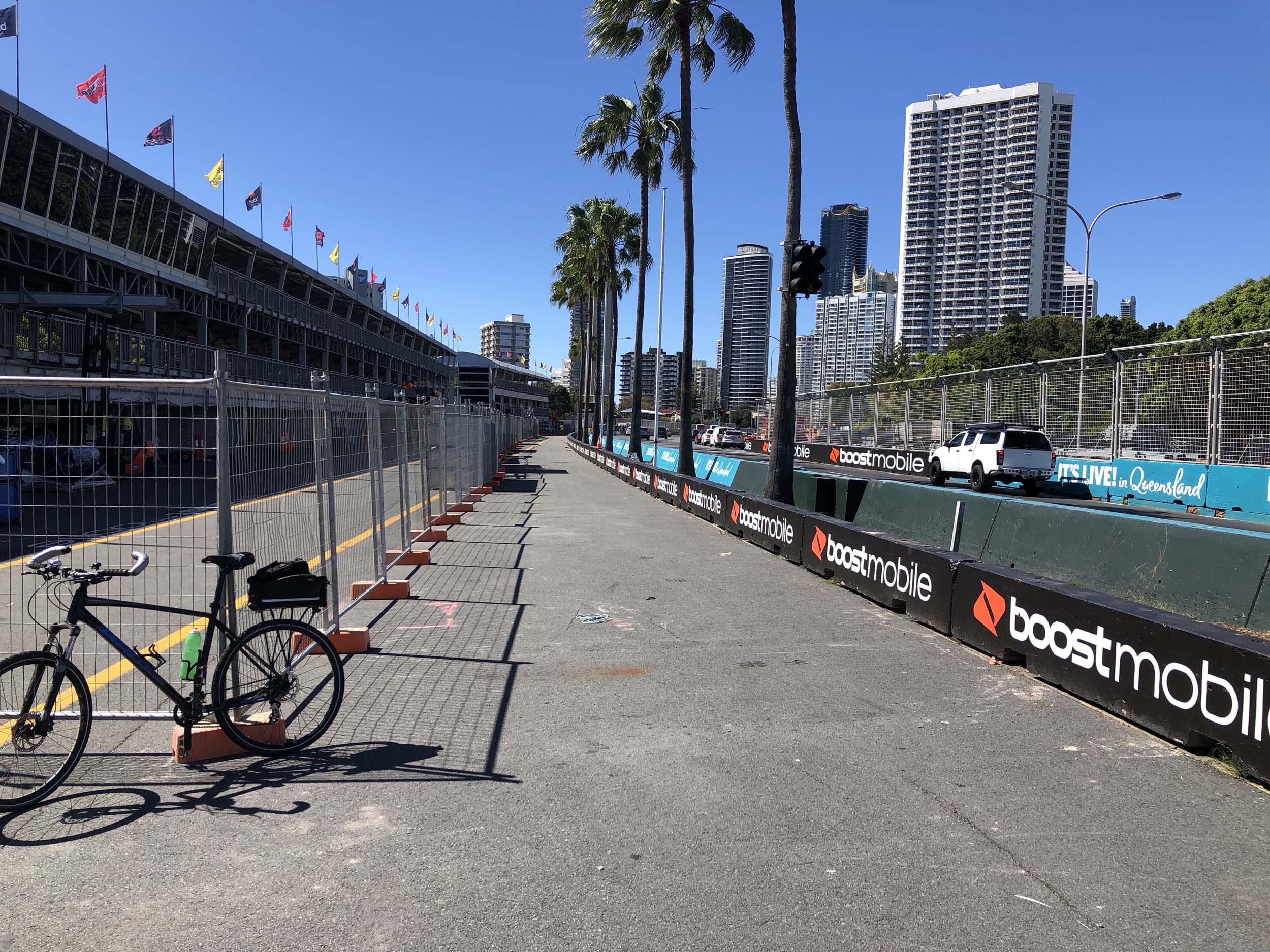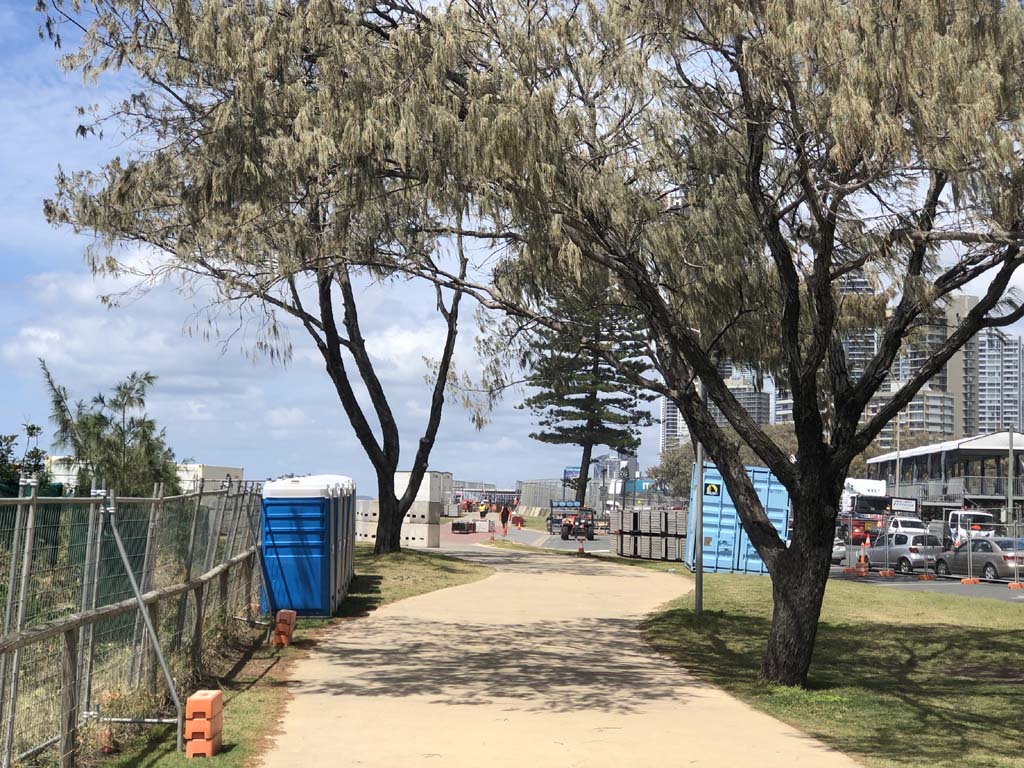 Checked out the progress of setting up for the Supercar round. Over the Bridge at Narrowneck then along the Shared Path, to Surfers, to take my weather photos.