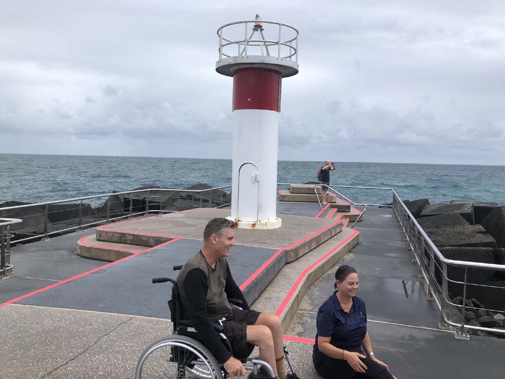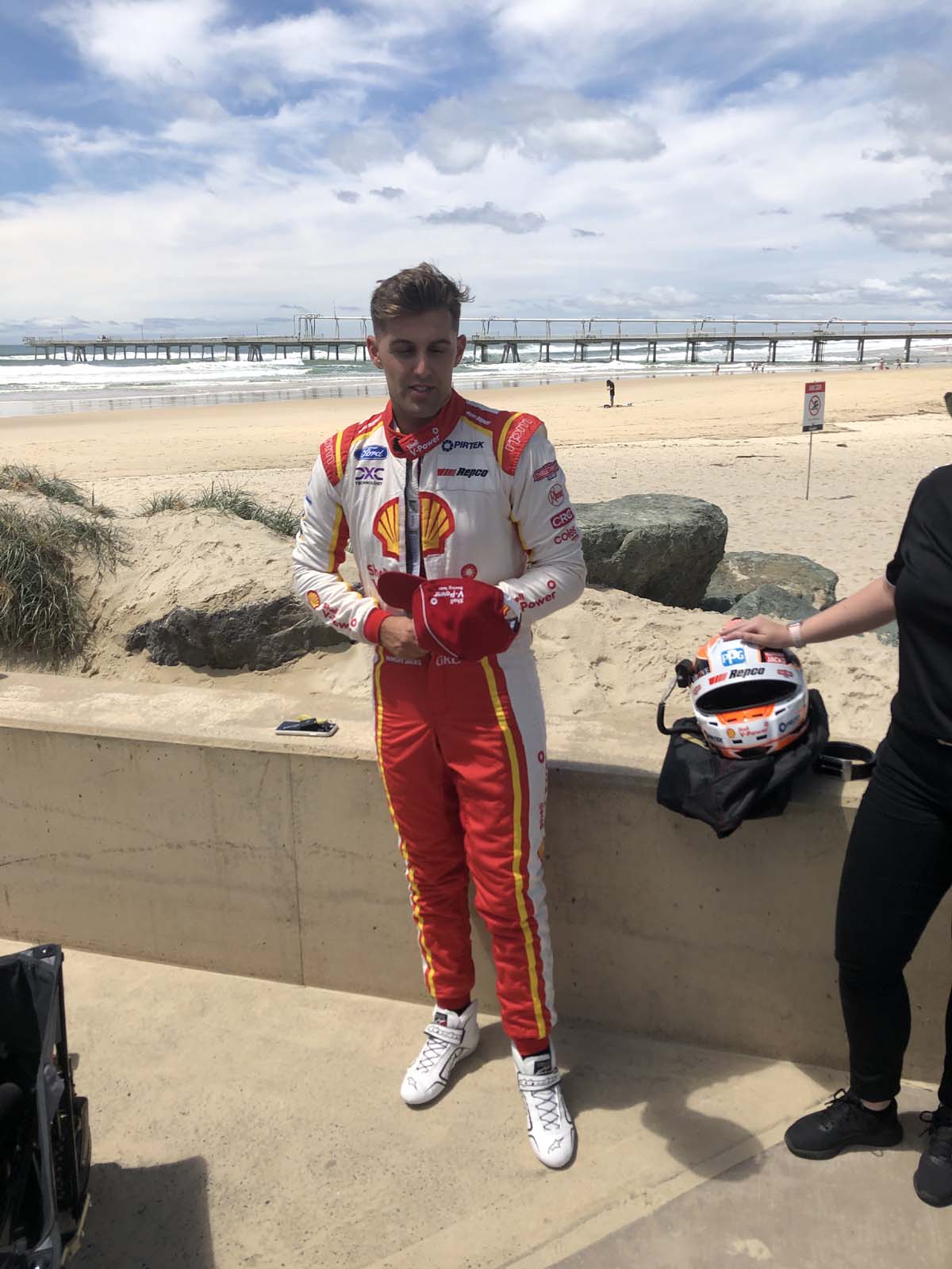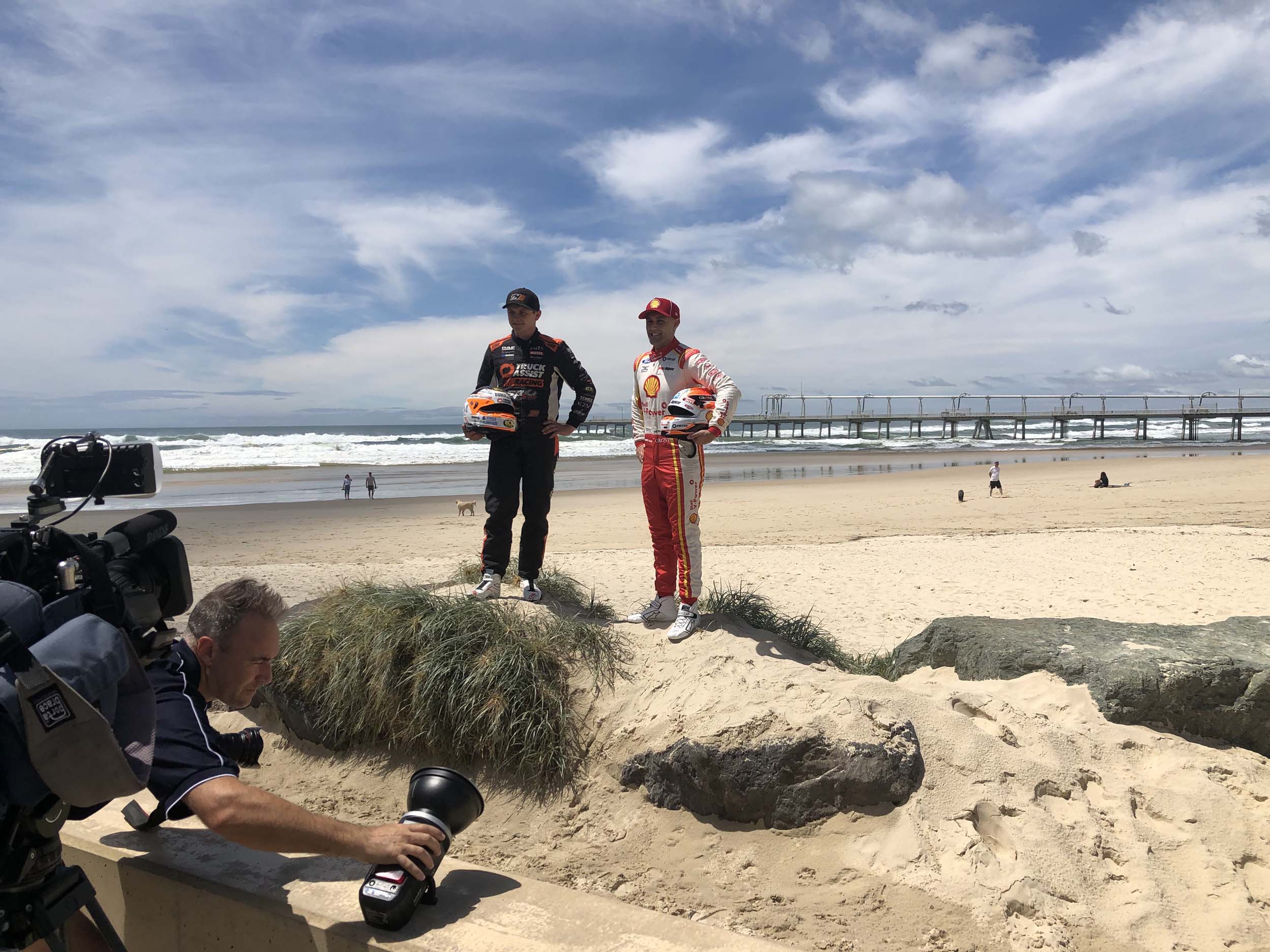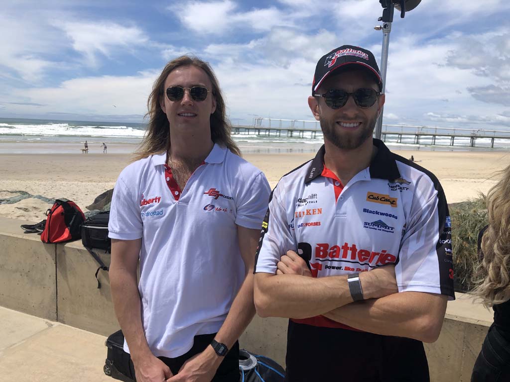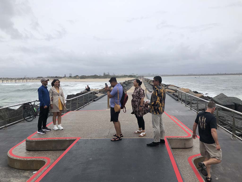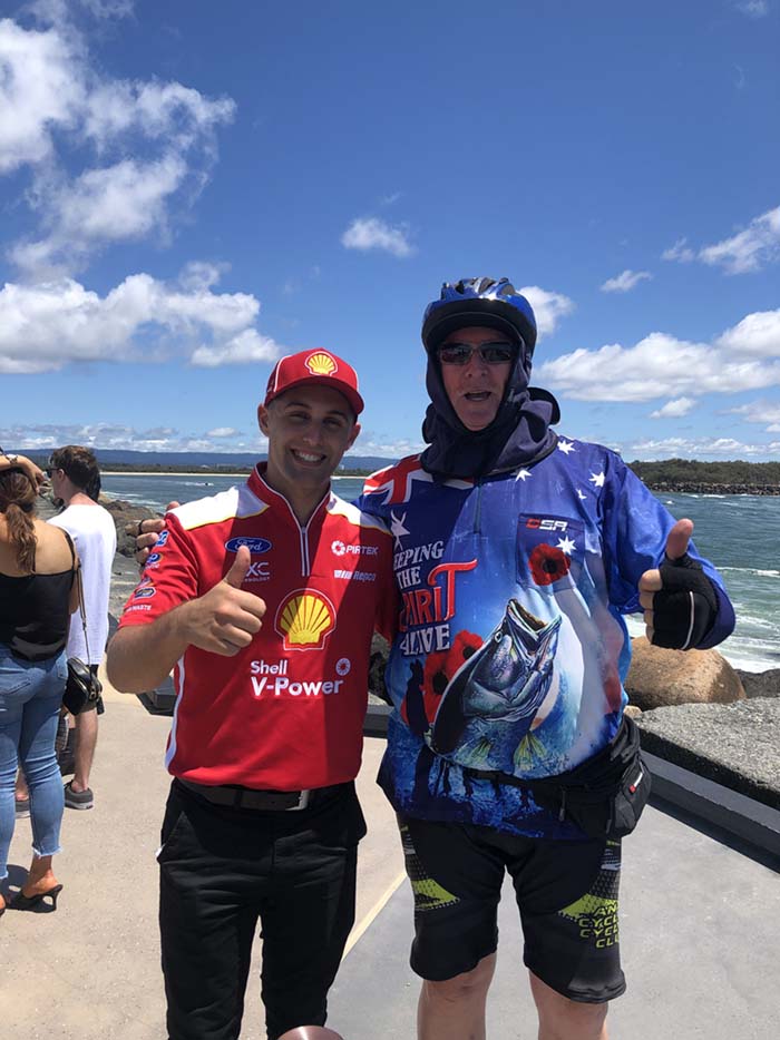 Headed off towards The Seaway/Spit, via the Federation Walk. There were a group of people on the Spit's Shared Path, as I approached them, I noticed that there were 4 Supercar Drivers (Anton De Pasquale, Todd Hazelwood, Andre Heimgartner, and Jack Smith) there with cameramen, reporters etc. I stopped and took some photos. I Continued riding to the tip of the Seawall/Spit. Stopped and took my photos and ate my banana. Rode to the tip of the Moondarewa Spit, took more photos then back to the end of the Seaway/Spit, the drivers were now at the end, so I asked Anton for a photo, he agreed.