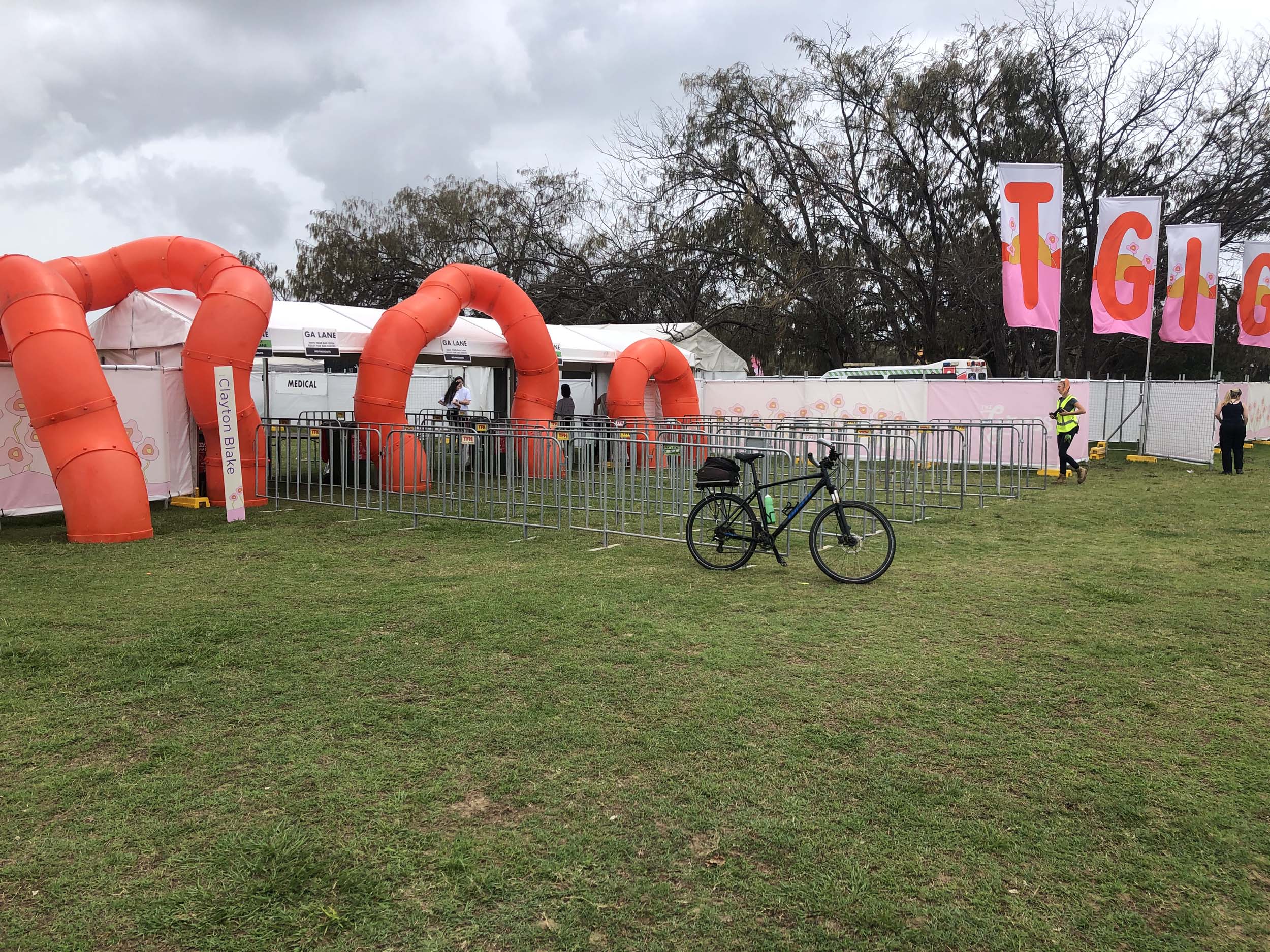 Headed off towards The Seaway/Spit, via the Federation Walk. Continued riding to the tip of the Seawall/Spit. Stopped and took my photos and ate my banana. Rode to the tip of the Moondarewa Spit, took more photos. There is also "The Grass is Greener" music festival setting up on the Doug Jennings Park.