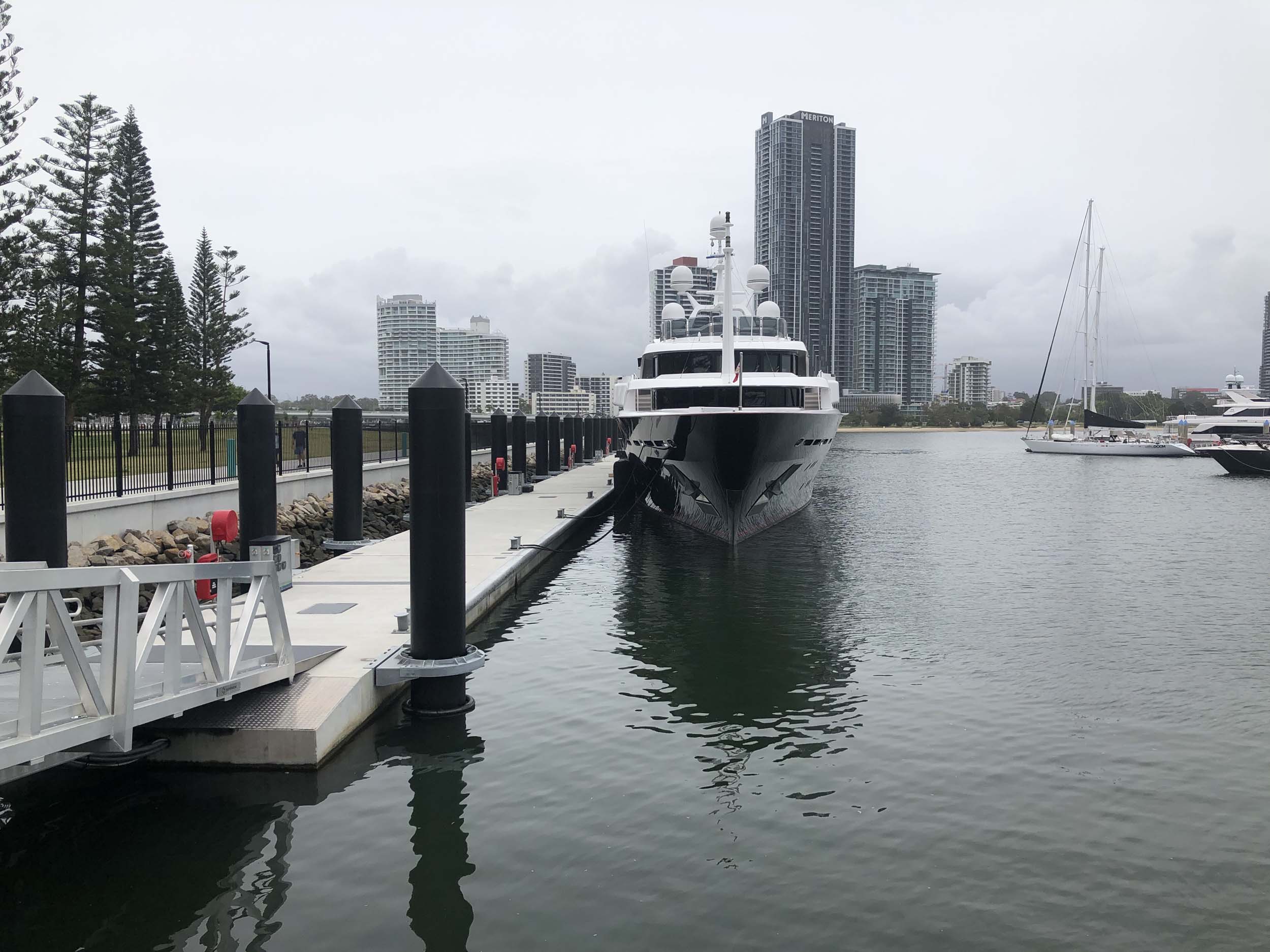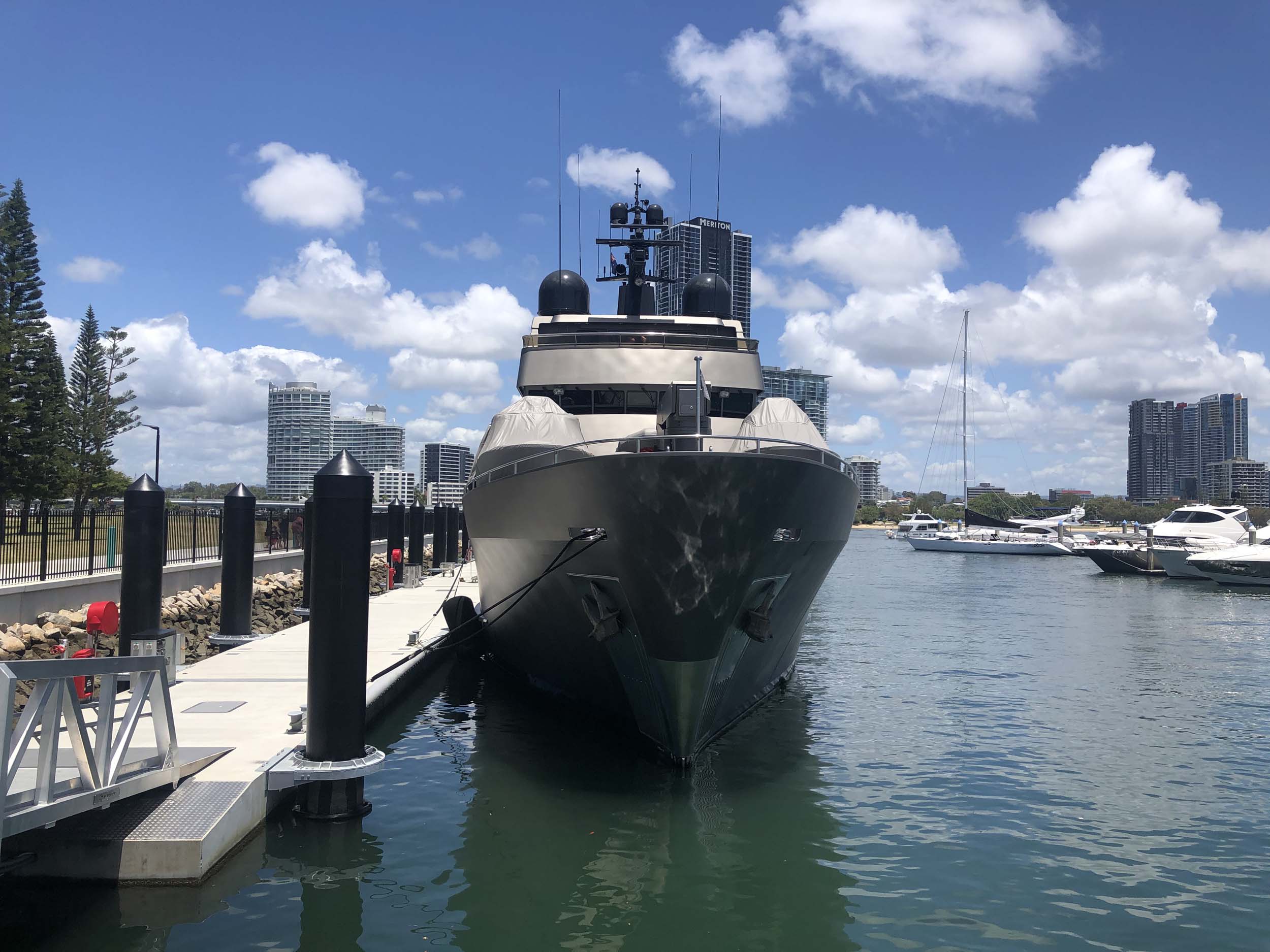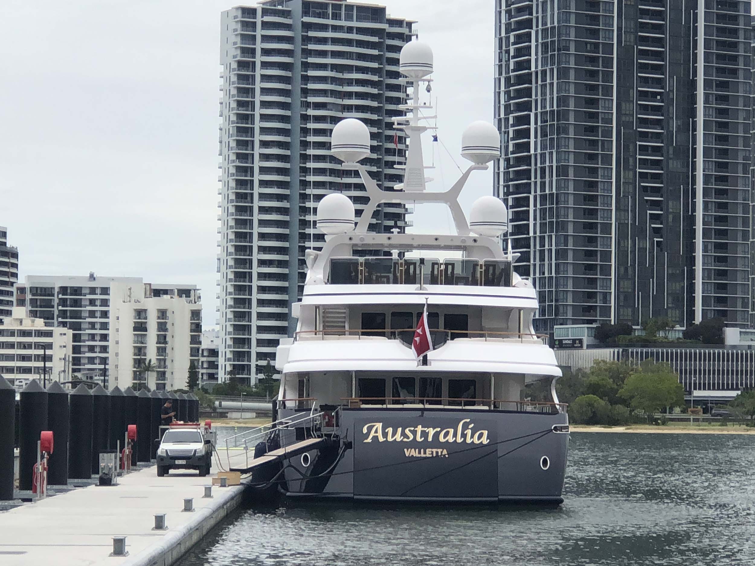At the Yacht Club's superyacht jetty, Clive Palmer's $40m little tinny has done a runner, probably out fishing in the Broadwater.... maybe not.