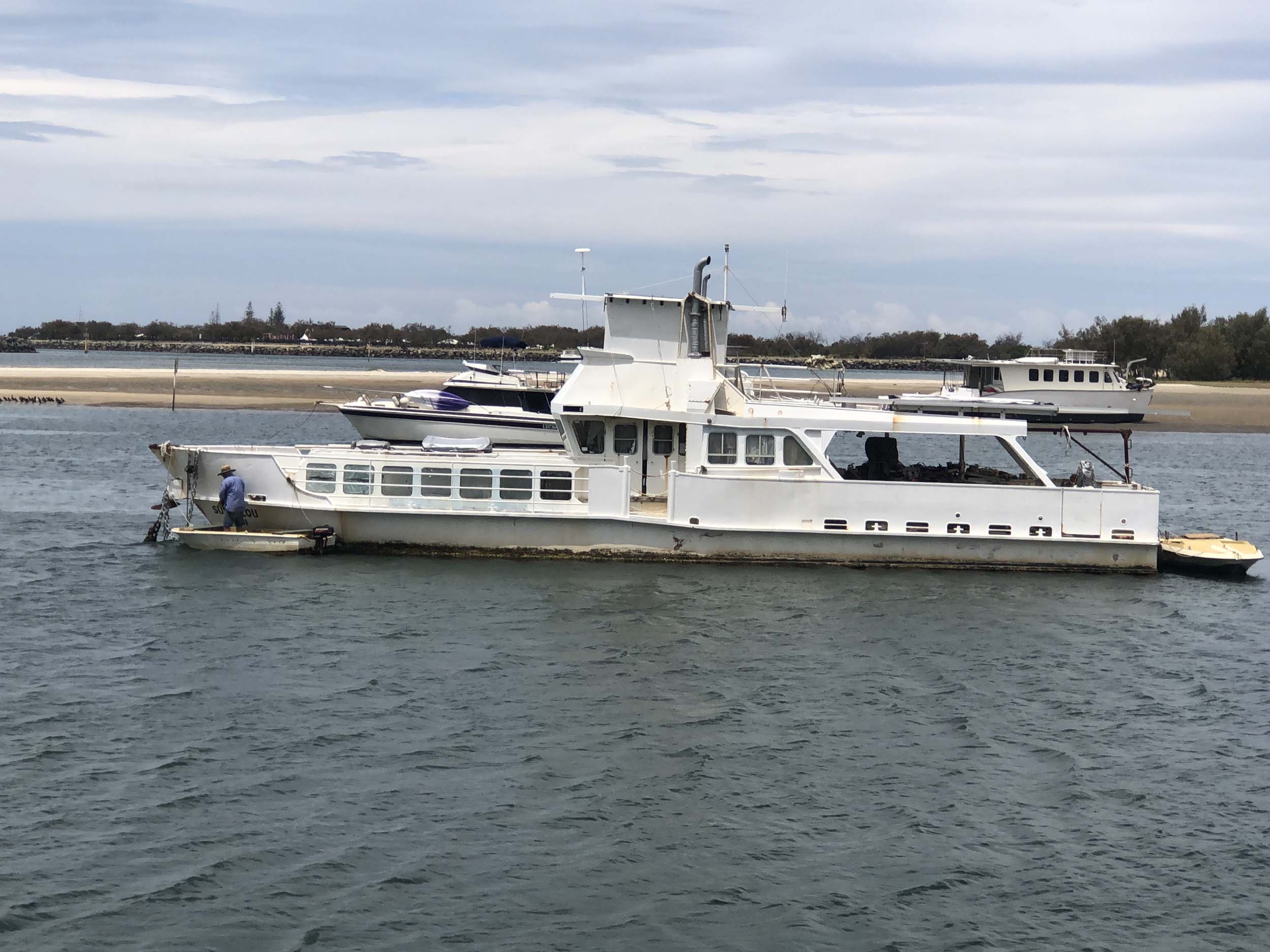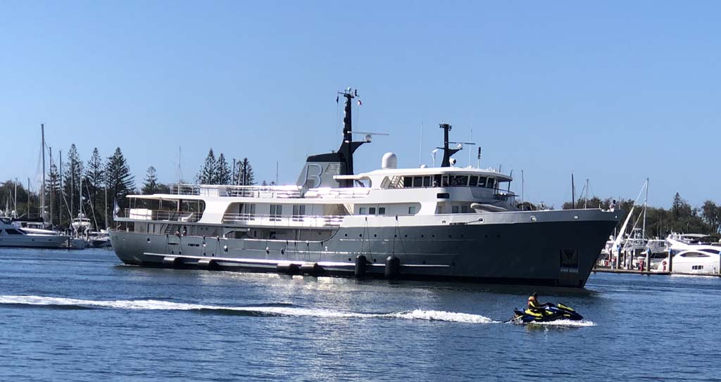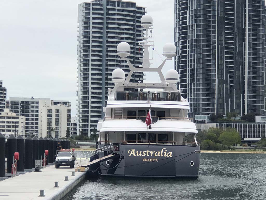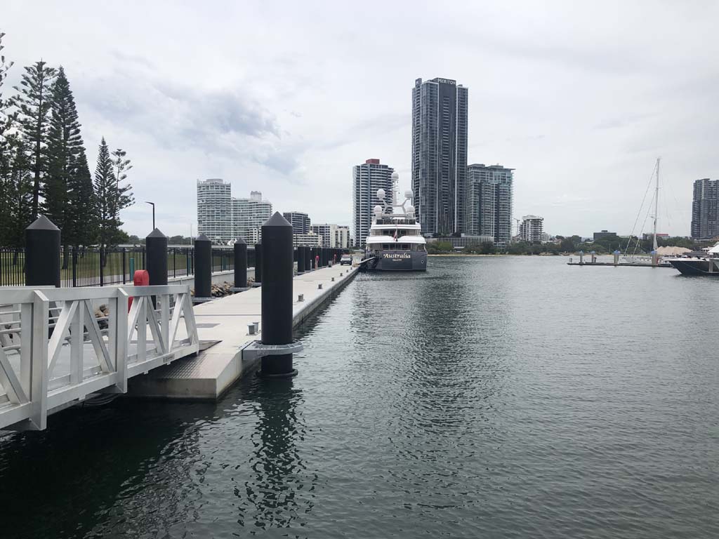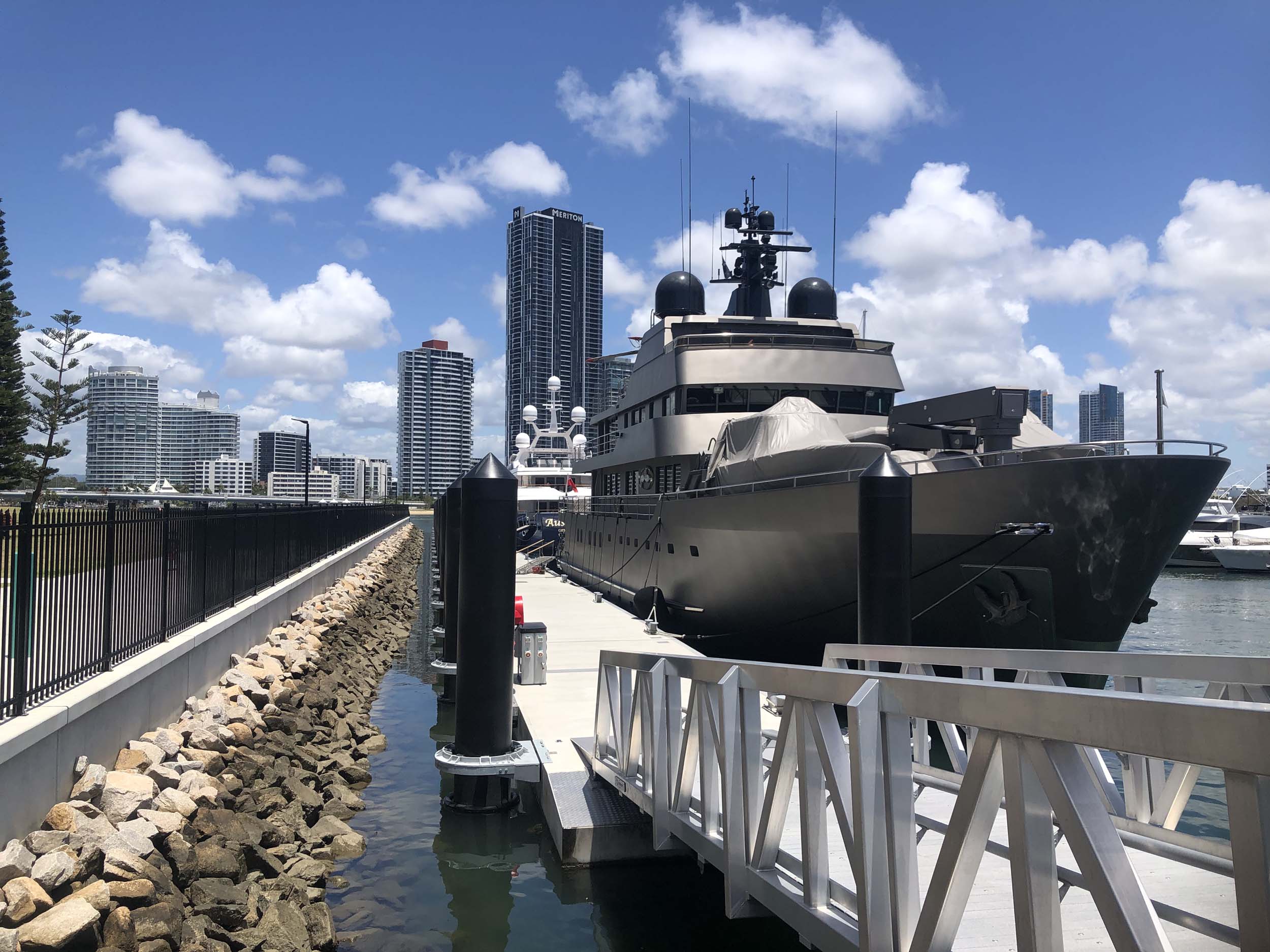 At the Yacht Club's superyacht jetty, Clive Palmer's $40m little tinny has done a runner, probably out fishing in the Broadwater.... maybe not.