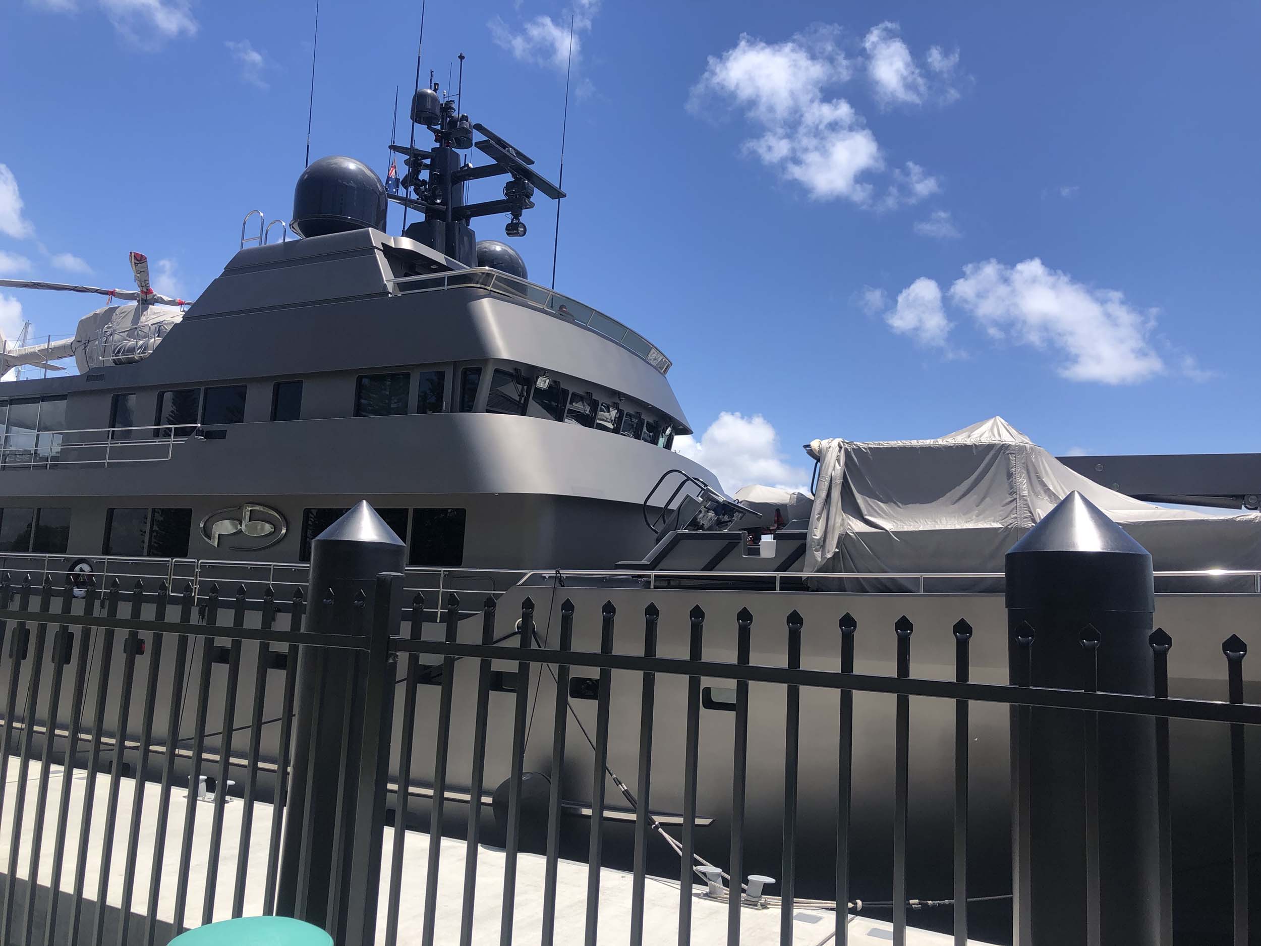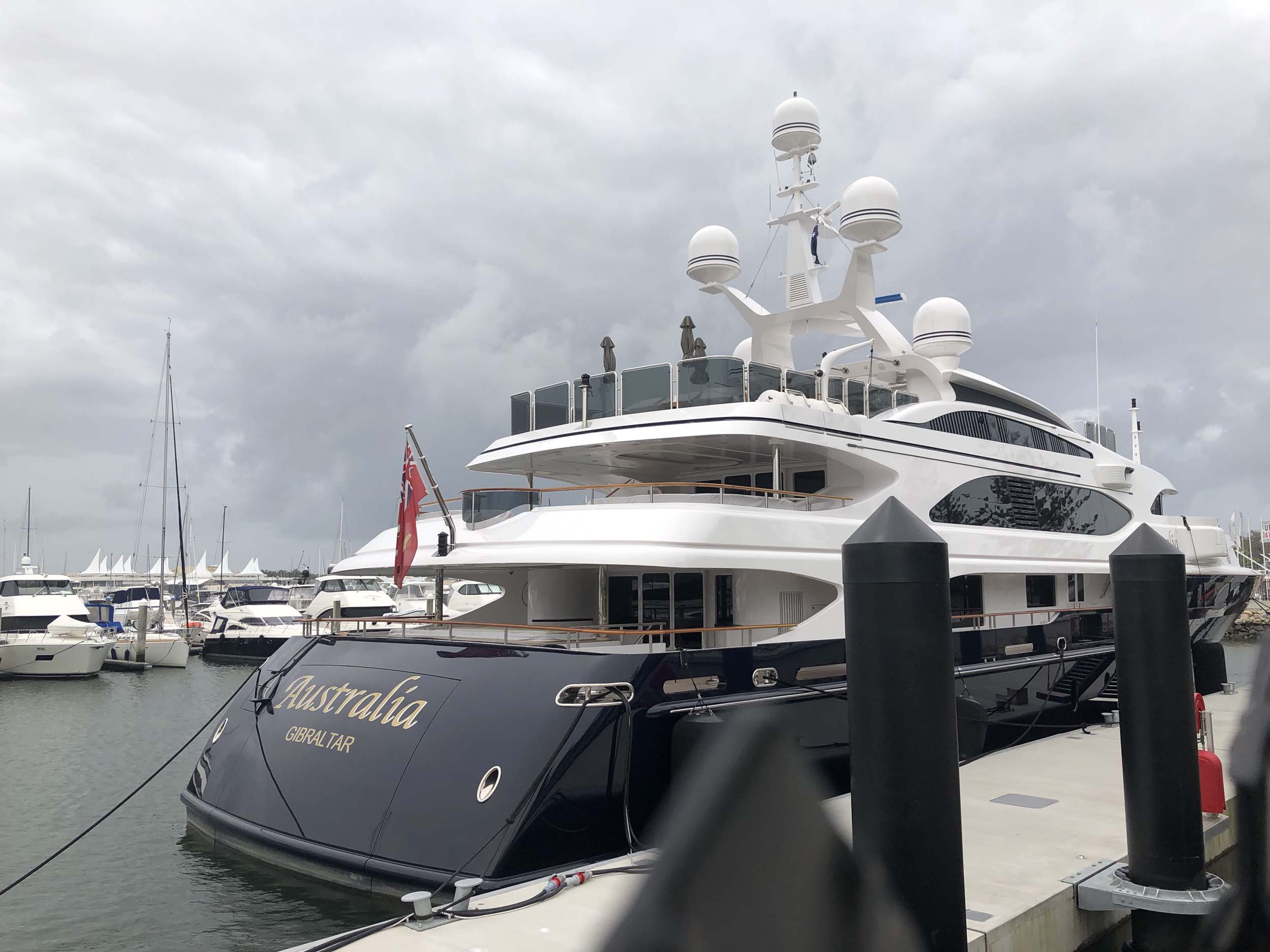 At the Yacht Club's superyacht jetty was Clive Palmer's $40m little tinny, so I took a photo or two. Clive was not in sight.
