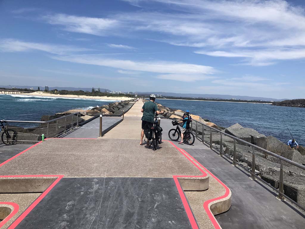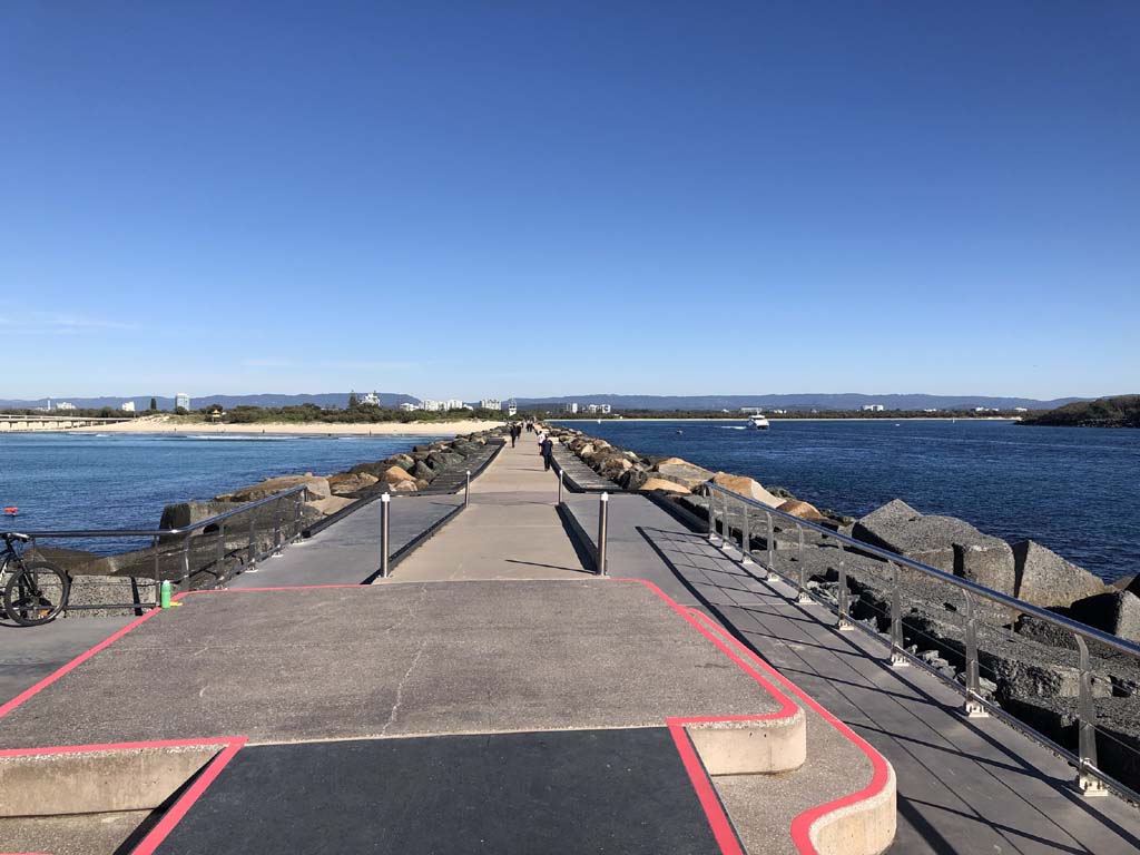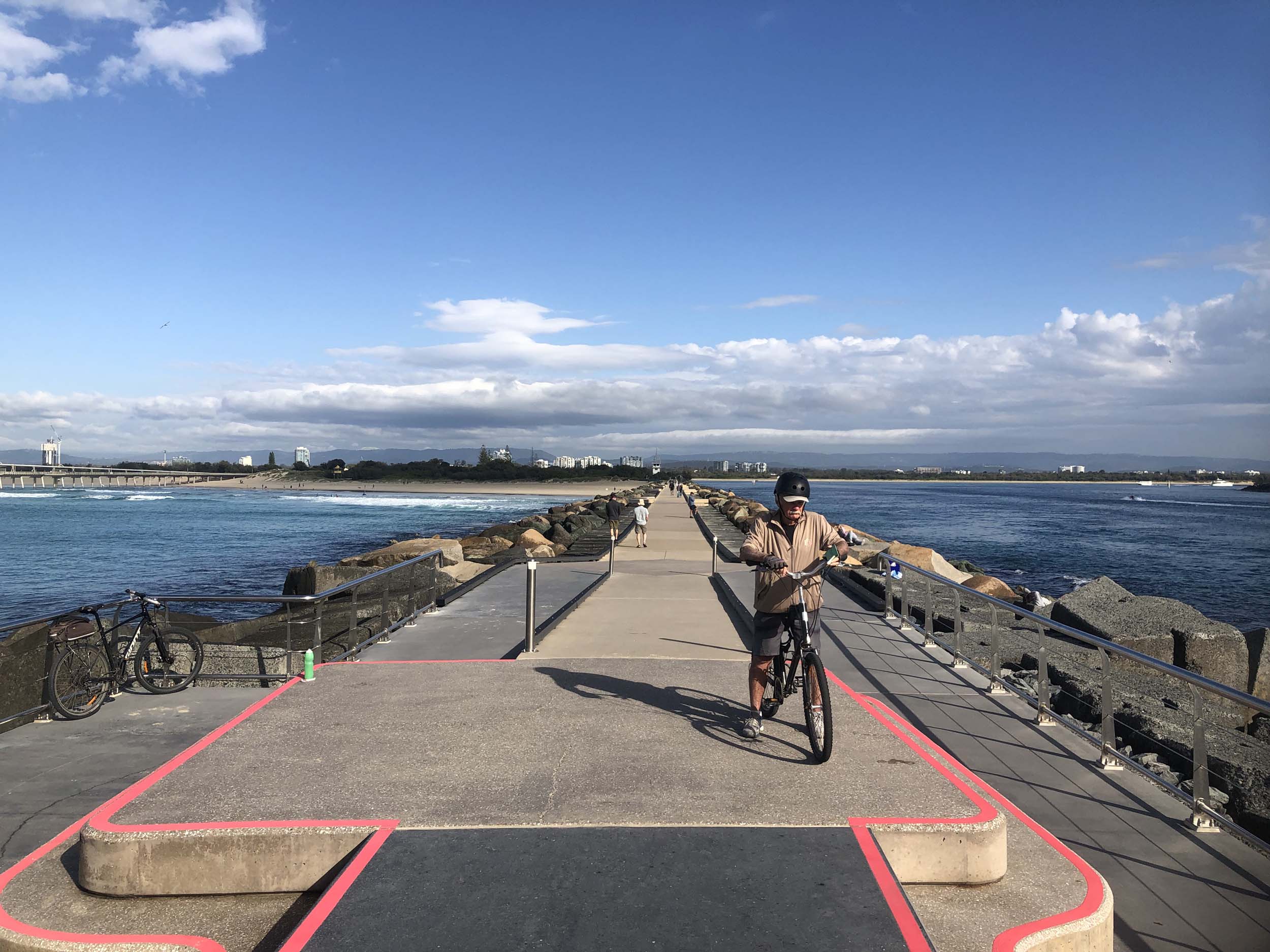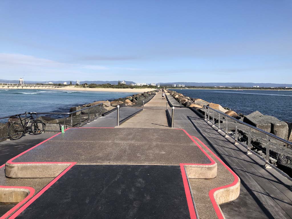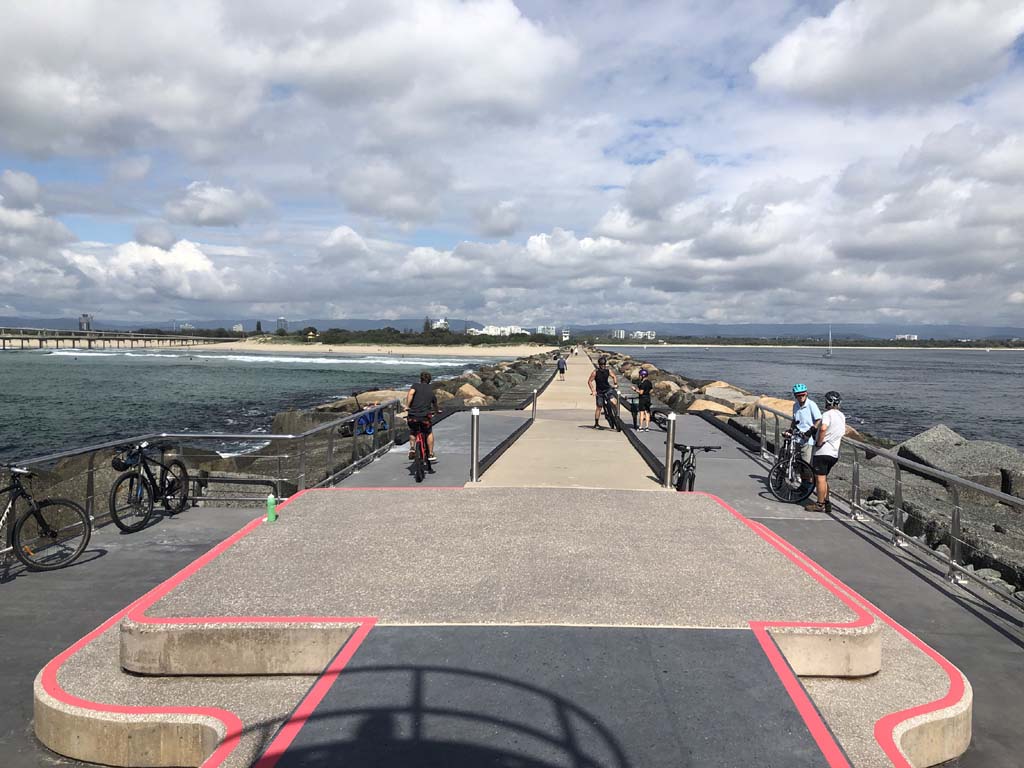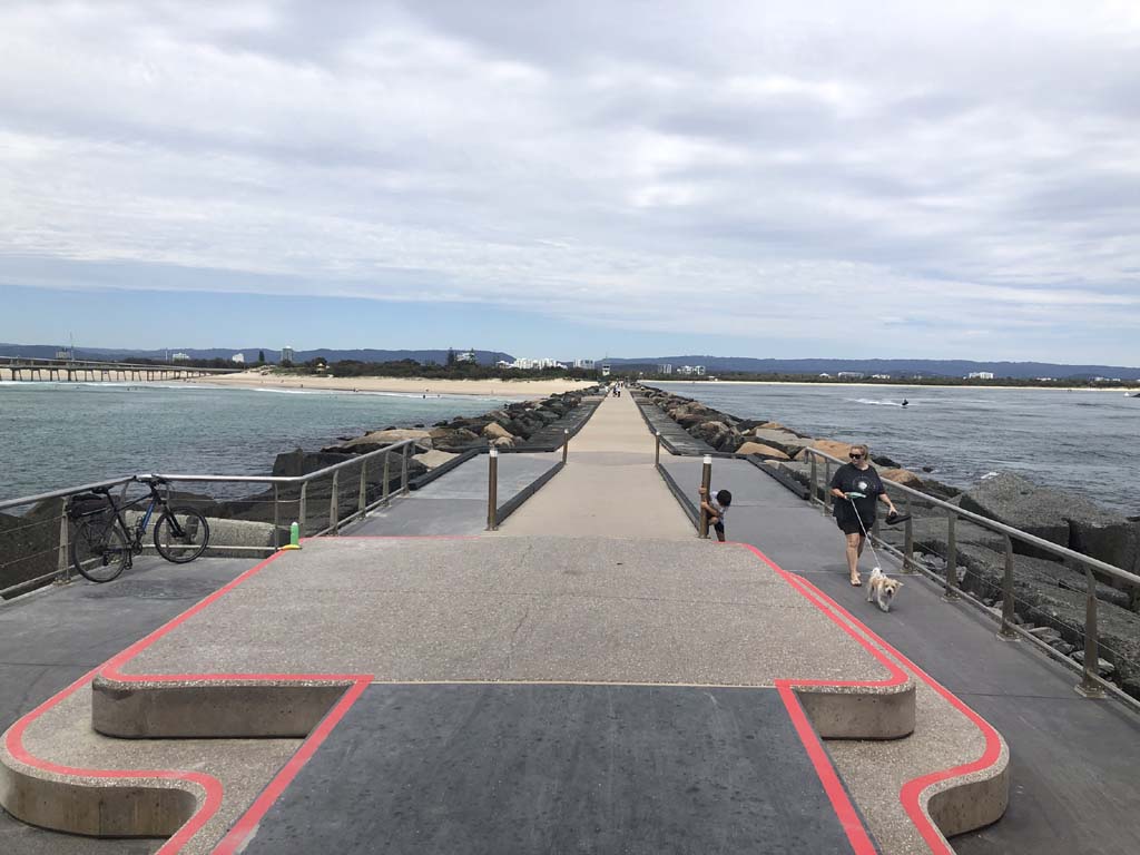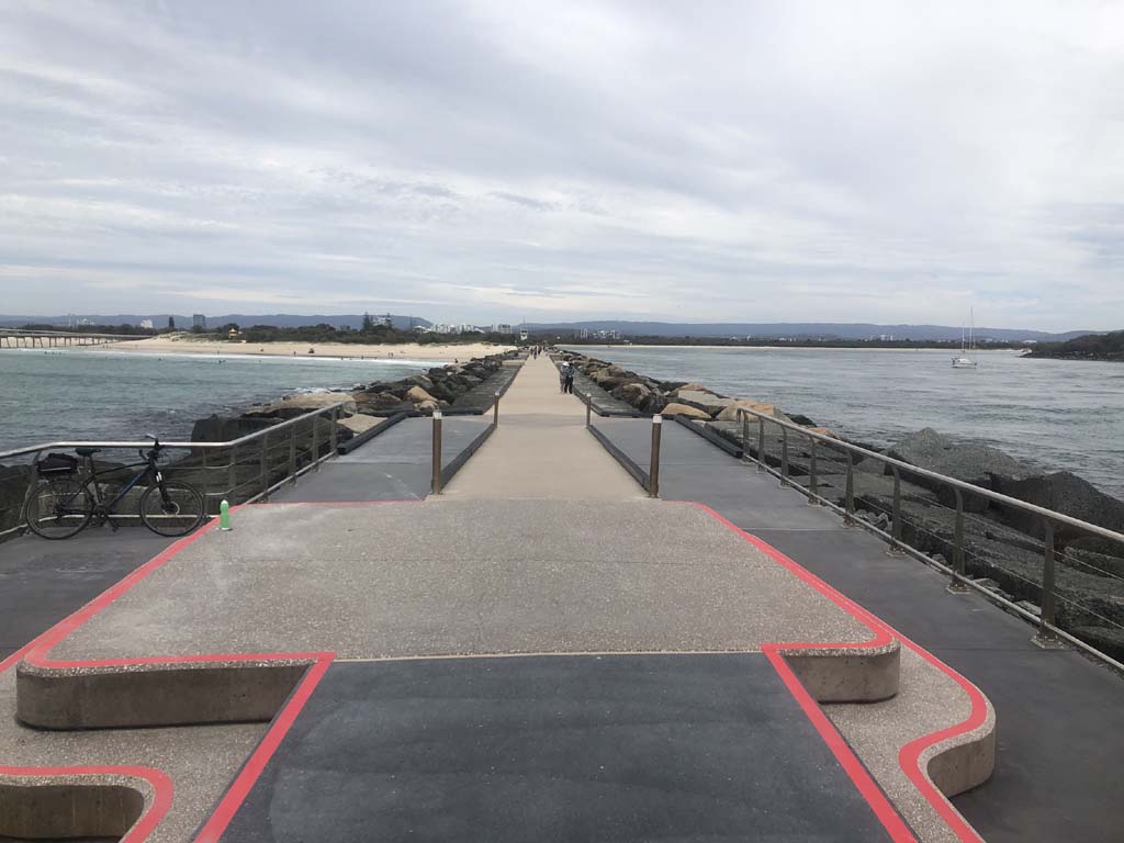 Headed off towards The Seaway/Spit, via the Federation Walk. Continued riding to the tip of the Seawall/Spit. Stopped and took my photos and ate my banana, then rode to the tip of the Moondarewa Spit, took more photos then did another lap to both Spits. While there, I watch a Golden Retriever swimming in the Seaway, it was enjoying life to the max.