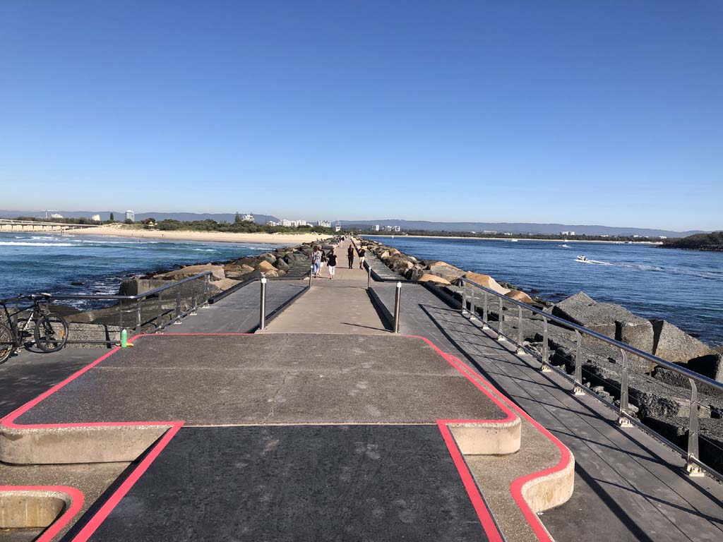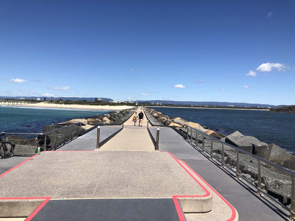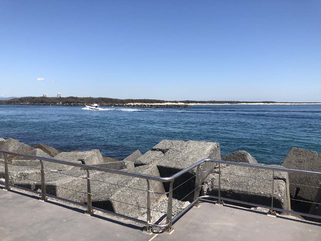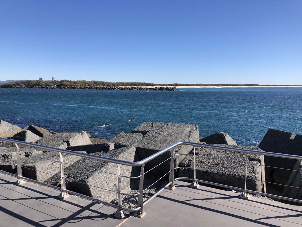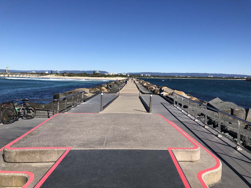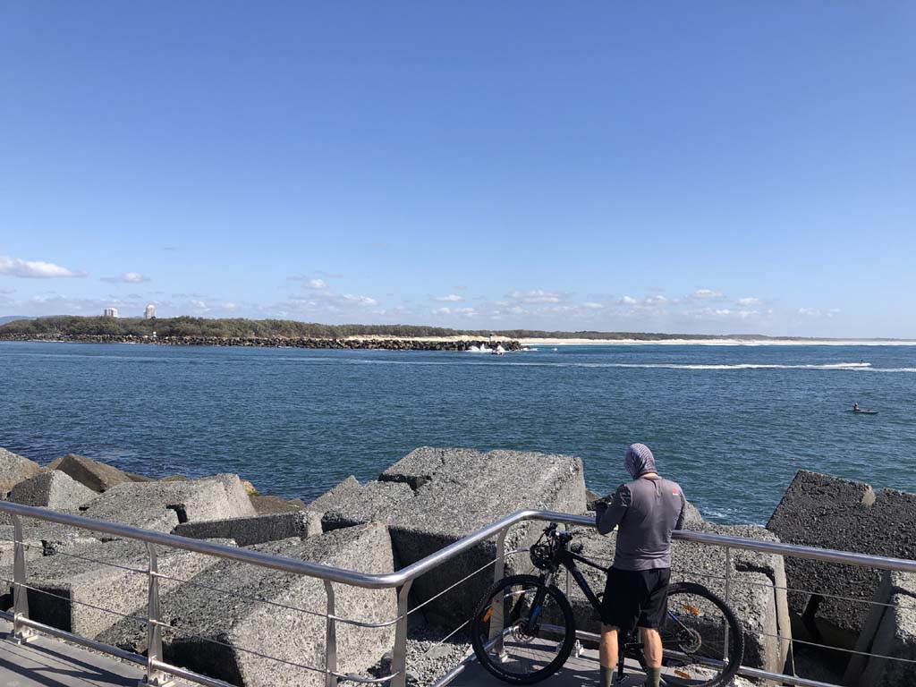 Headed off towards The Seaway/Spit, via the Federation Walk. Continued riding to the tip of the Seawall/Spit. Stopped and took my photos and ate my banana, then rode to the tip of the Moondarewa Spit, took more photos then did another lap to both Spits. While there, I watch a Golden Retriever swimming in the Seaway, it was enjoying life to the max.