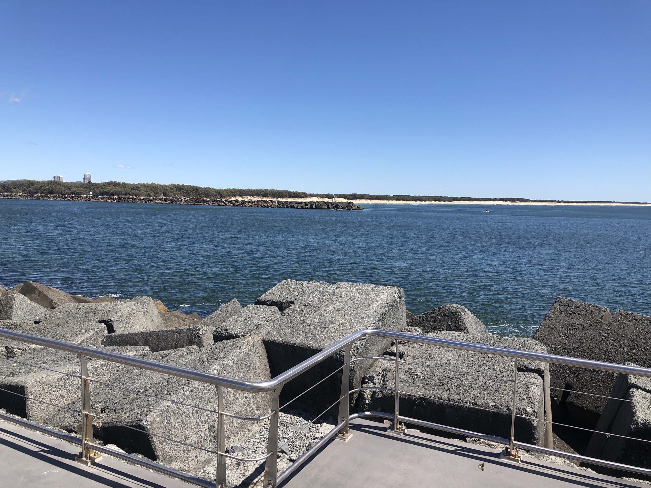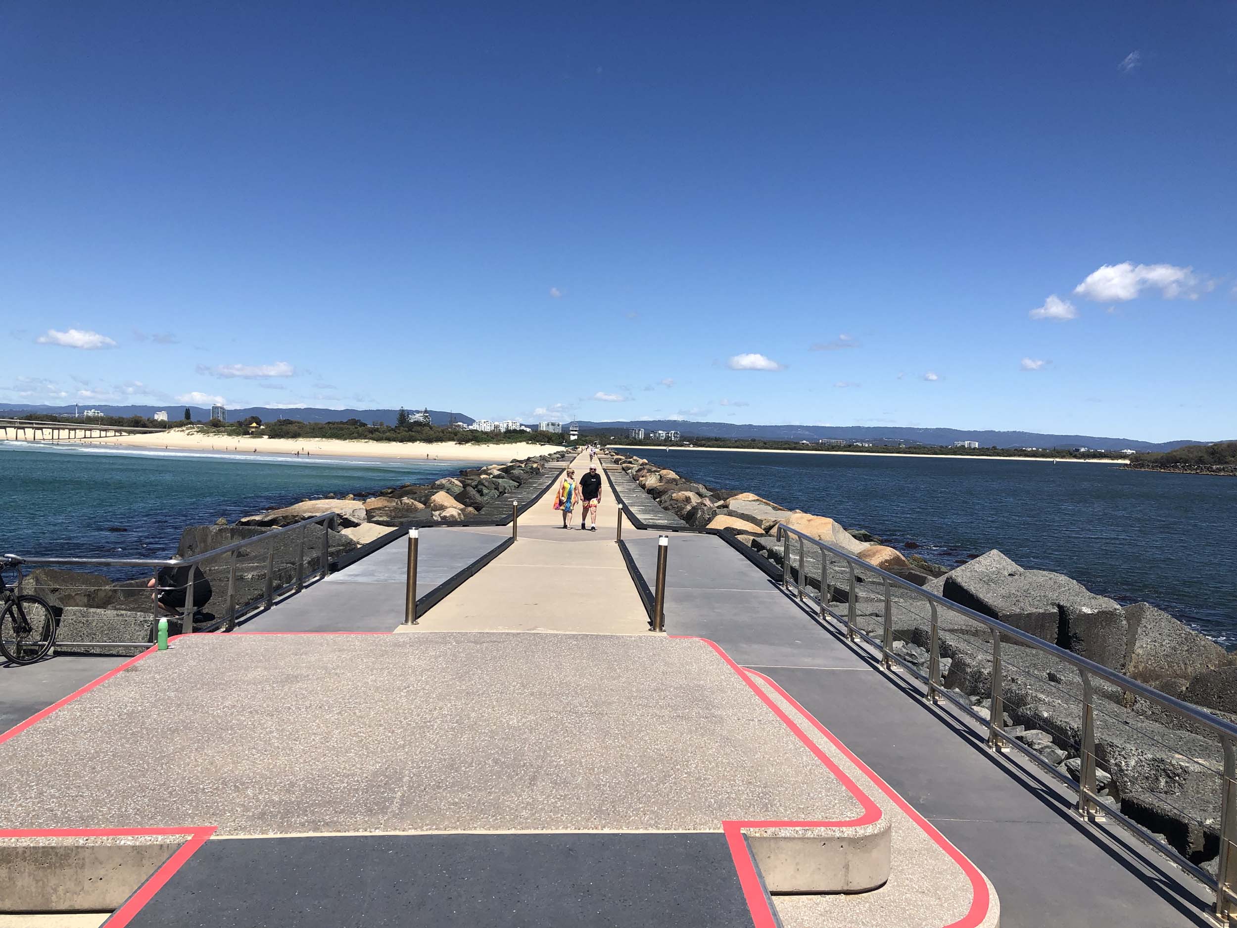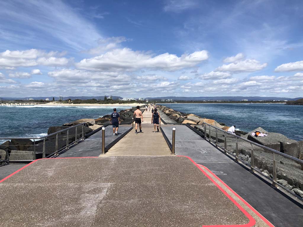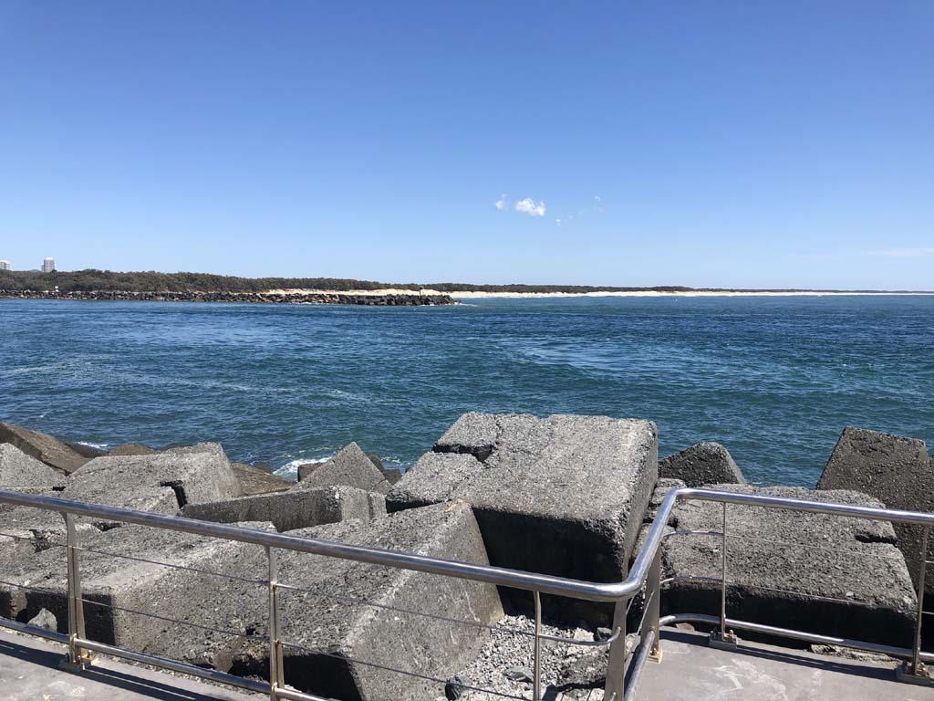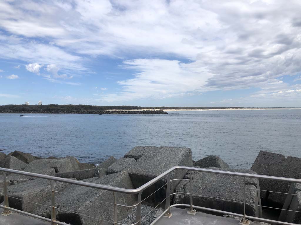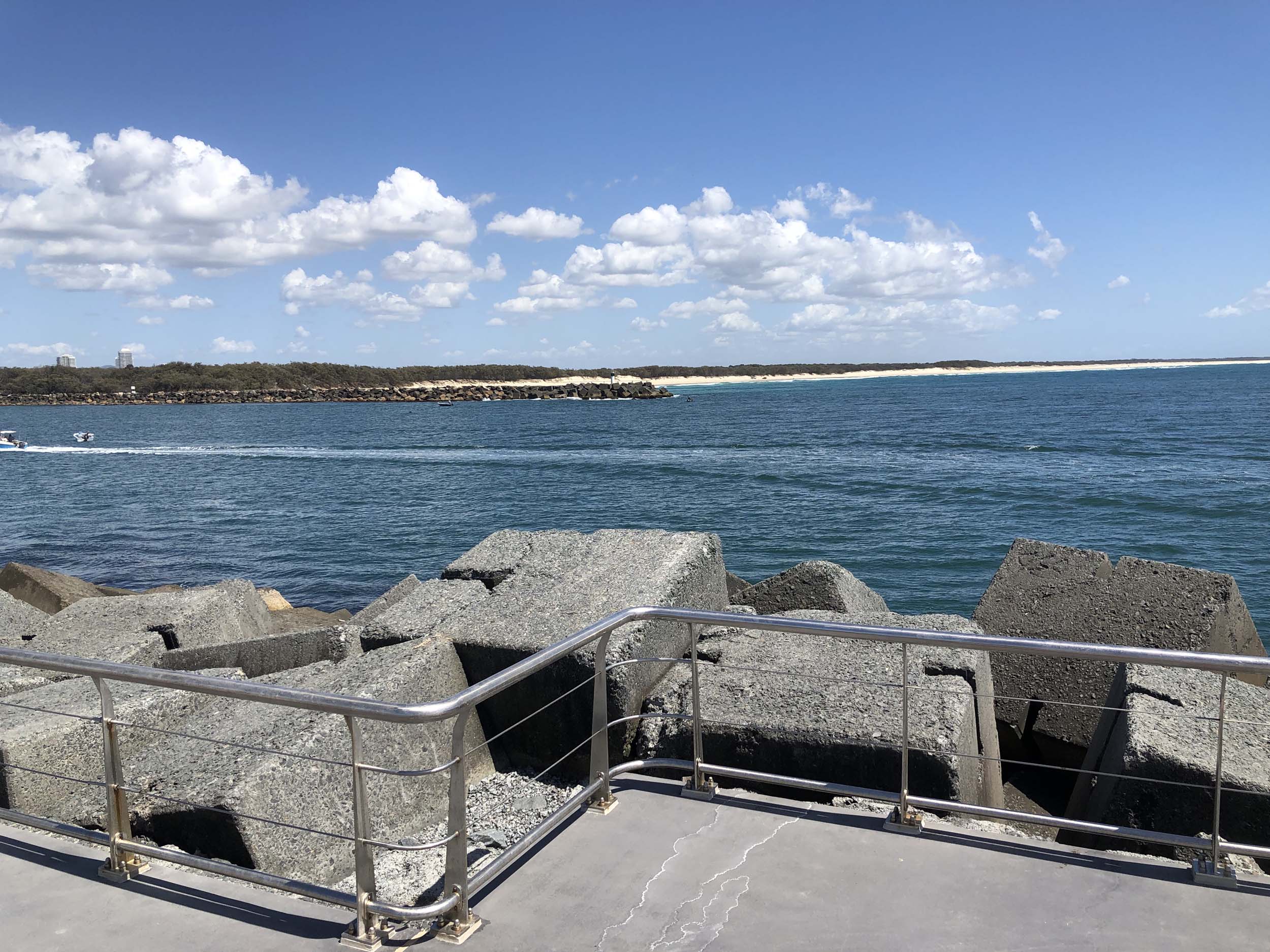 Headed off towards The Seaway/Spit, via the Federation Walk. Continued riding to the tip of the Seawall/Spit. Stopped and took my photos and ate my banana, then rode to the tip of the Moondarewa Spit, took more photos then did another lap to both Spits. While there, I watch a Golden Retriever swimming in the Seaway, it was enjoying life to the max.