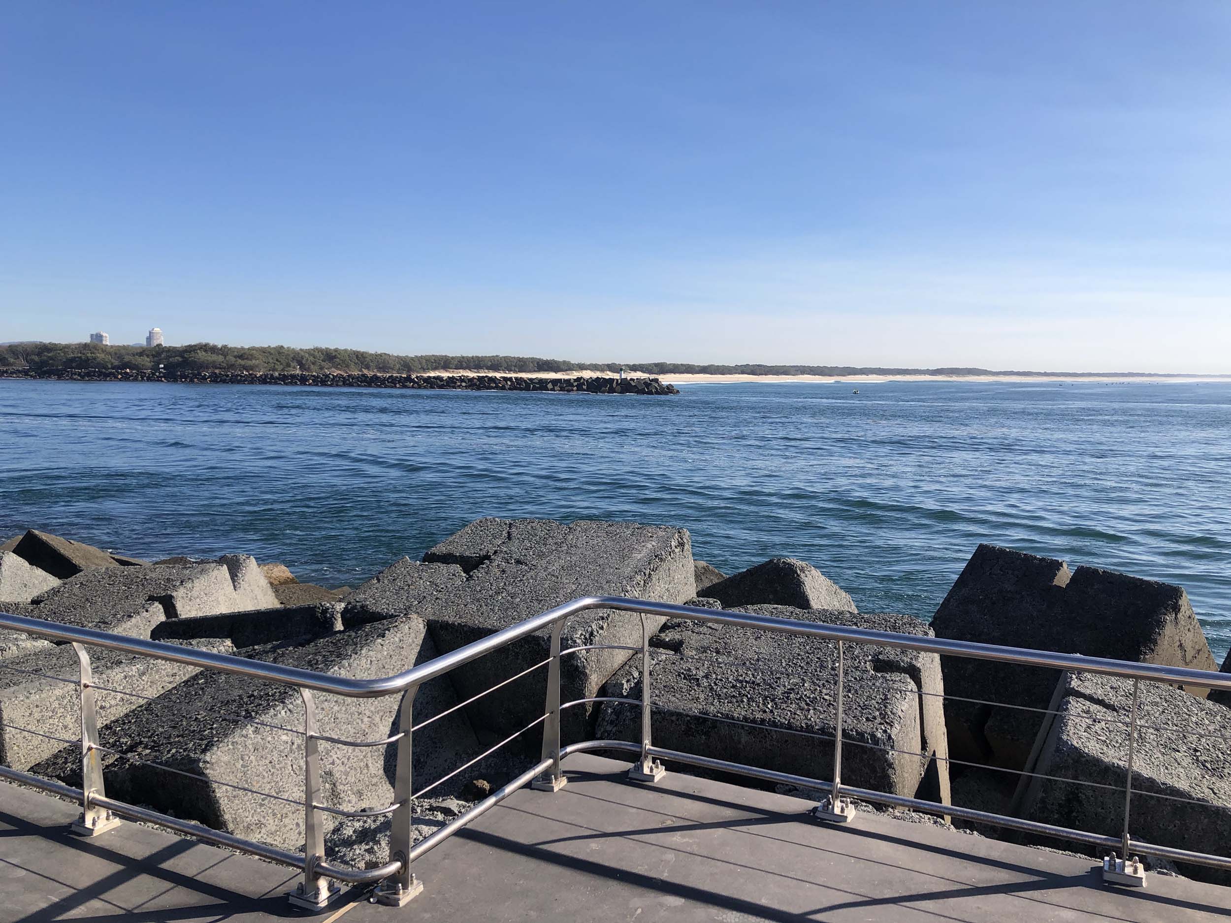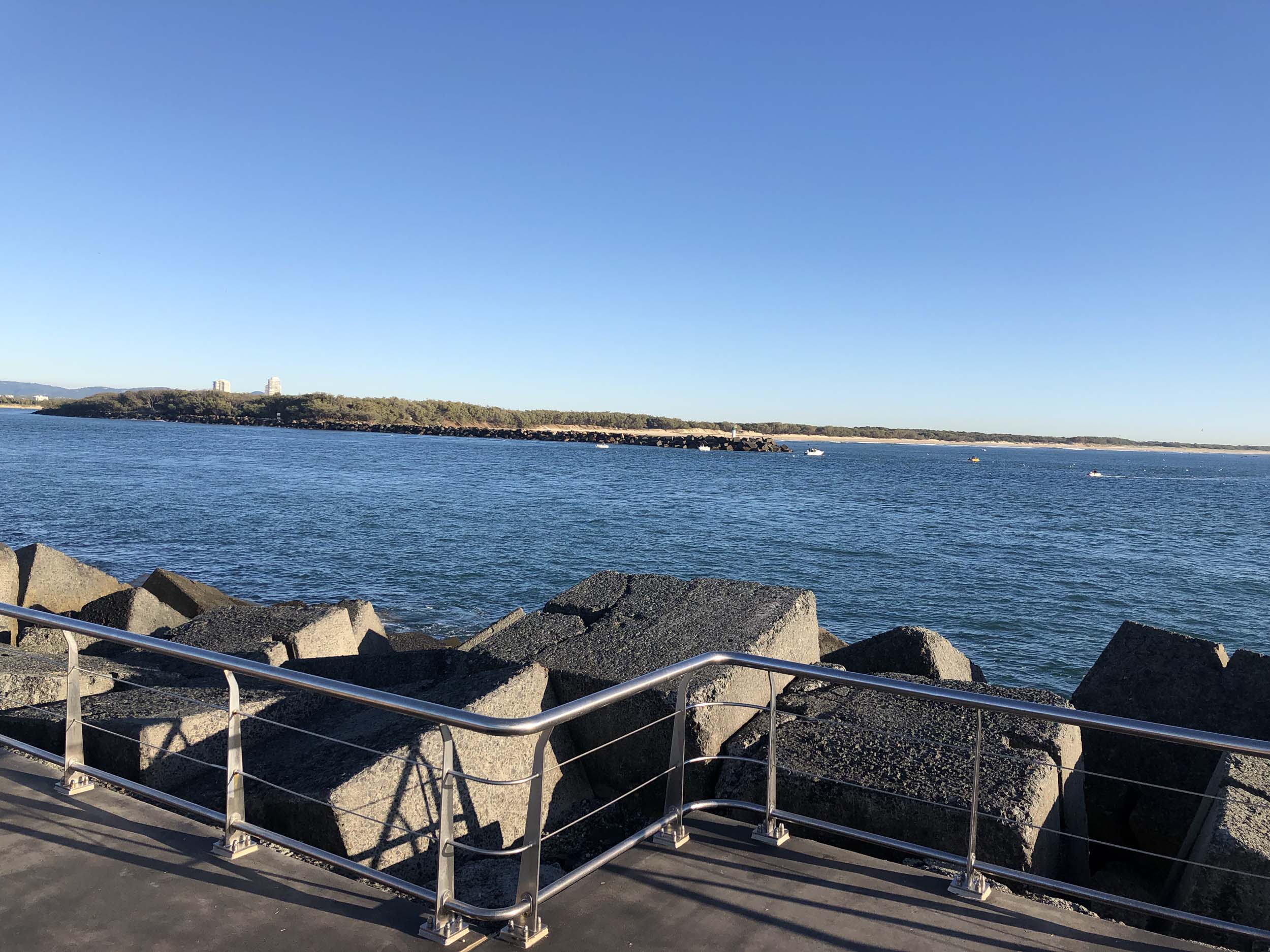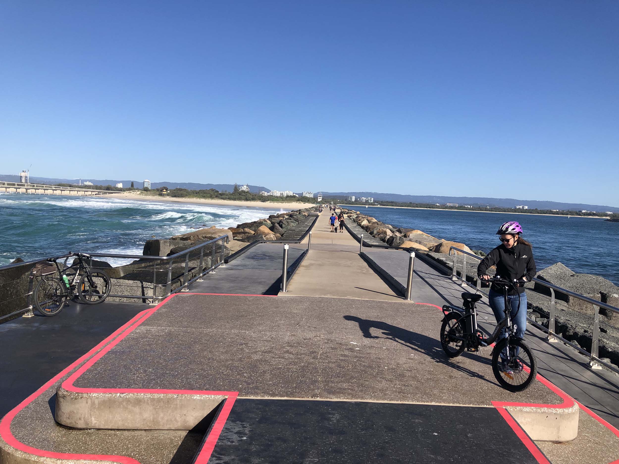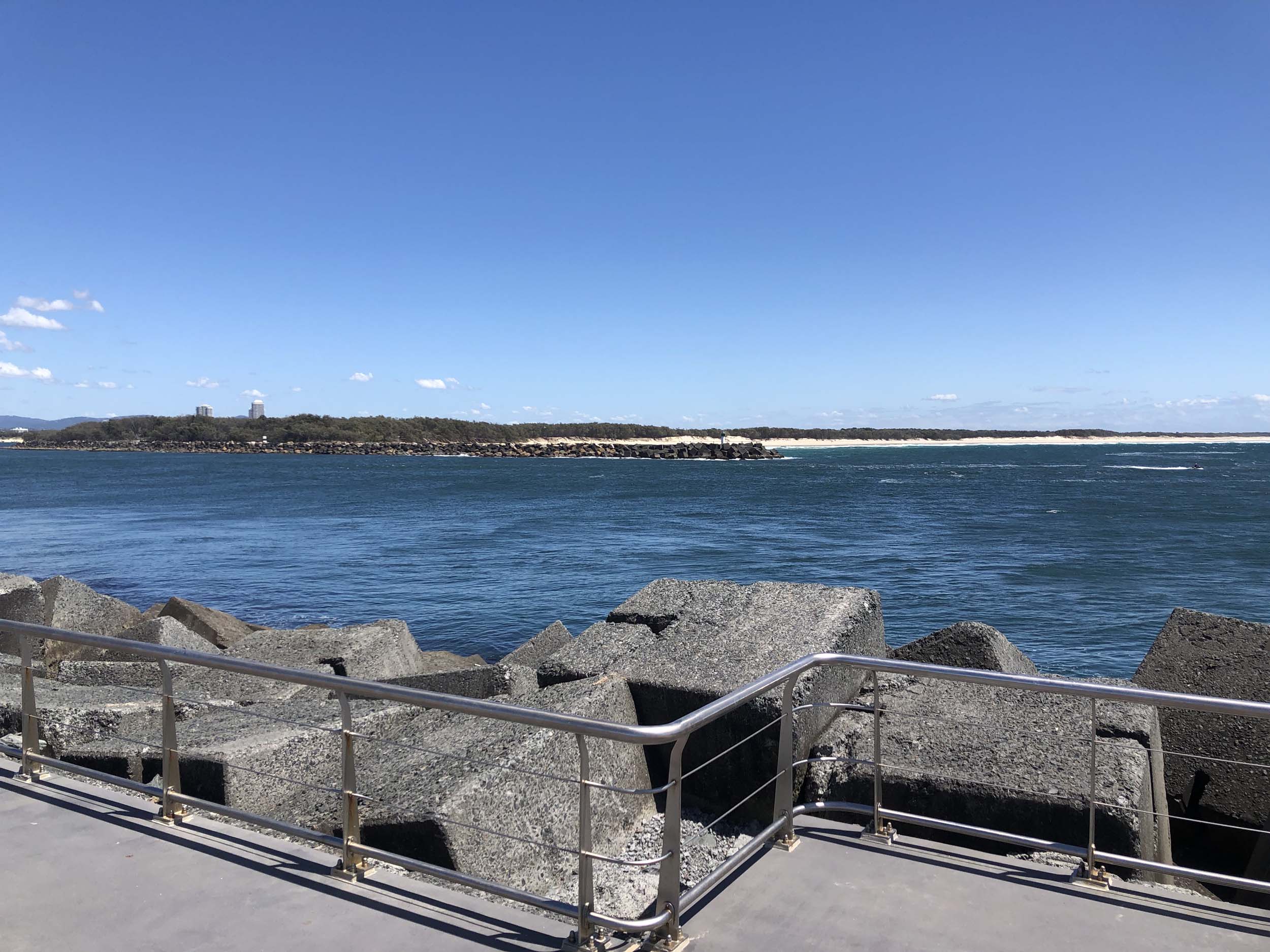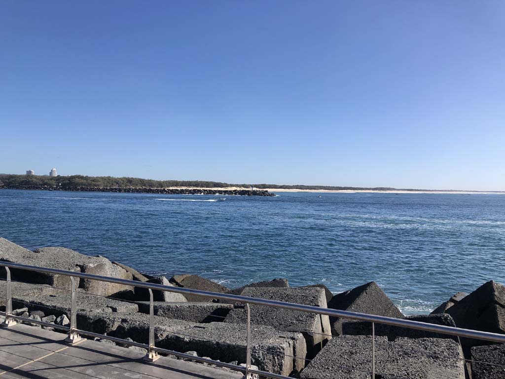 Headed off towards The Seaway/Spit, via the Federation Walk. Continued riding to the tip of the Seawall/Spit. Stopped and took my photos and ate my banana, then rode to the tip of the Moondarewa Spit, took more photos then did another lap to both Spits. While there, I watch a Golden Retriever swimming in the Seaway, it was enjoying life to the max.