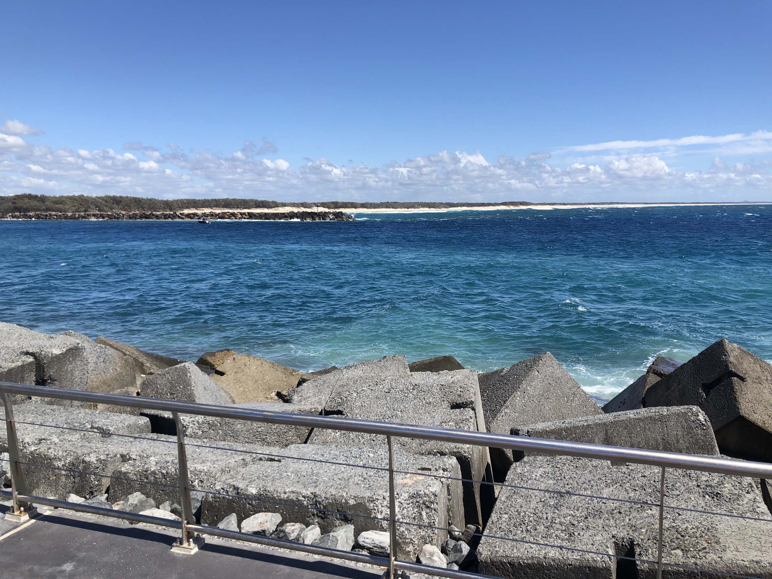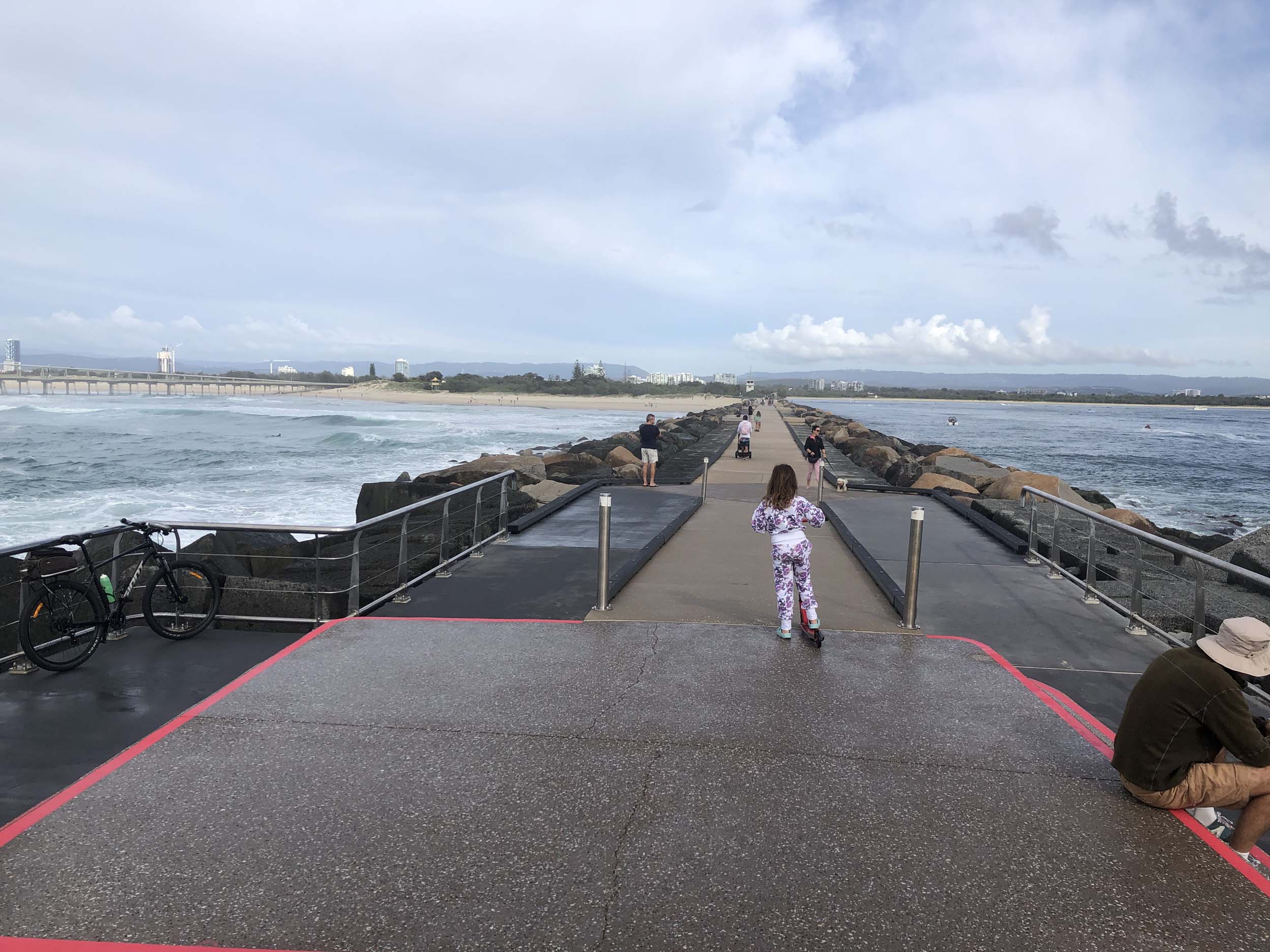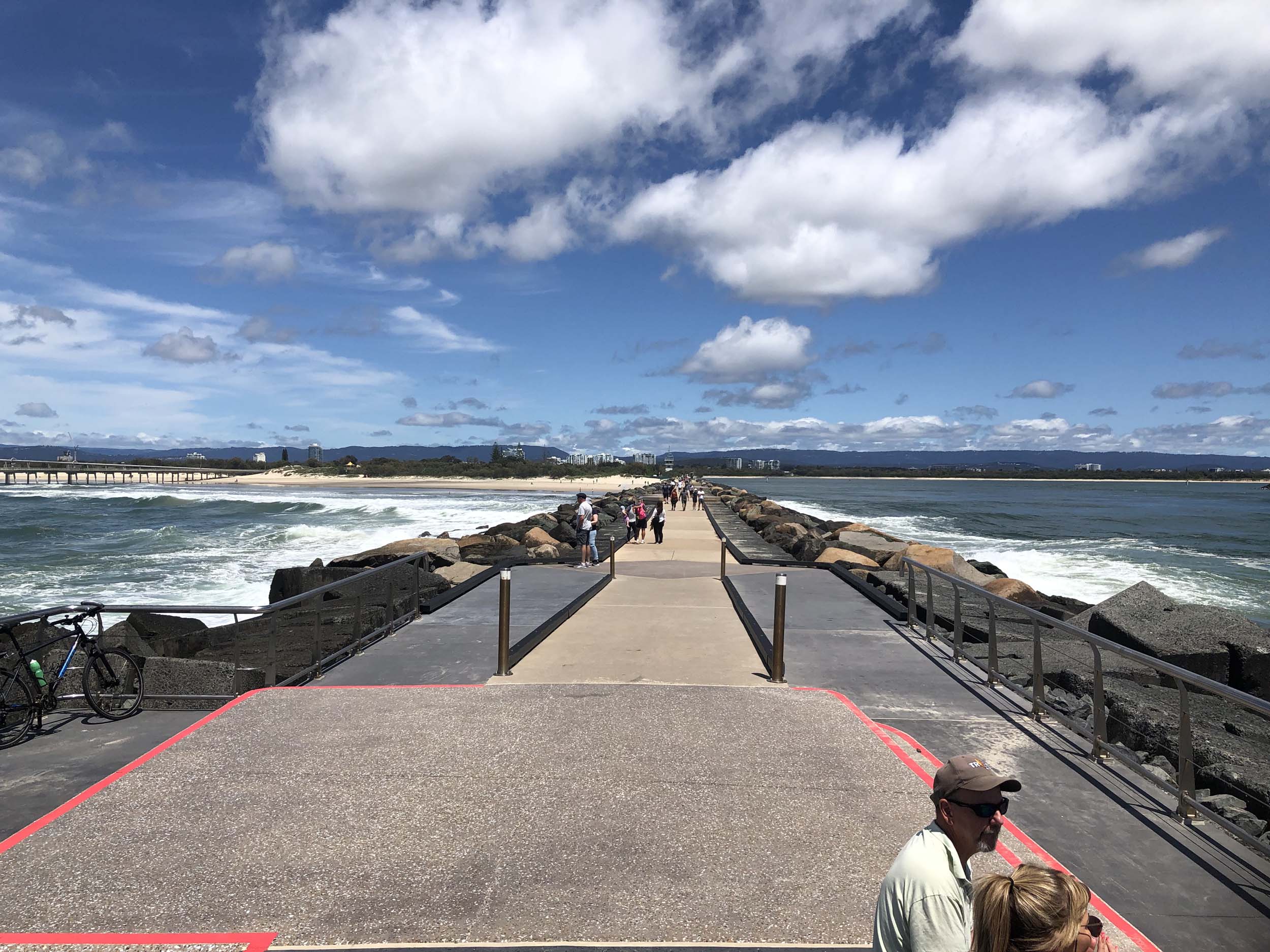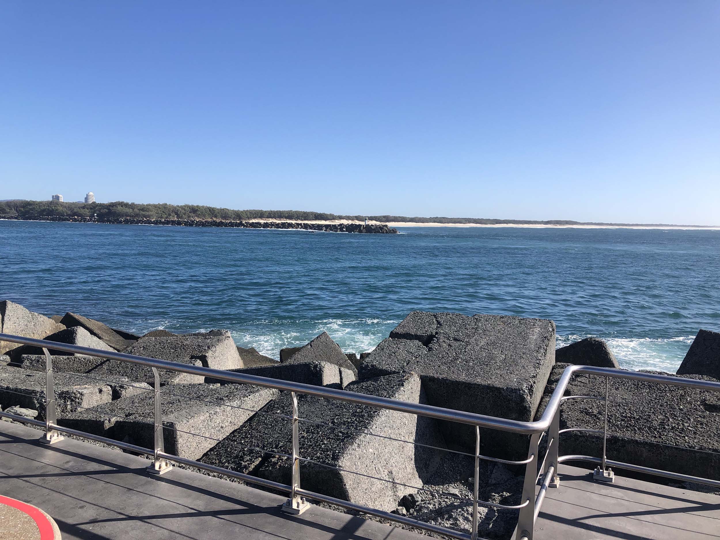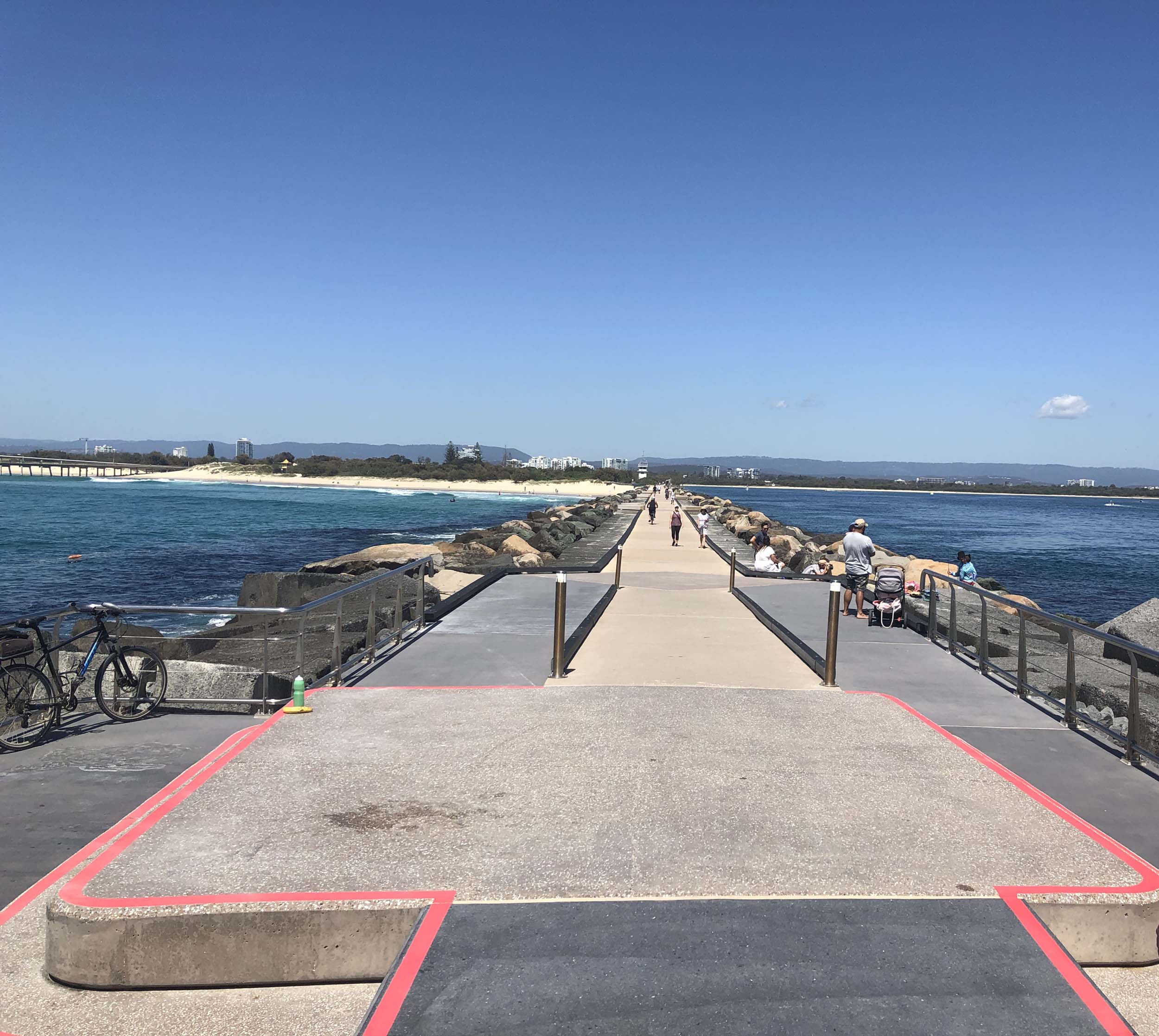 Headed off towards The Seaway/Spit, via the Federation Walk. Continued riding to the tip of the Seawall/Spit. Stopped and took my photos and ate my banana, then rode to the tip of the Moondarewa Spit, took more photos then did another lap to both Spits. While there, I watch a Golden Retriever swimming in the Seaway, it was enjoying life to the max.