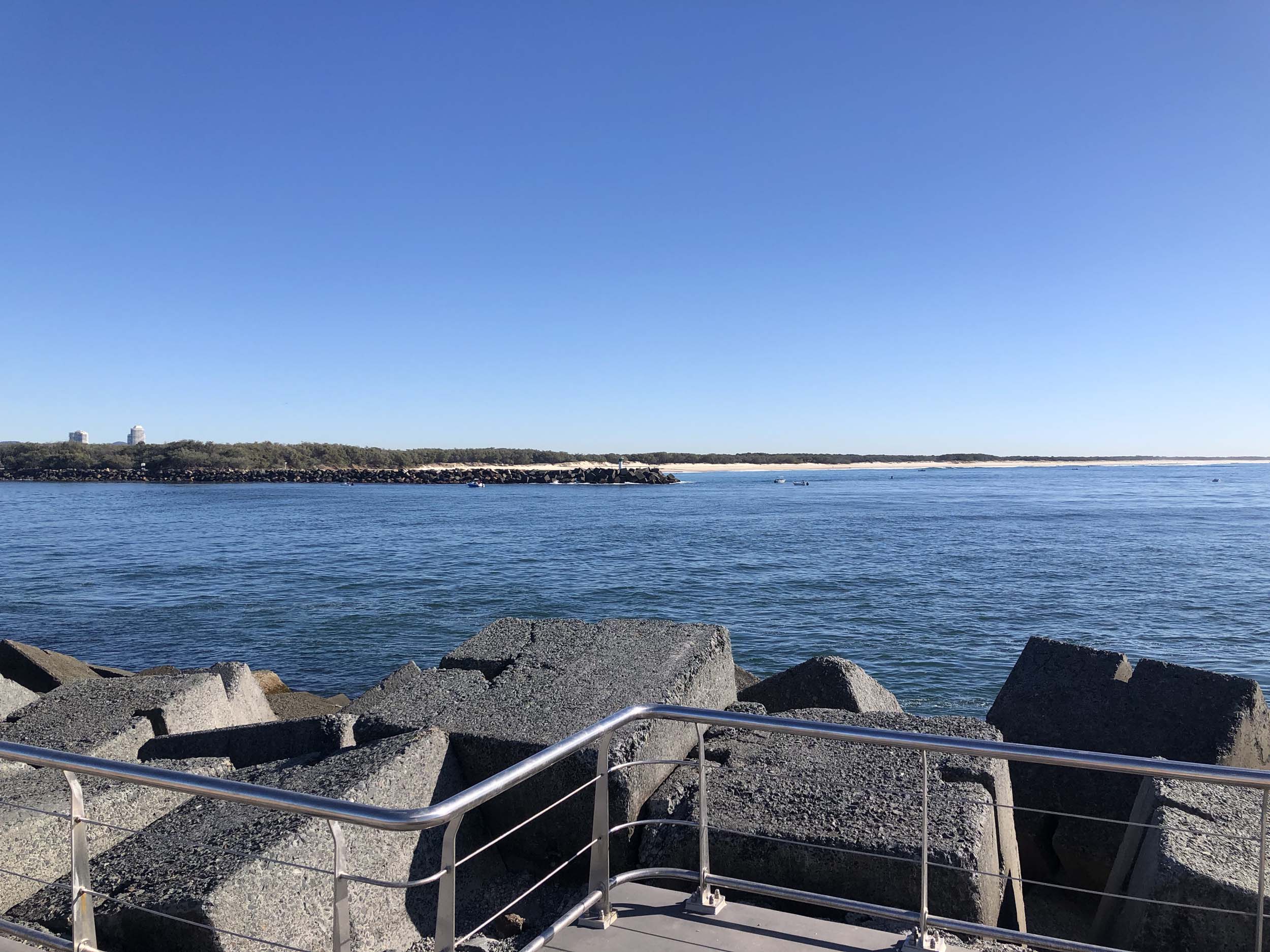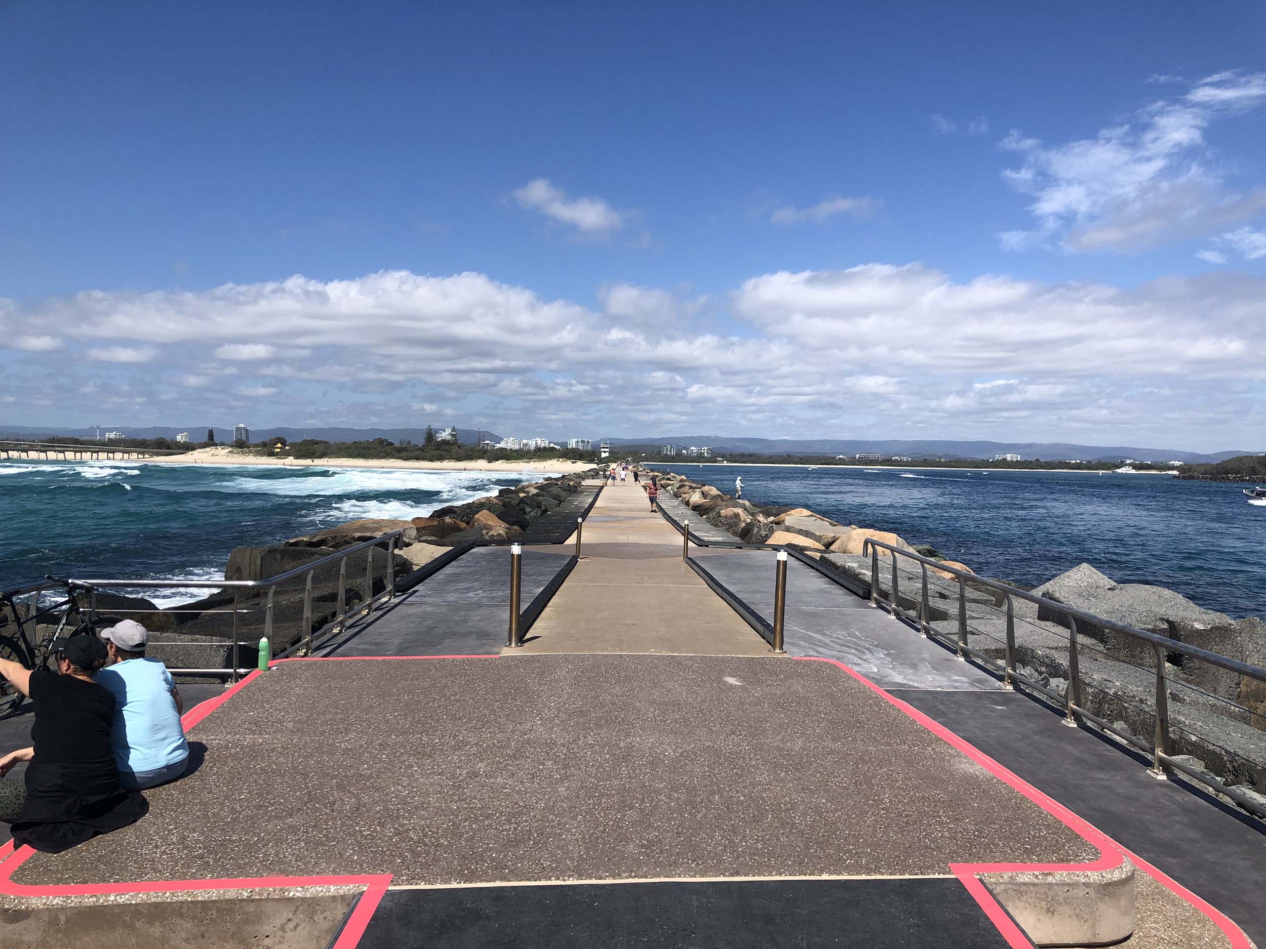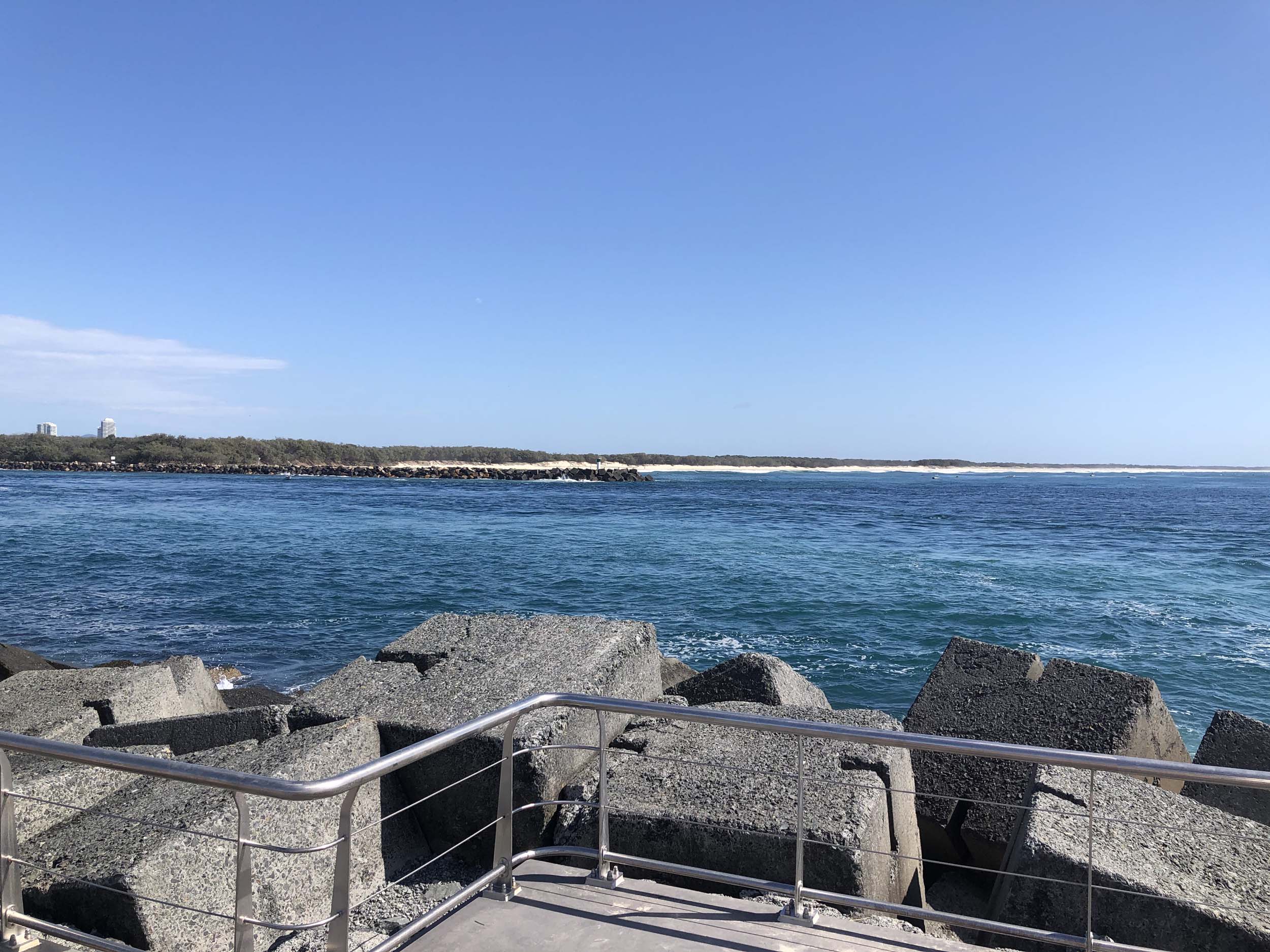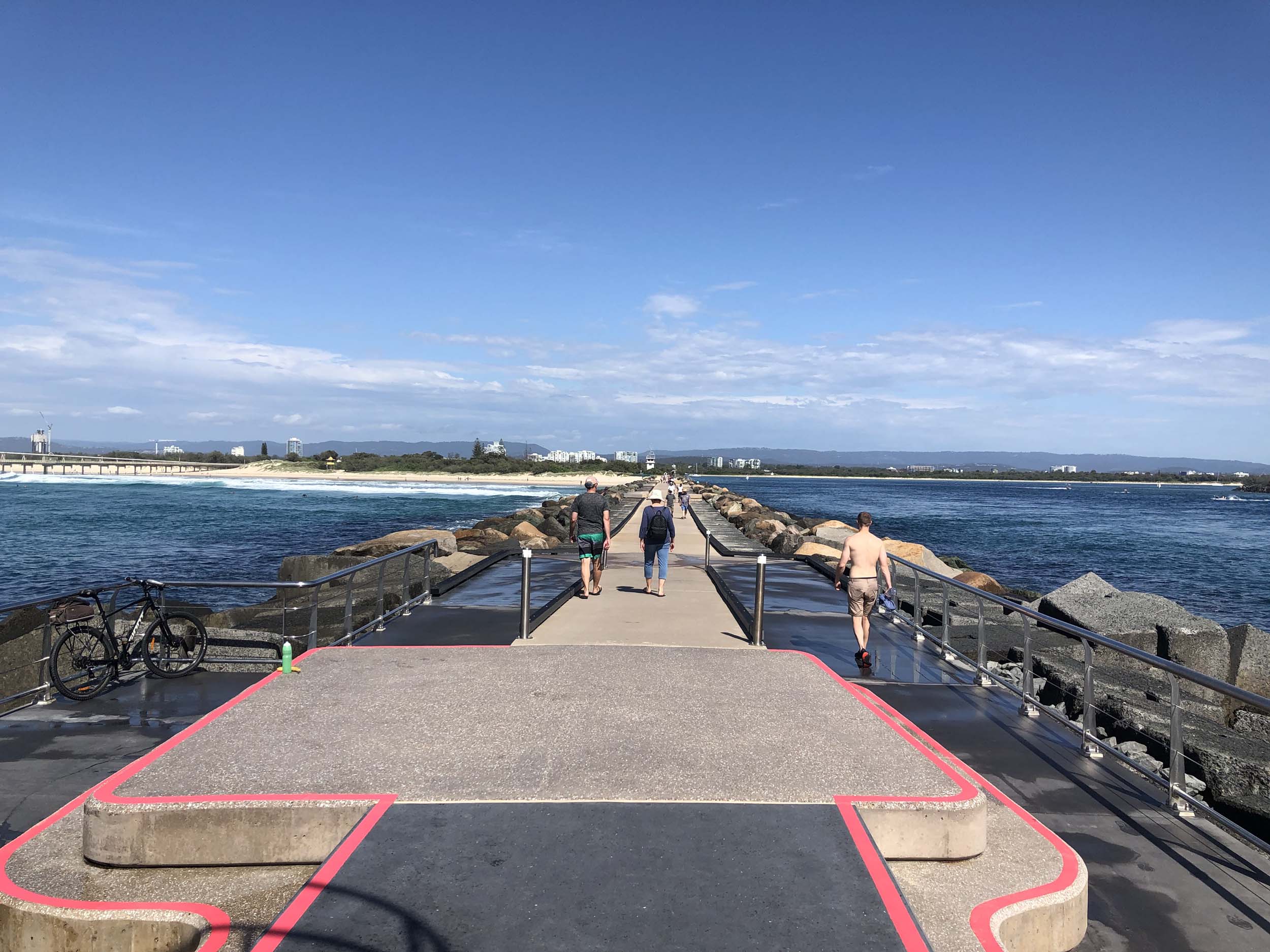 Headed off towards The Seaway/Spit, via the Federation Walk. Continued riding to the tip of the Seawall/Spit. Stopped and took my photos and ate my banana, then rode to the tip of the Moondarewa Spit, took more photos then did another lap to both Spits. While there, I watch a Golden Retriever swimming in the Seaway, it was enjoying life to the max.