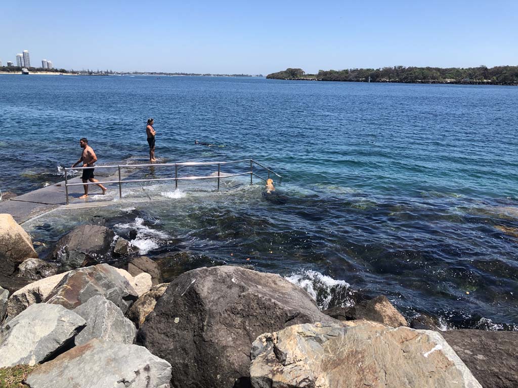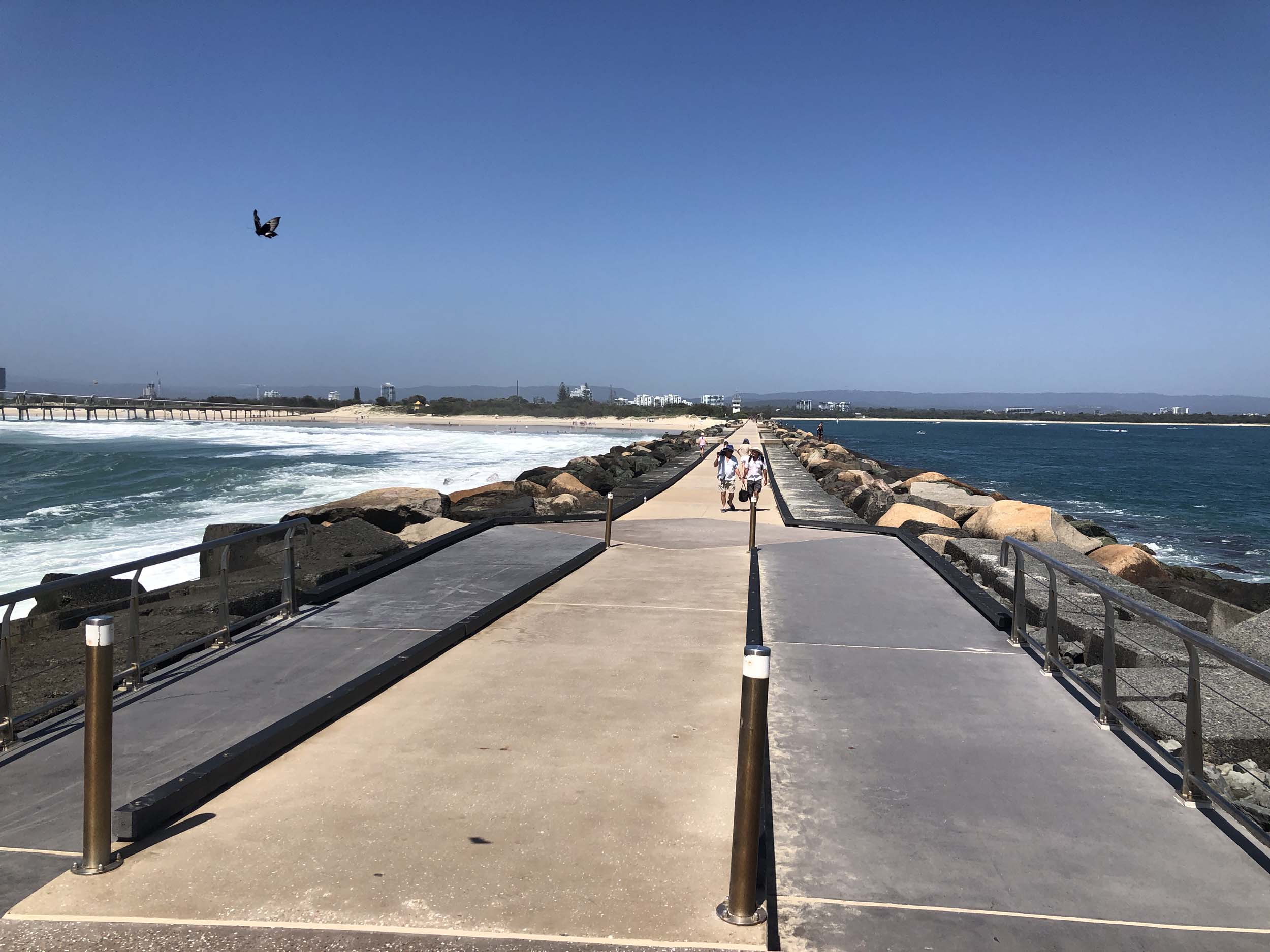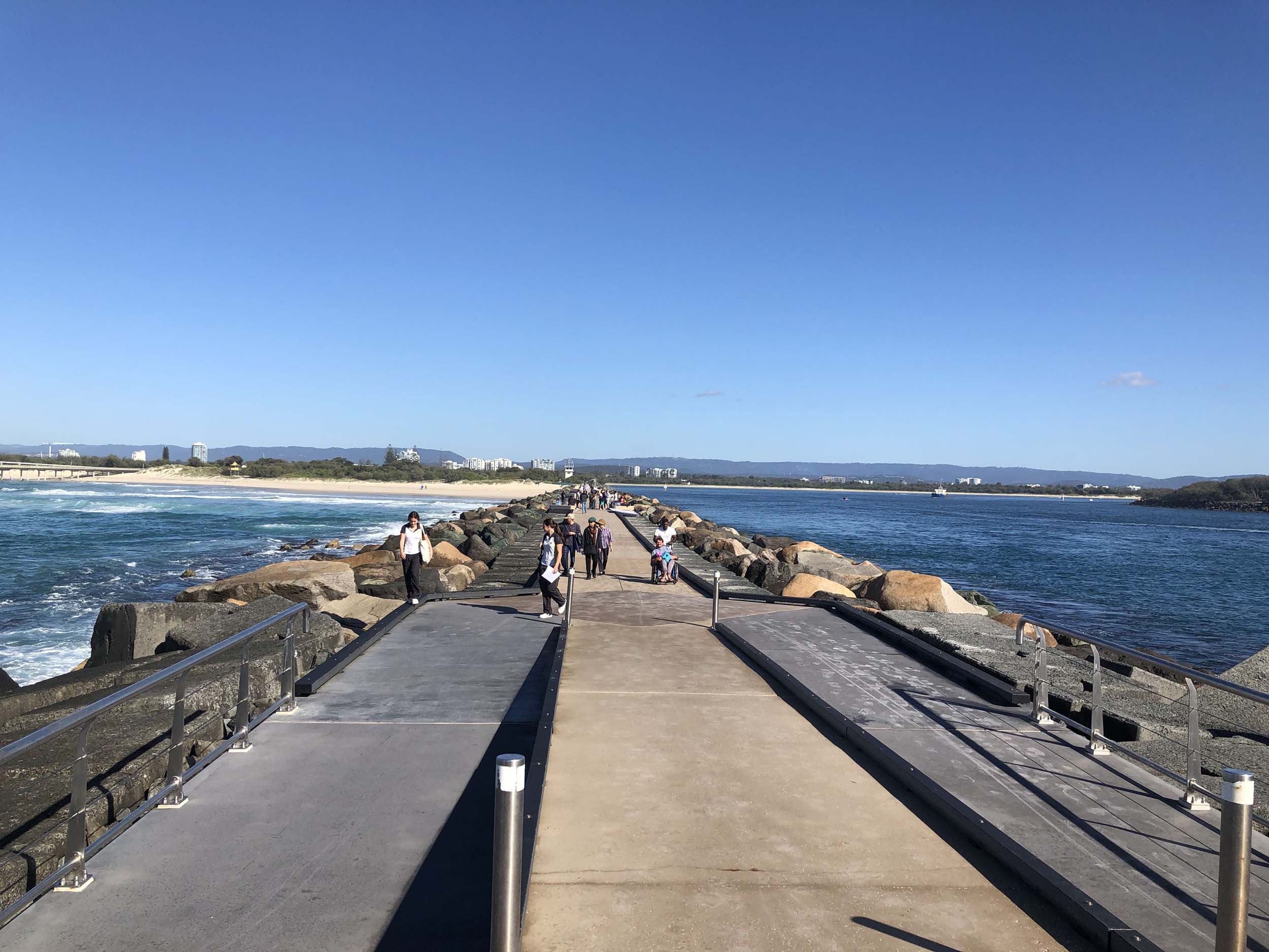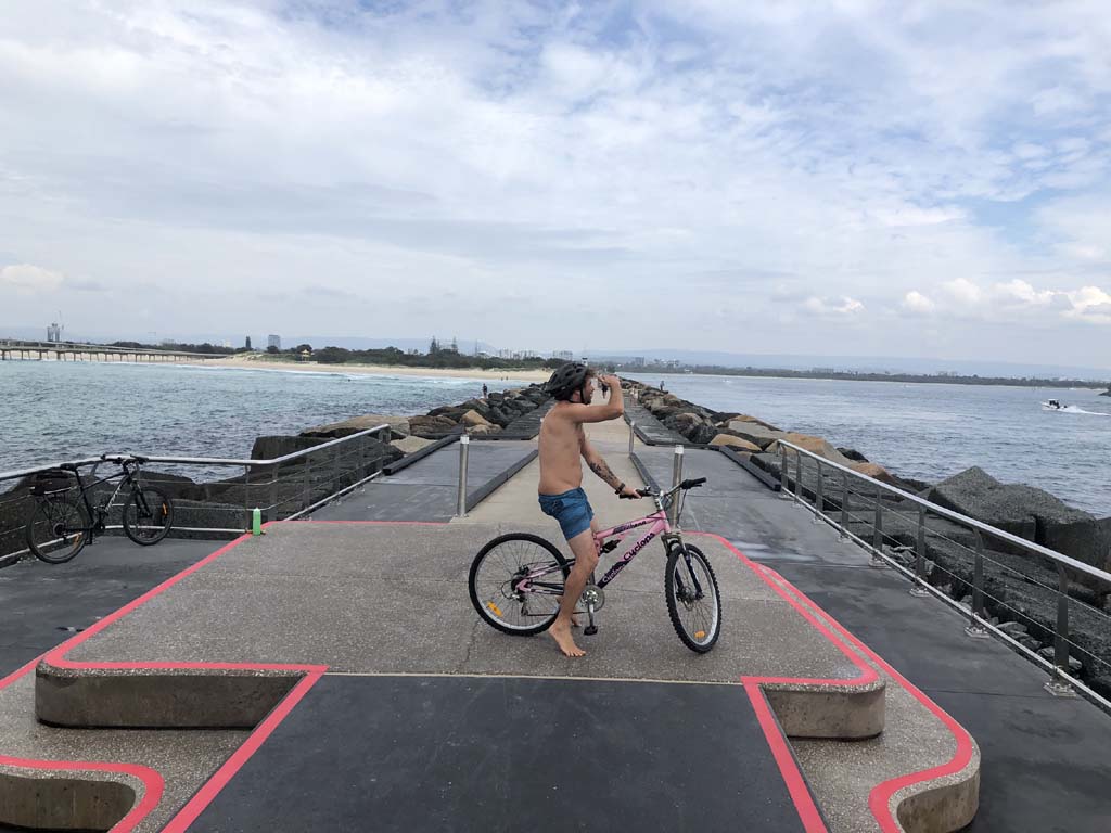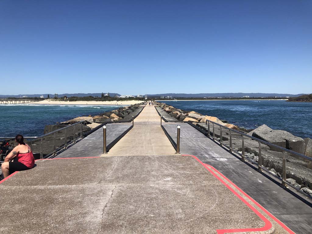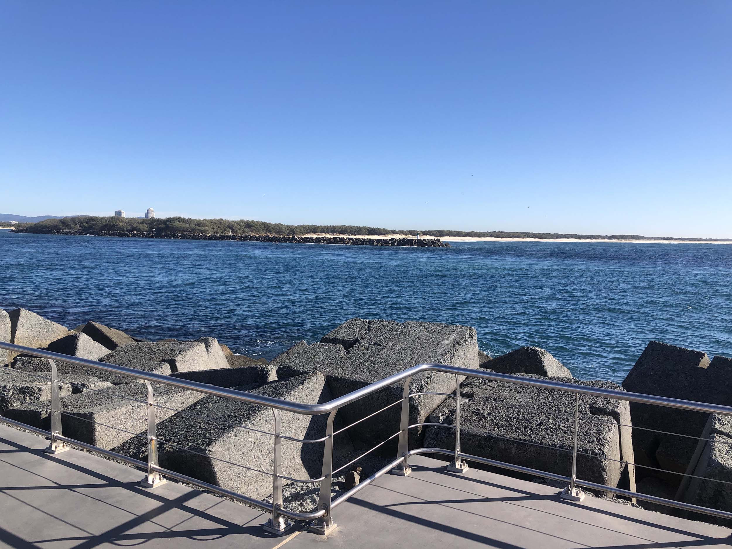 Headed off towards The Seaway/Spit, via the Federation Walk. Continued riding to the tip of the Seawall/Spit. Stopped and took my photos and ate my banana, then rode to the tip of the Moondarewa Spit, took more photos then did another lap to both Spits. While there, I watch a Golden Retriever swimming in the Seaway, it was enjoying life to the max.