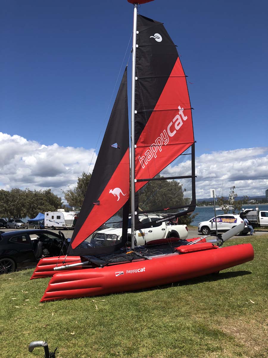 I left The Spit, and continued along the Shared Path that runs beside Seaworld Drive, rode through Muriel Henchman park. I spotted an inflatable catamaran. Check out the photo, it is made of used car tyres. Unreal.