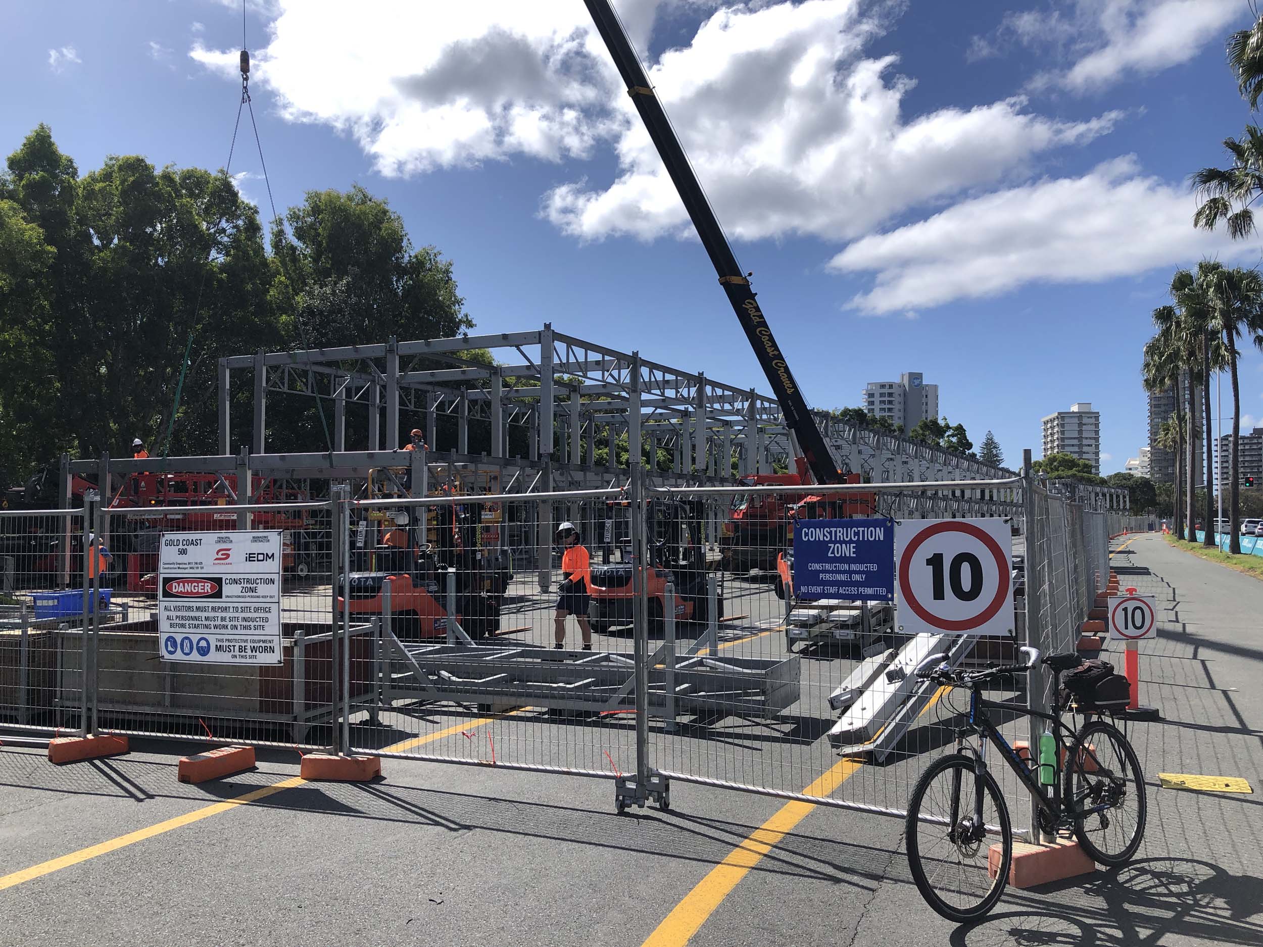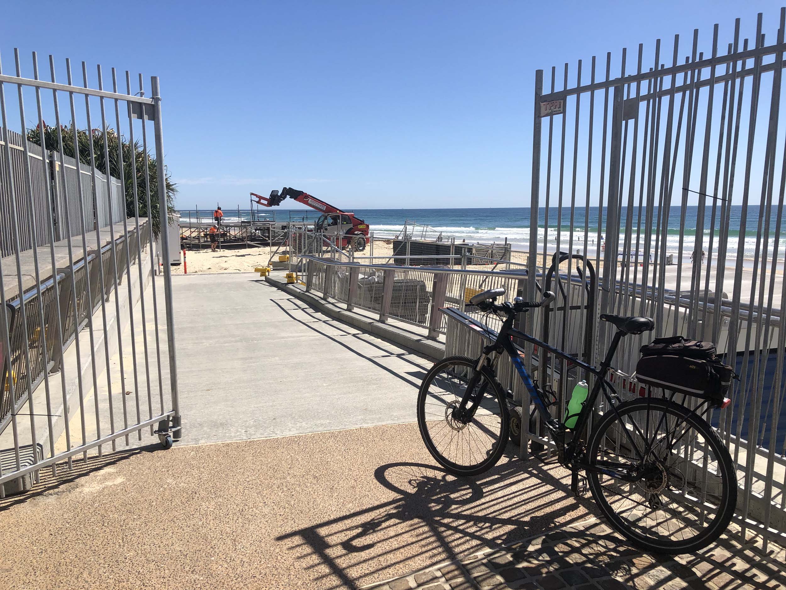 Checked out the progress of setting up for the Supercar round. Over the Bridge at Narrowneck then along the Shared Path, to my normal spot at Surfers, to take my weather photos.