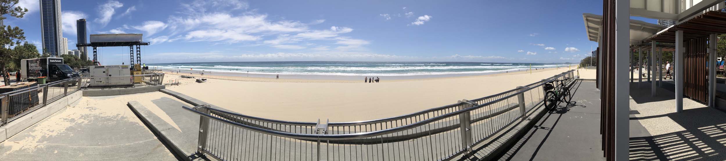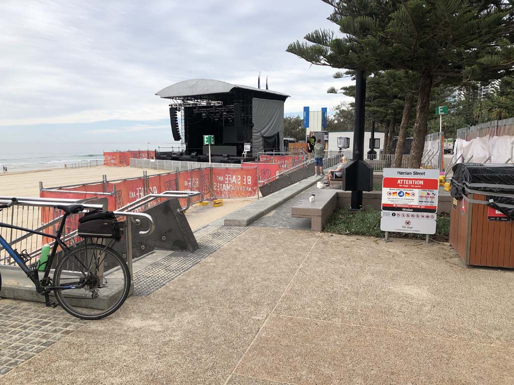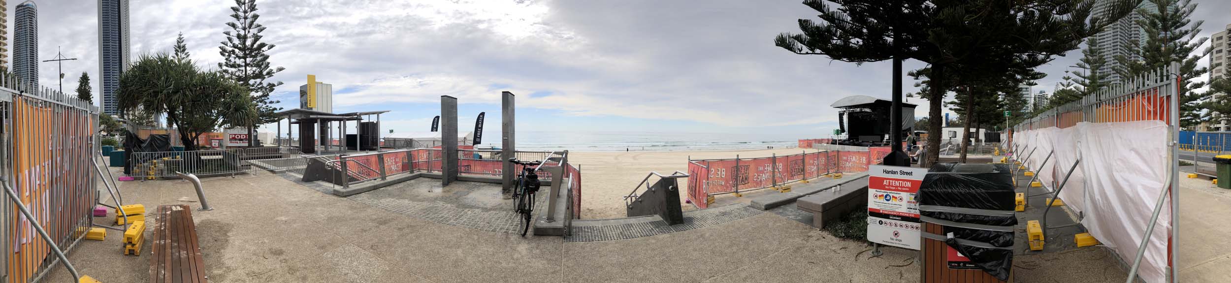 The Supercar areas are now completely removed. Over the Bridge at Narrowneck then along the Shared Path, to Surfers, to take the Schoolies's area. Strange, I didn't see any.