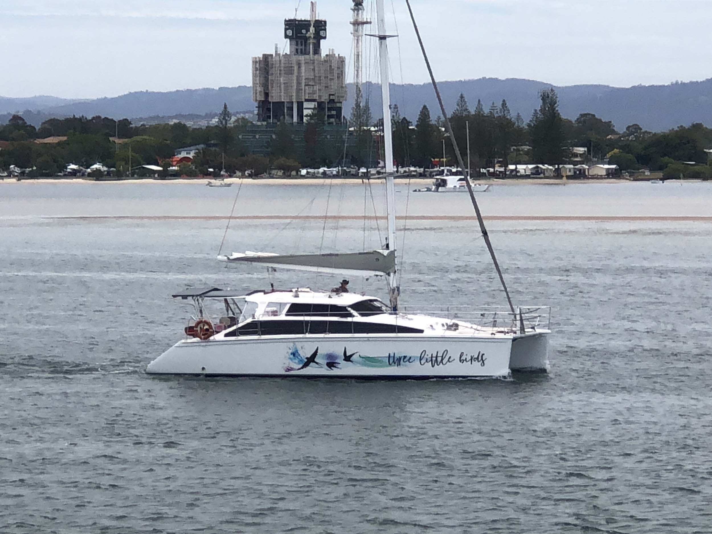 I left home at 8:03am, after going for a coffee and some shopping at Coles Lab Park. The breeze was a light, building North Westly. The Broadwater was calm.