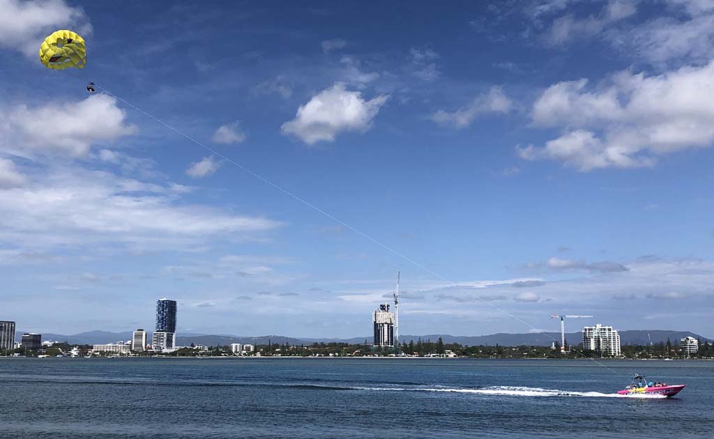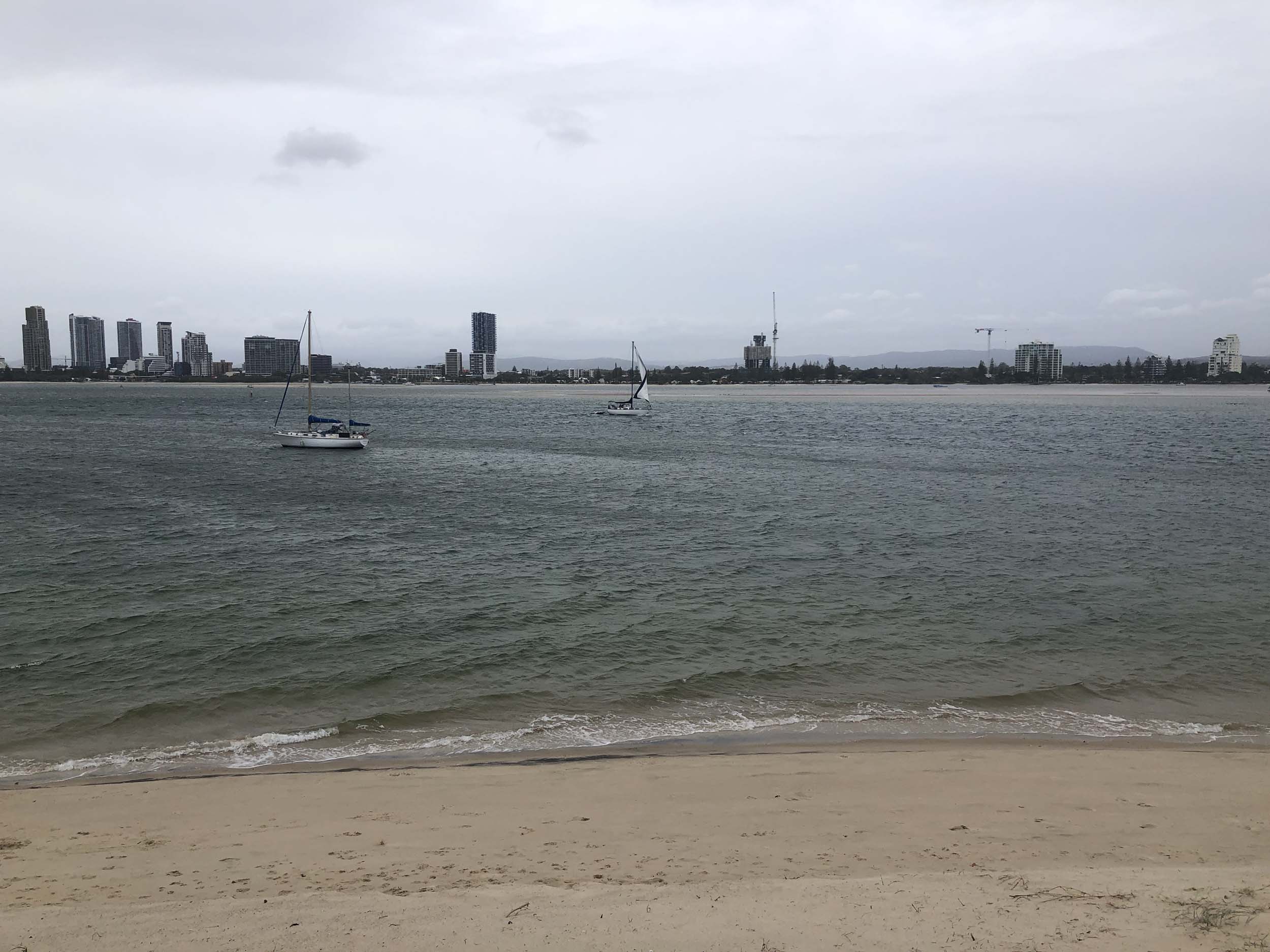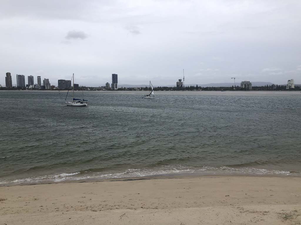 I left home at 7:44am, after going for a coffee and some shopping at Coles Lab Park. The breeze was light and slowly building from the North East. The Broadwater had slight chop.