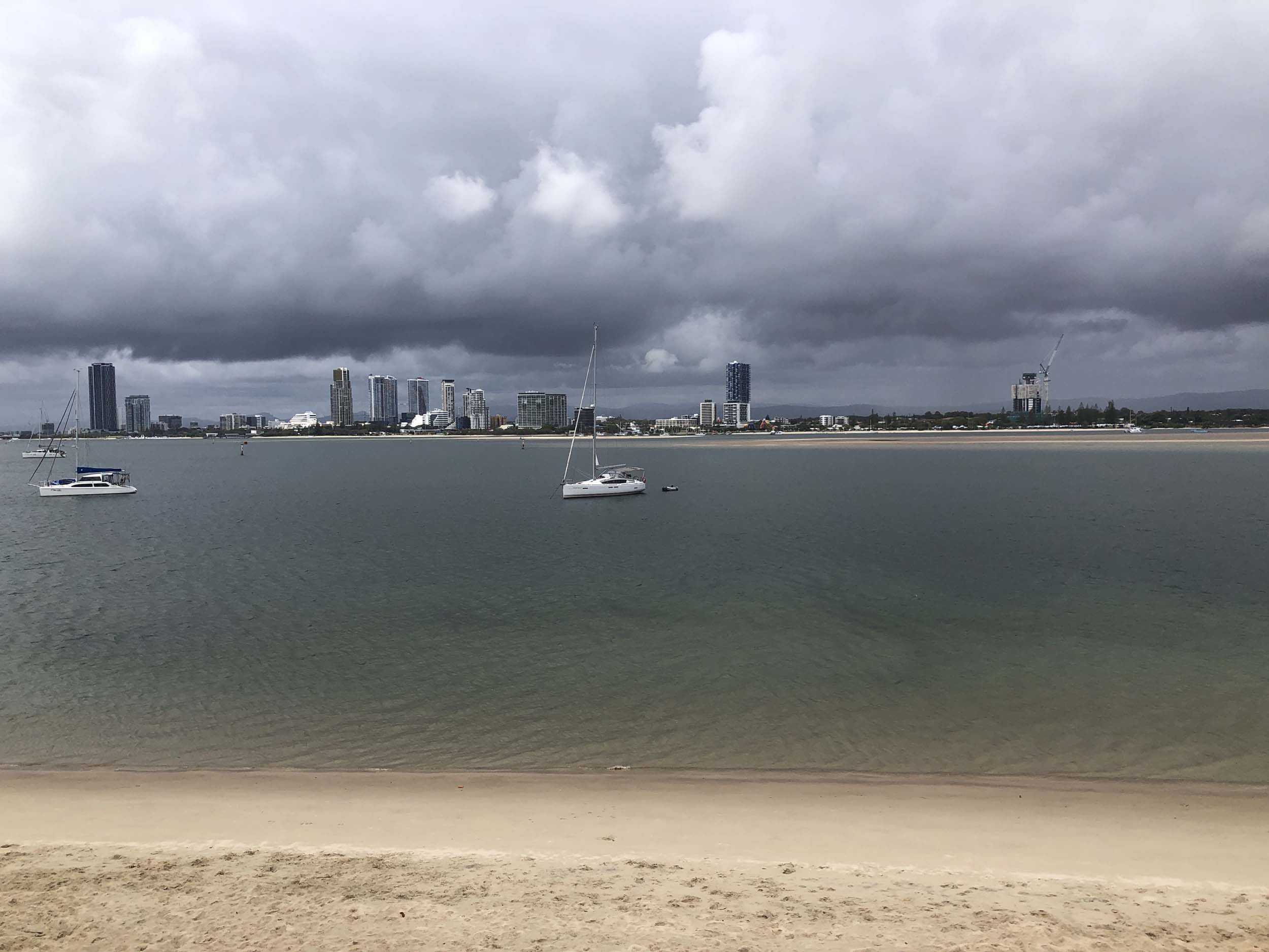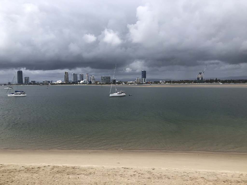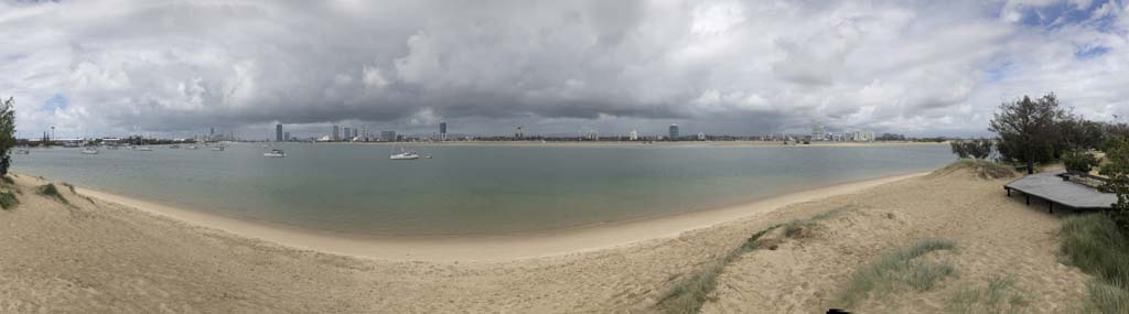 As usual, I rode Northward, to my Lands End turnaround point. Continued through the Broadwater Parklands to MacIntosh Is, did a lap. Over the Bridge at Narrowneck then along the Shared Path, to Surfers, to take my weather photos.